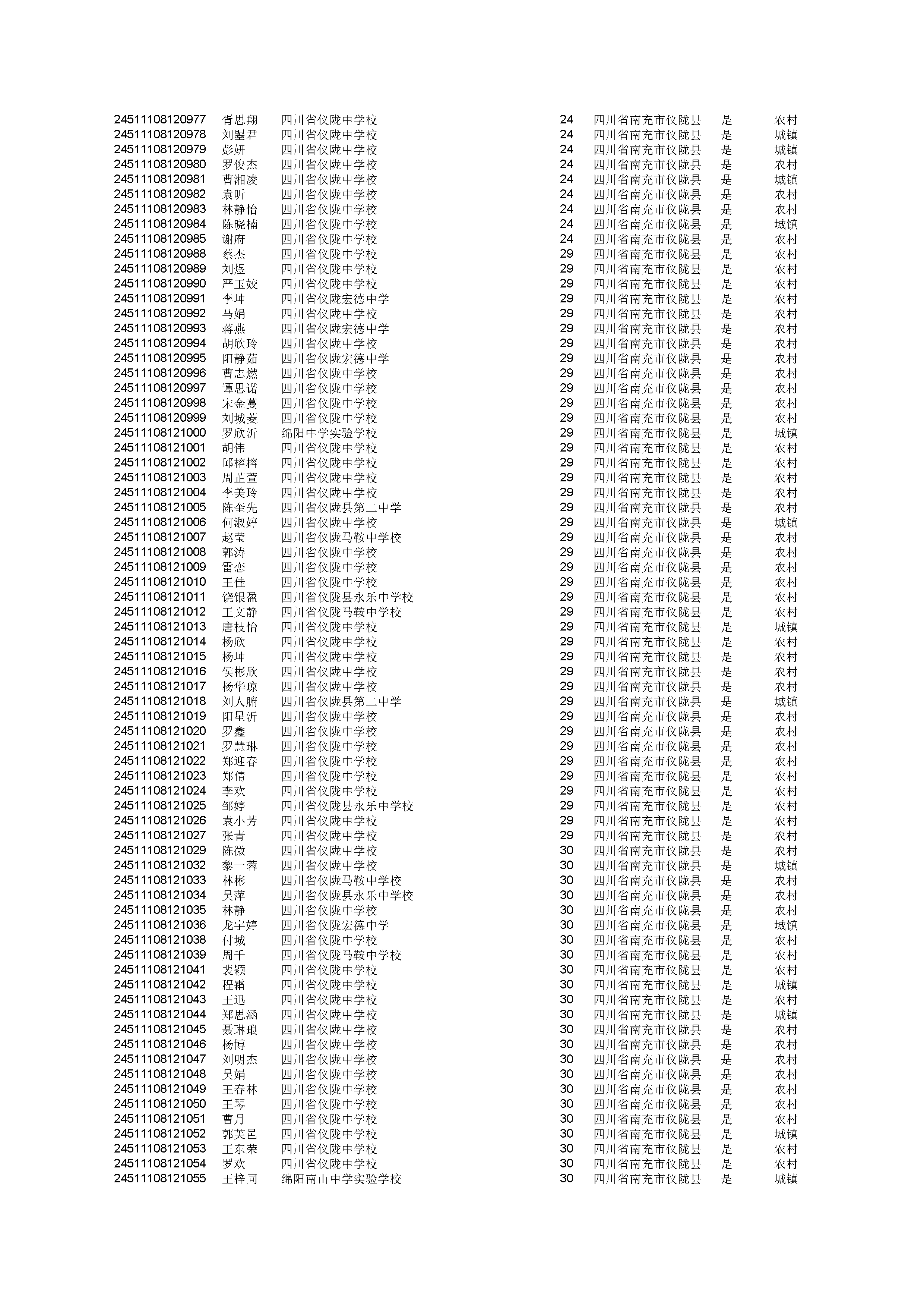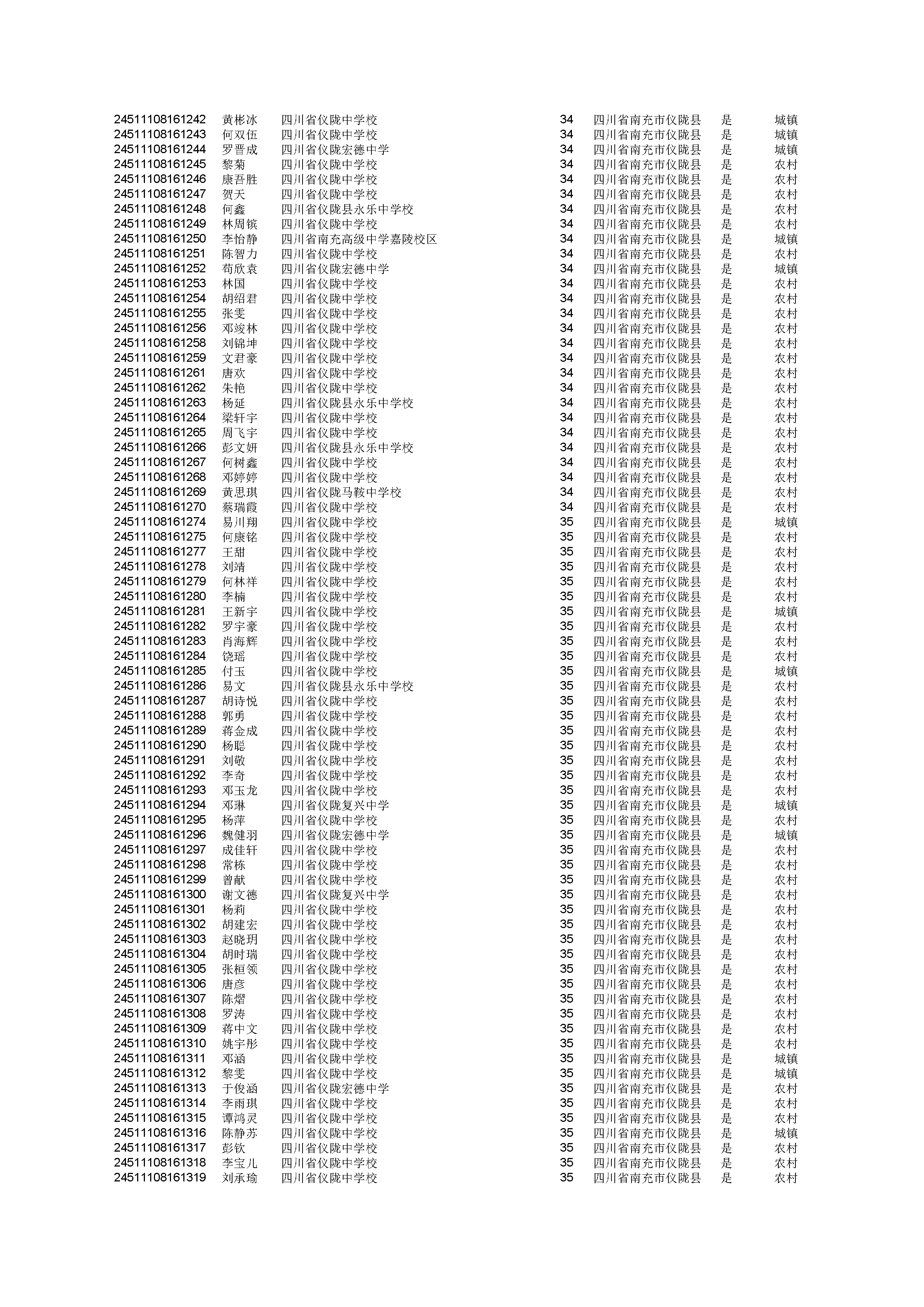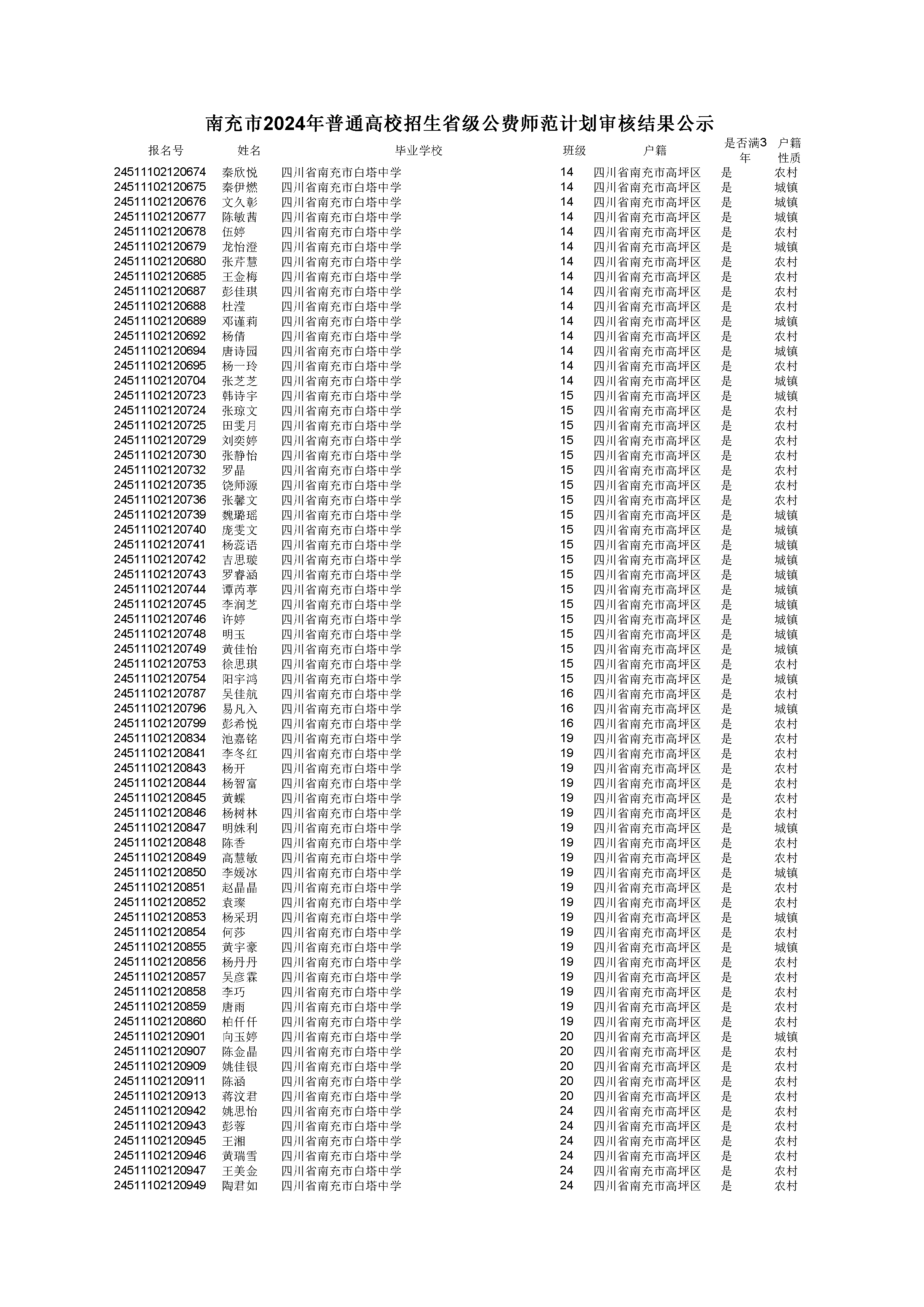 南充市2024年普通高校招生省级公费师范计划审核结果公示