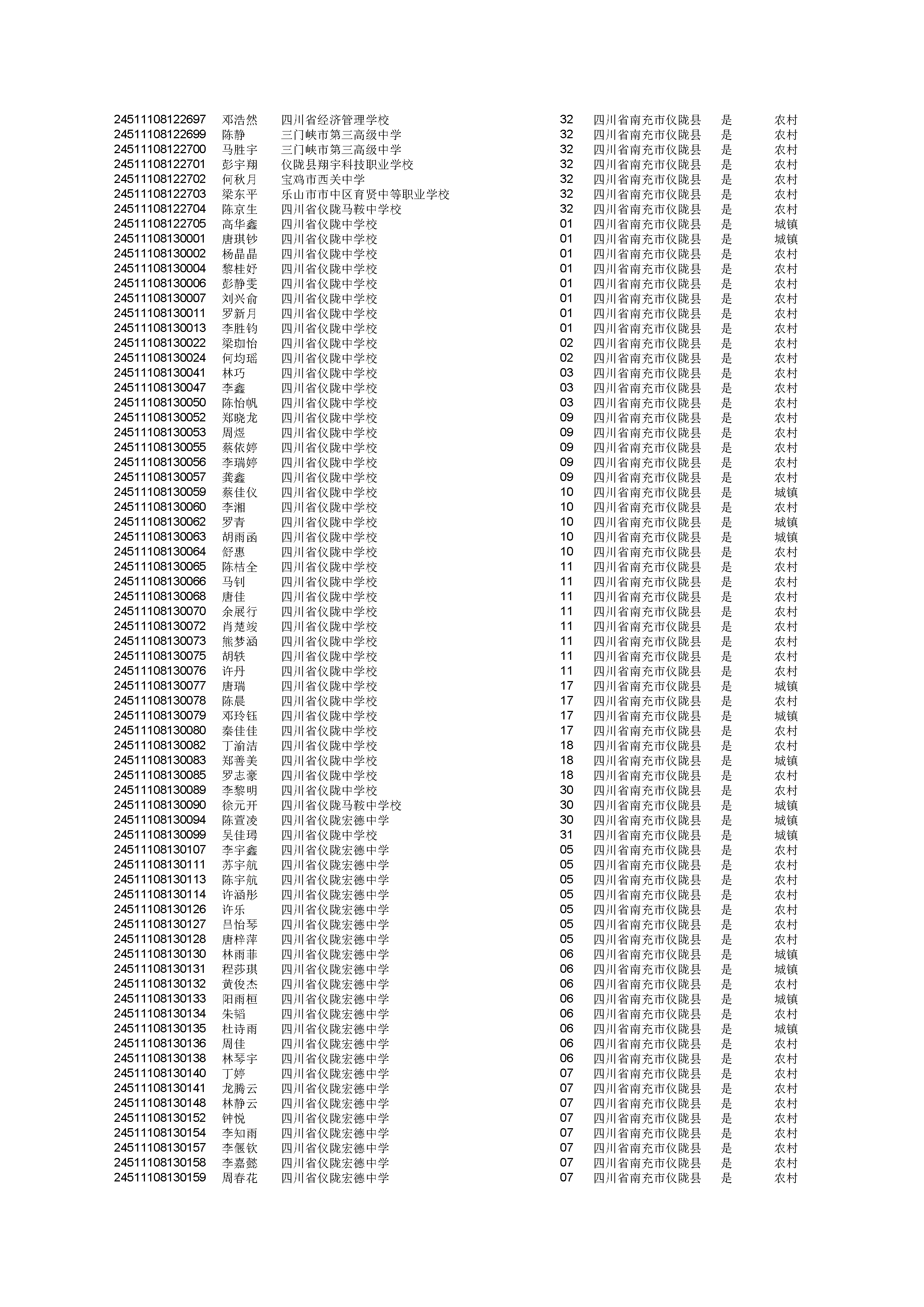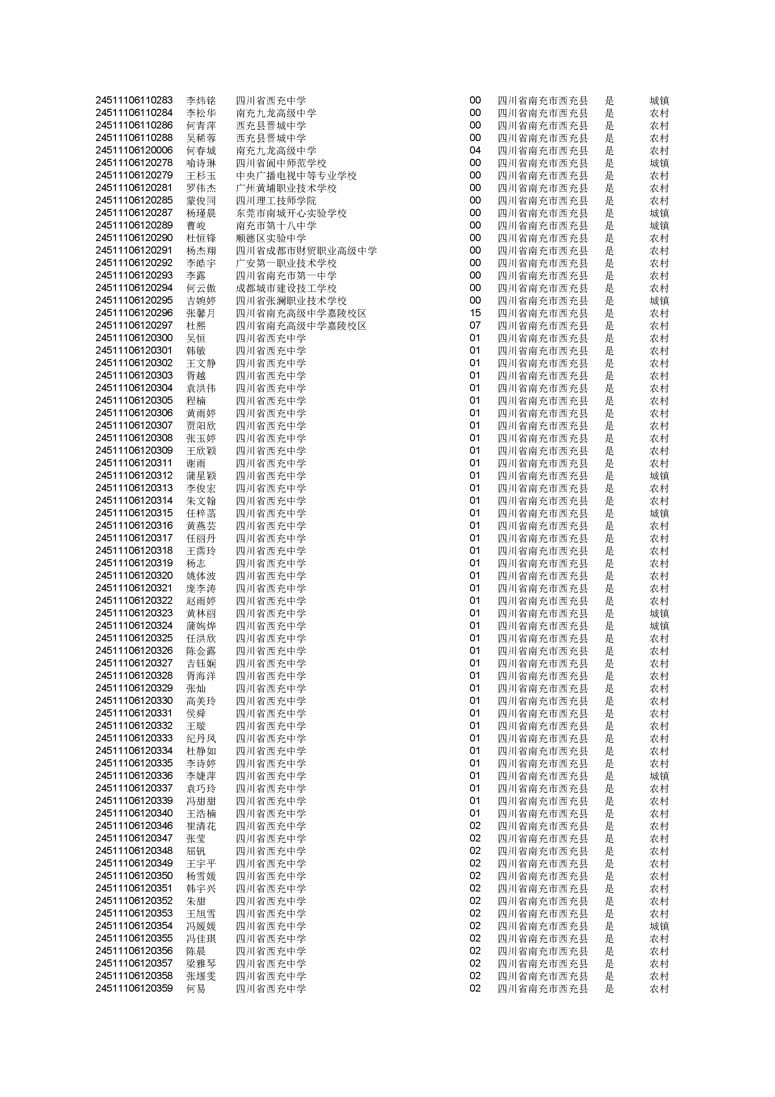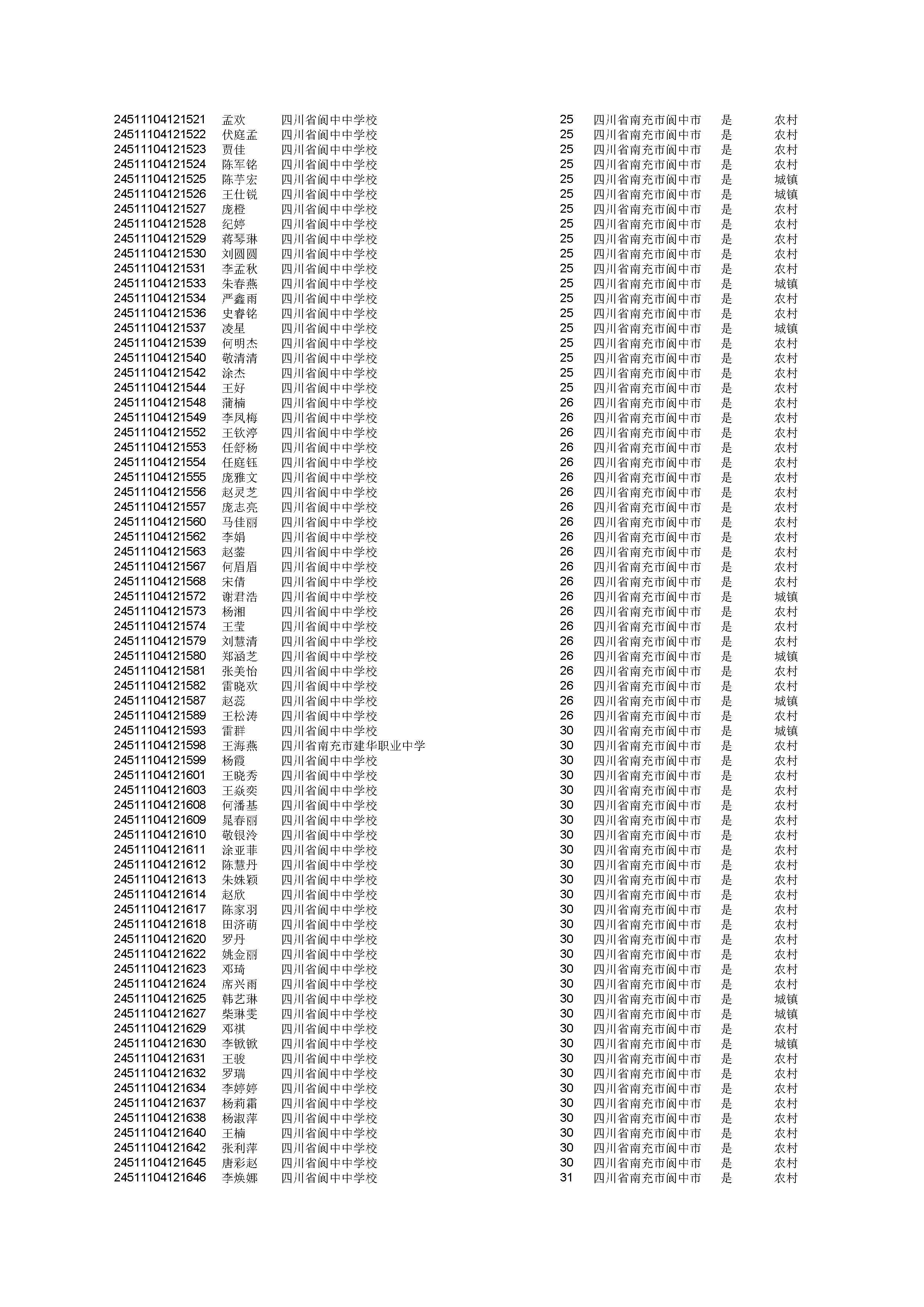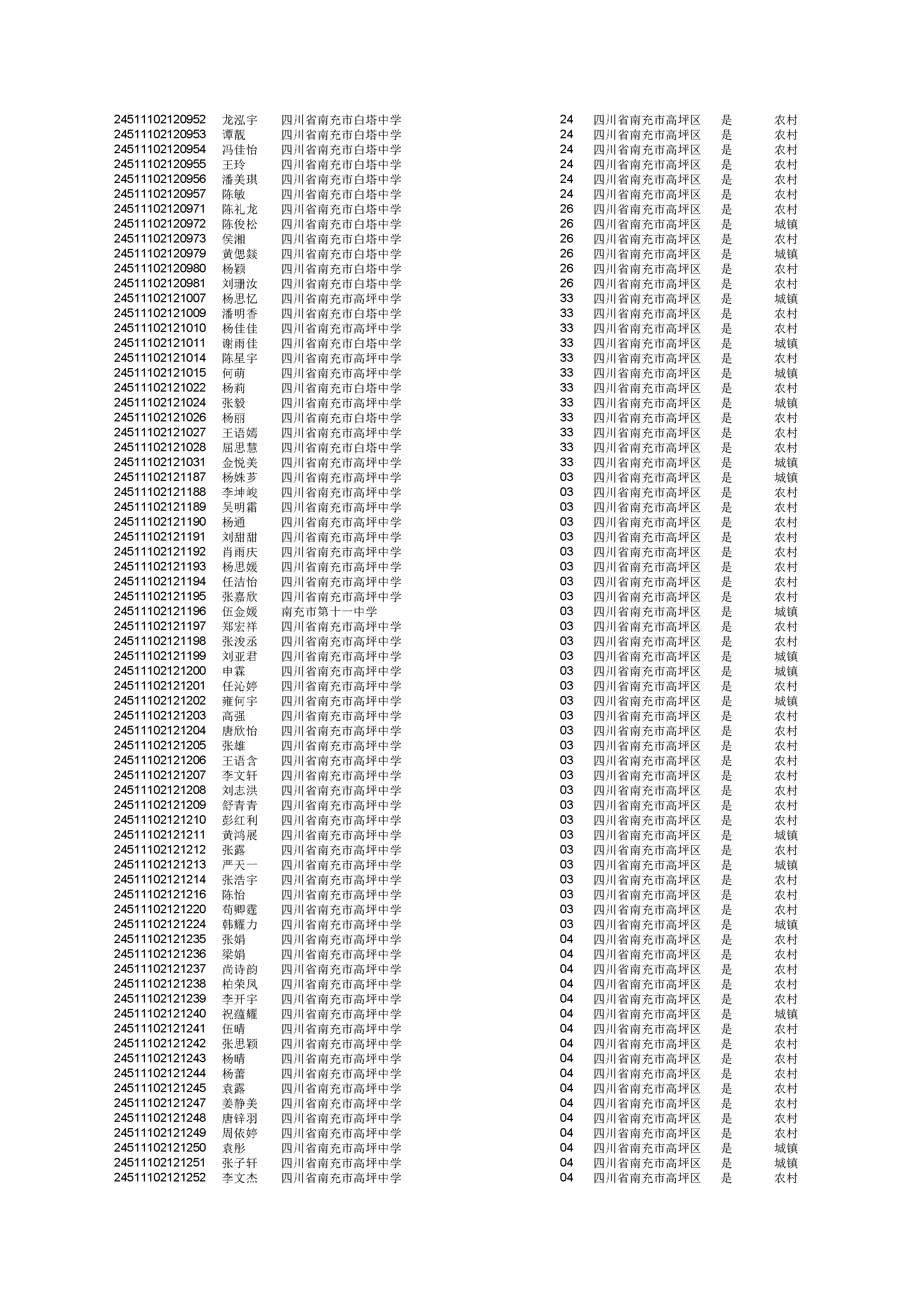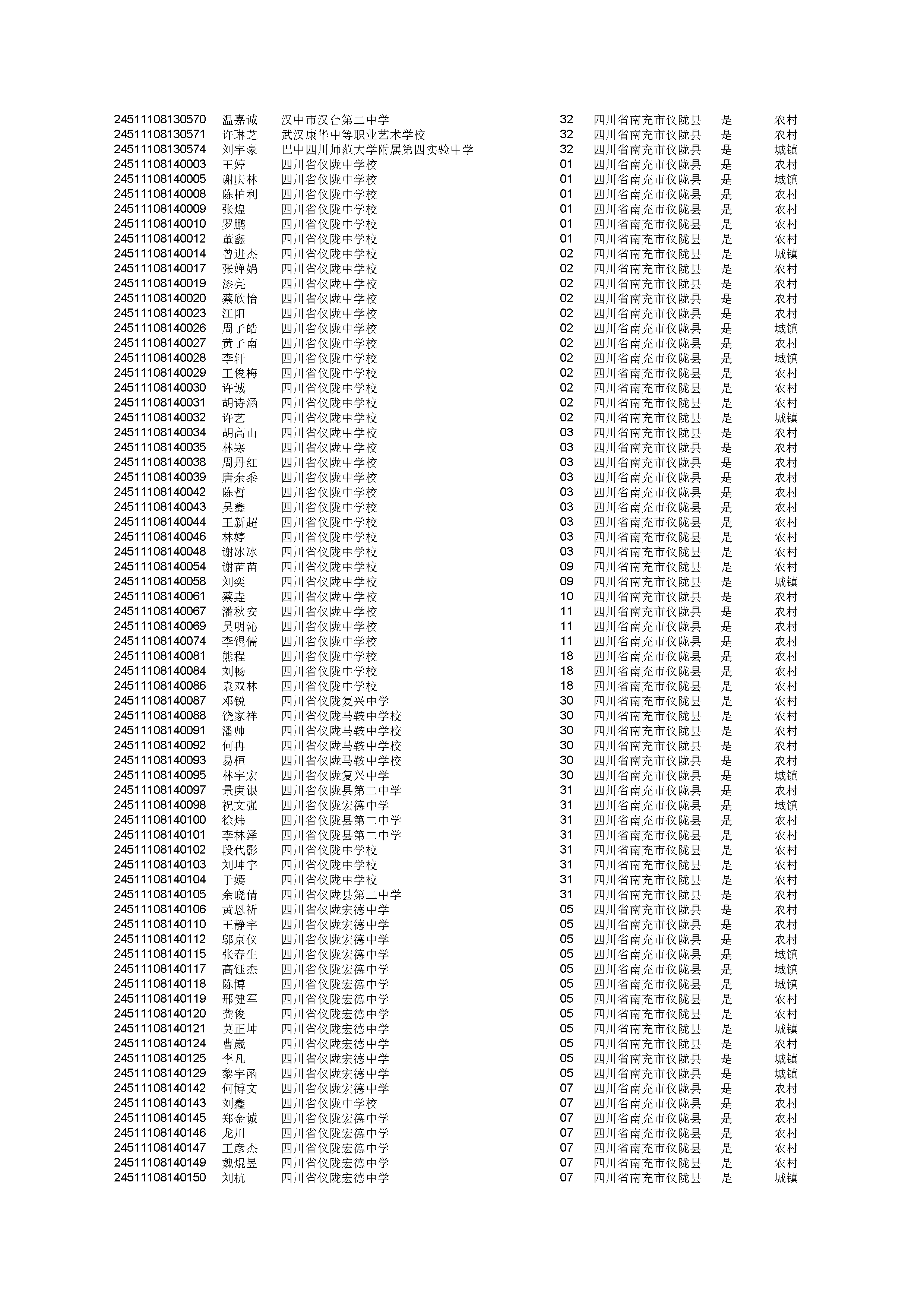 南充市2024年普通高校招生乡村振兴计划审核结果公示