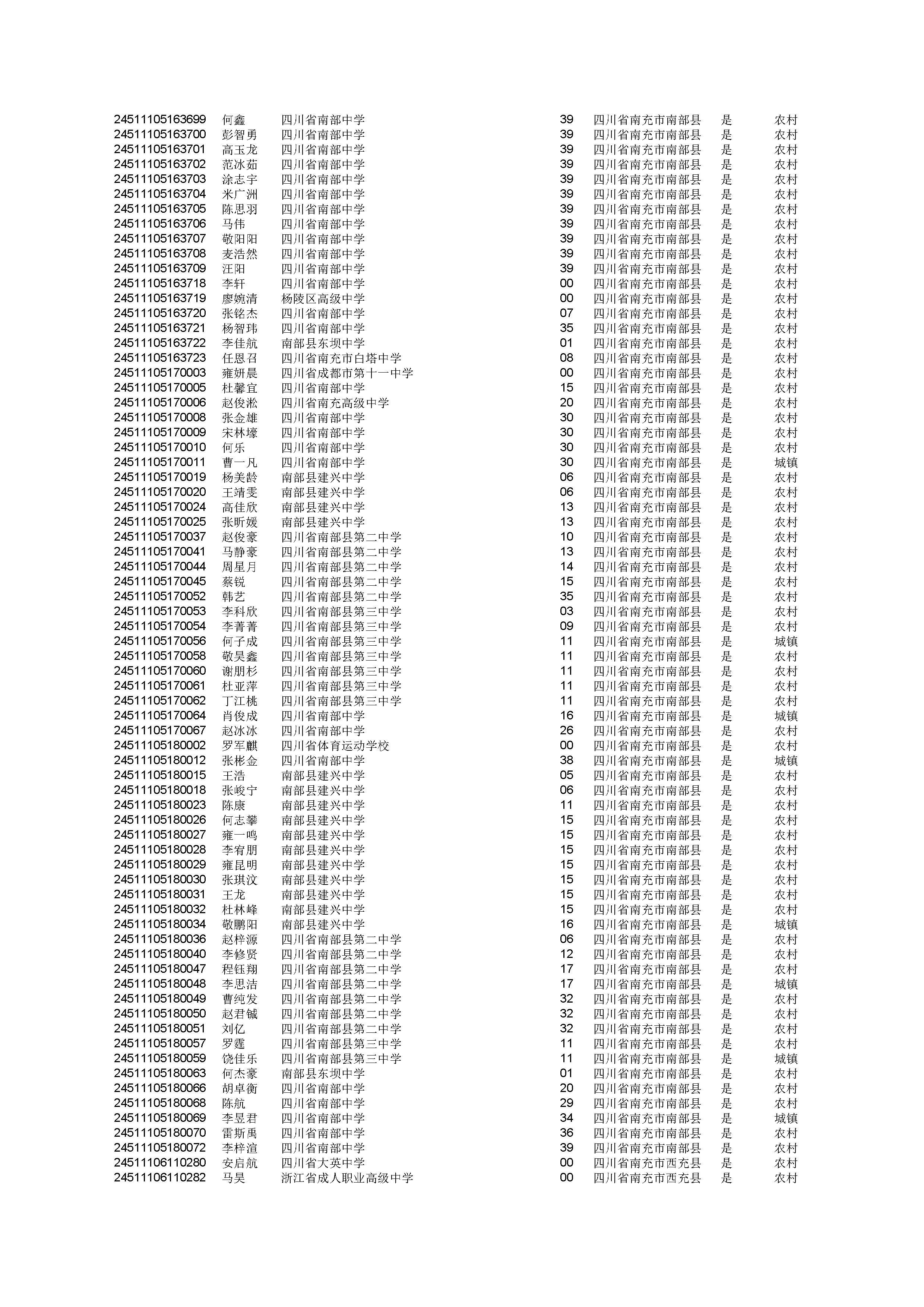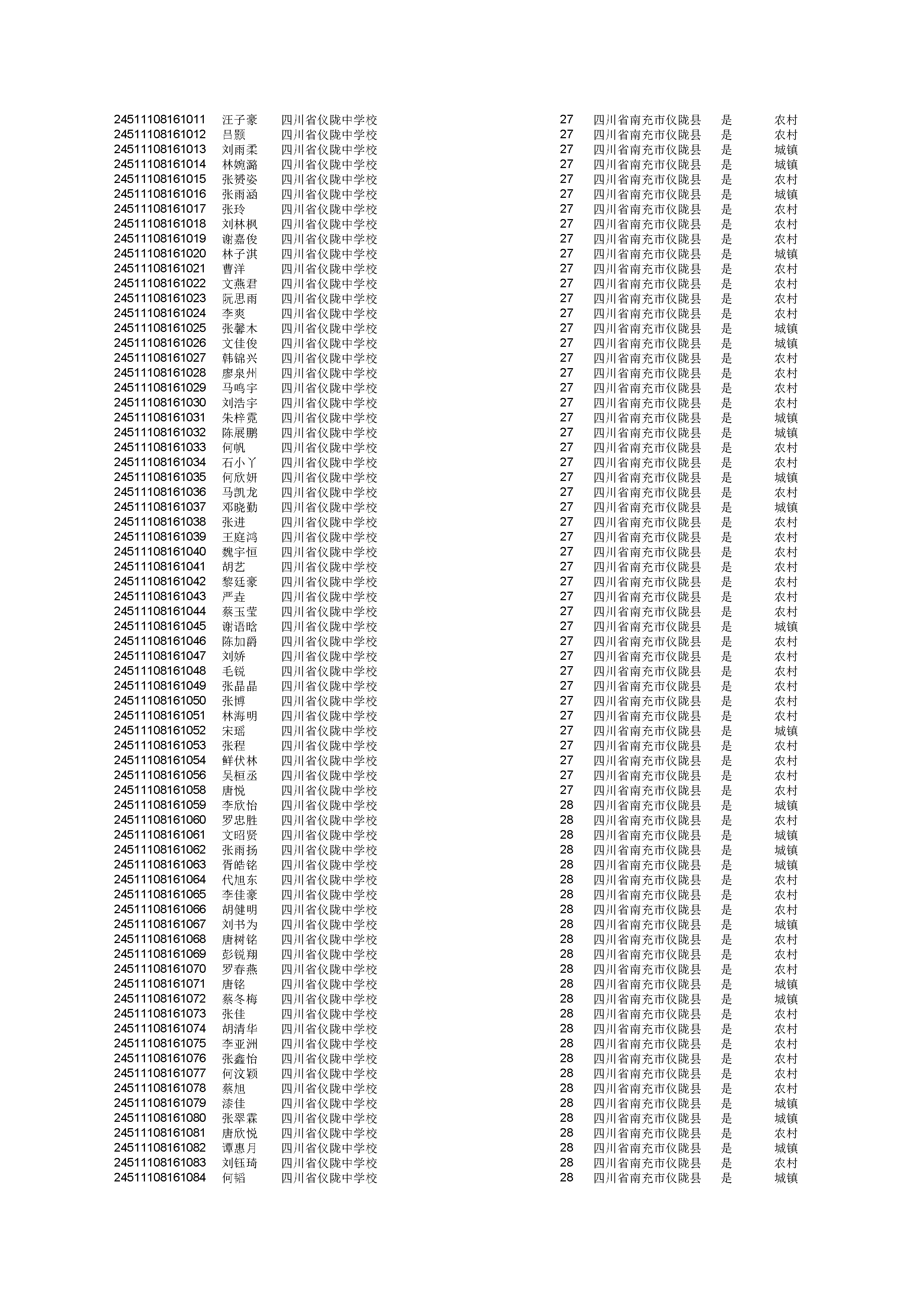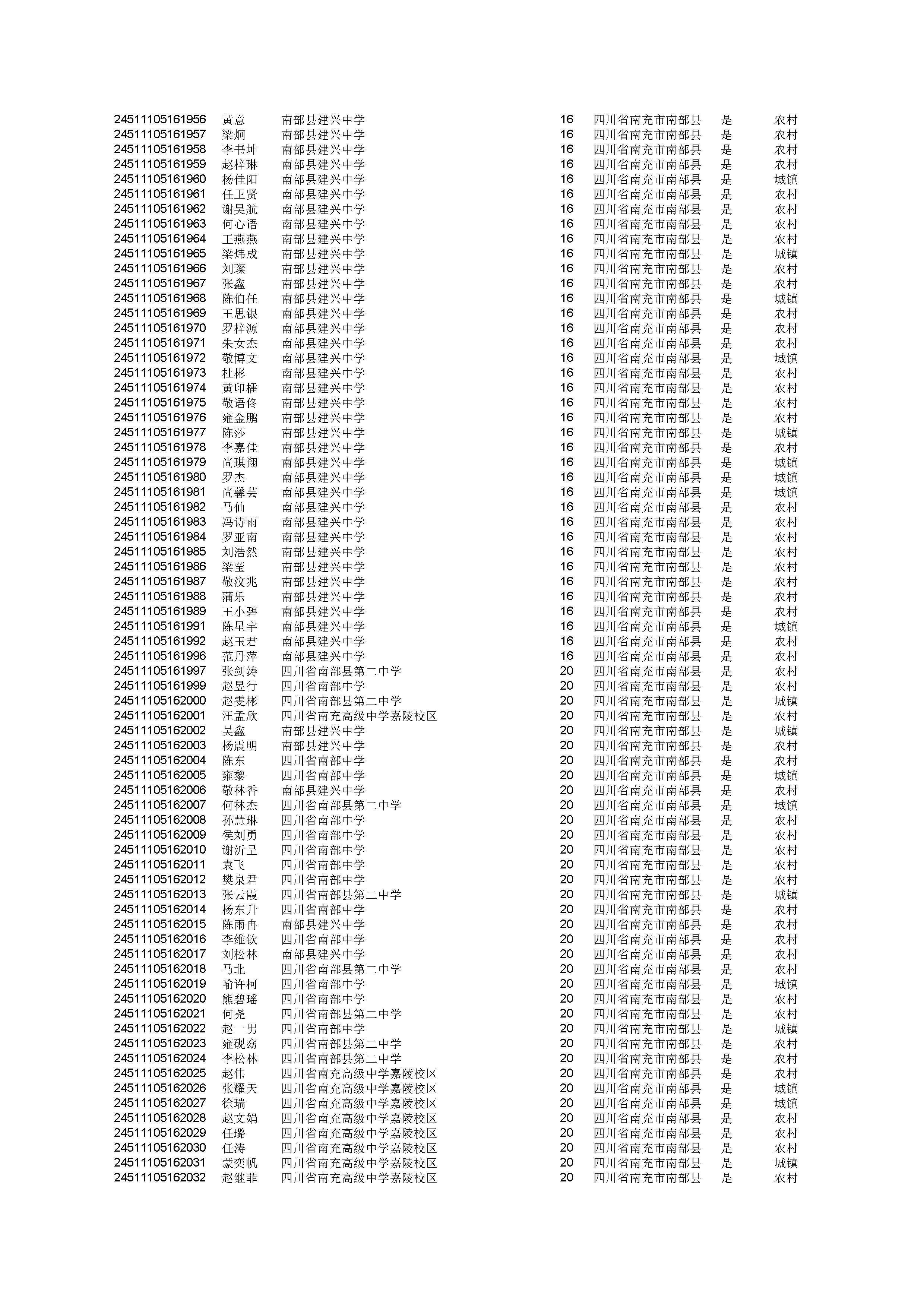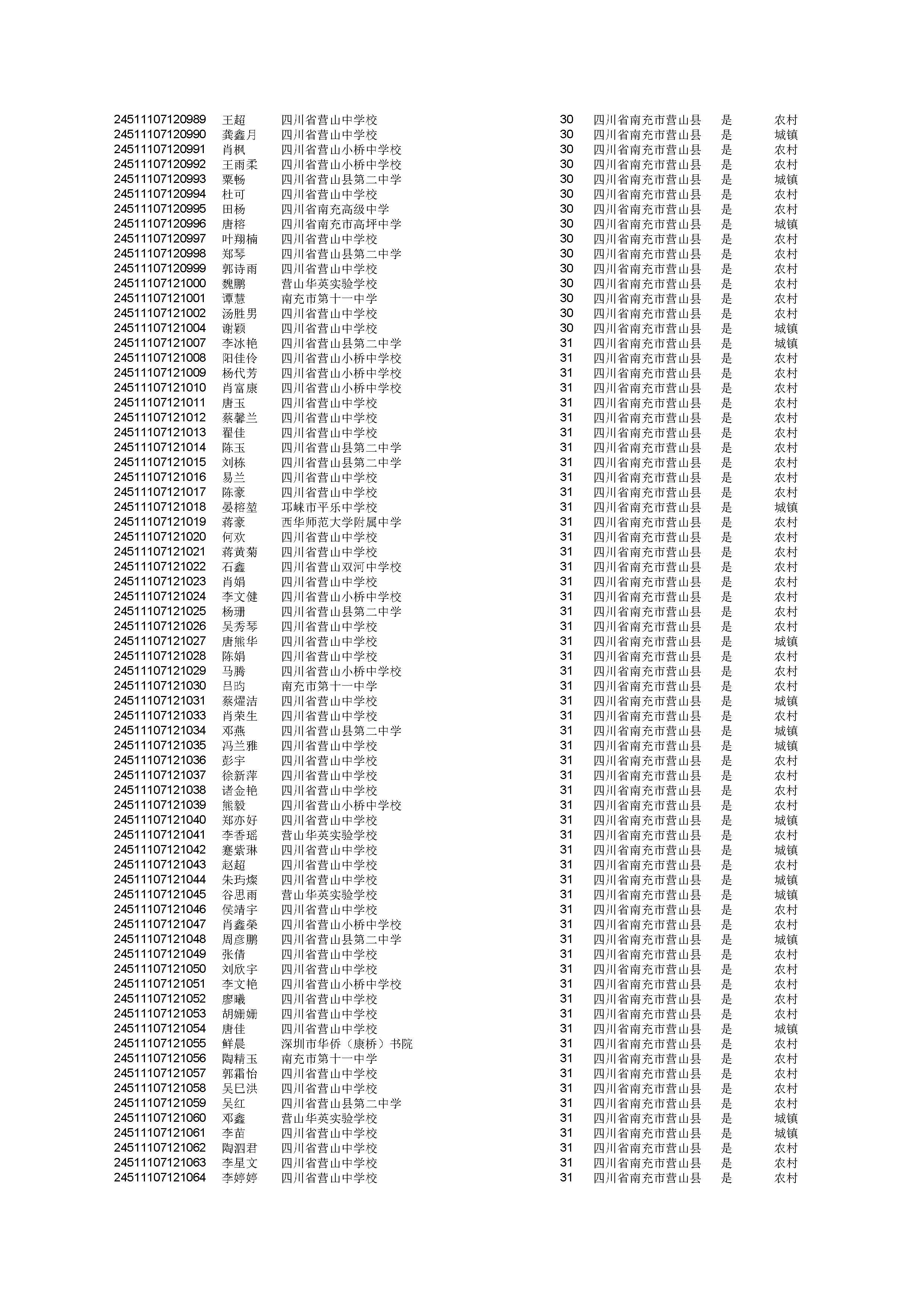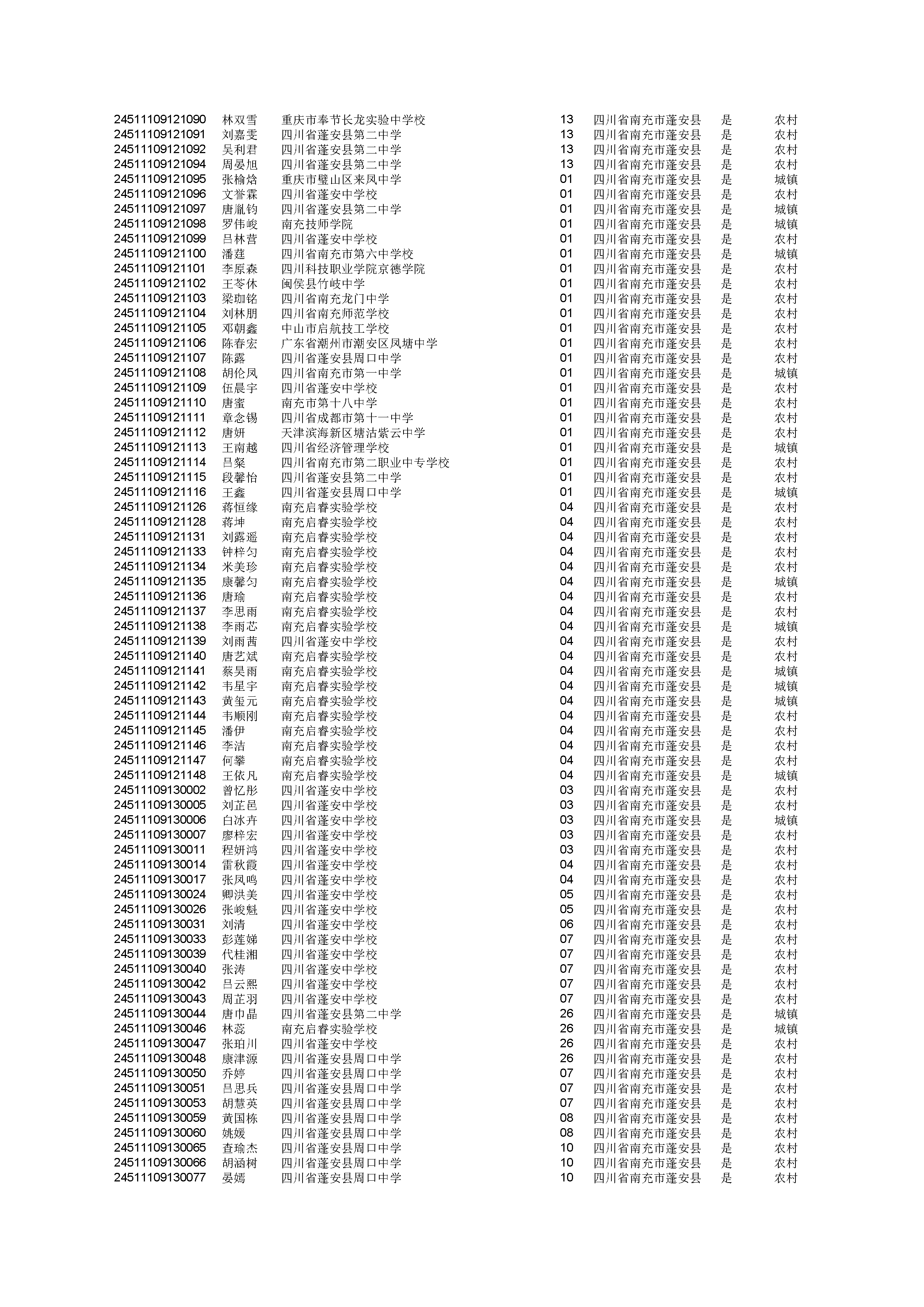 南充市2024年普通高校招生乡村振兴计划审核结果公示