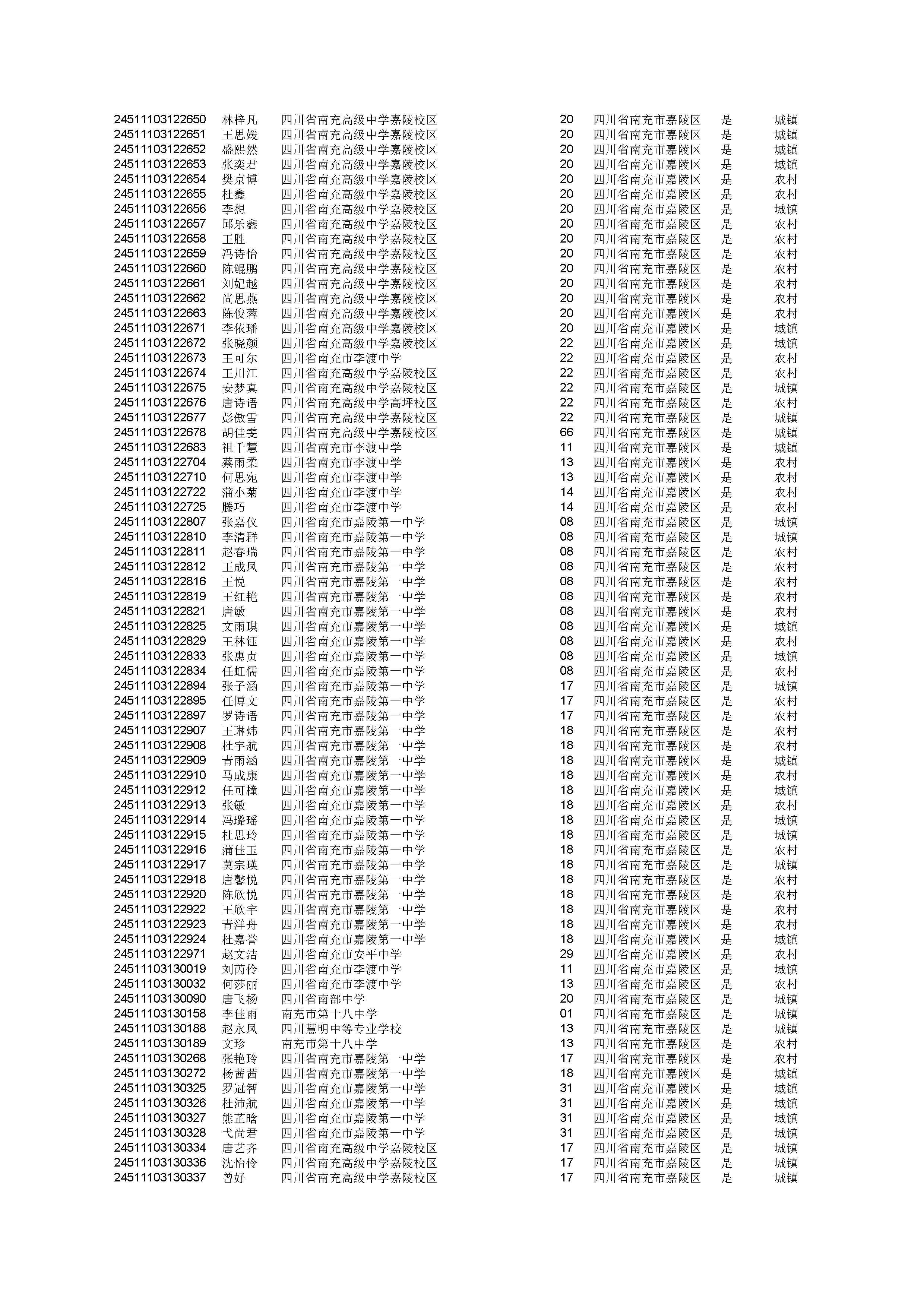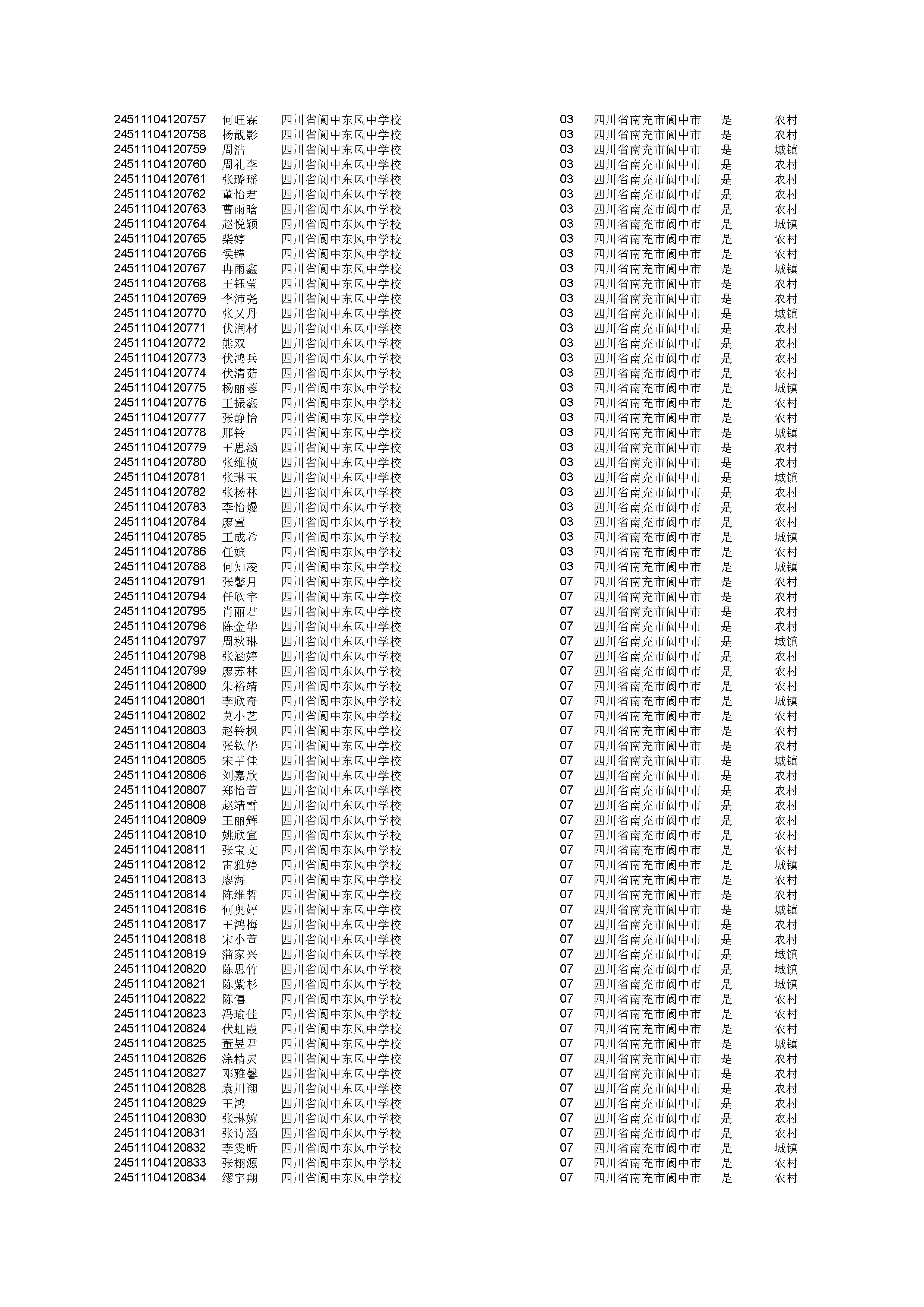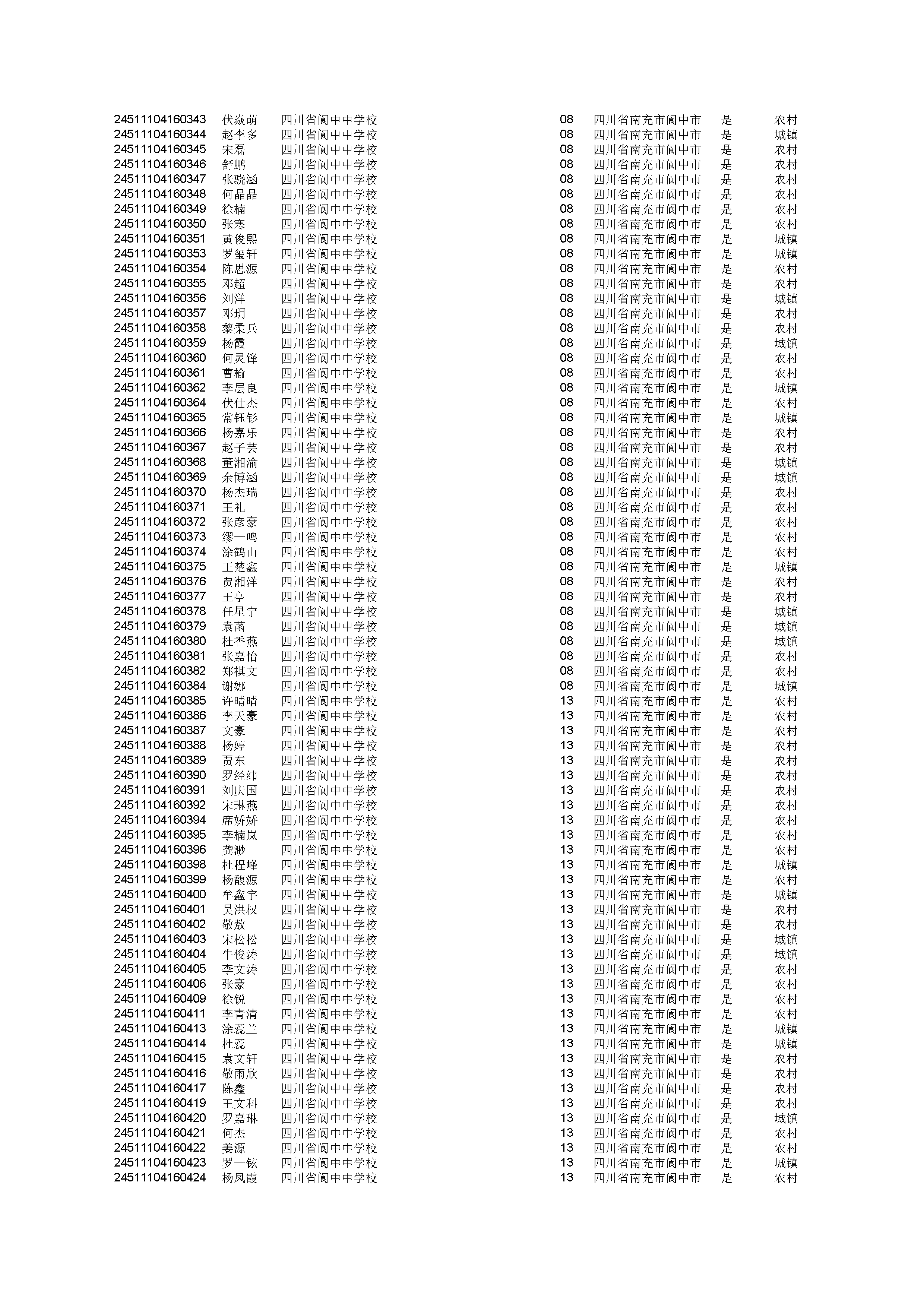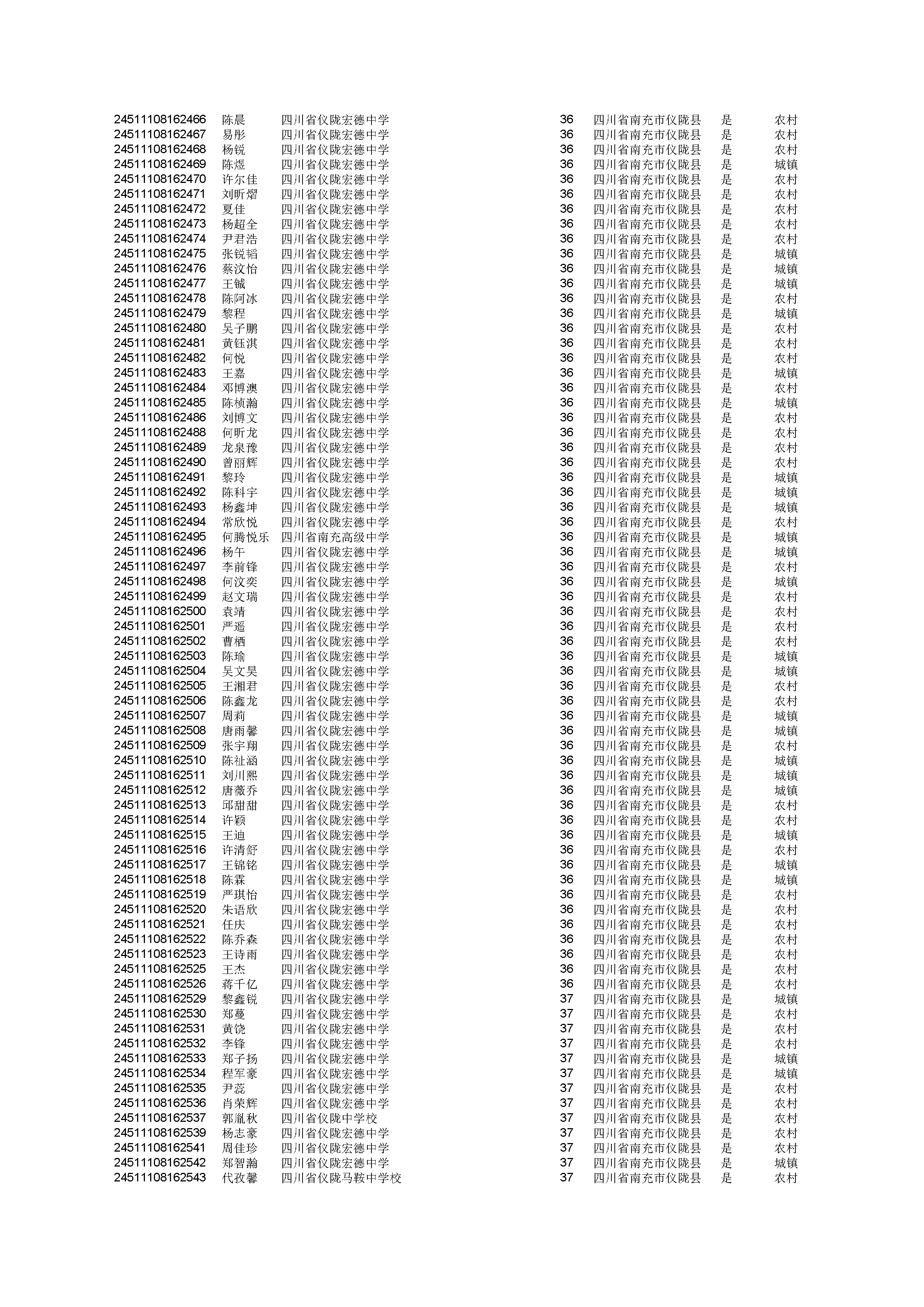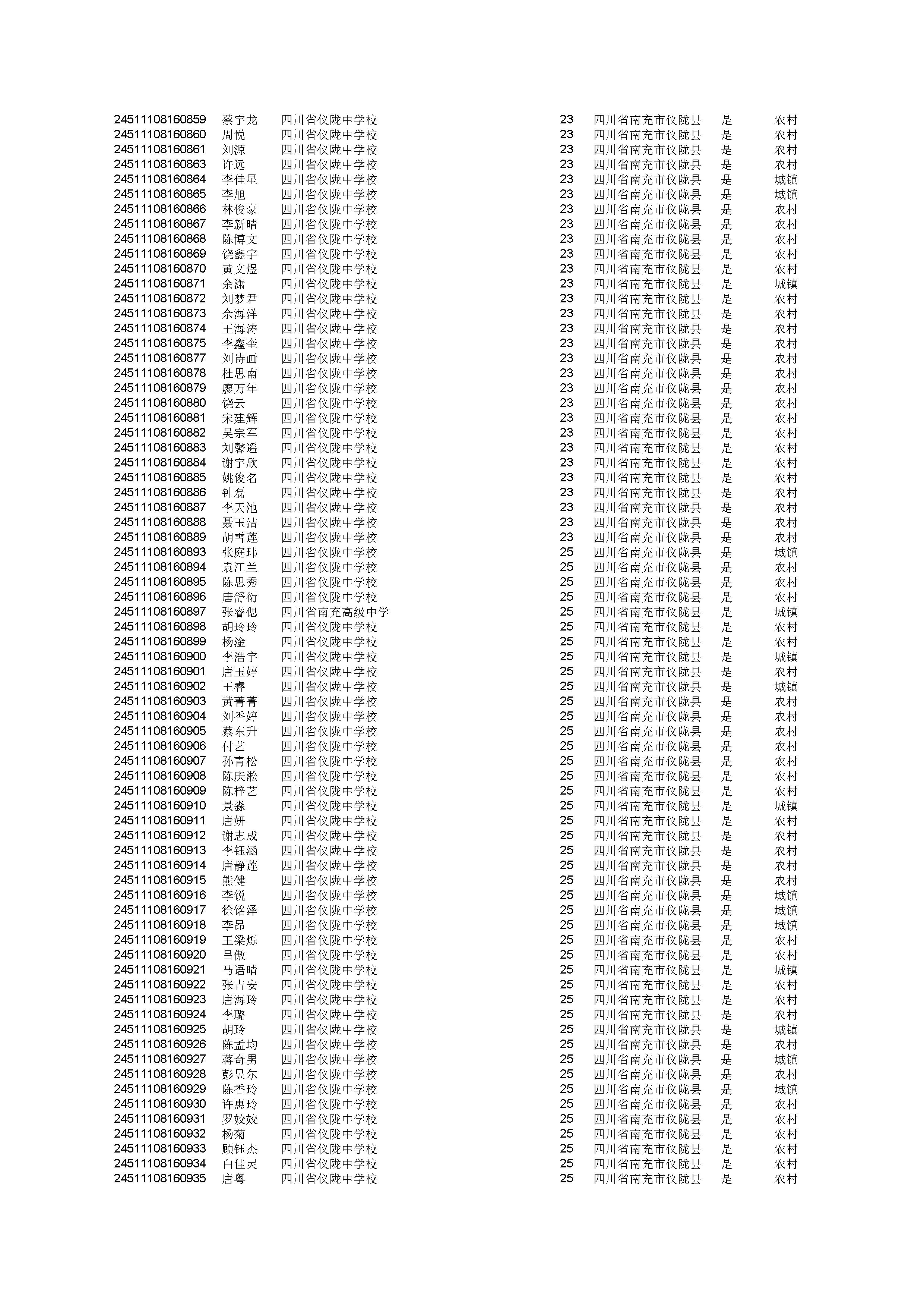 南充市2024年普通高校招生乡村振兴计划审核结果公示