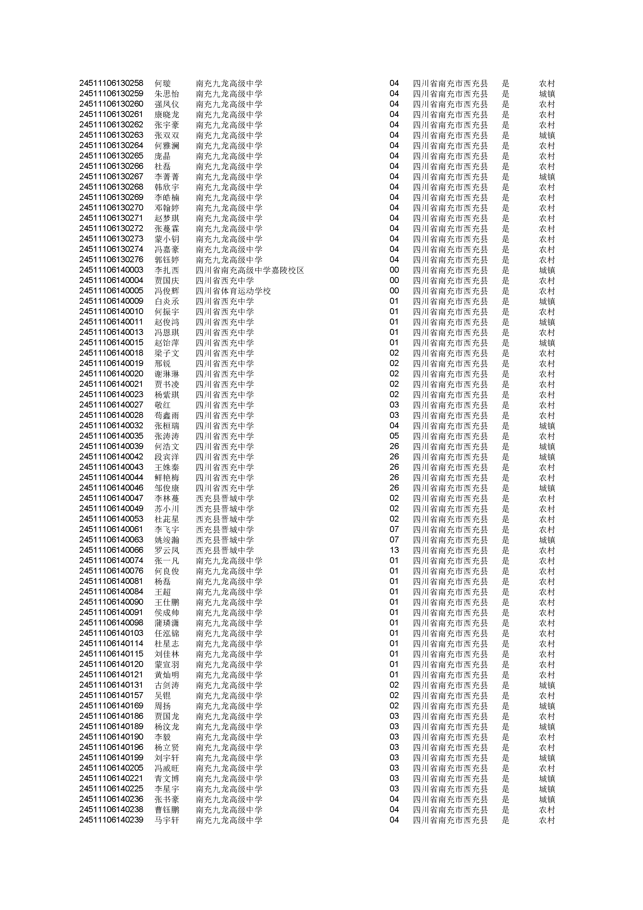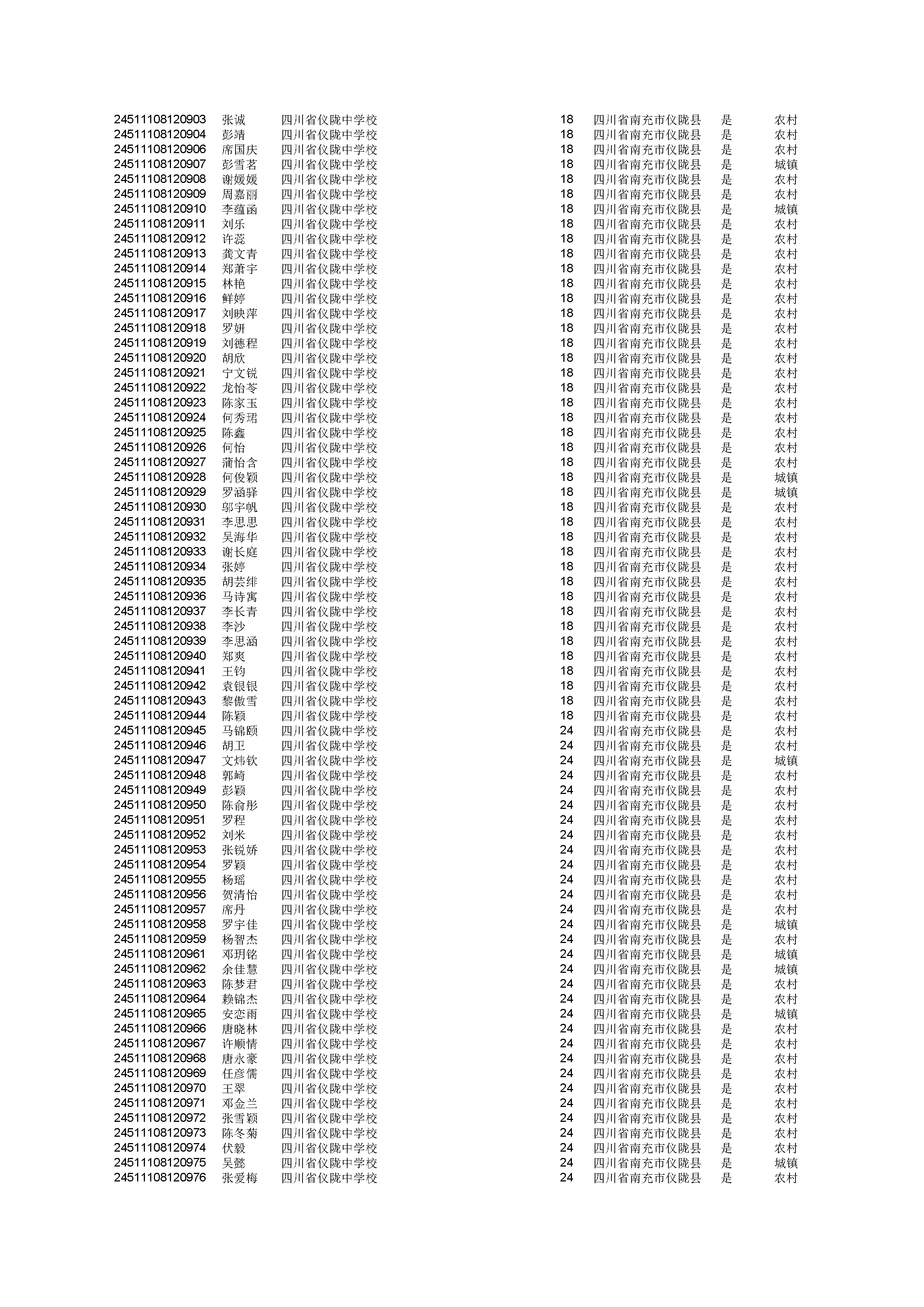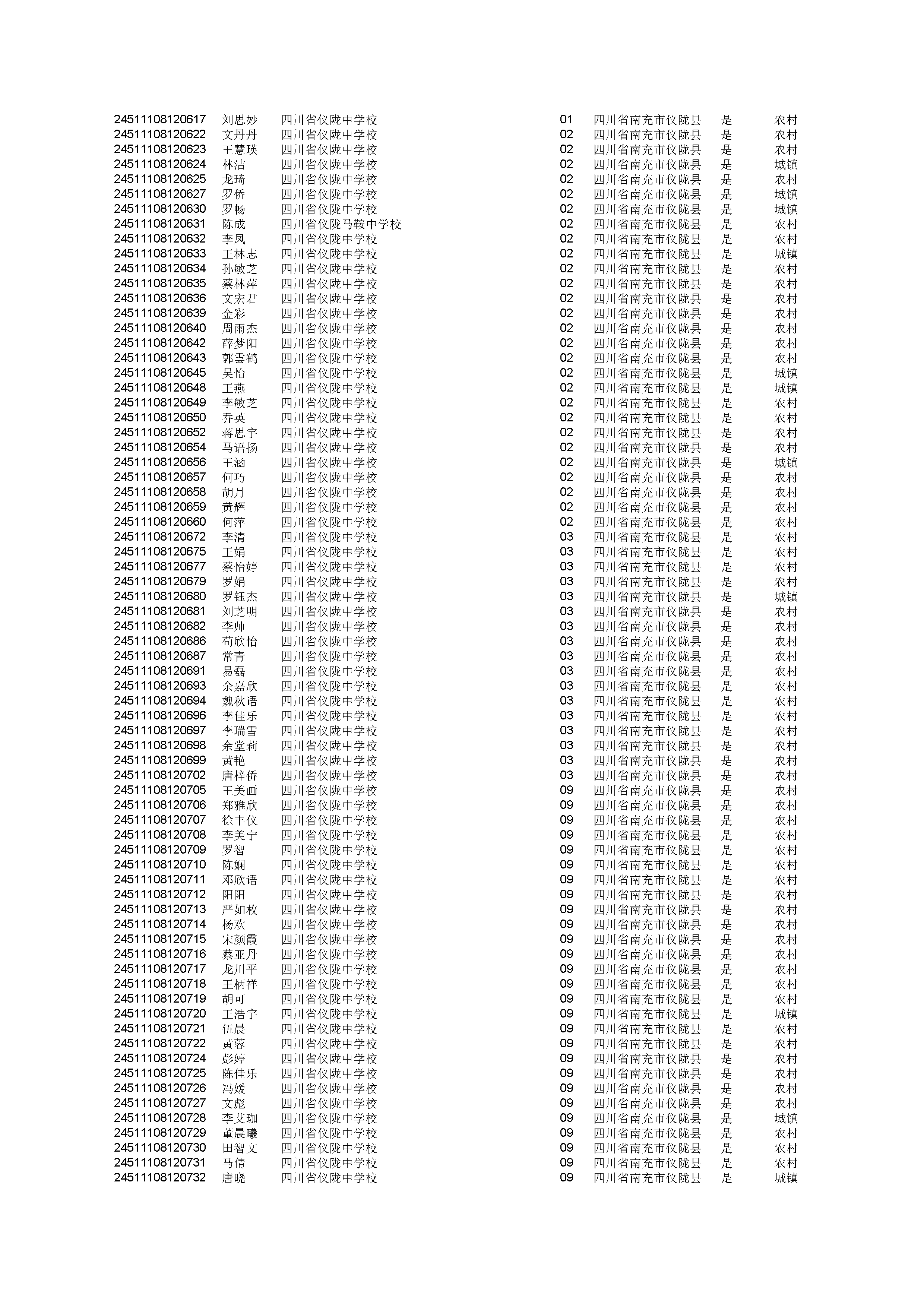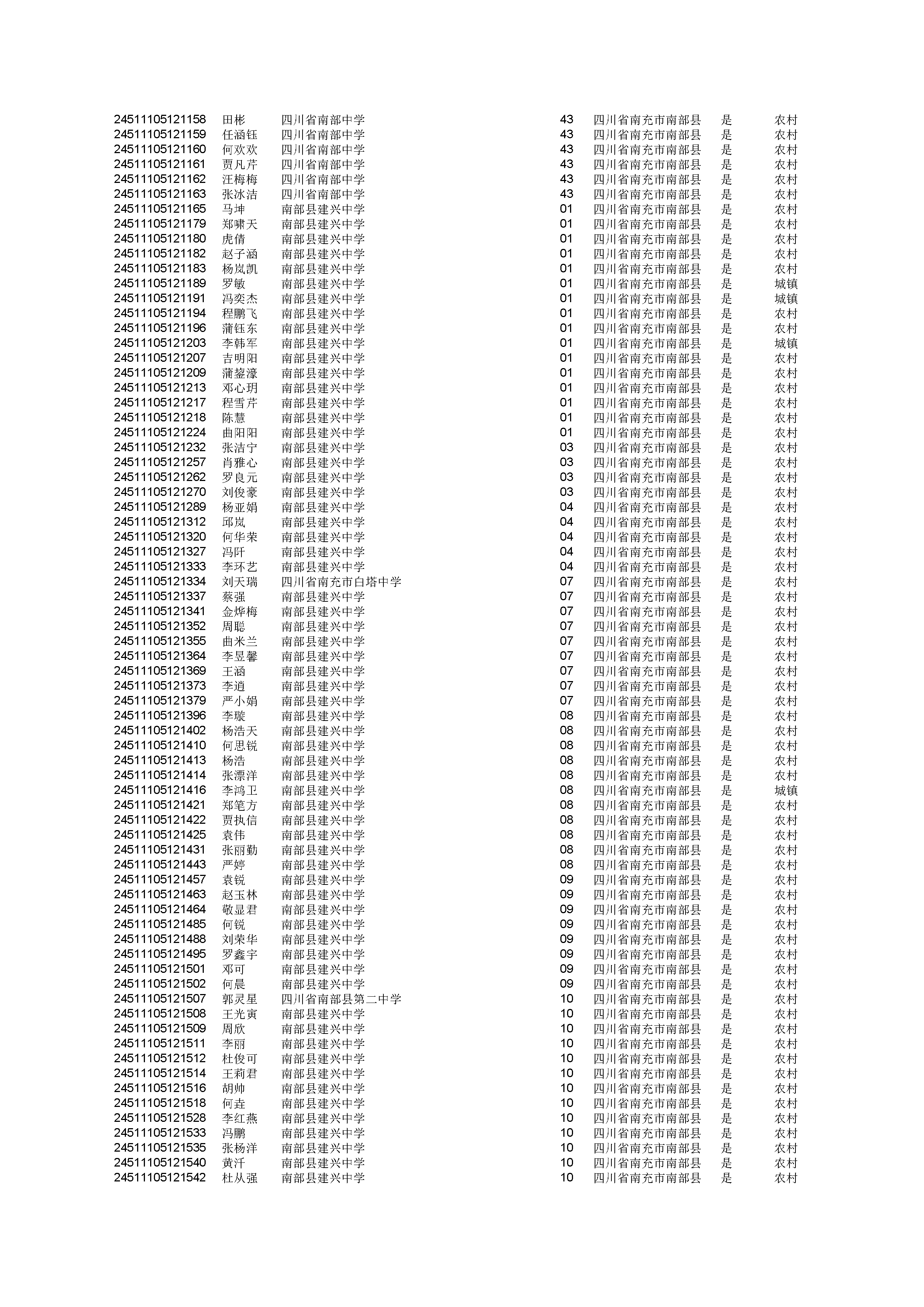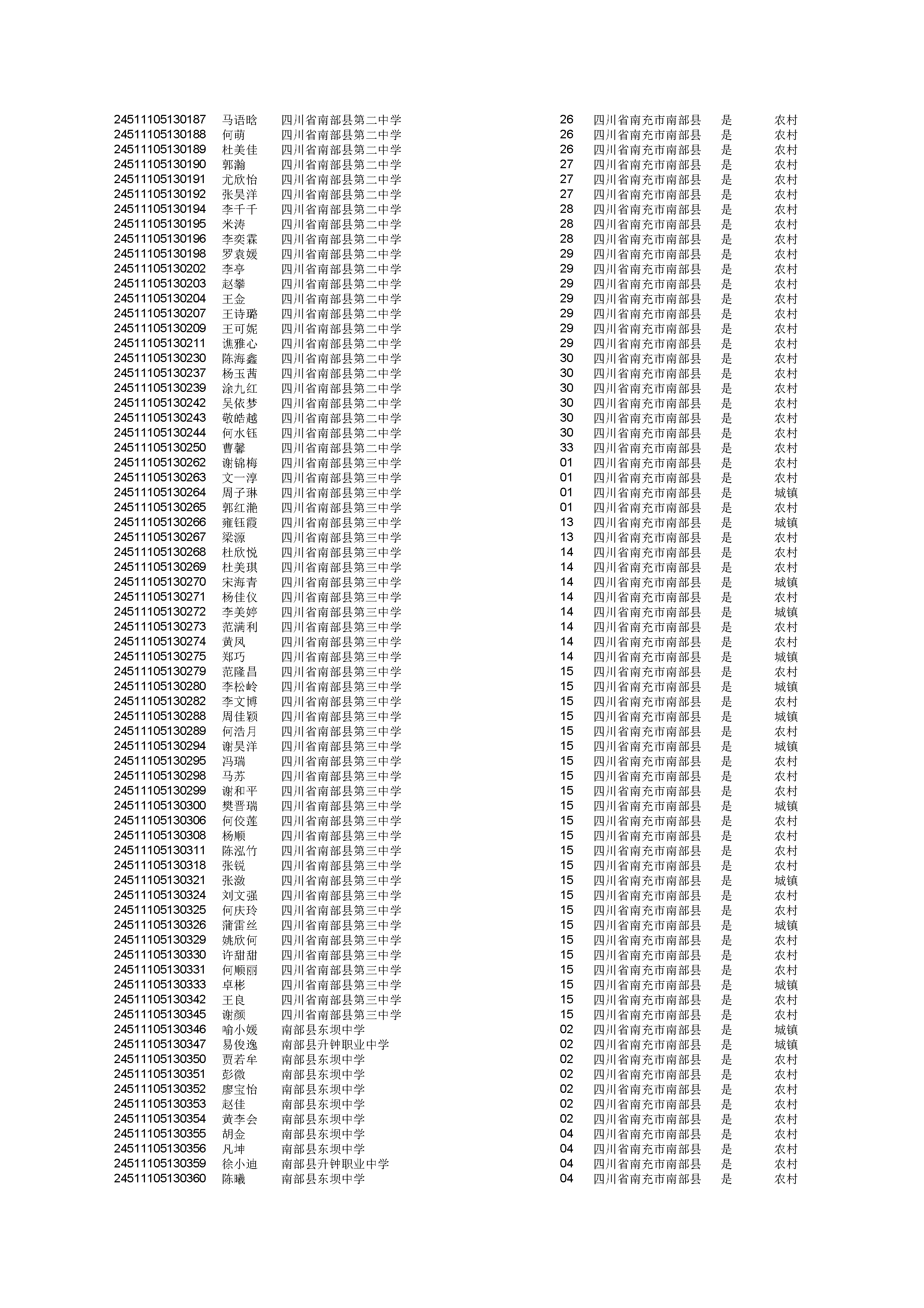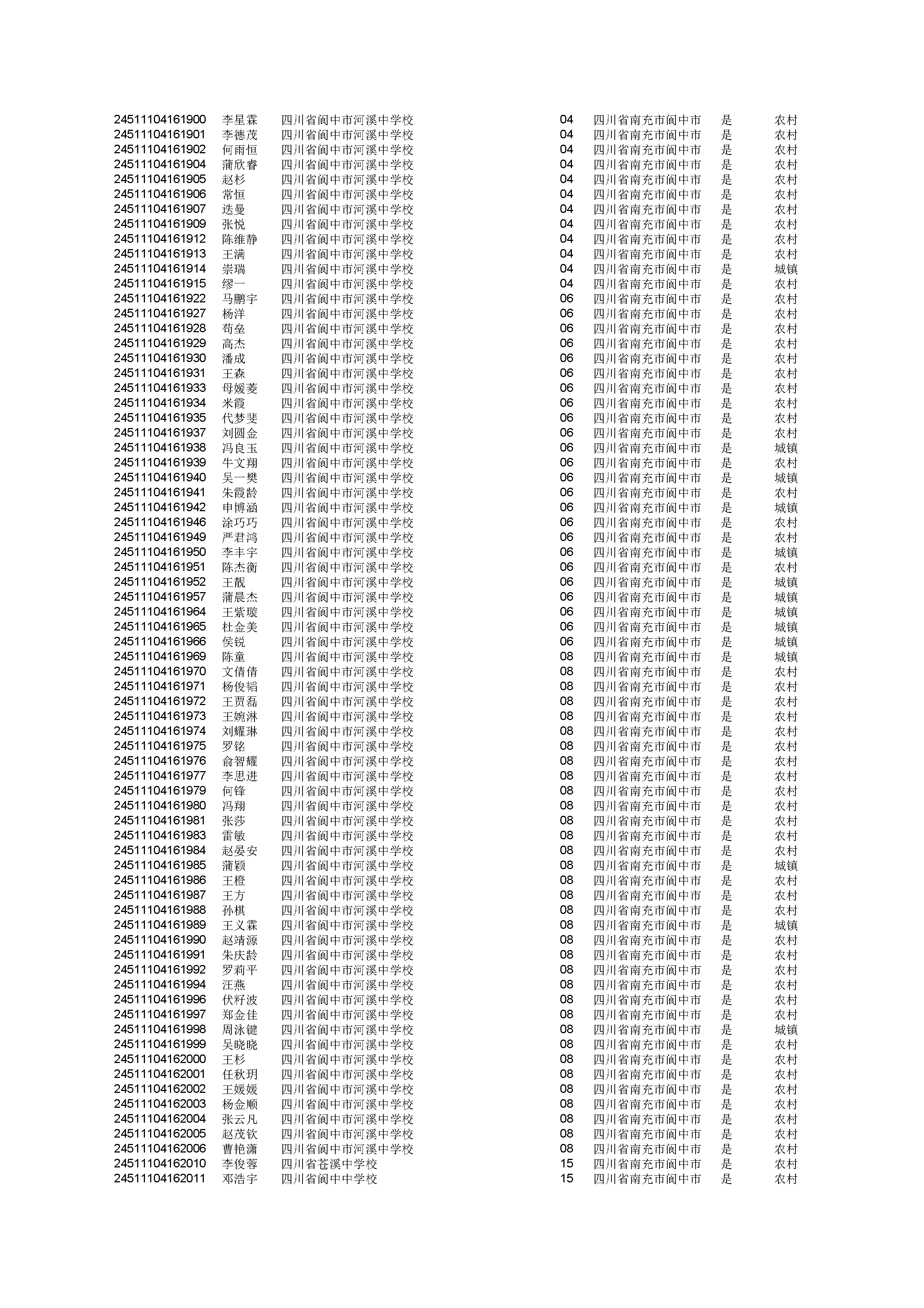 南充市2024年普通高校招生乡村振兴计划审核结果公示
