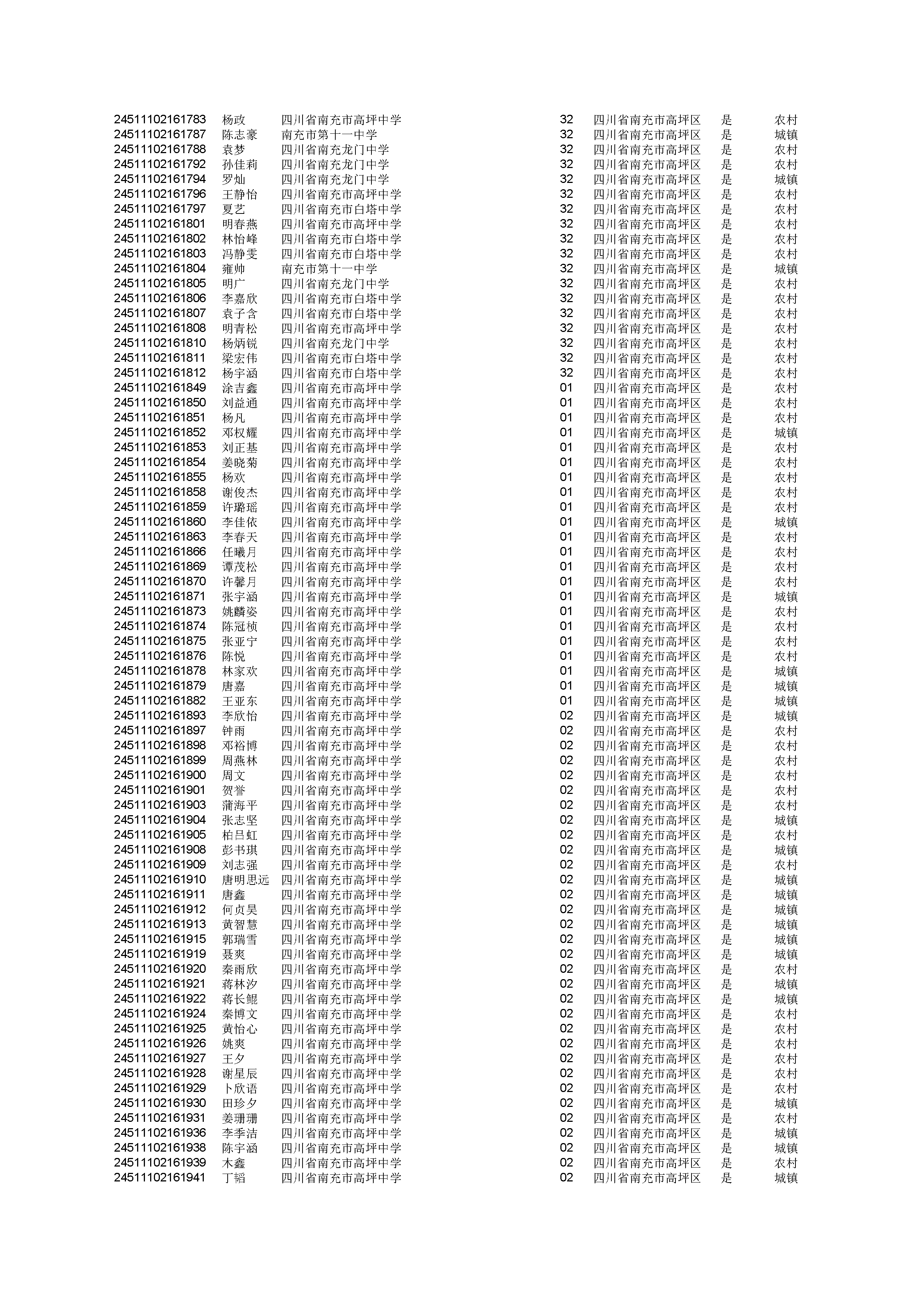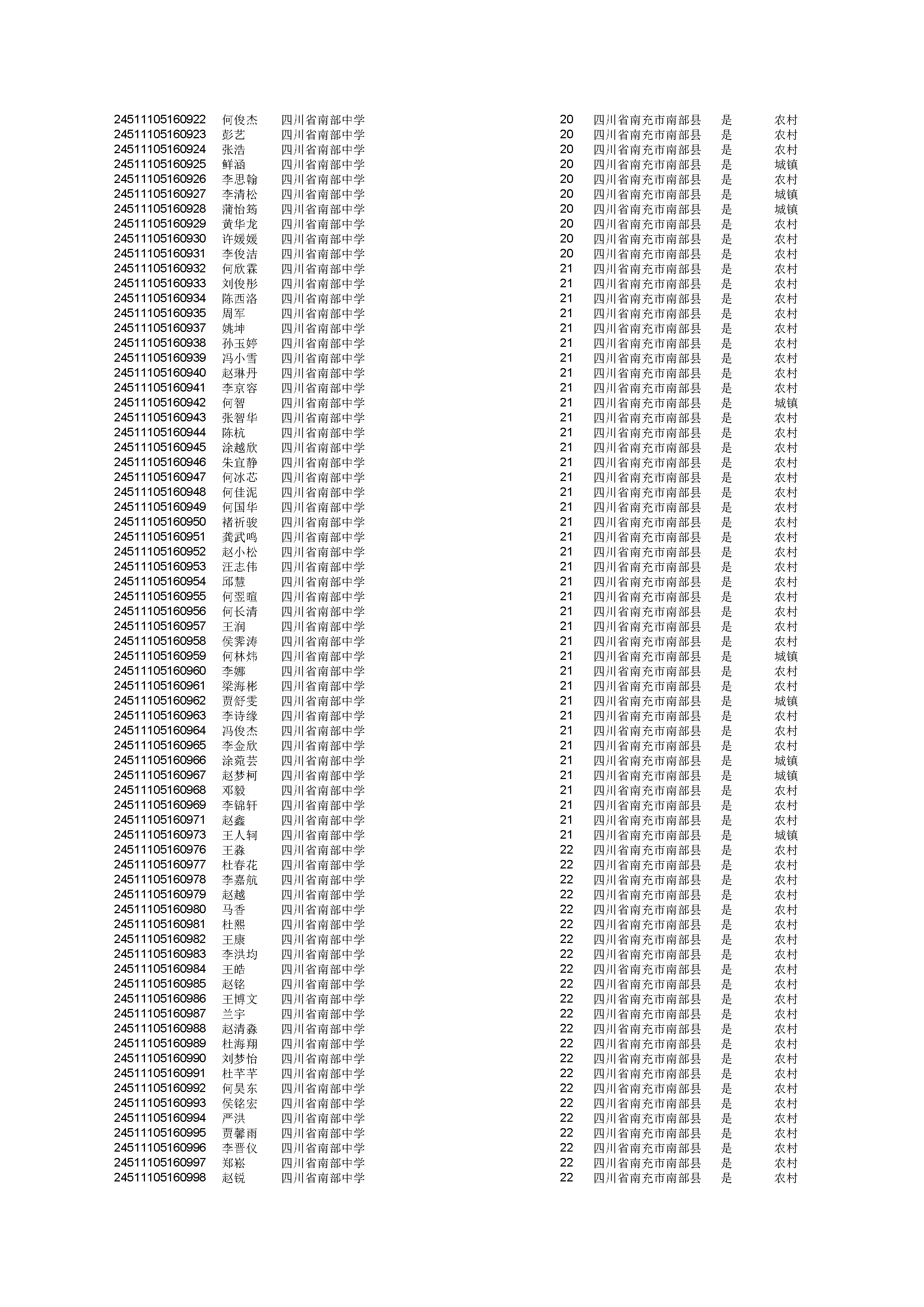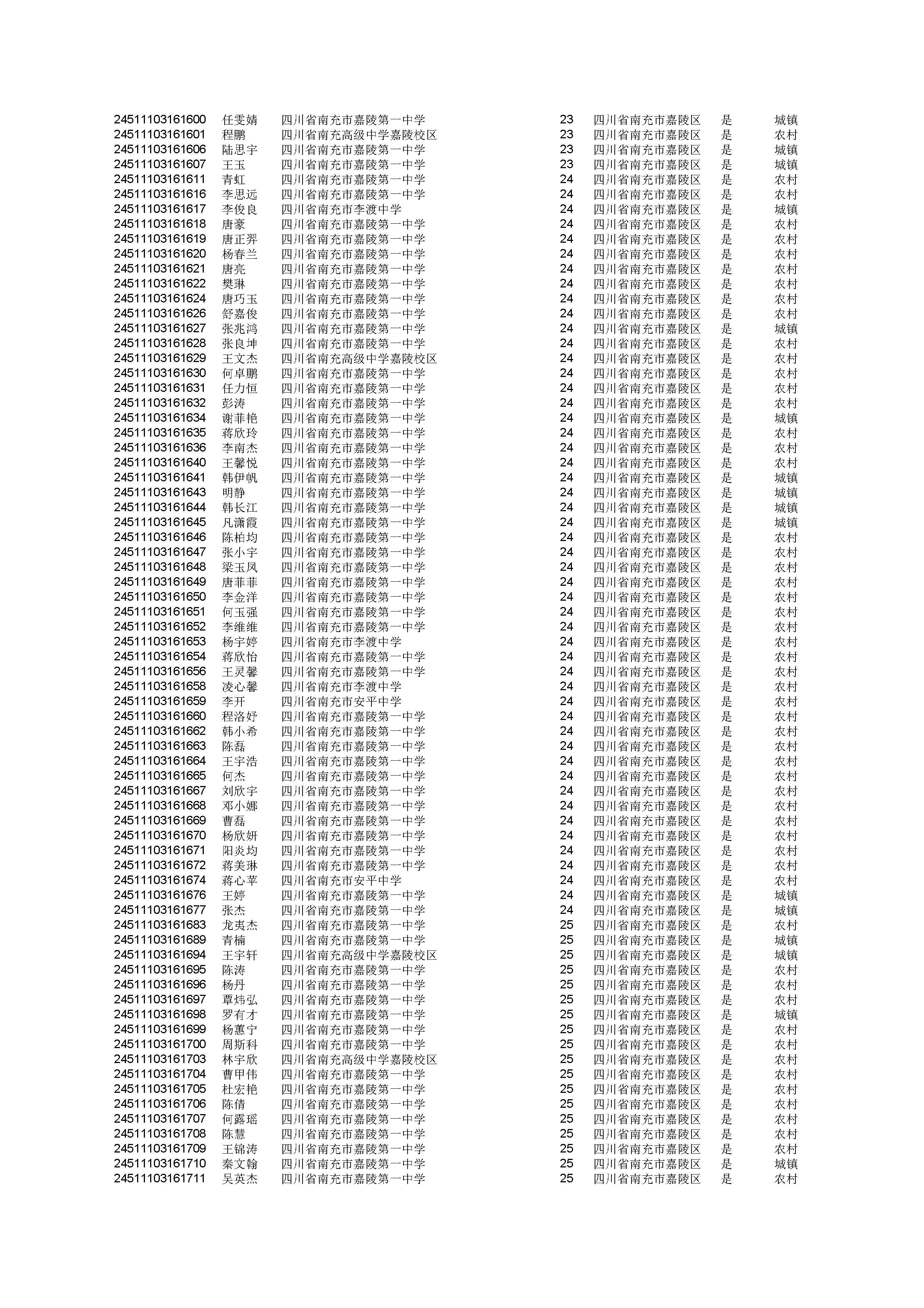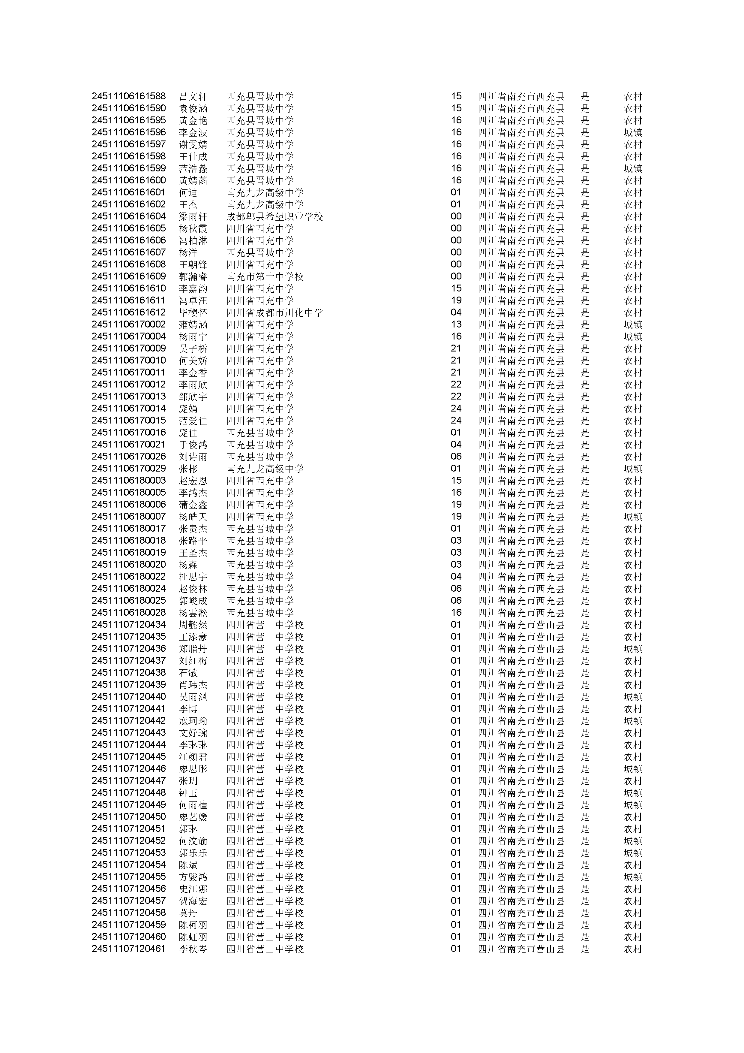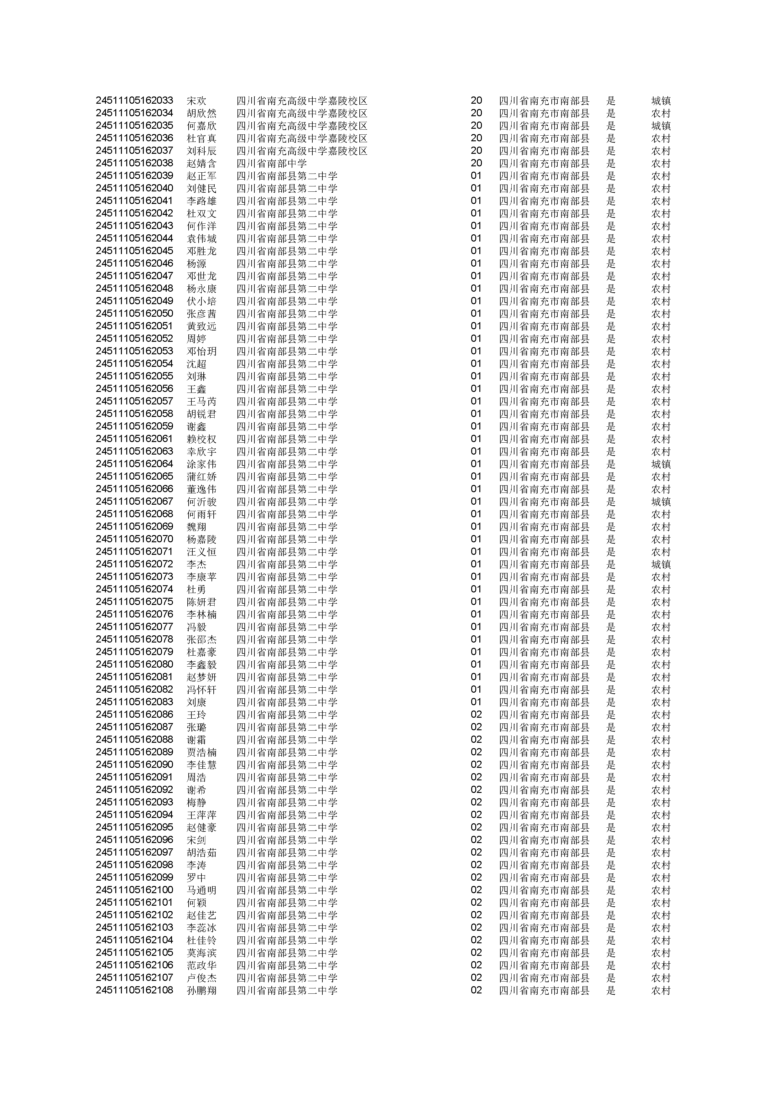 南充市2024年普通高校招生乡村振兴计划审核结果公示