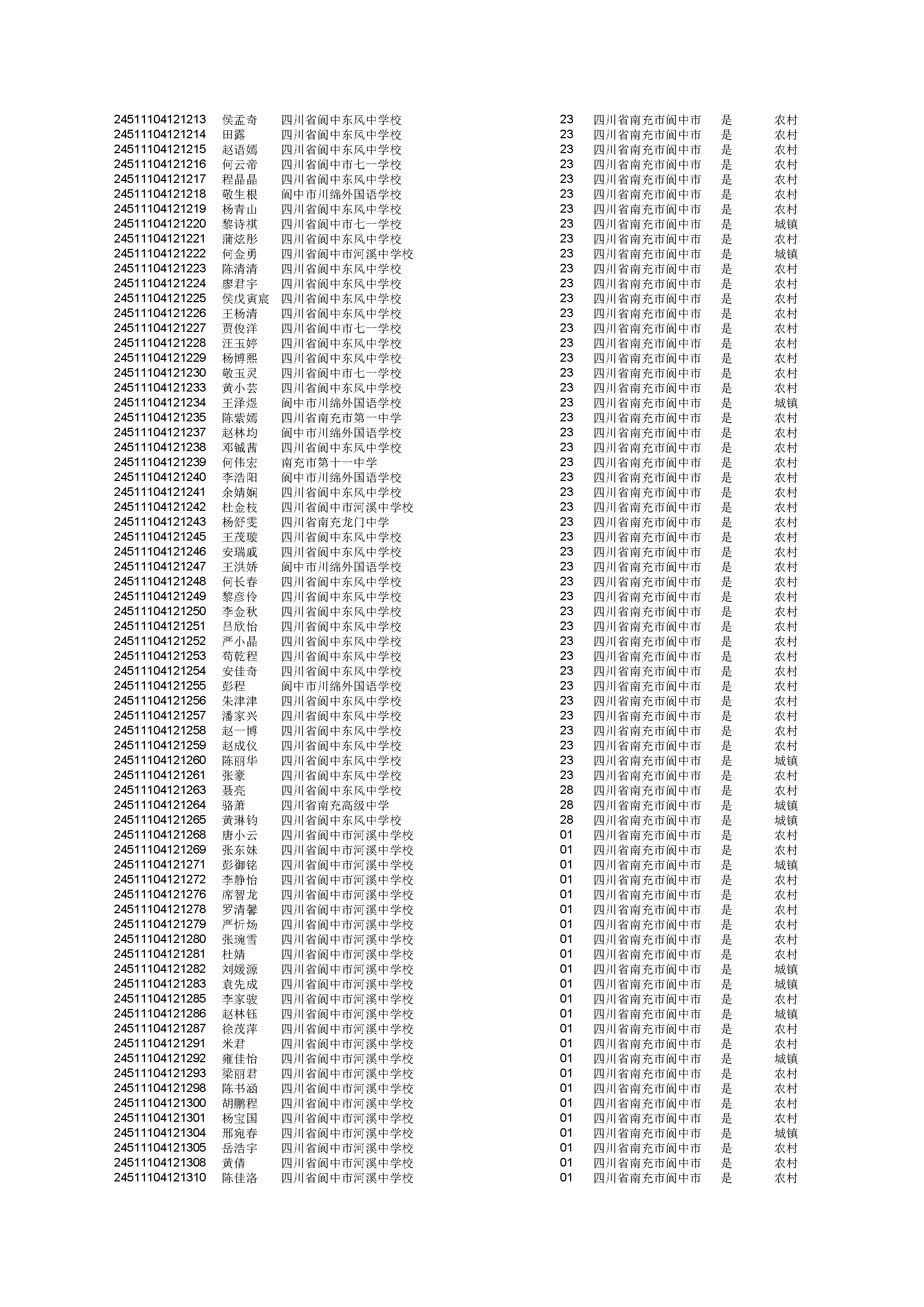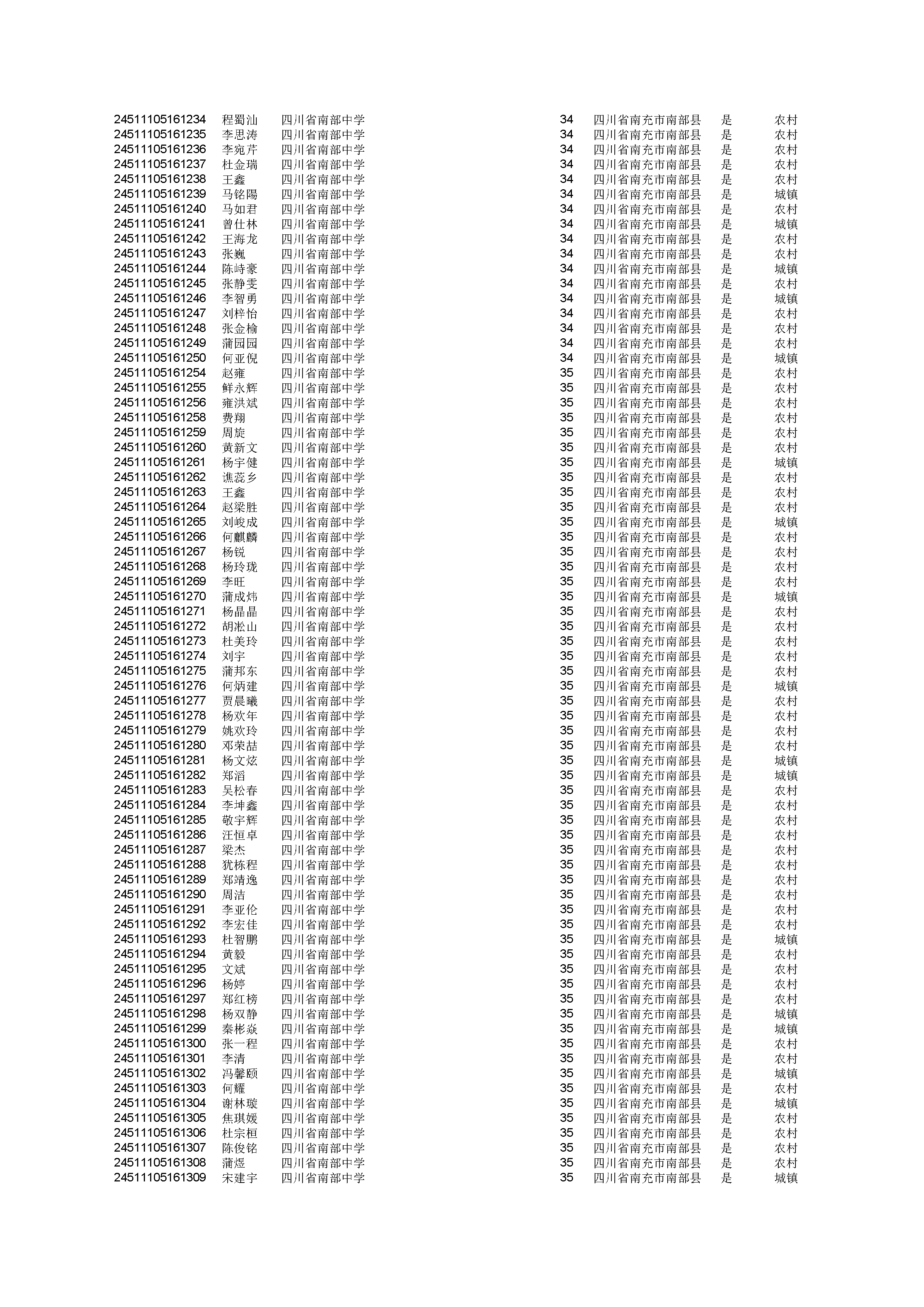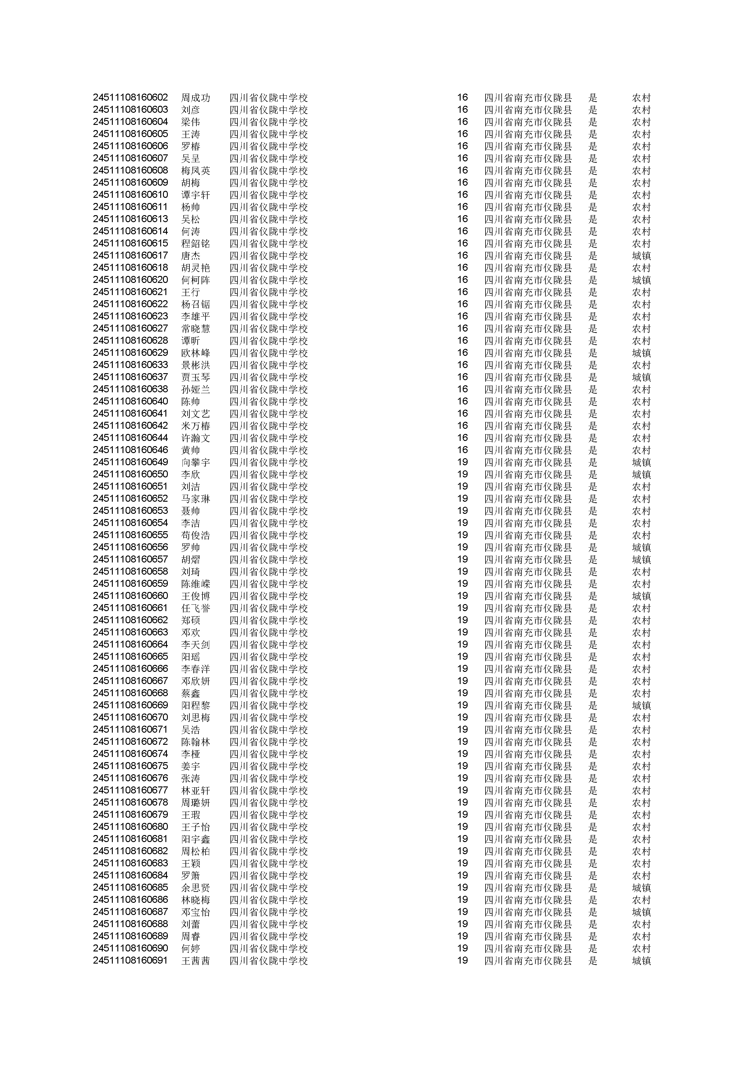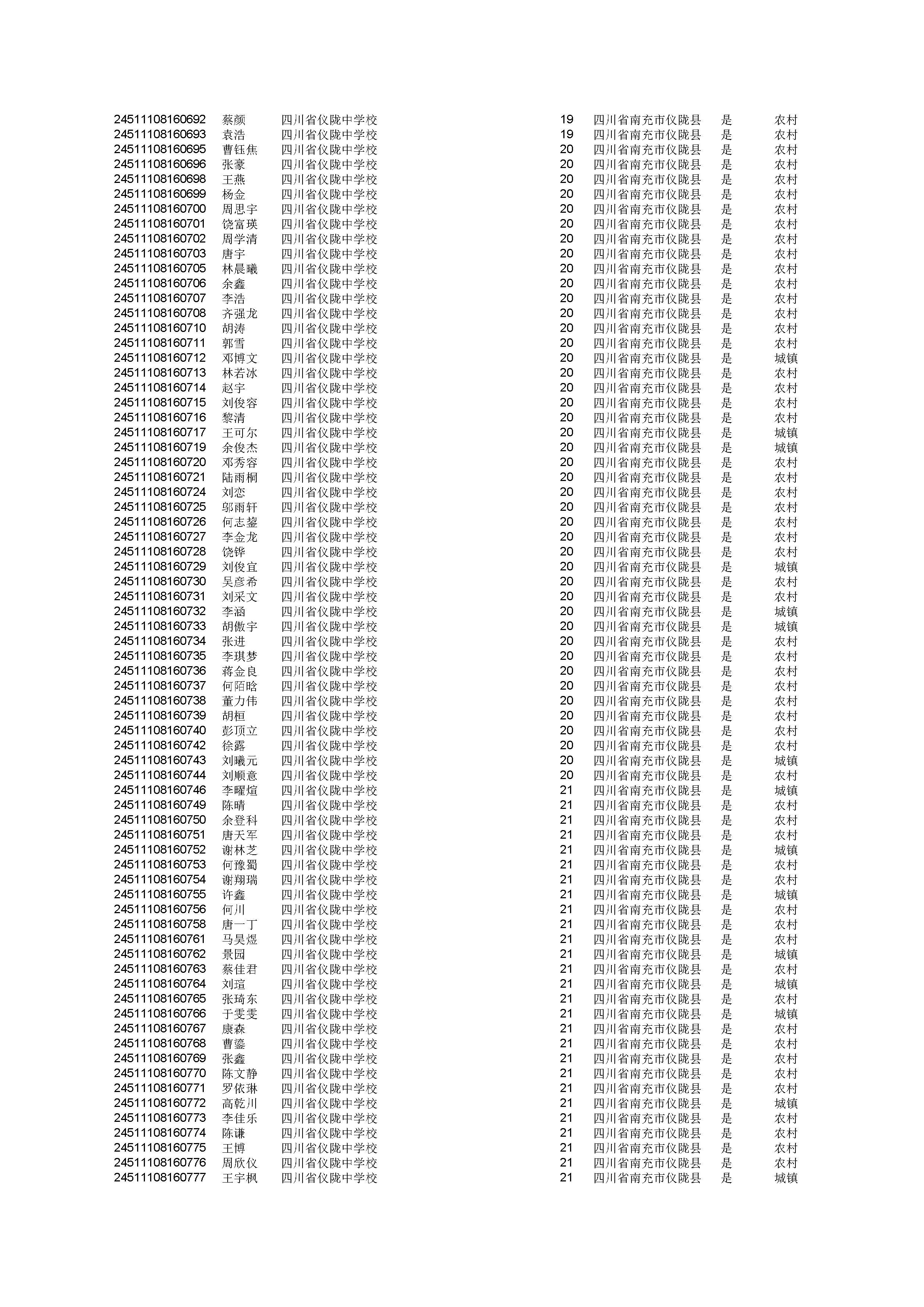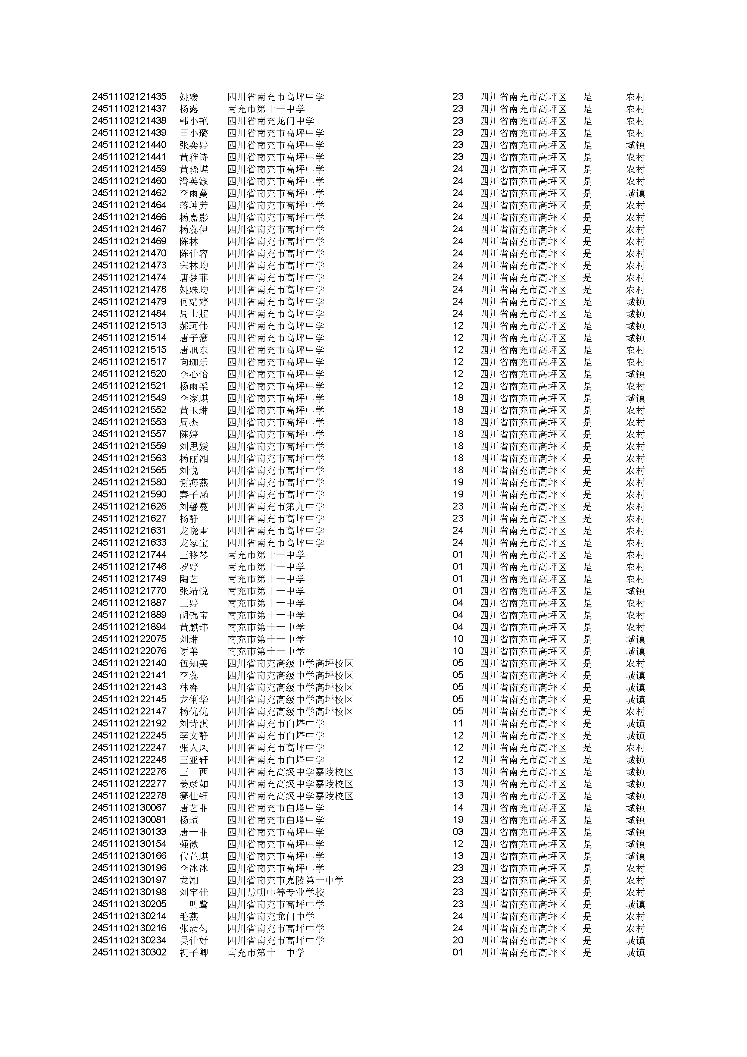 南充市2024年普通高校招生乡村振兴计划审核结果公示