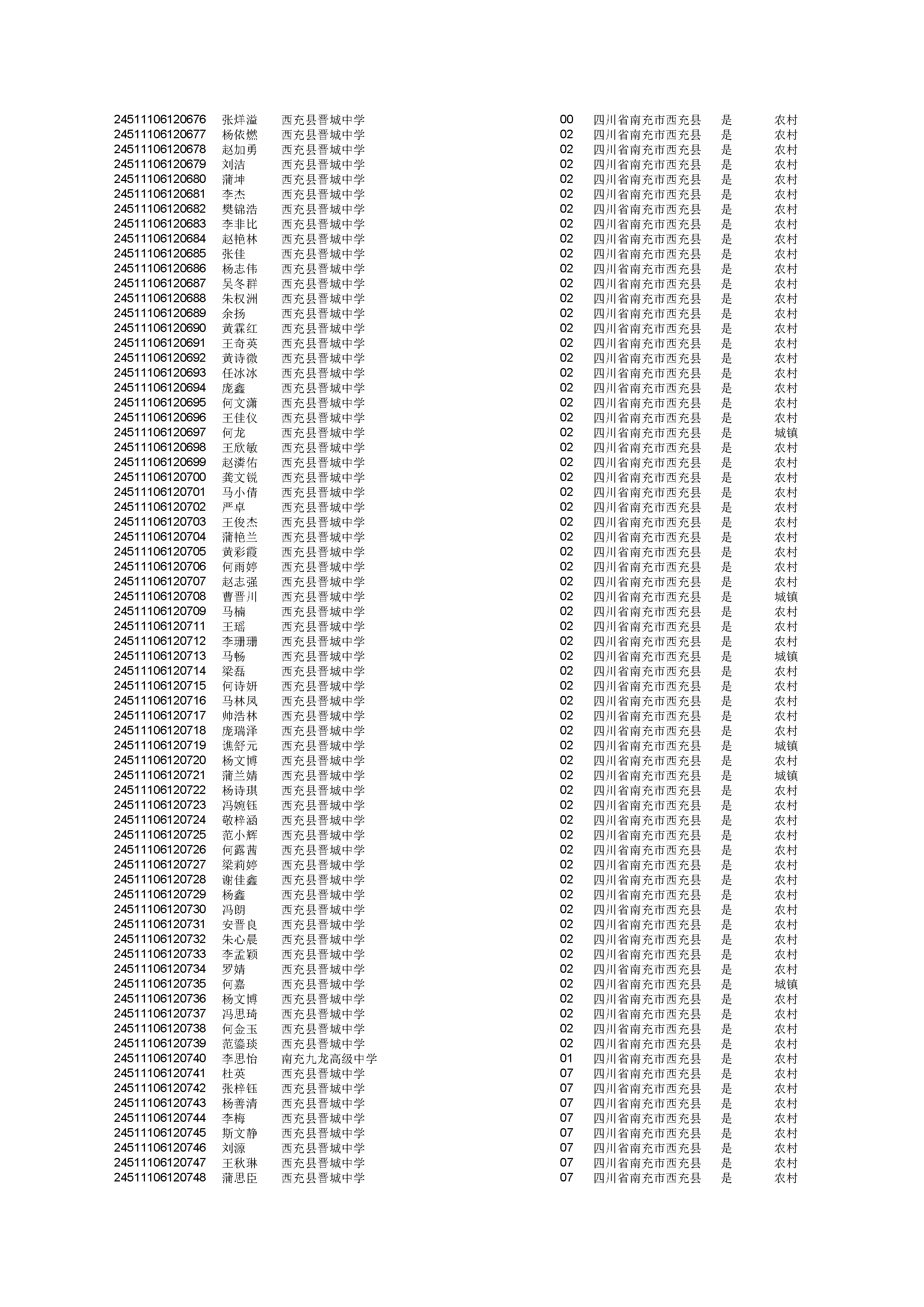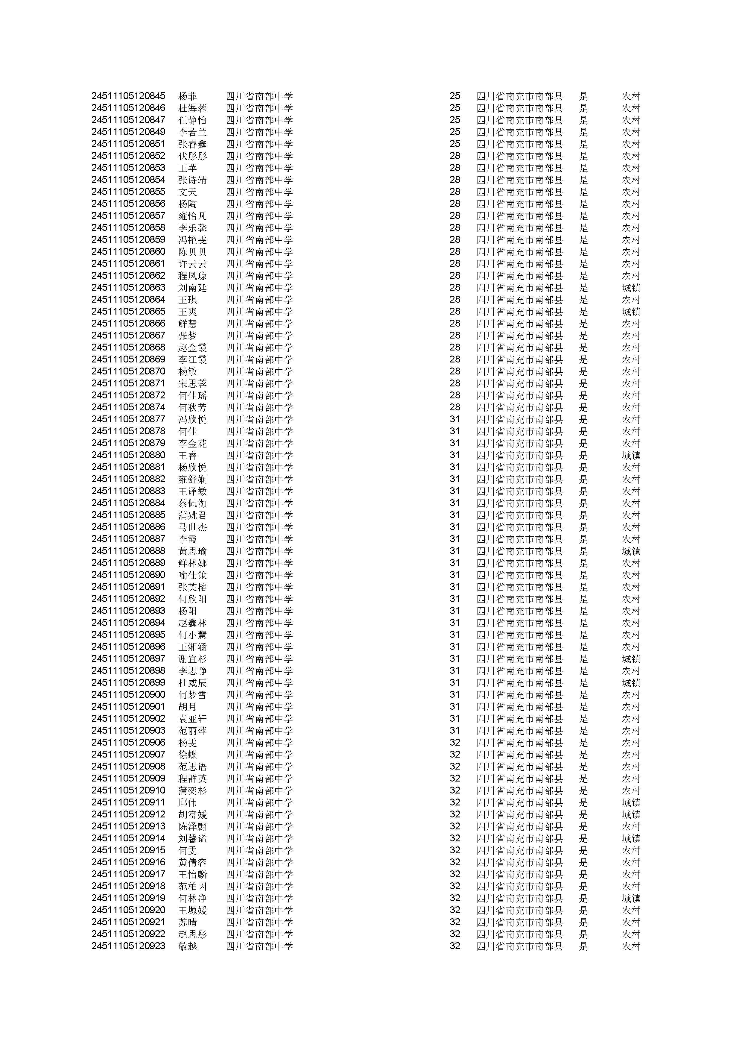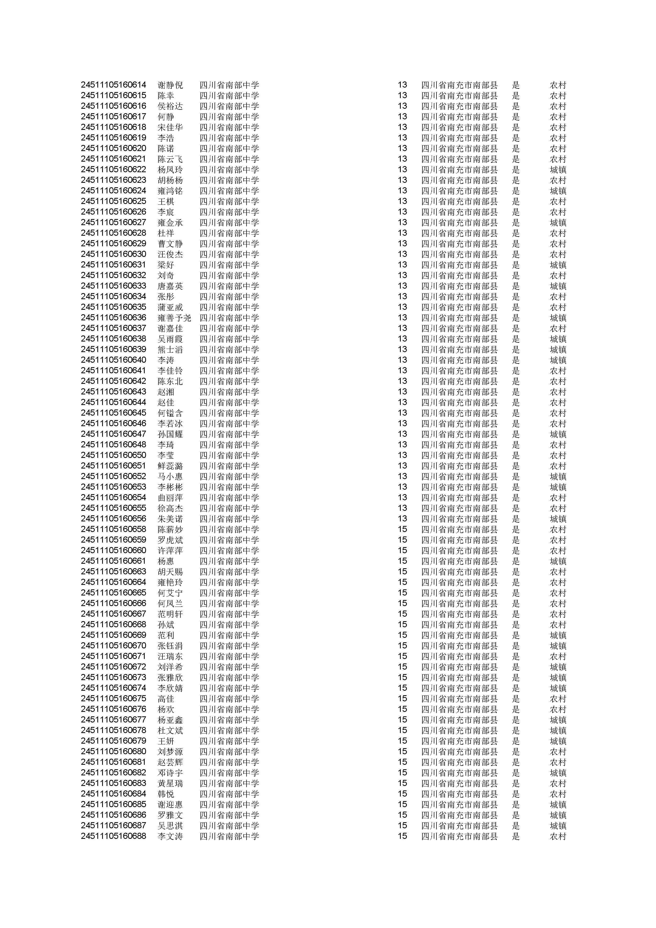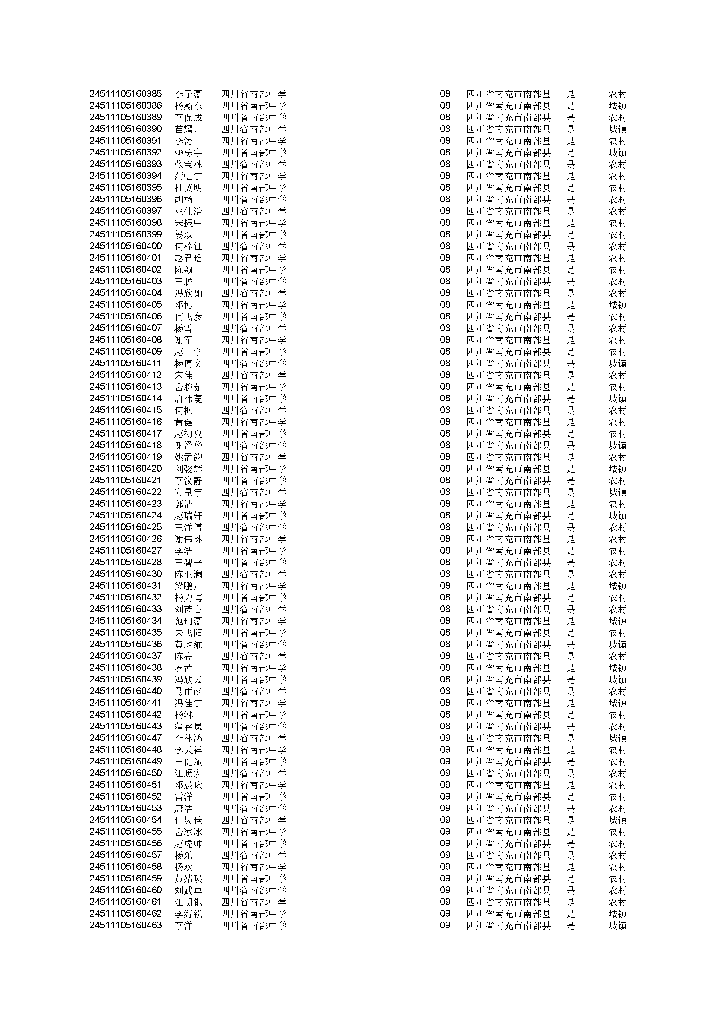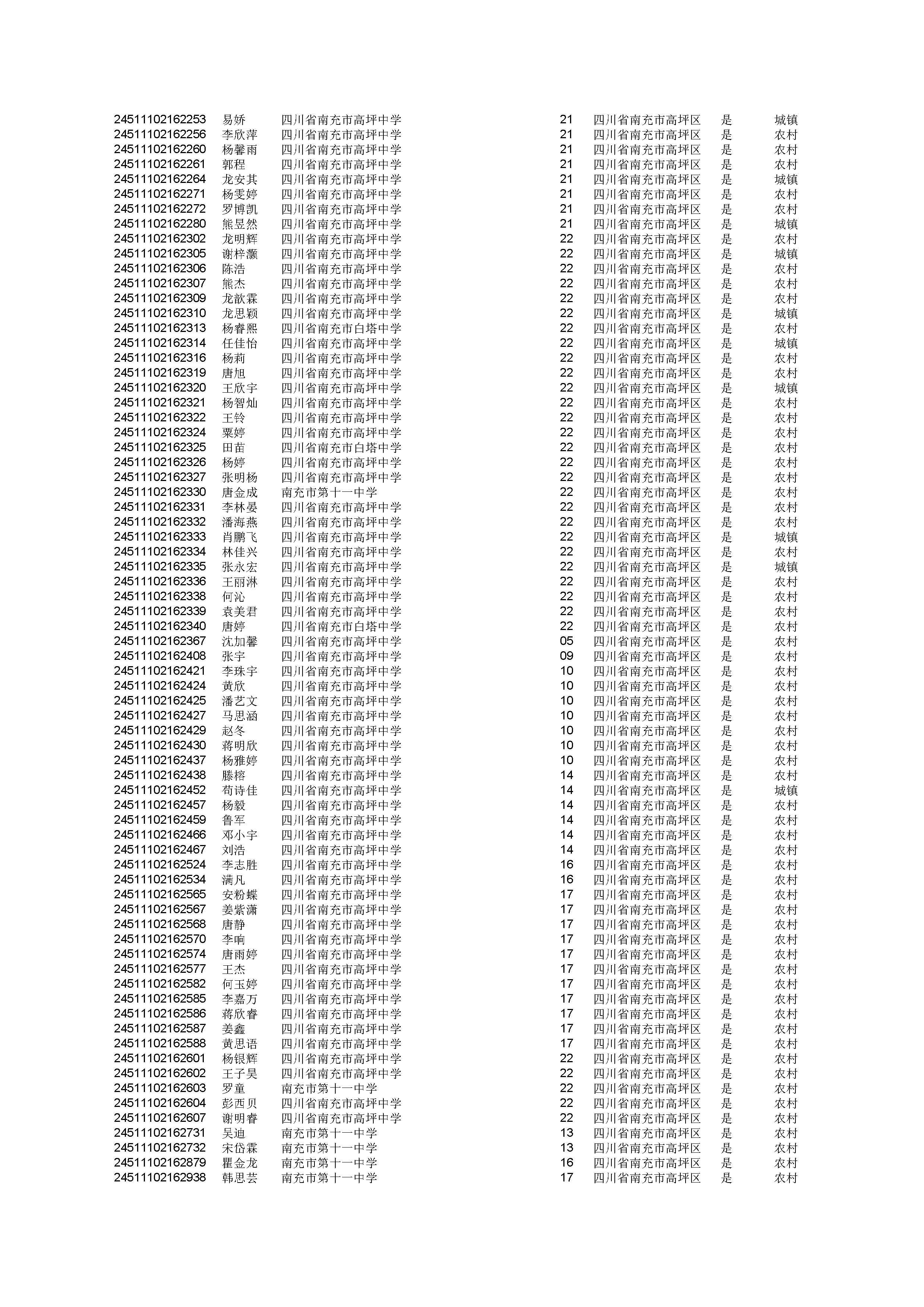 南充市2024年普通高校招生乡村振兴计划审核结果公示