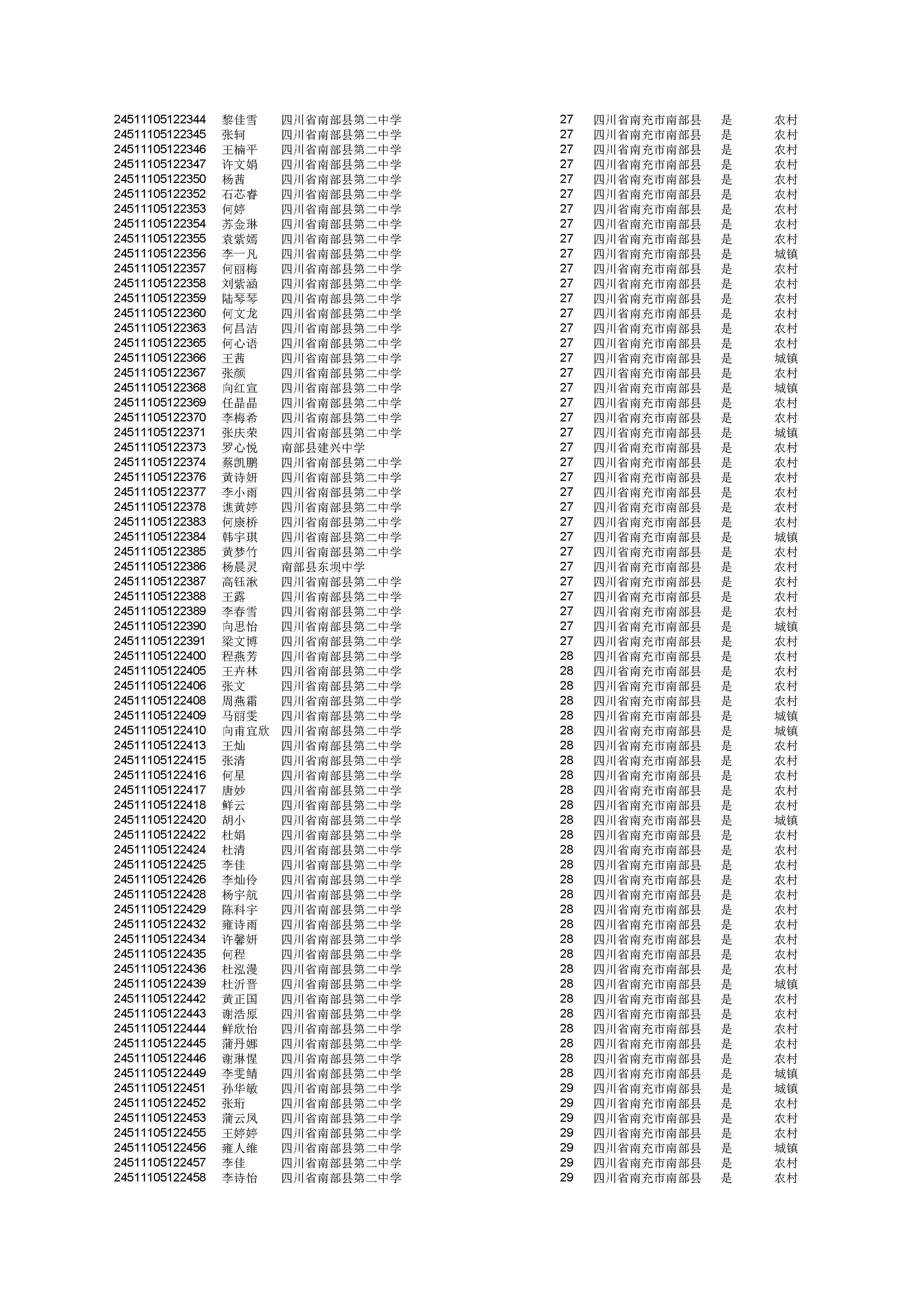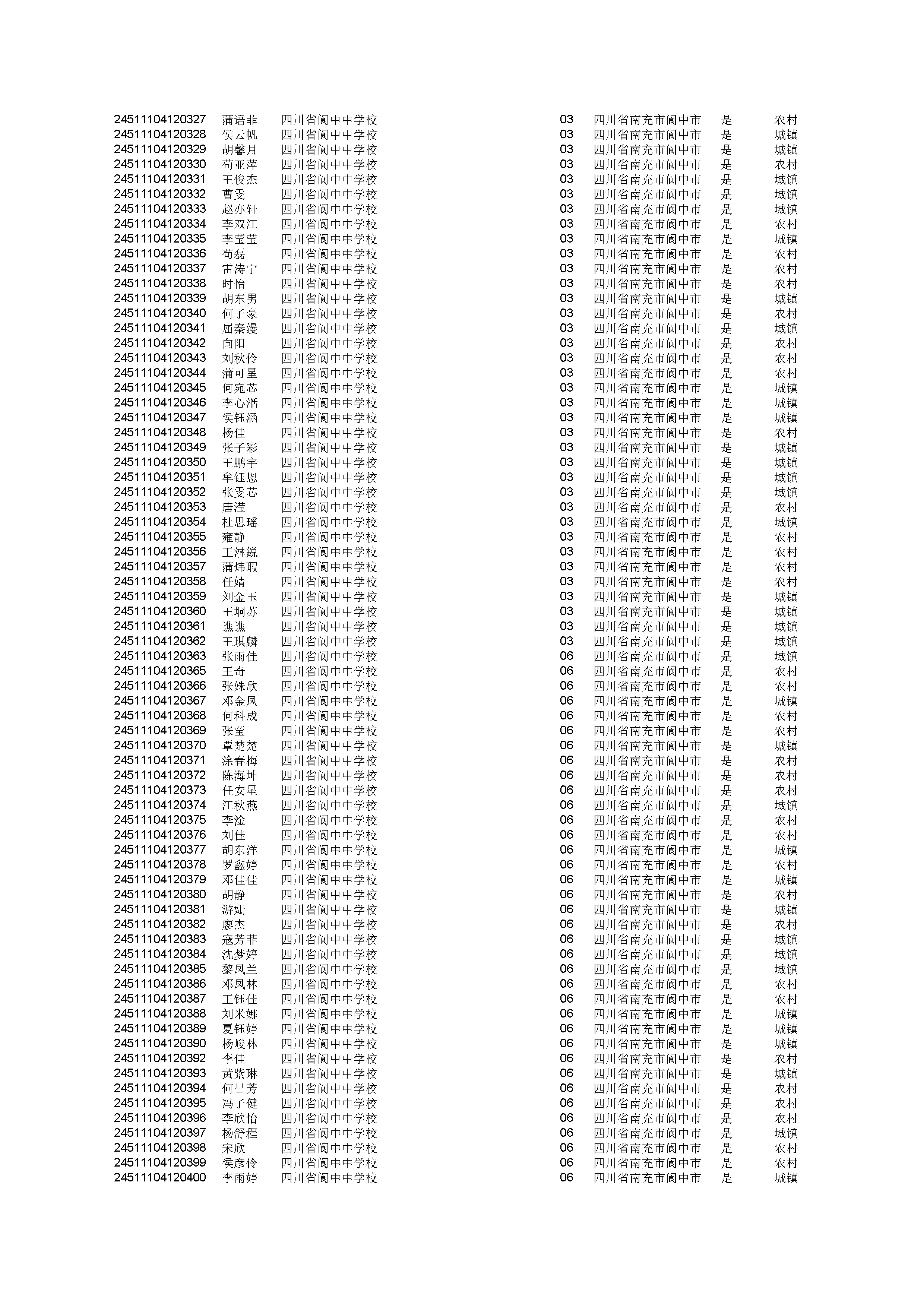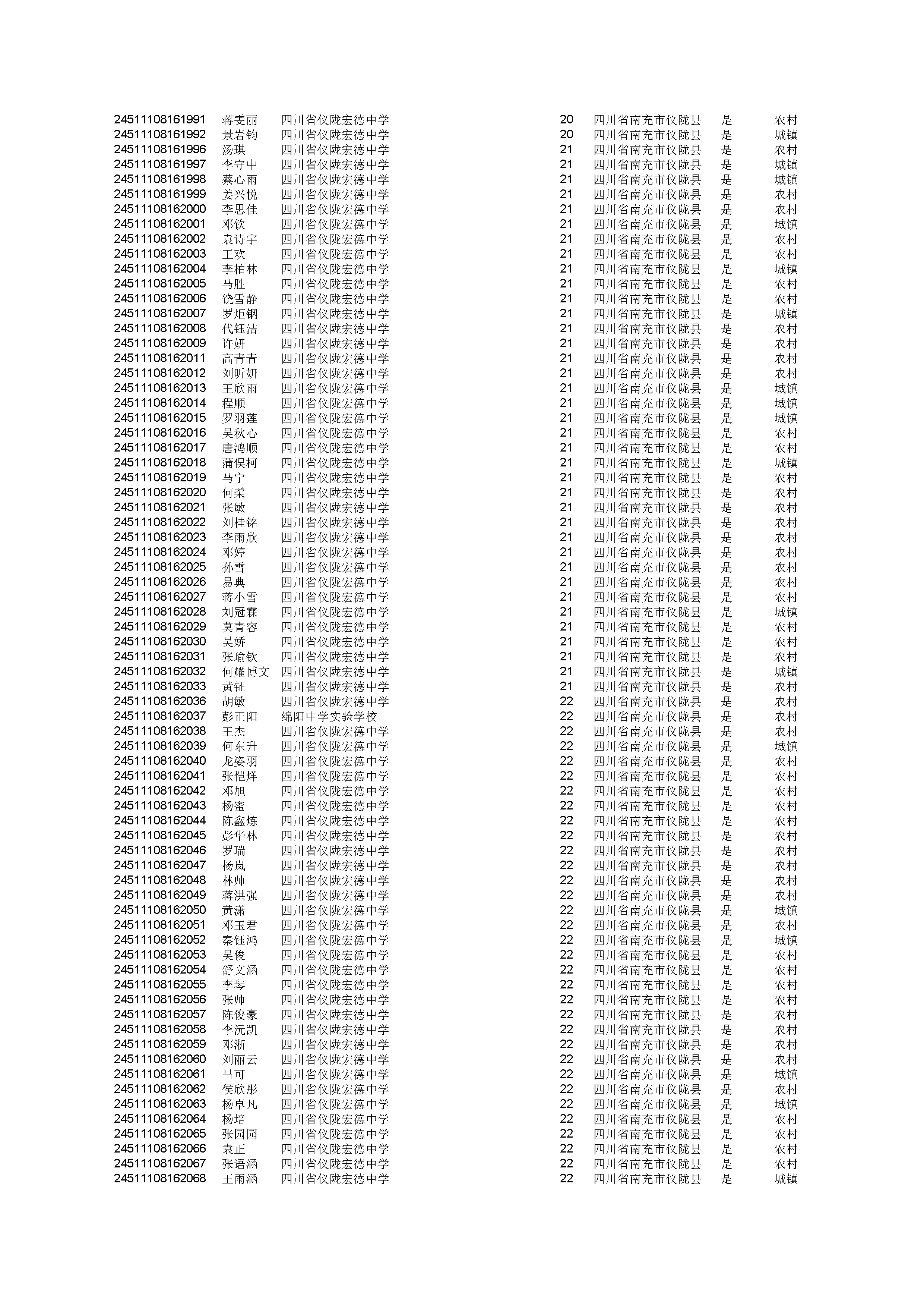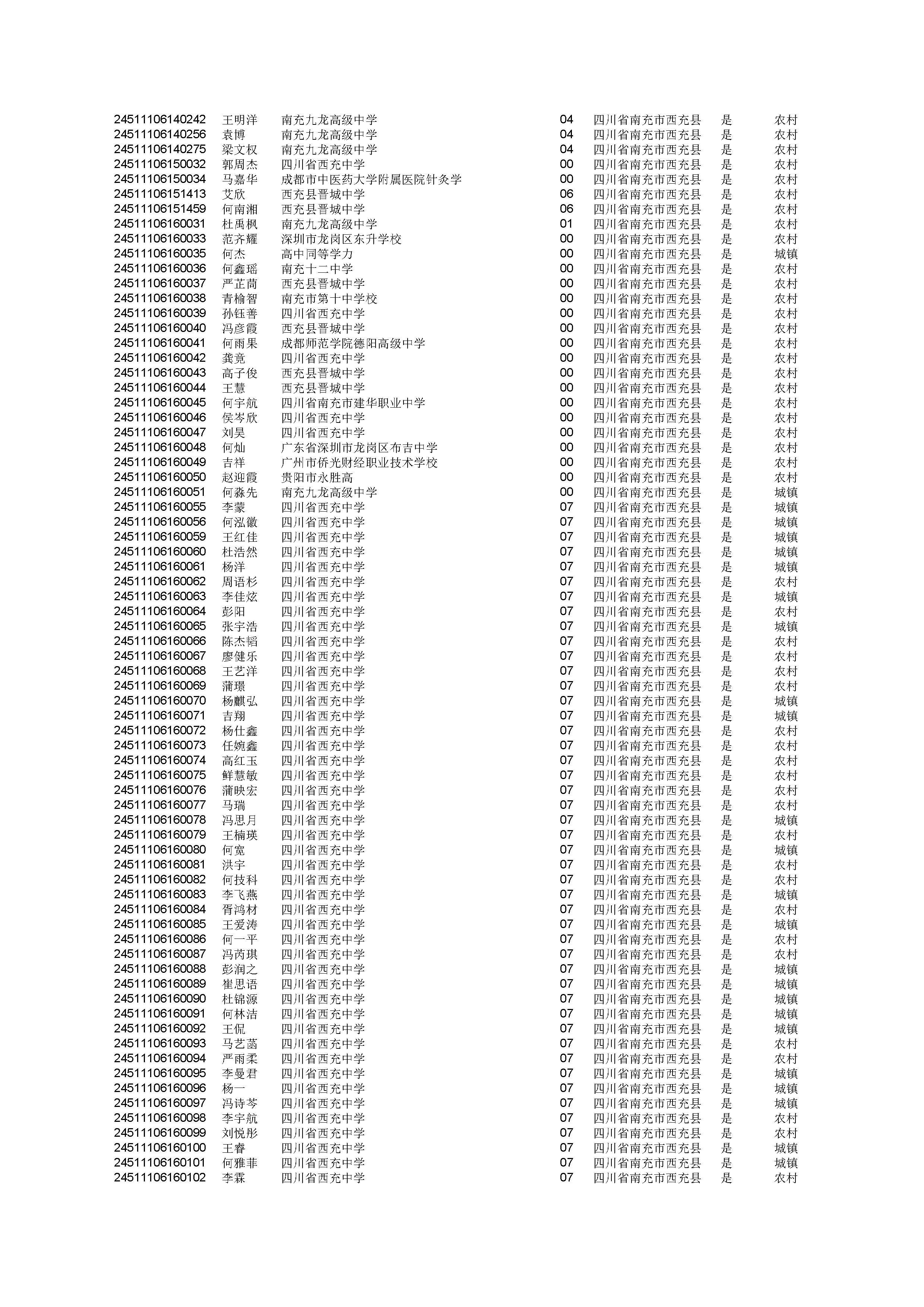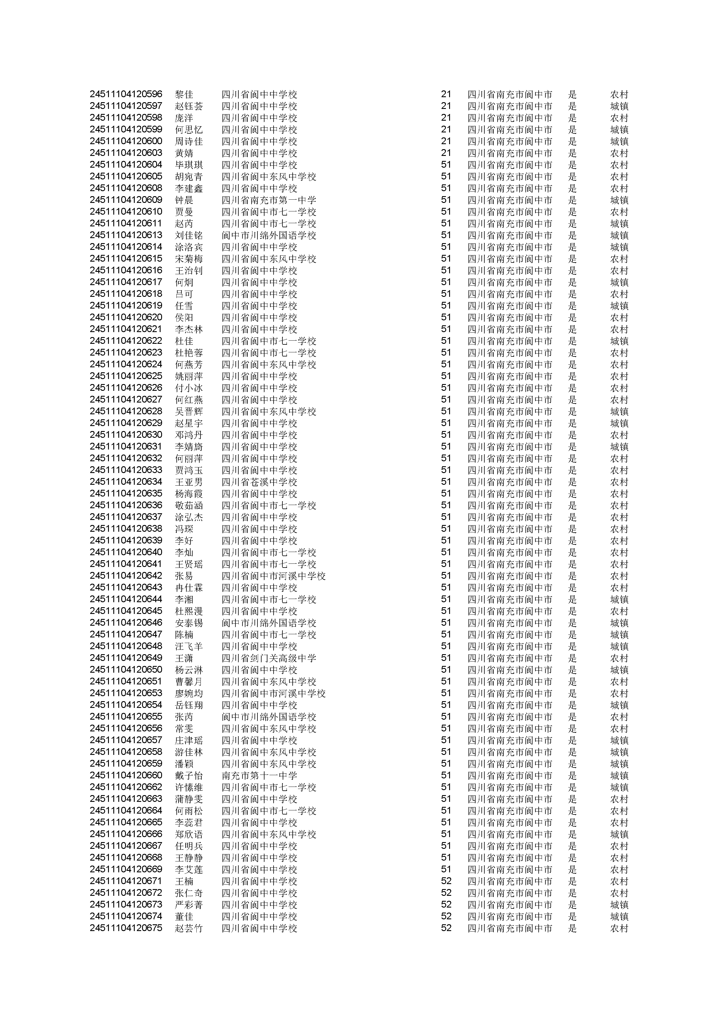 南充市2024年普通高校招生乡村振兴计划审核结果公示