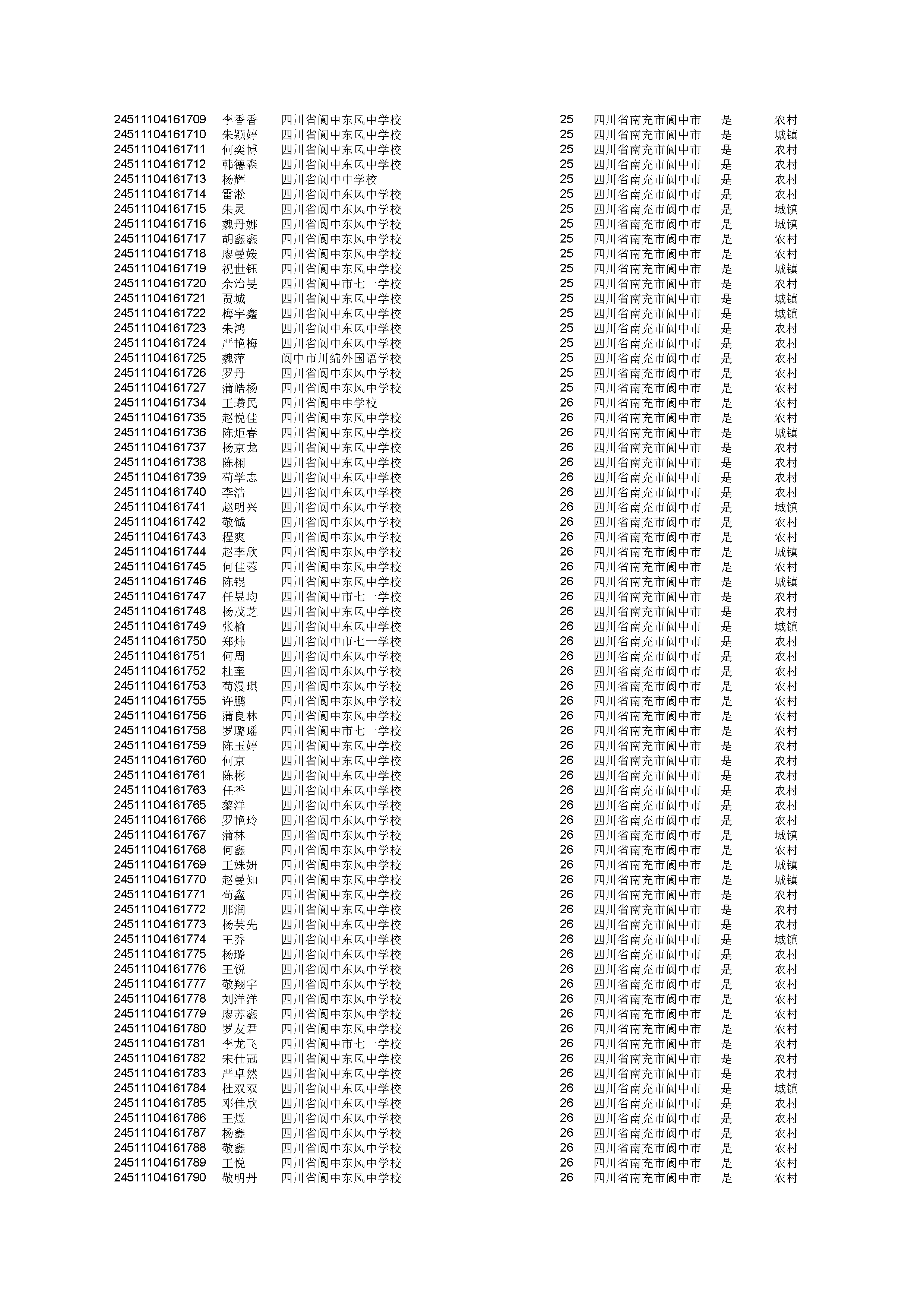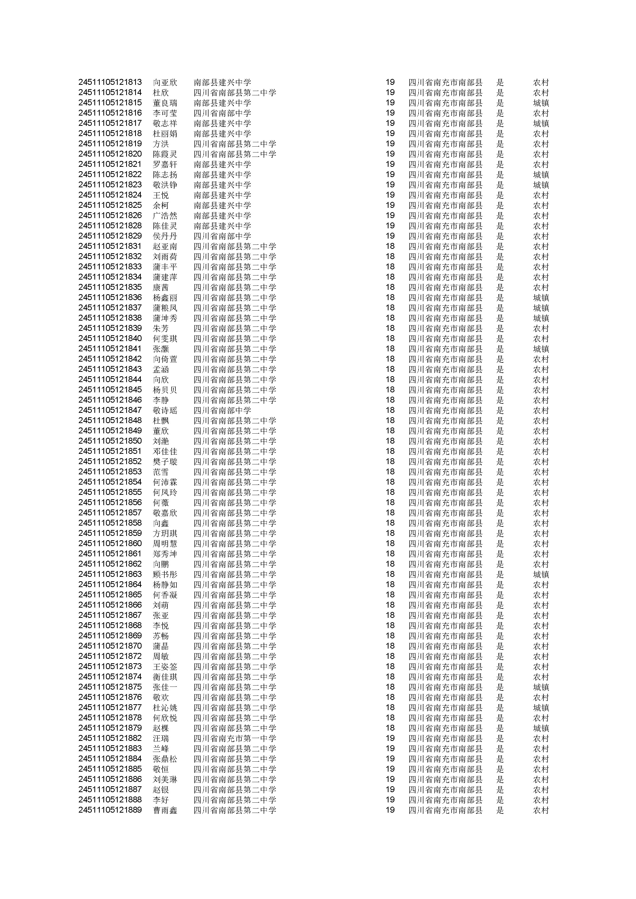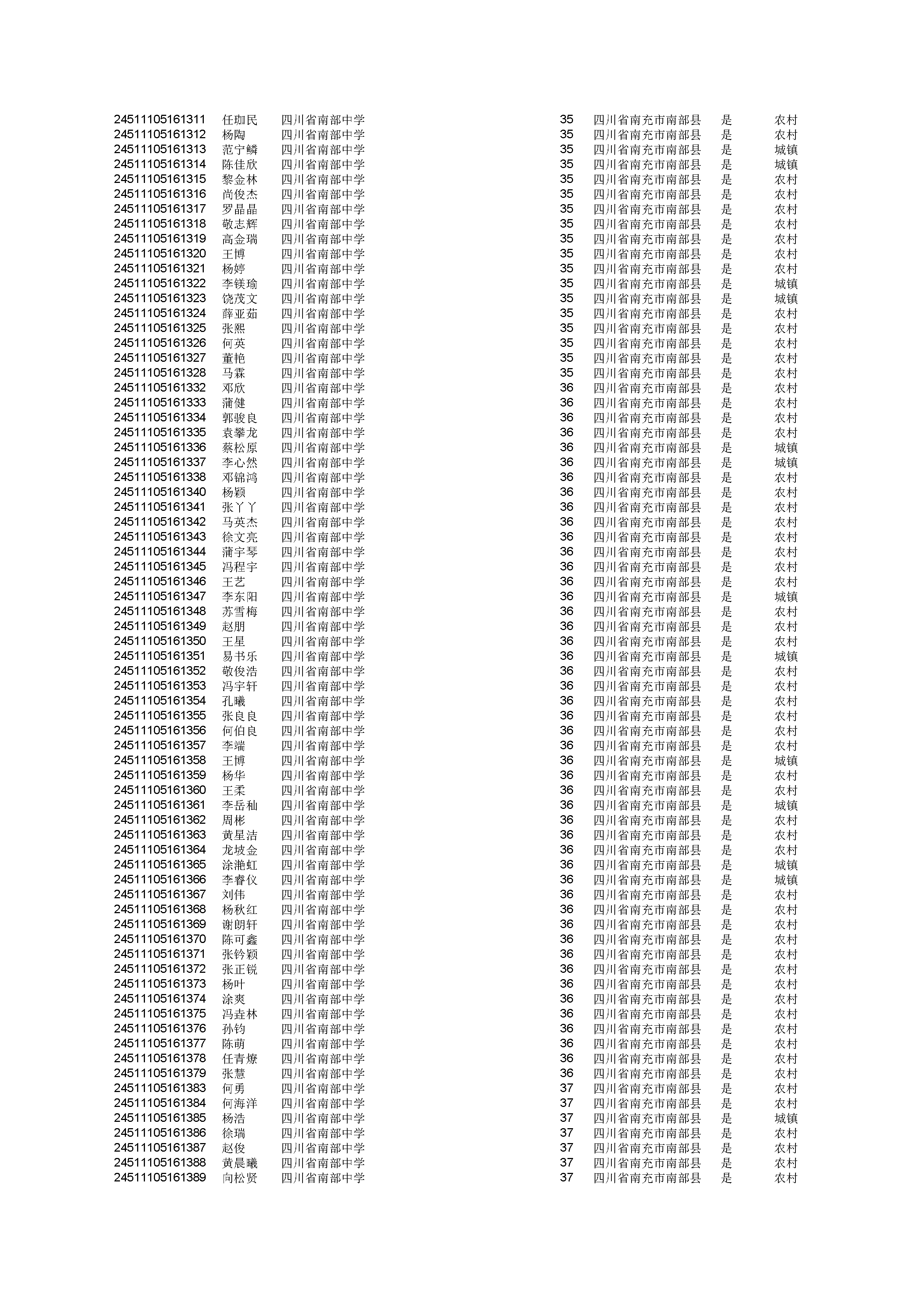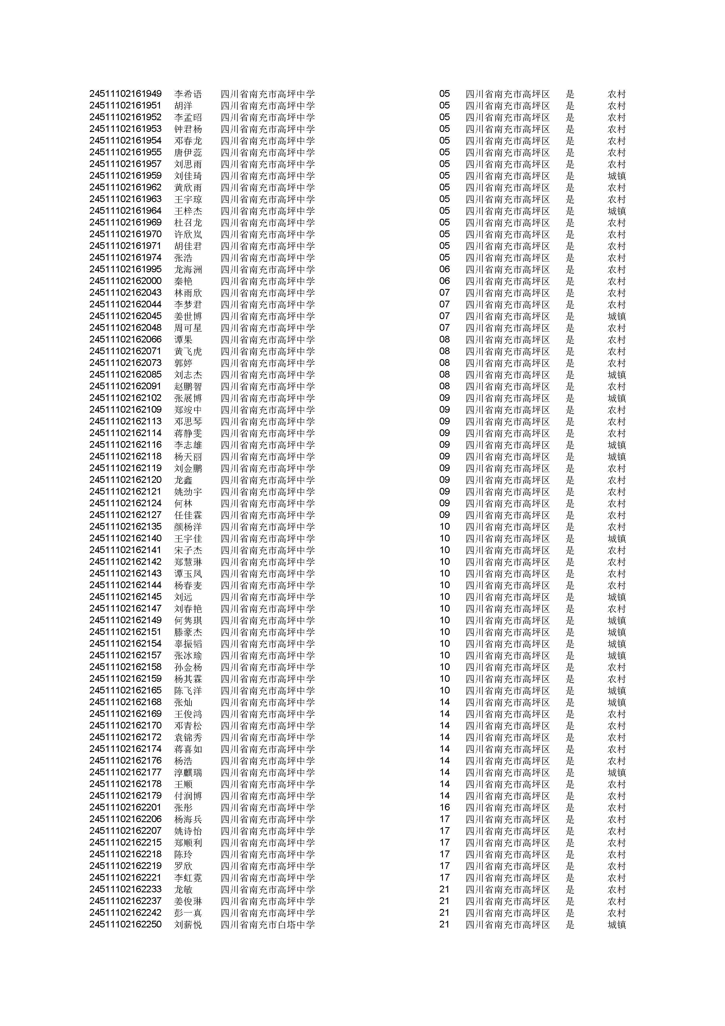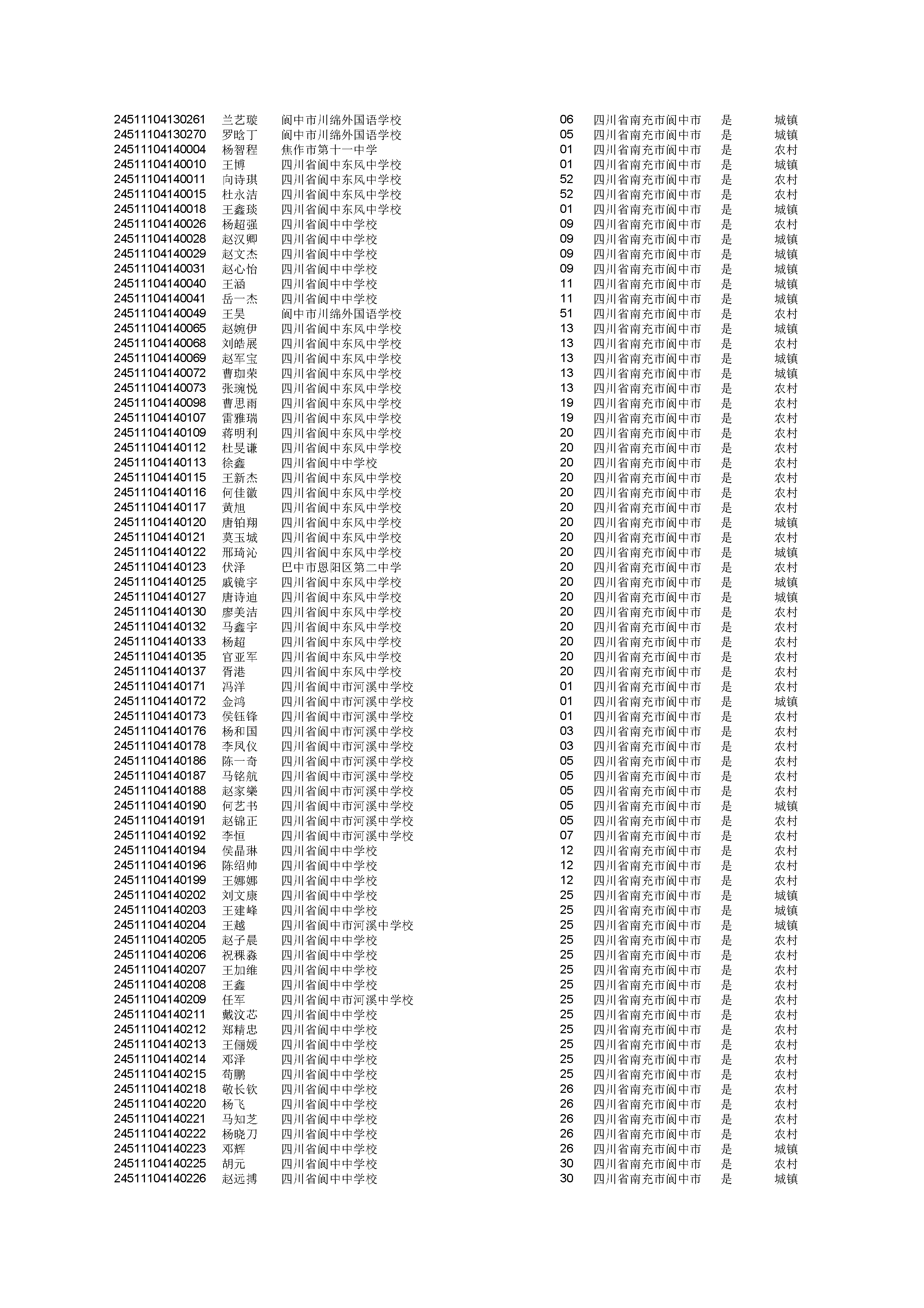 南充市2024年普通高校招生乡村振兴计划审核结果公示