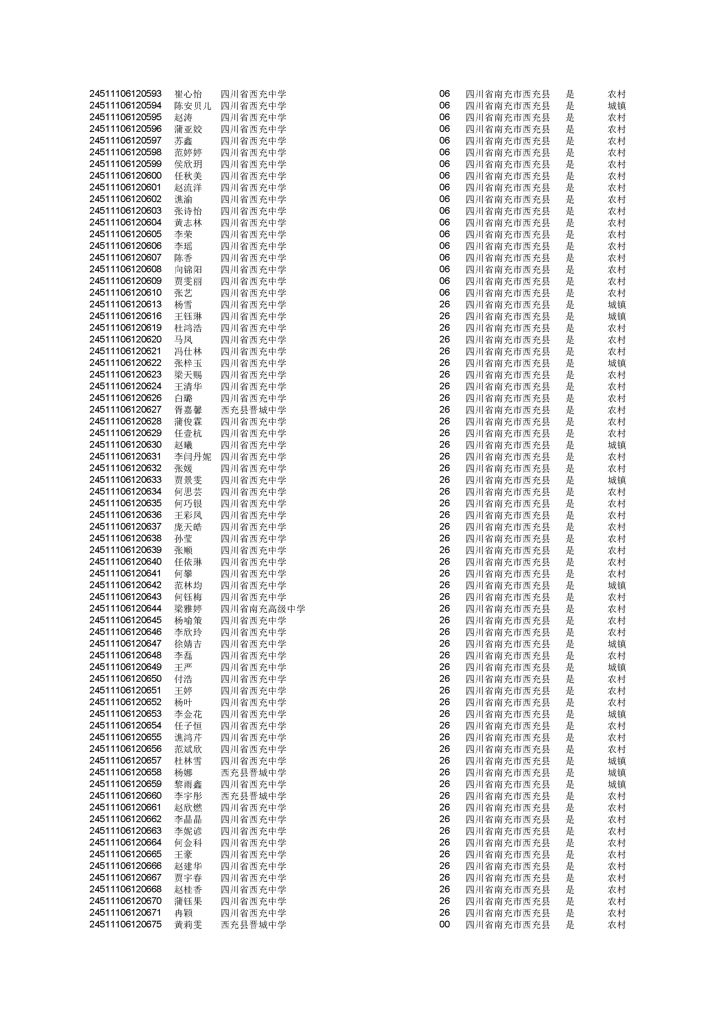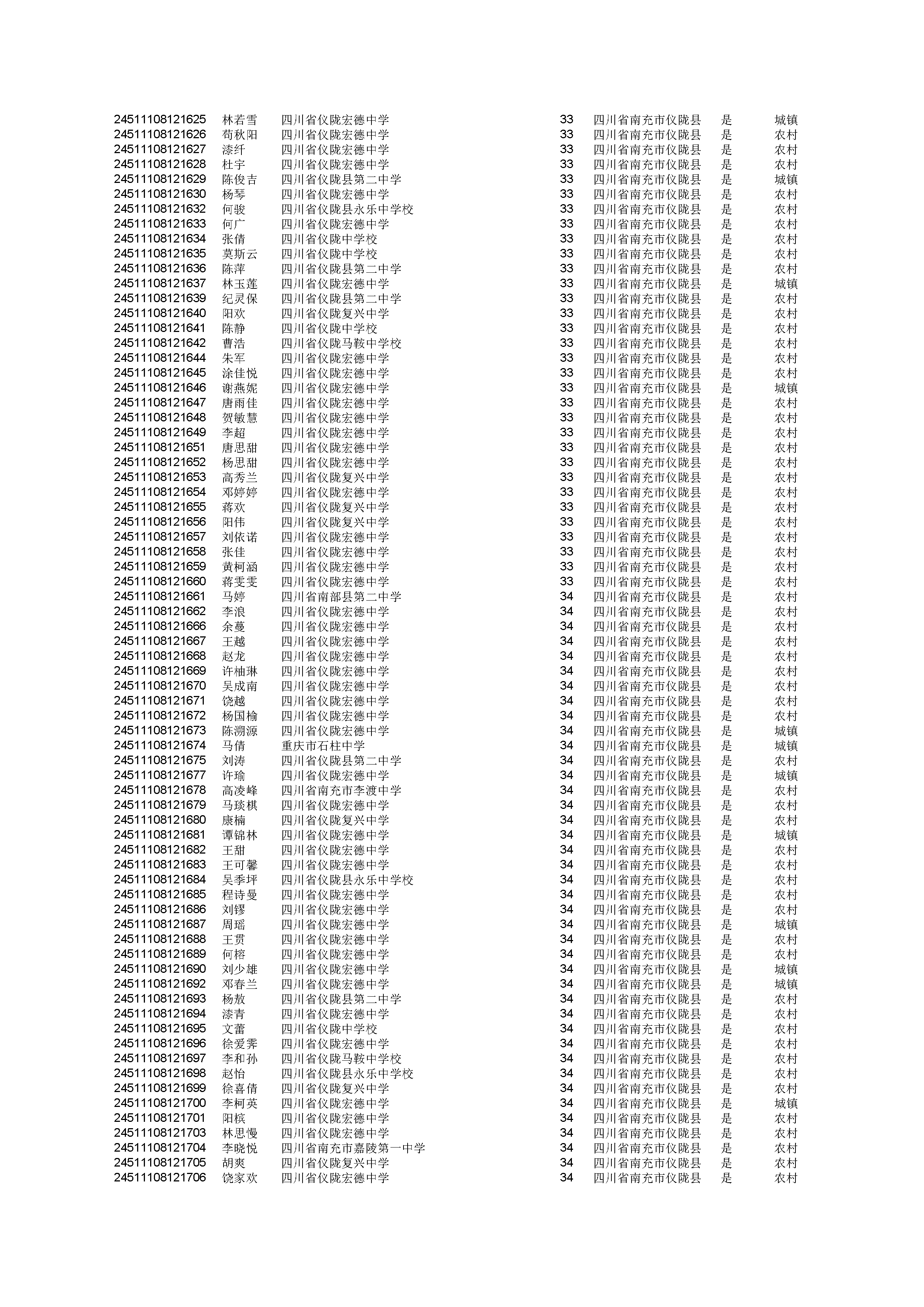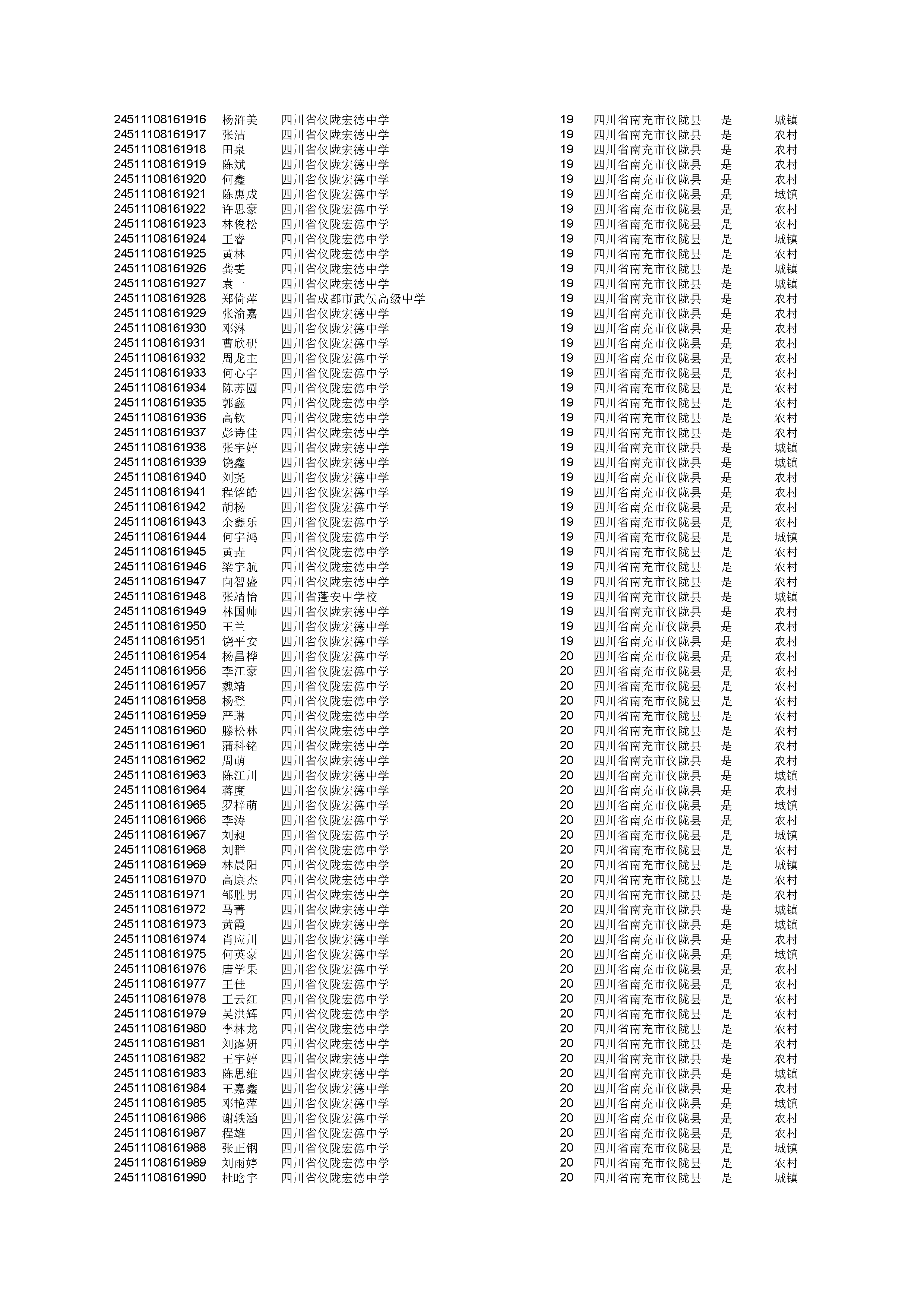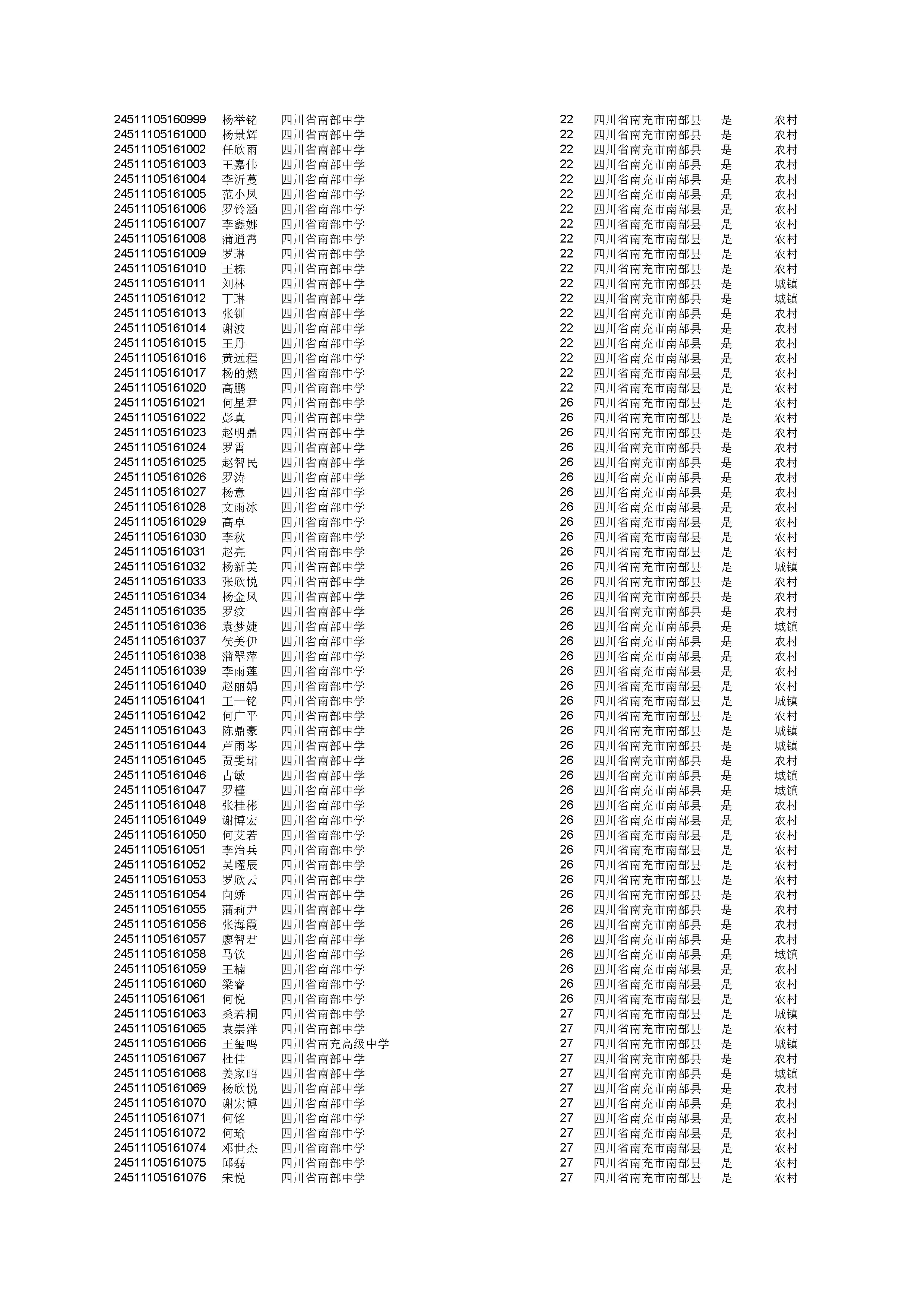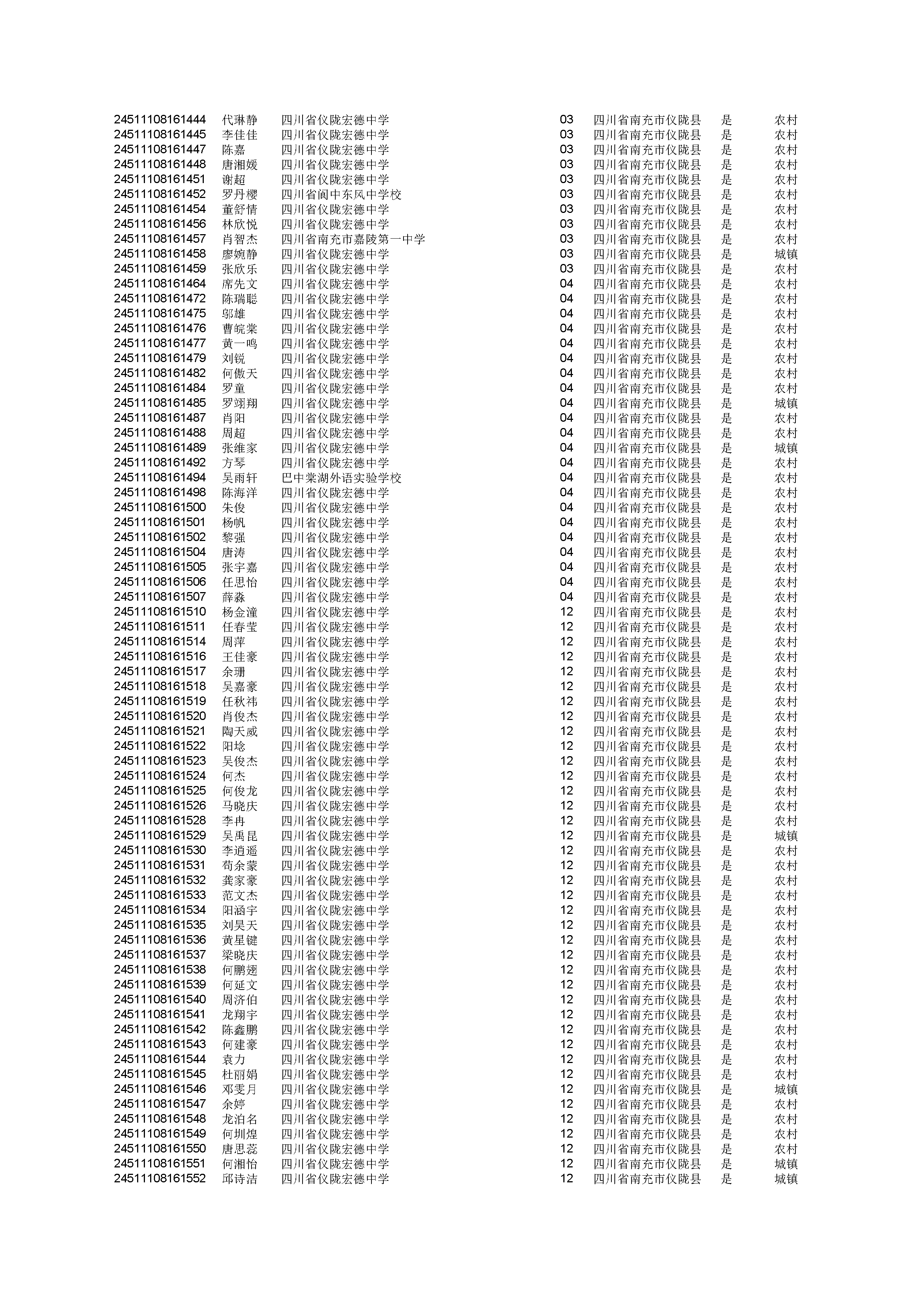 南充市2024年普通高校招生乡村振兴计划审核结果公示