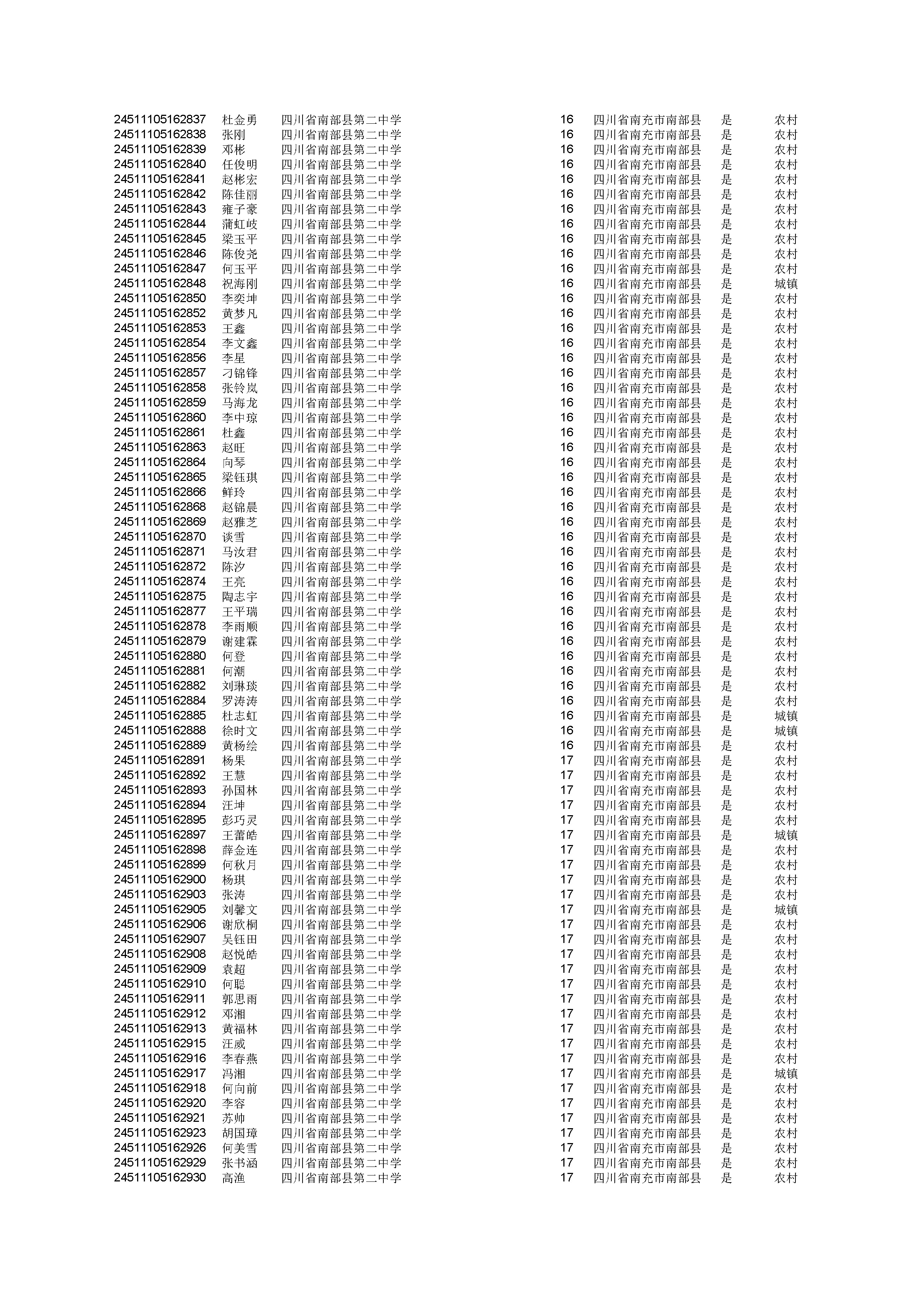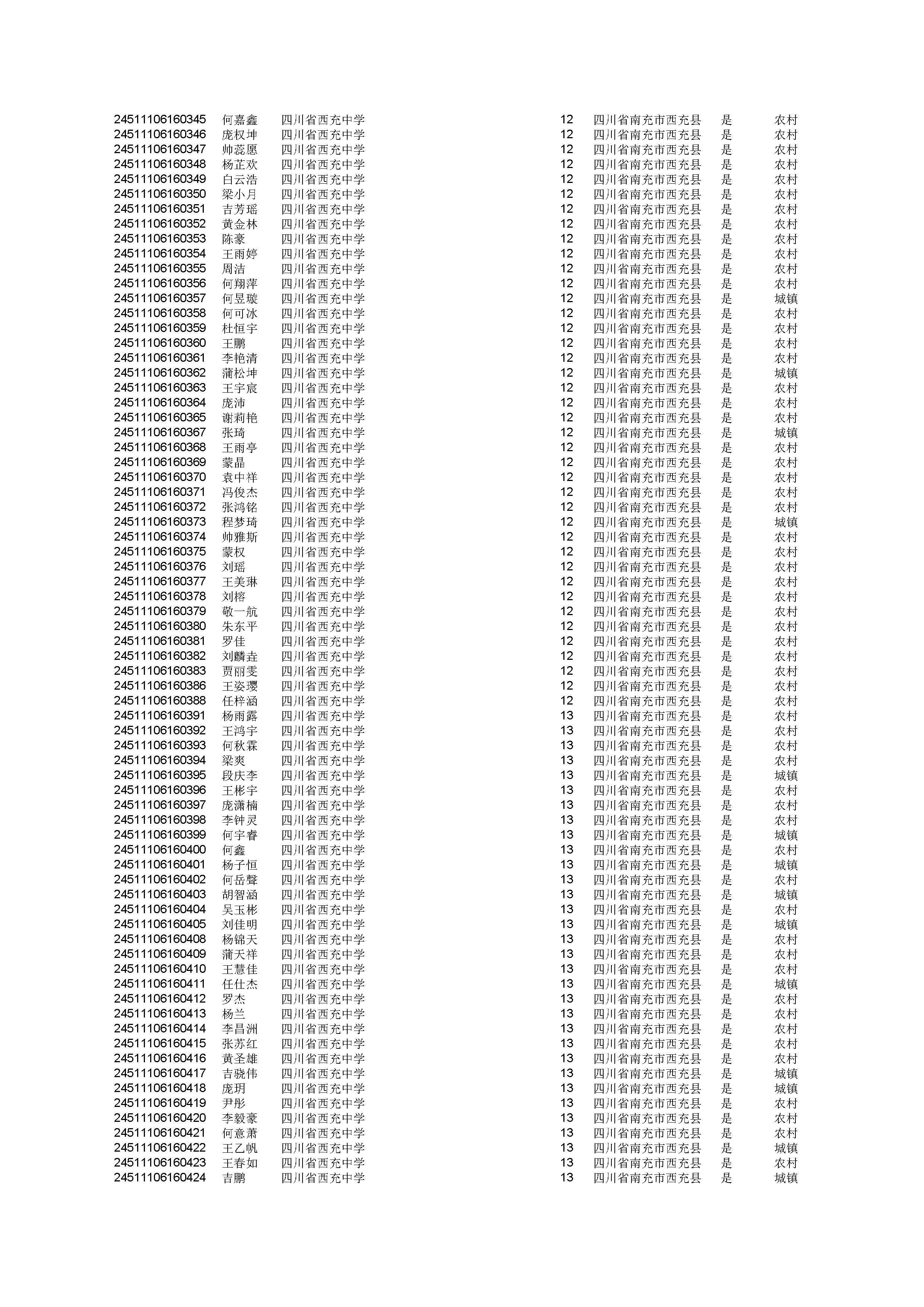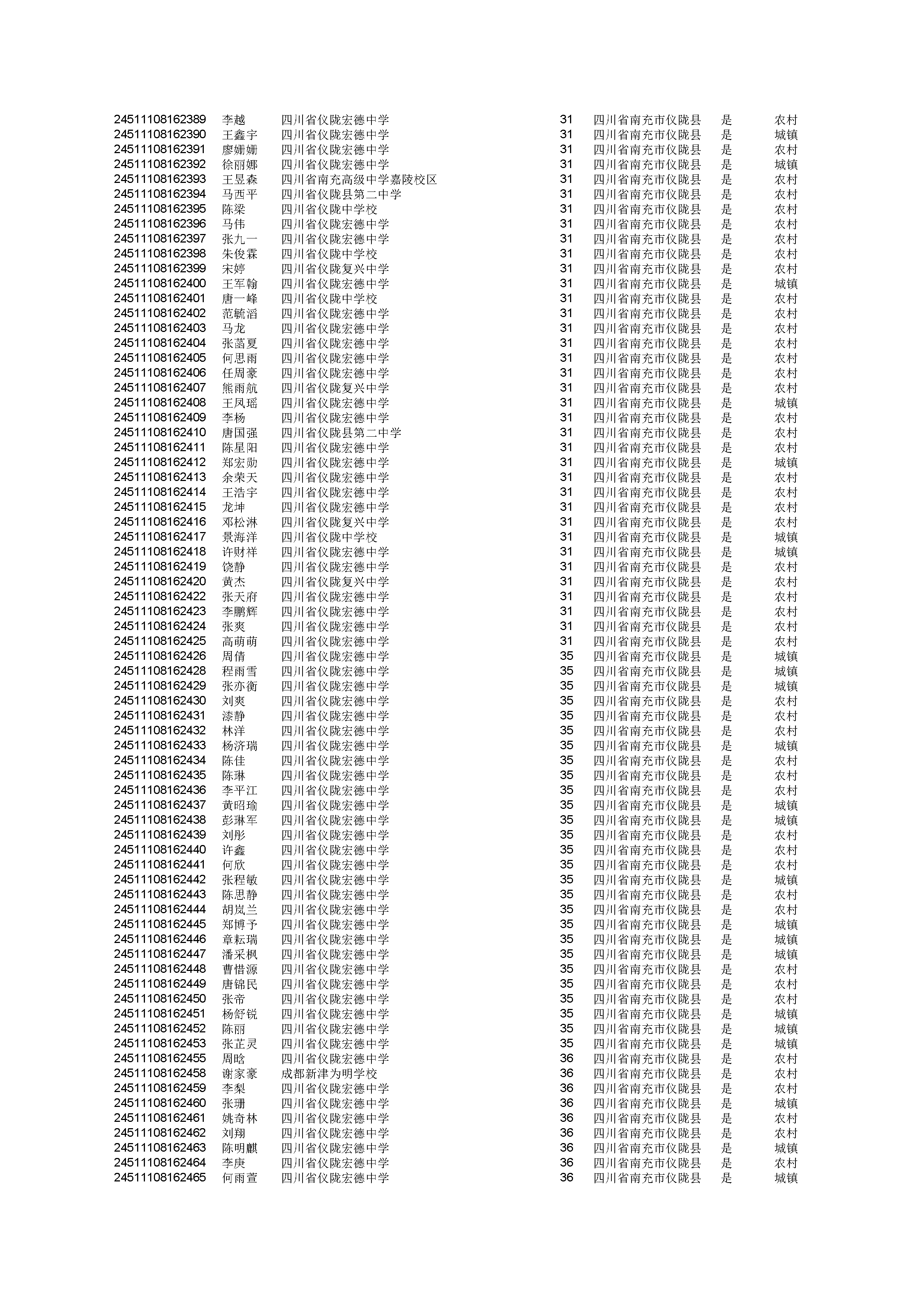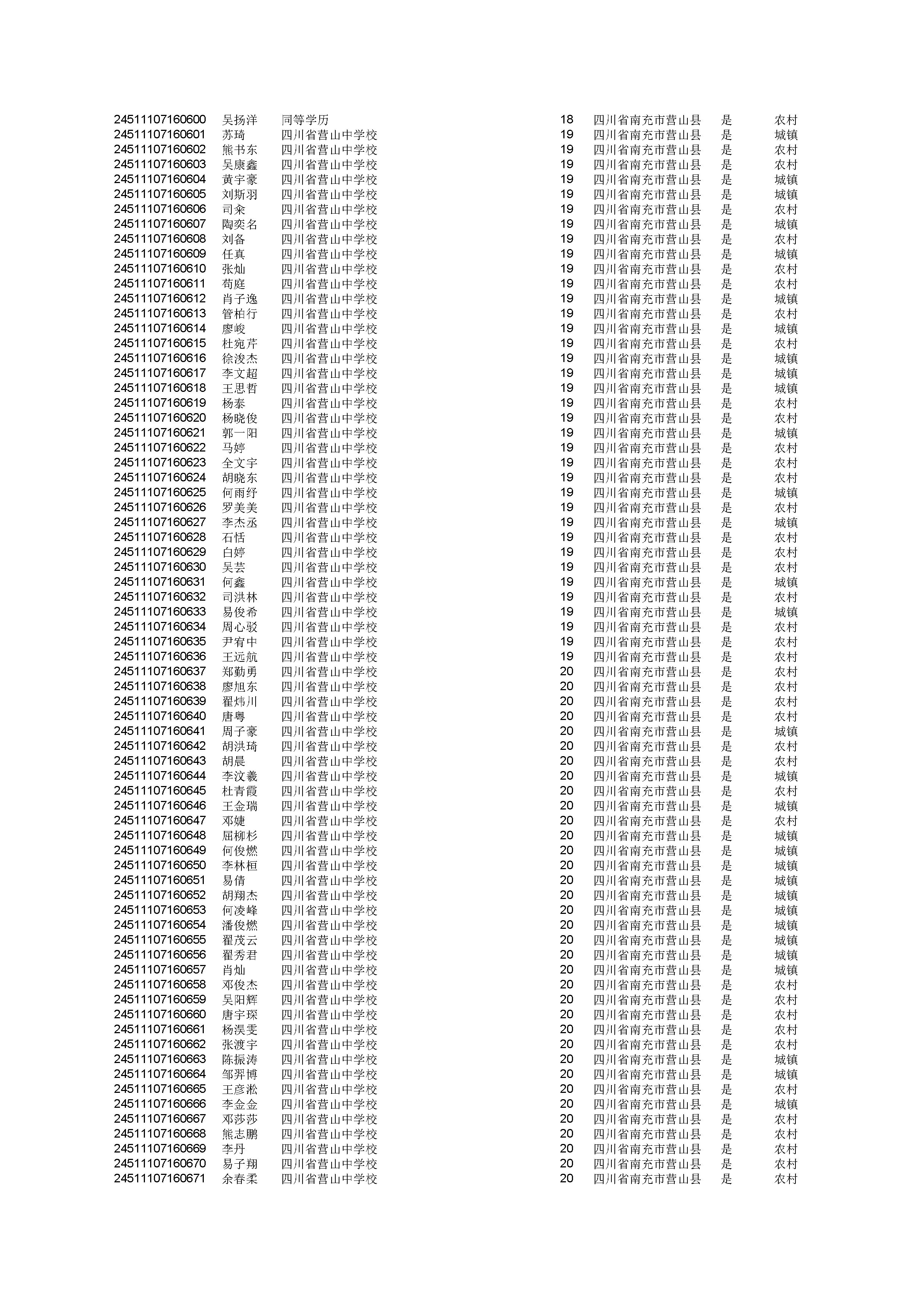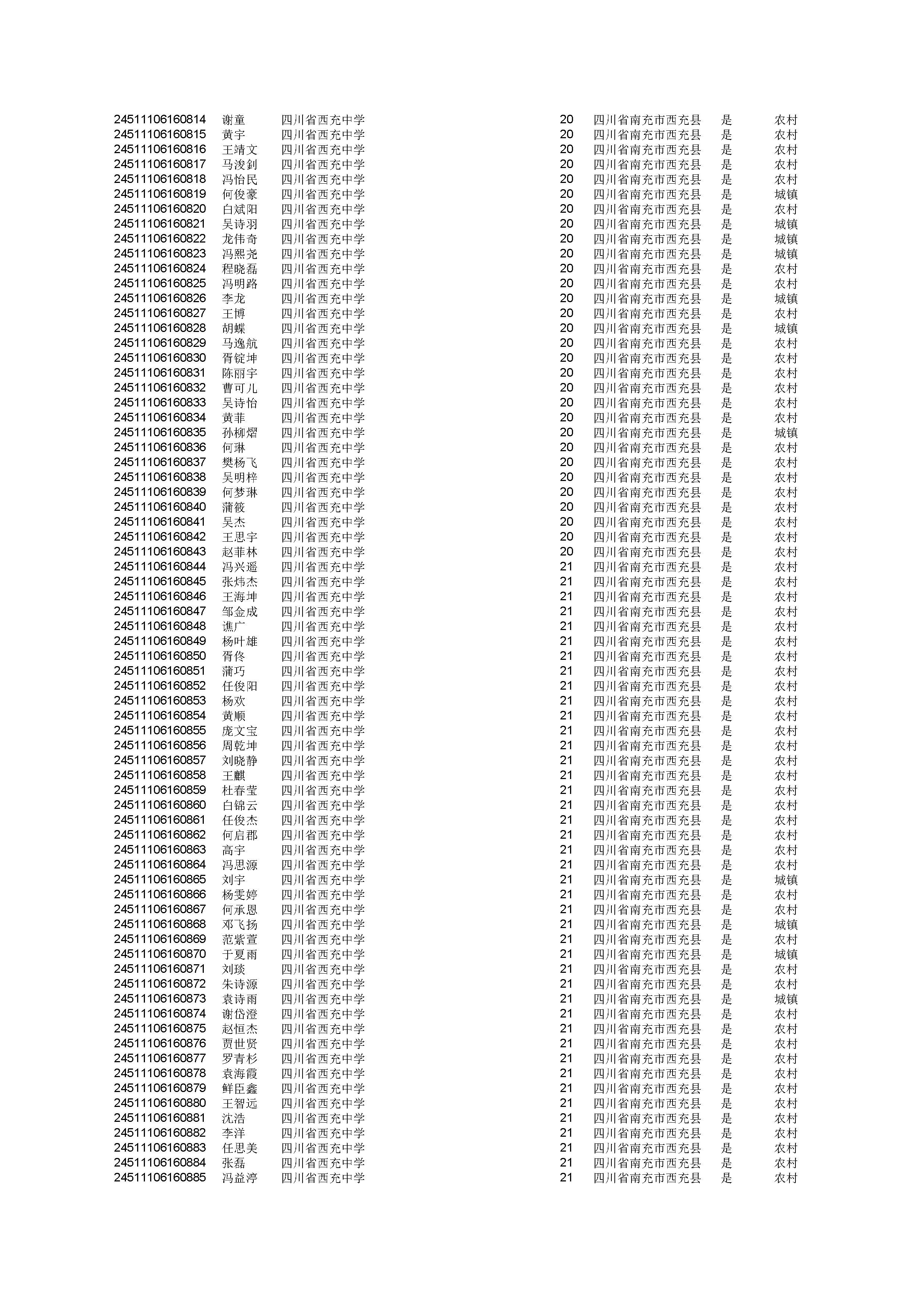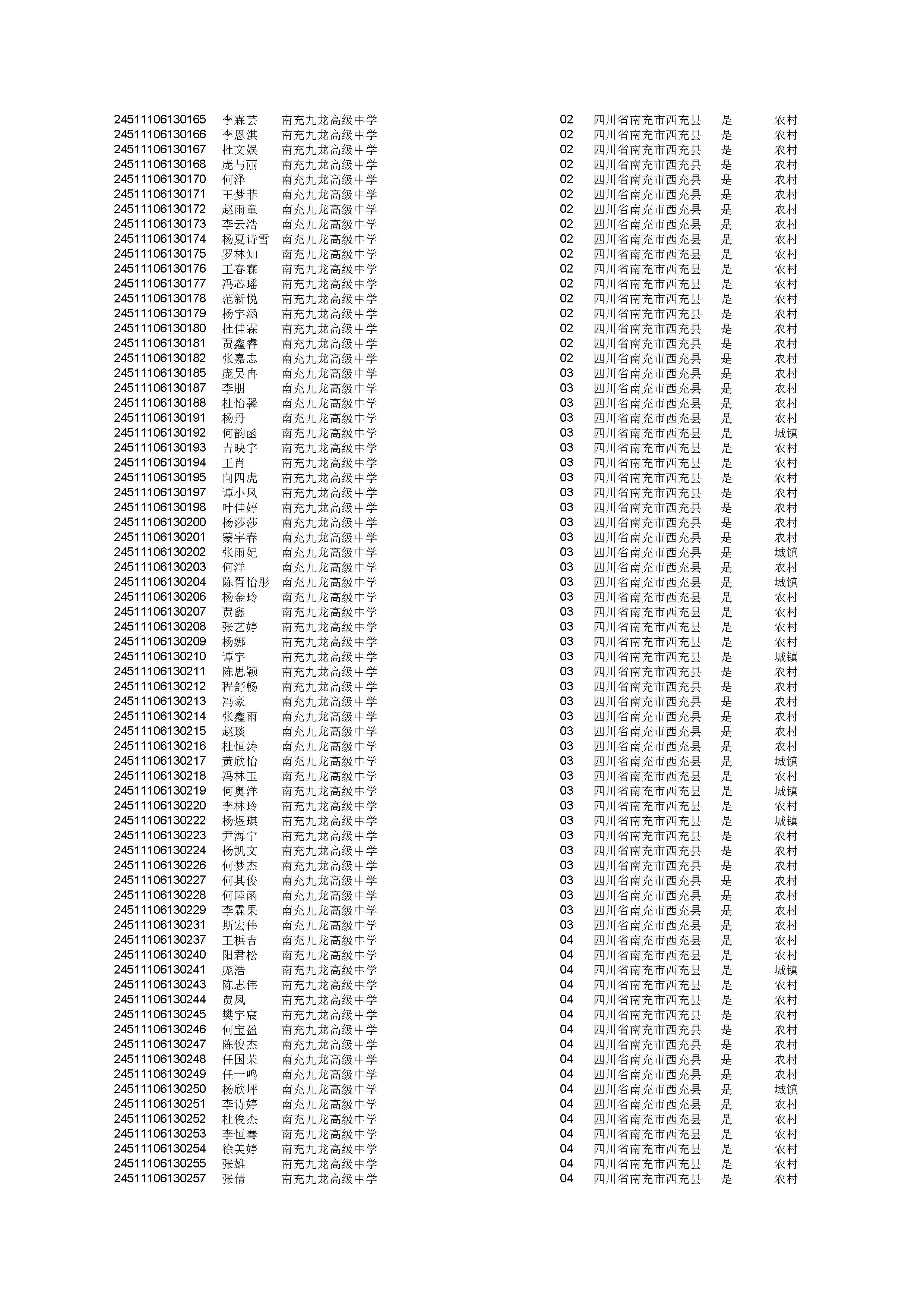 南充市2024年普通高校招生乡村振兴计划审核结果公示