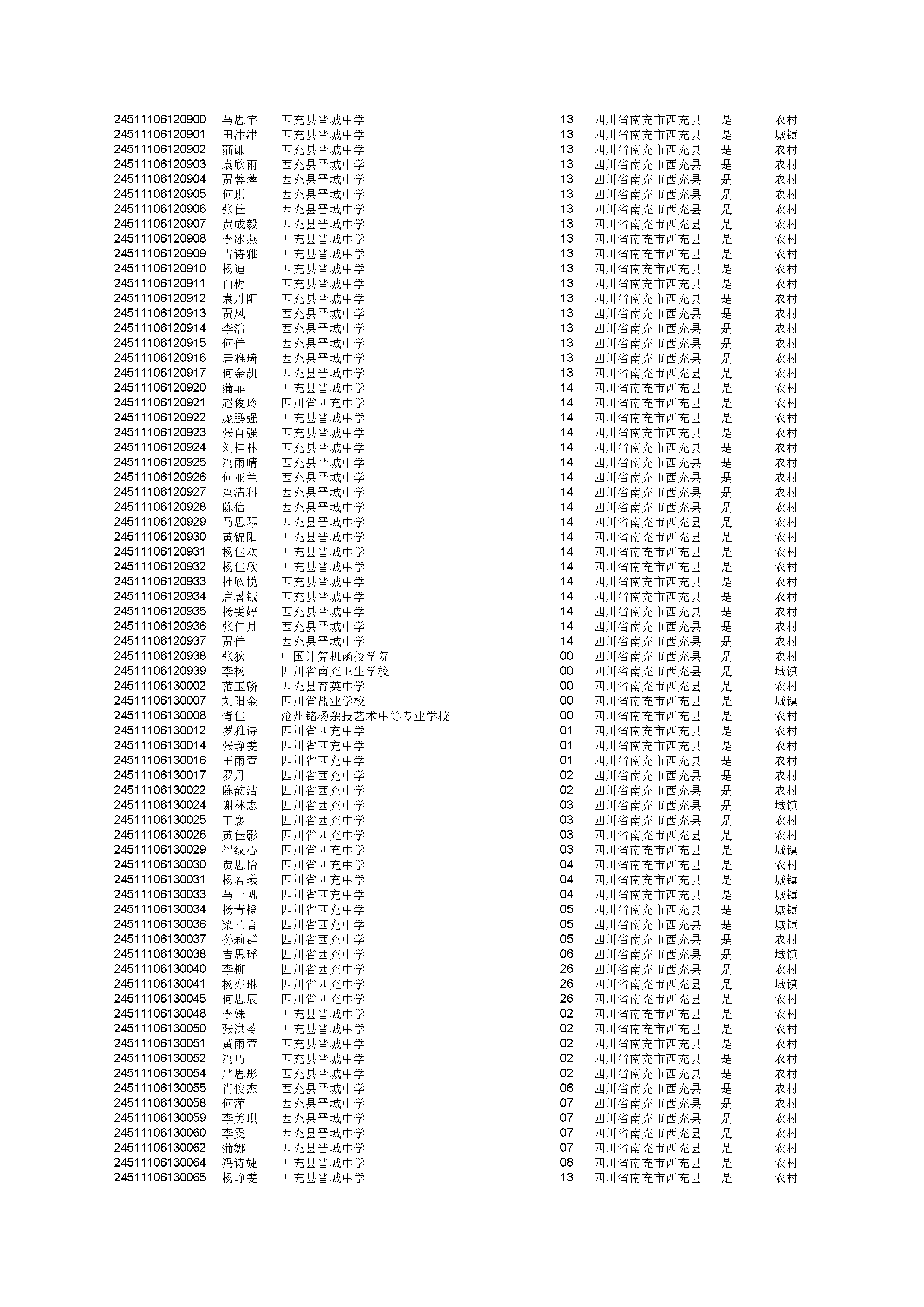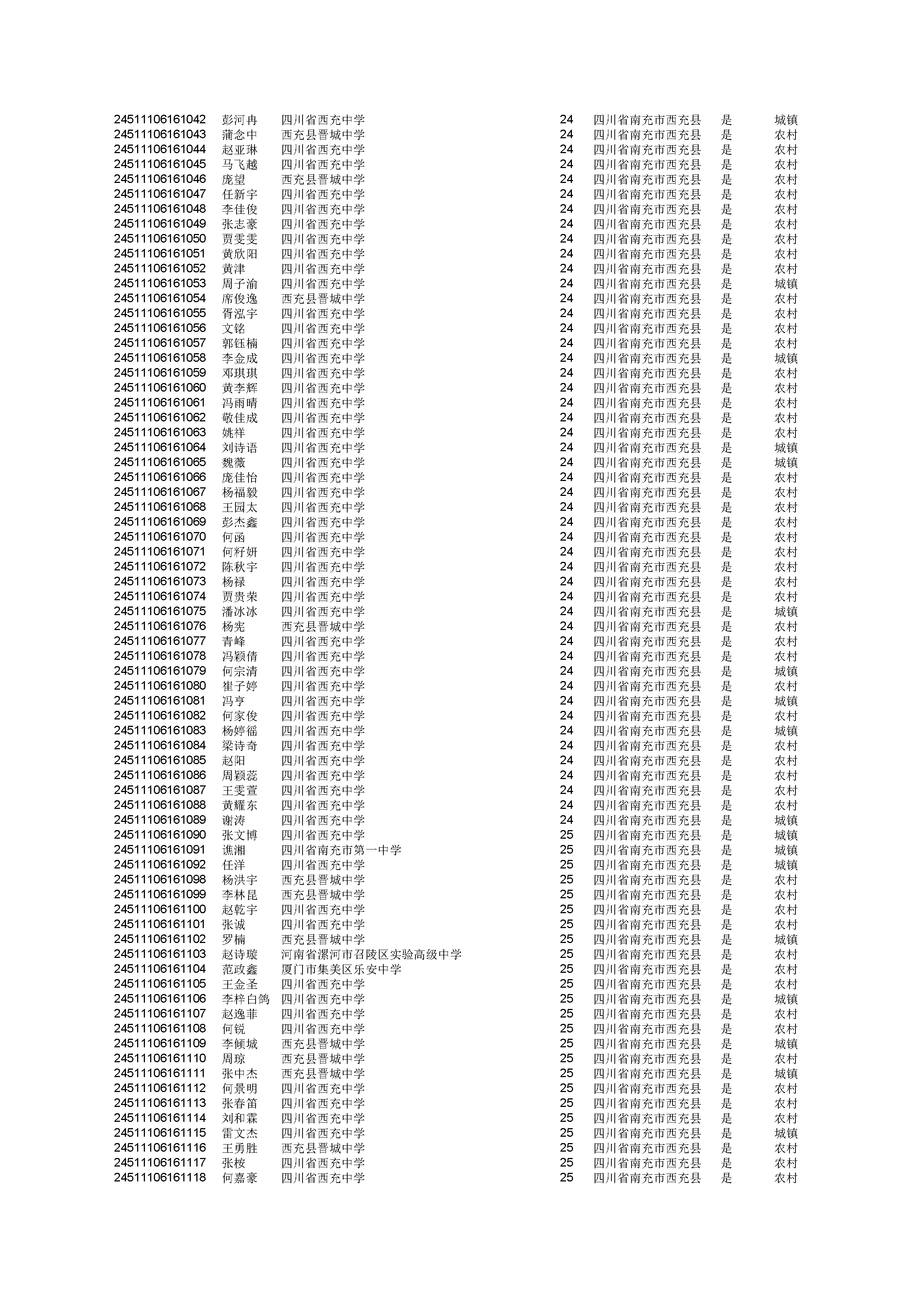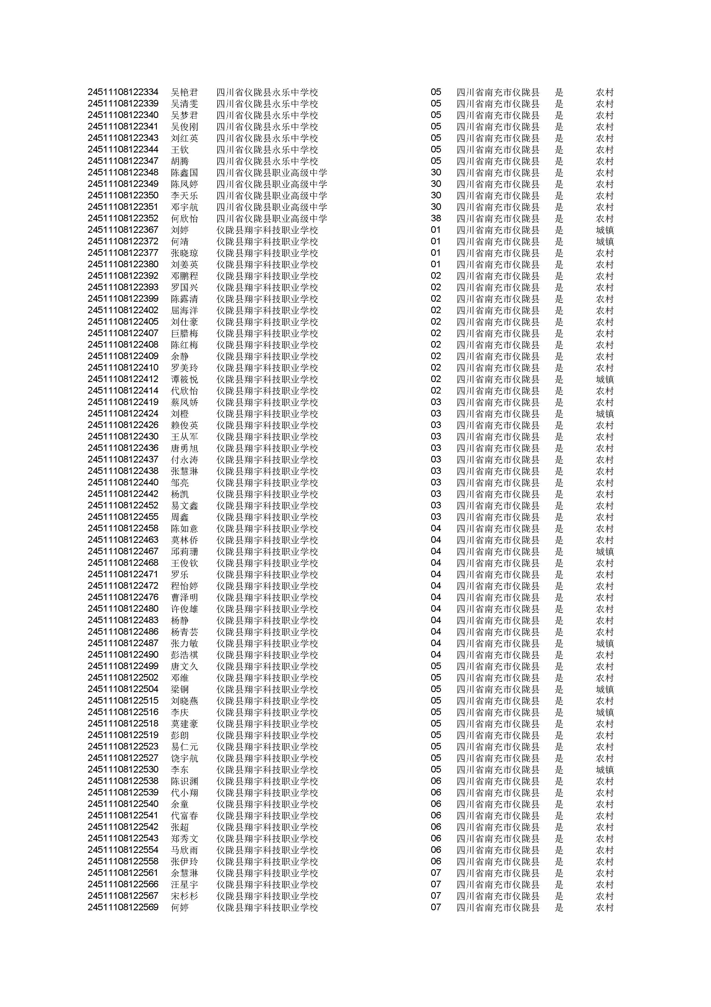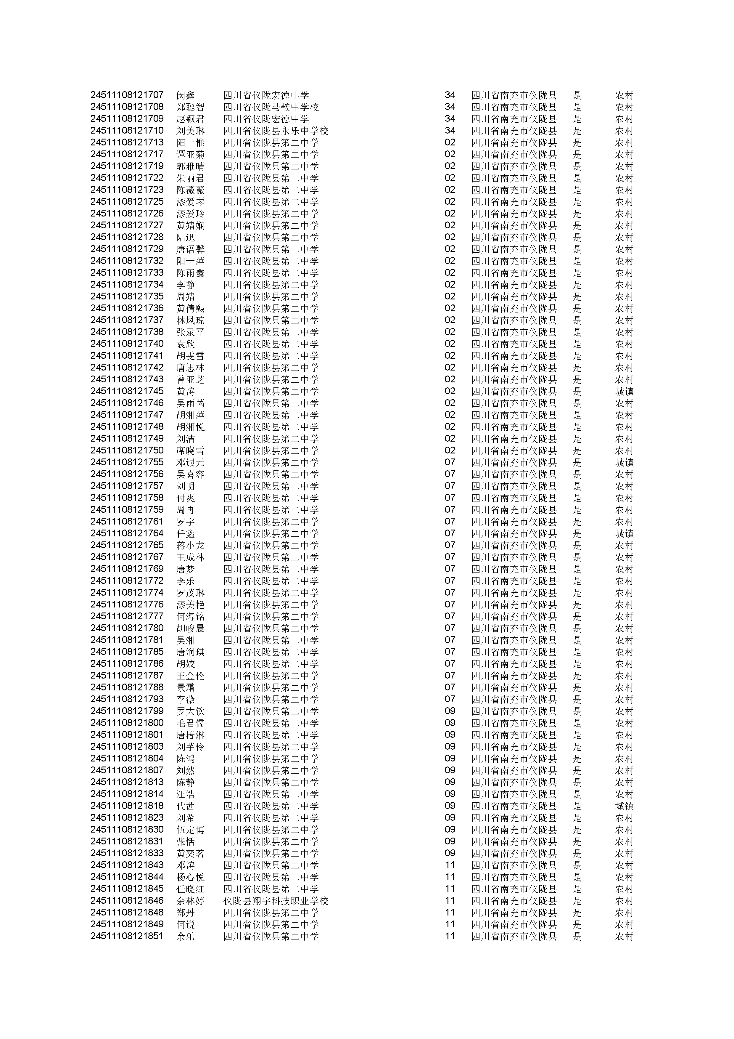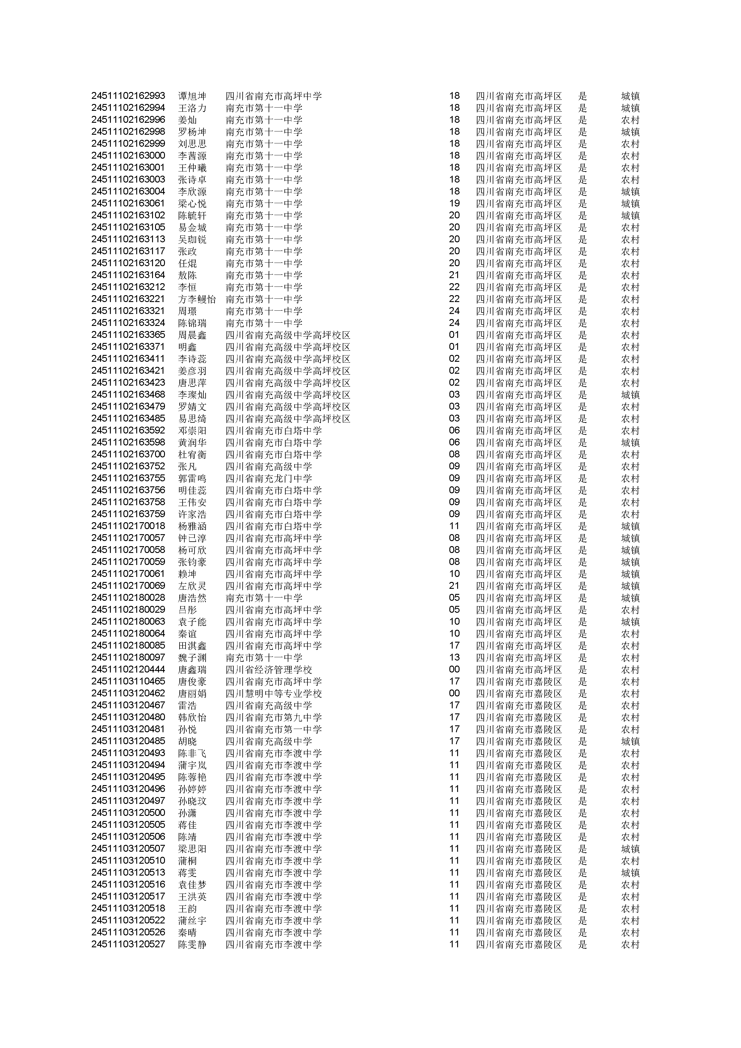 南充市2024年普通高校招生乡村振兴计划审核结果公示