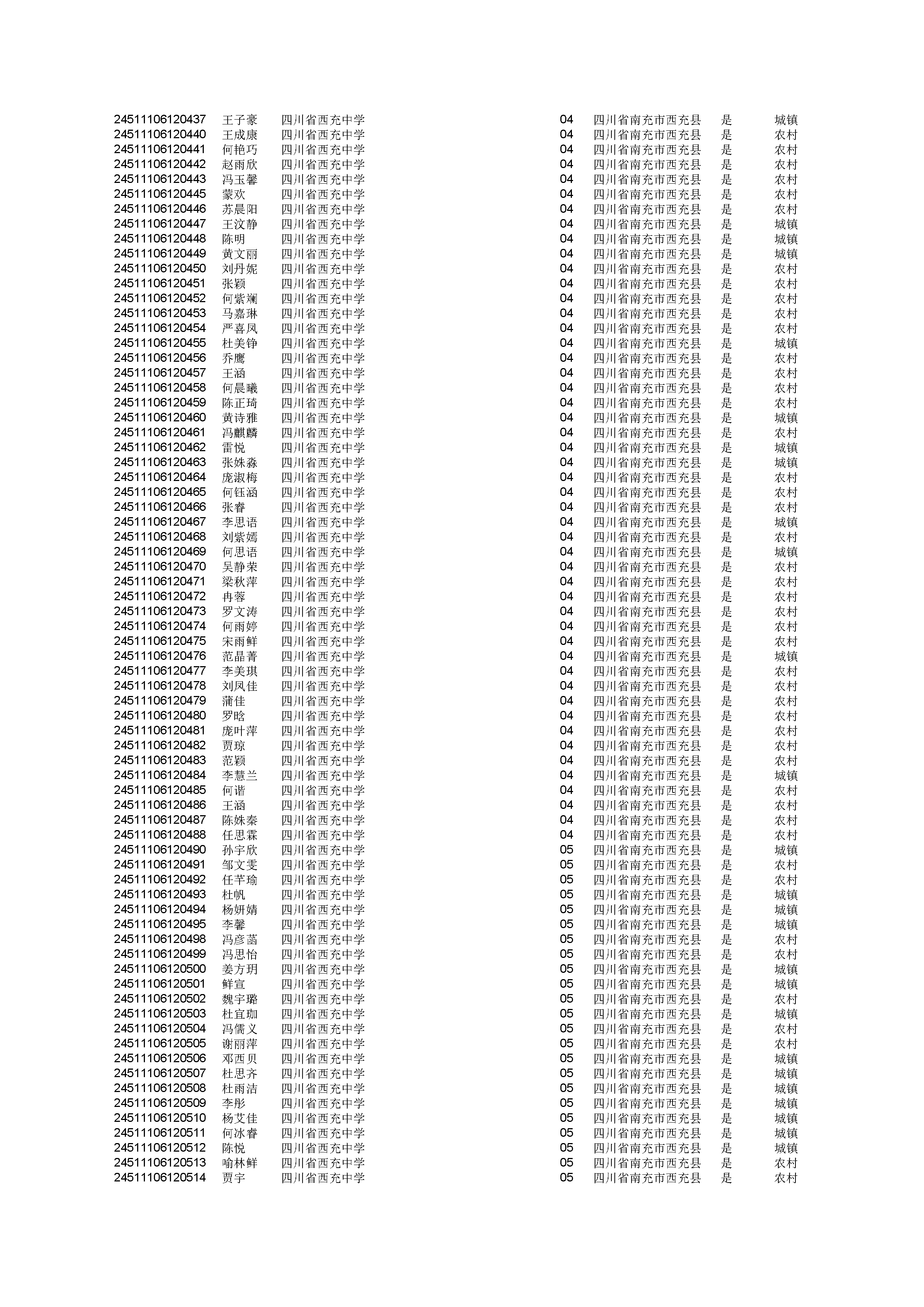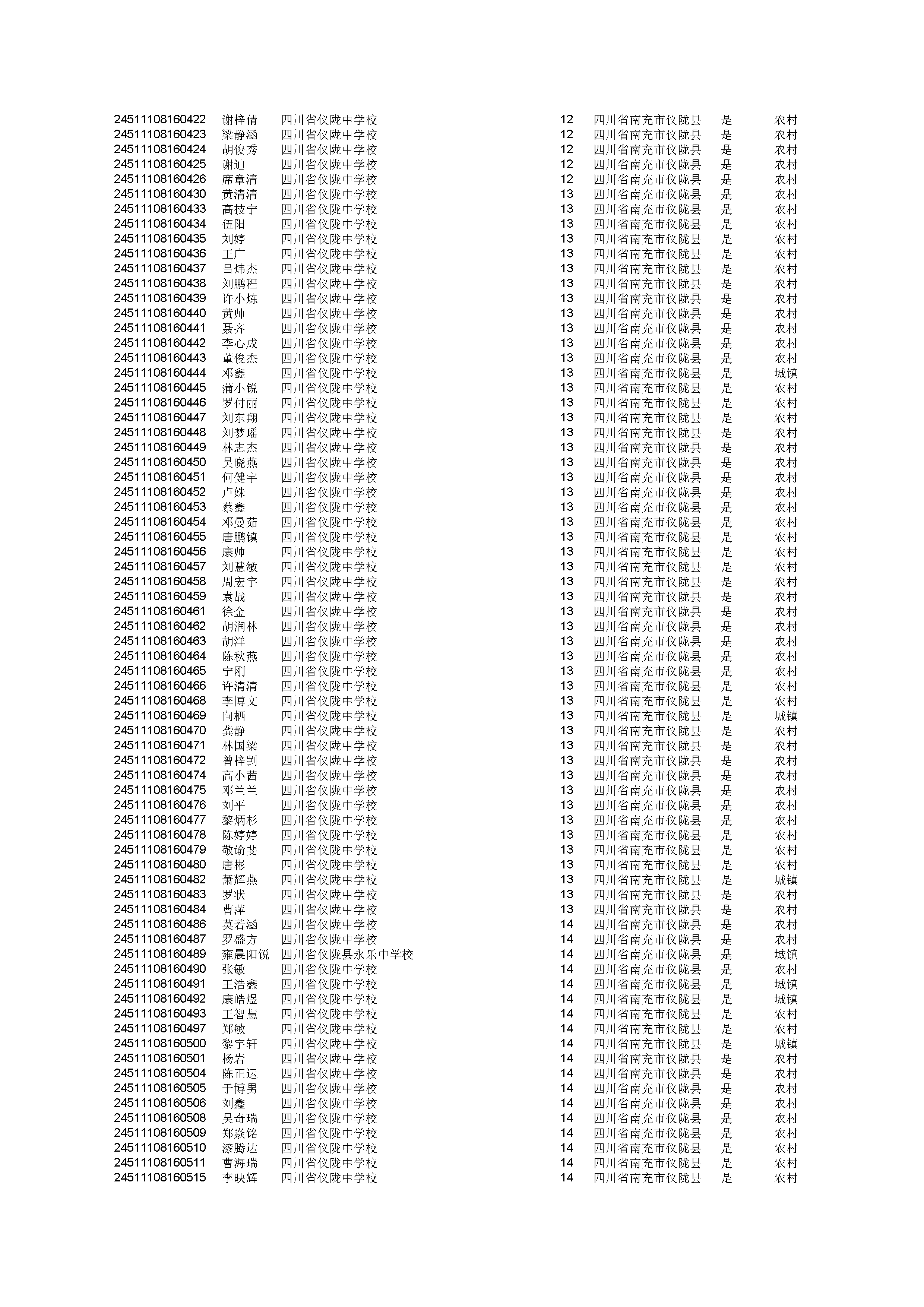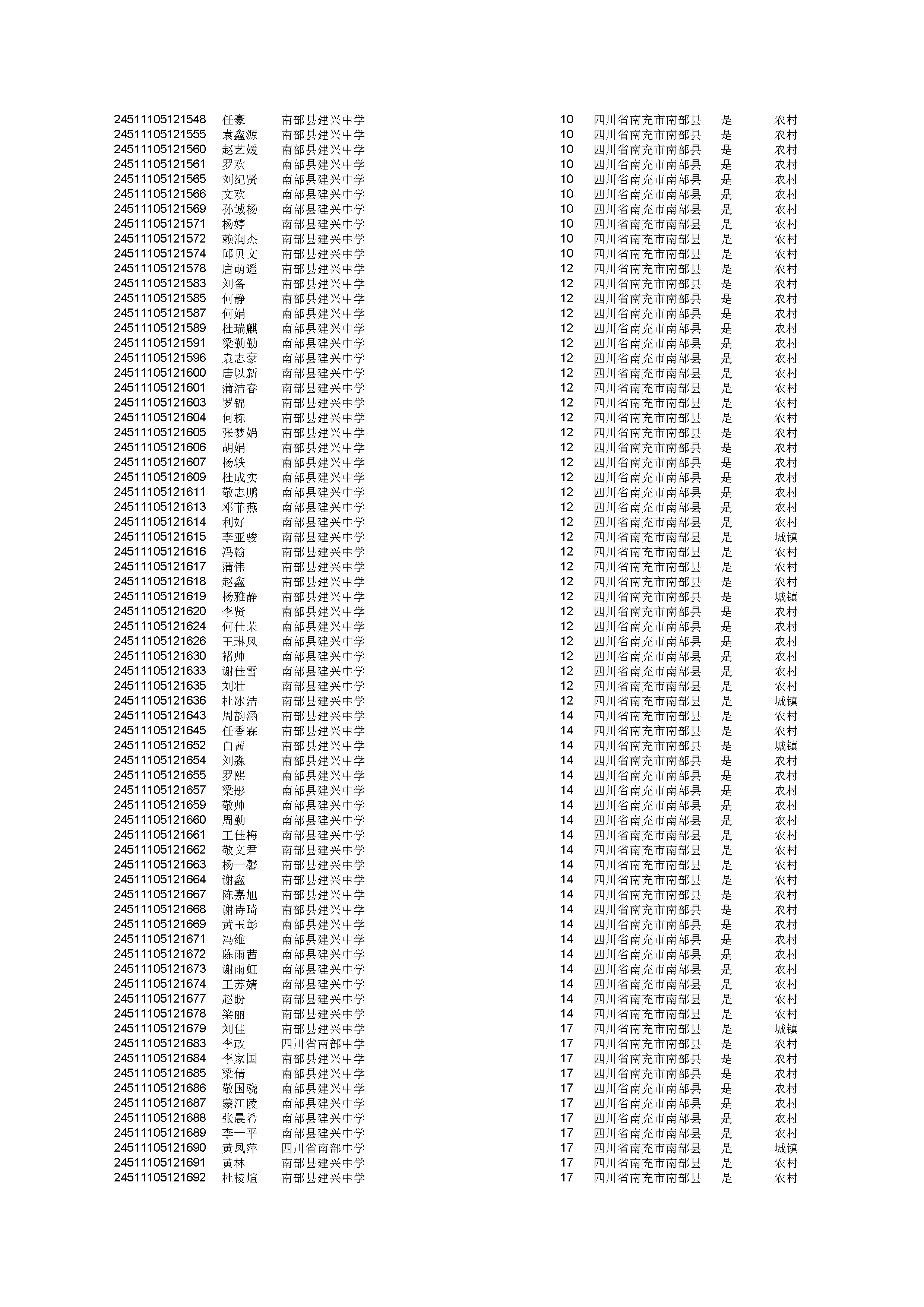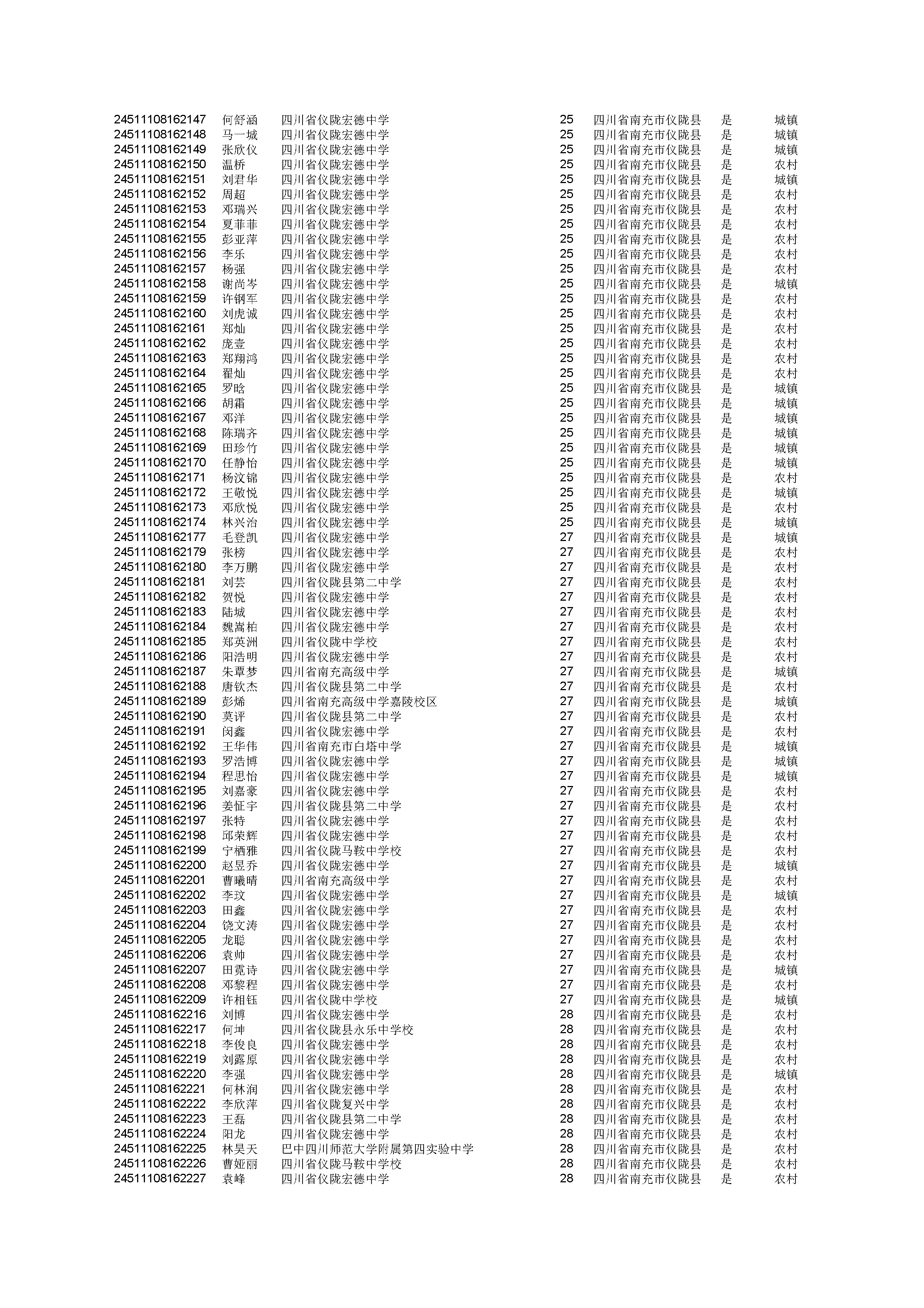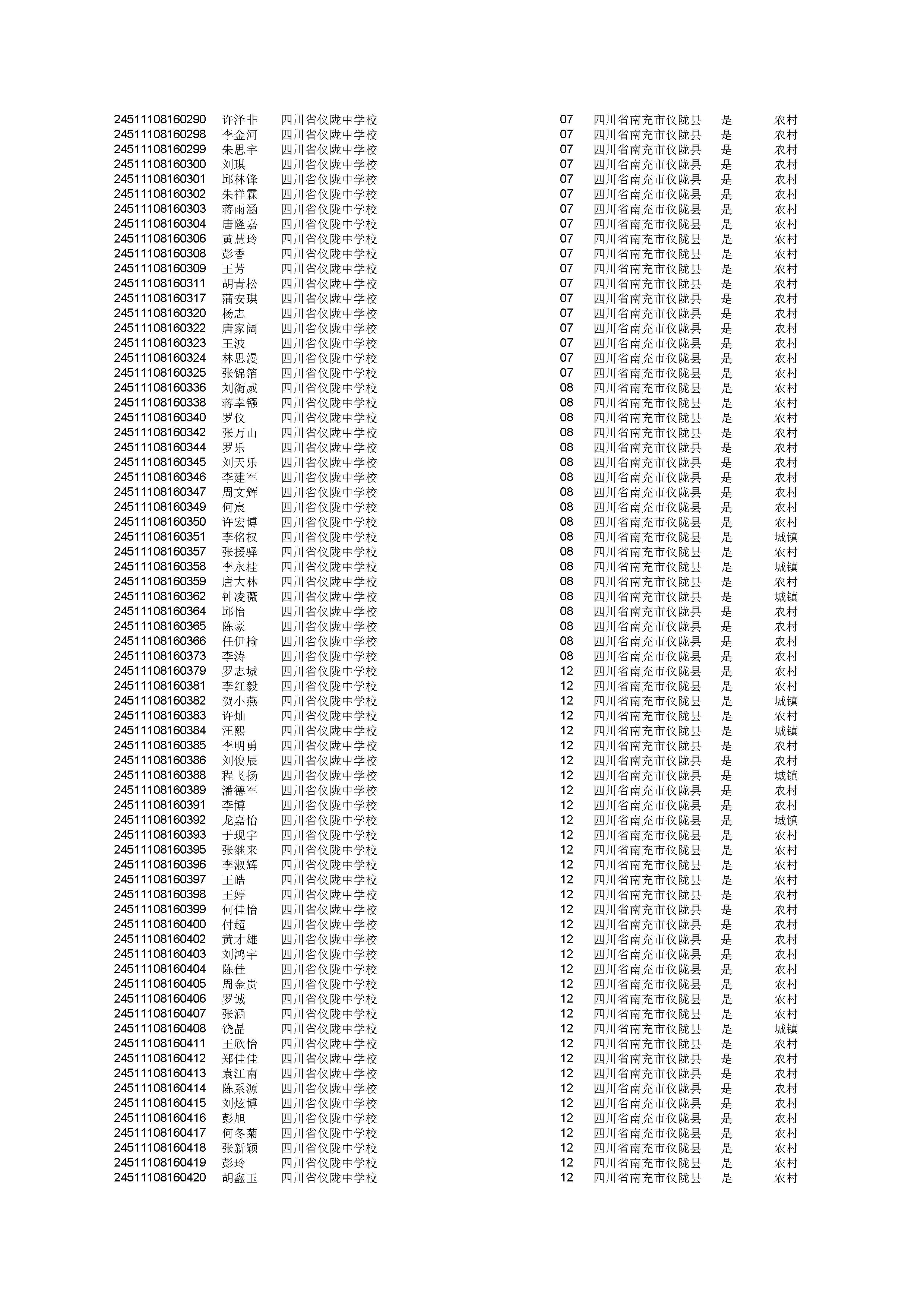 南充市2024年普通高校招生乡村振兴计划审核结果公示