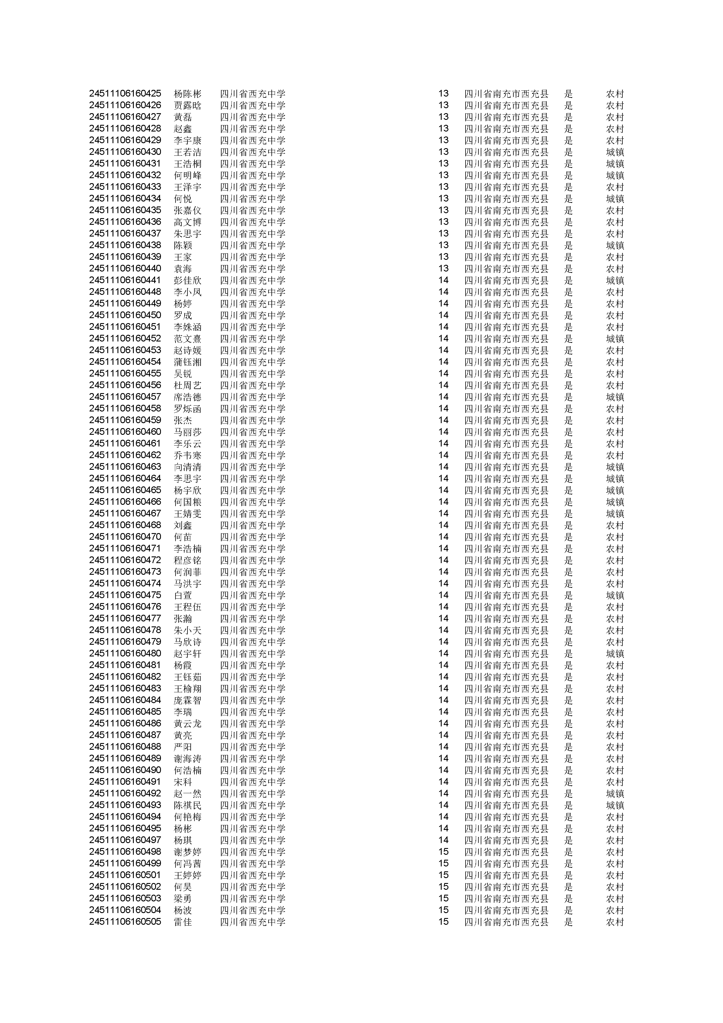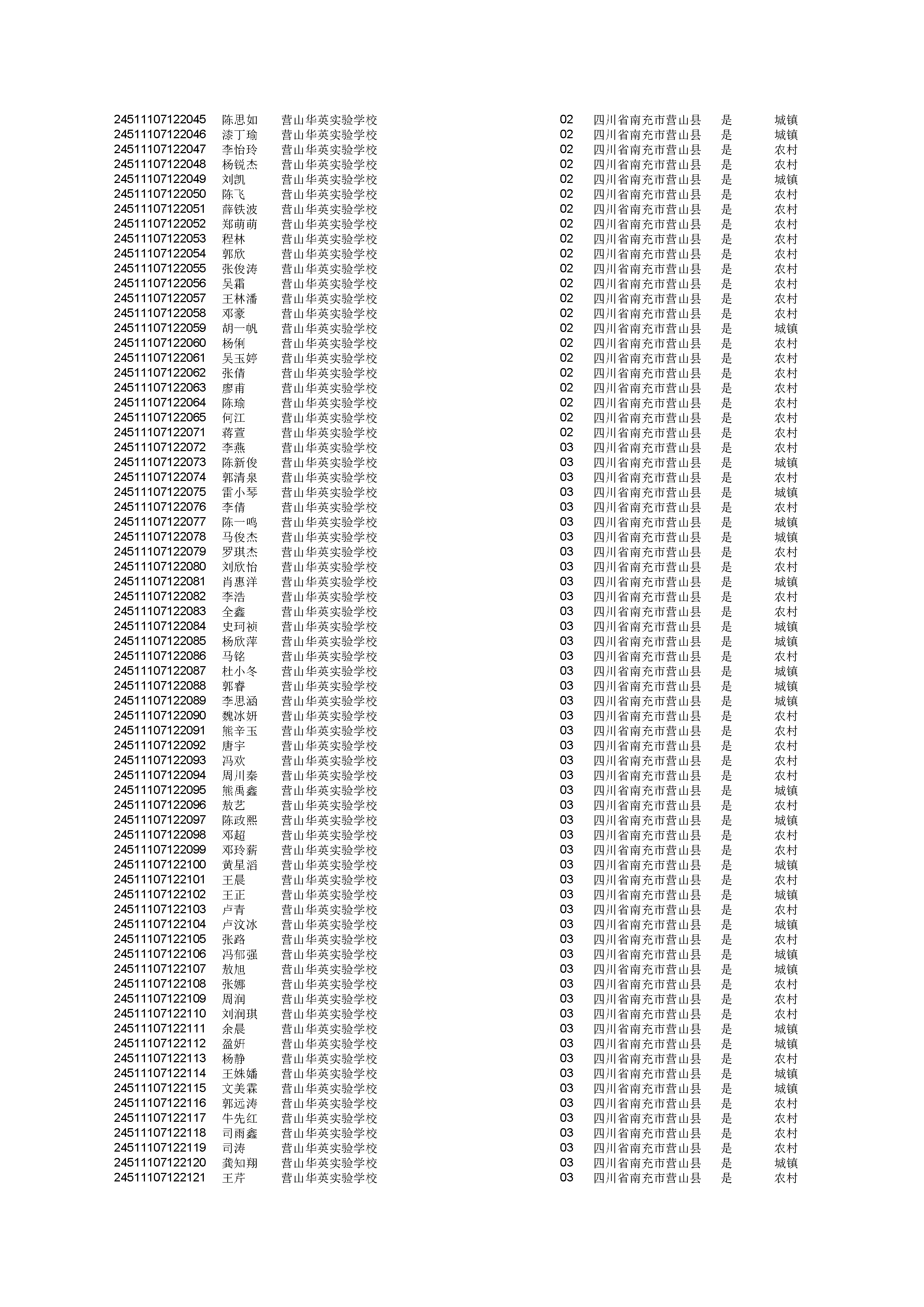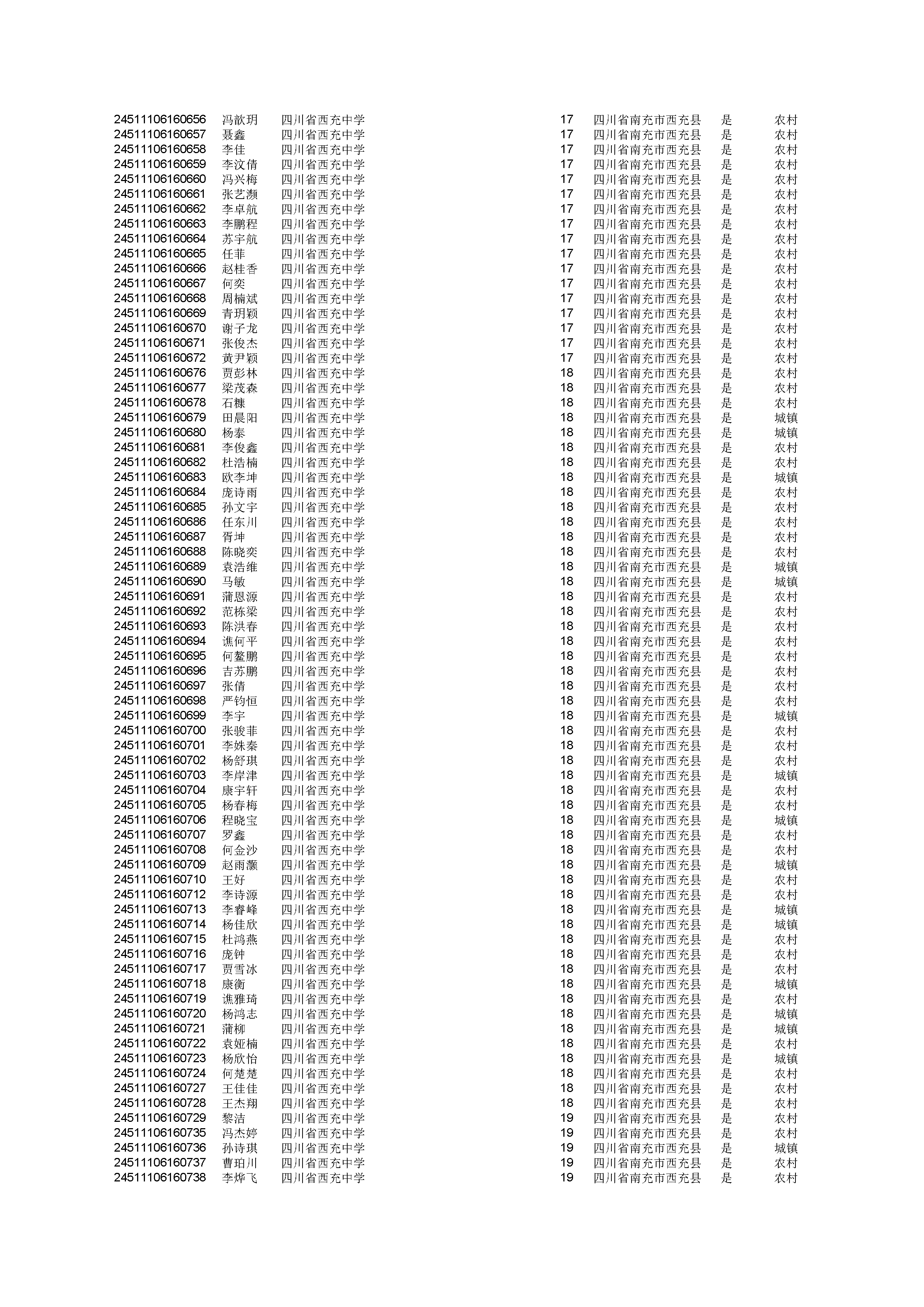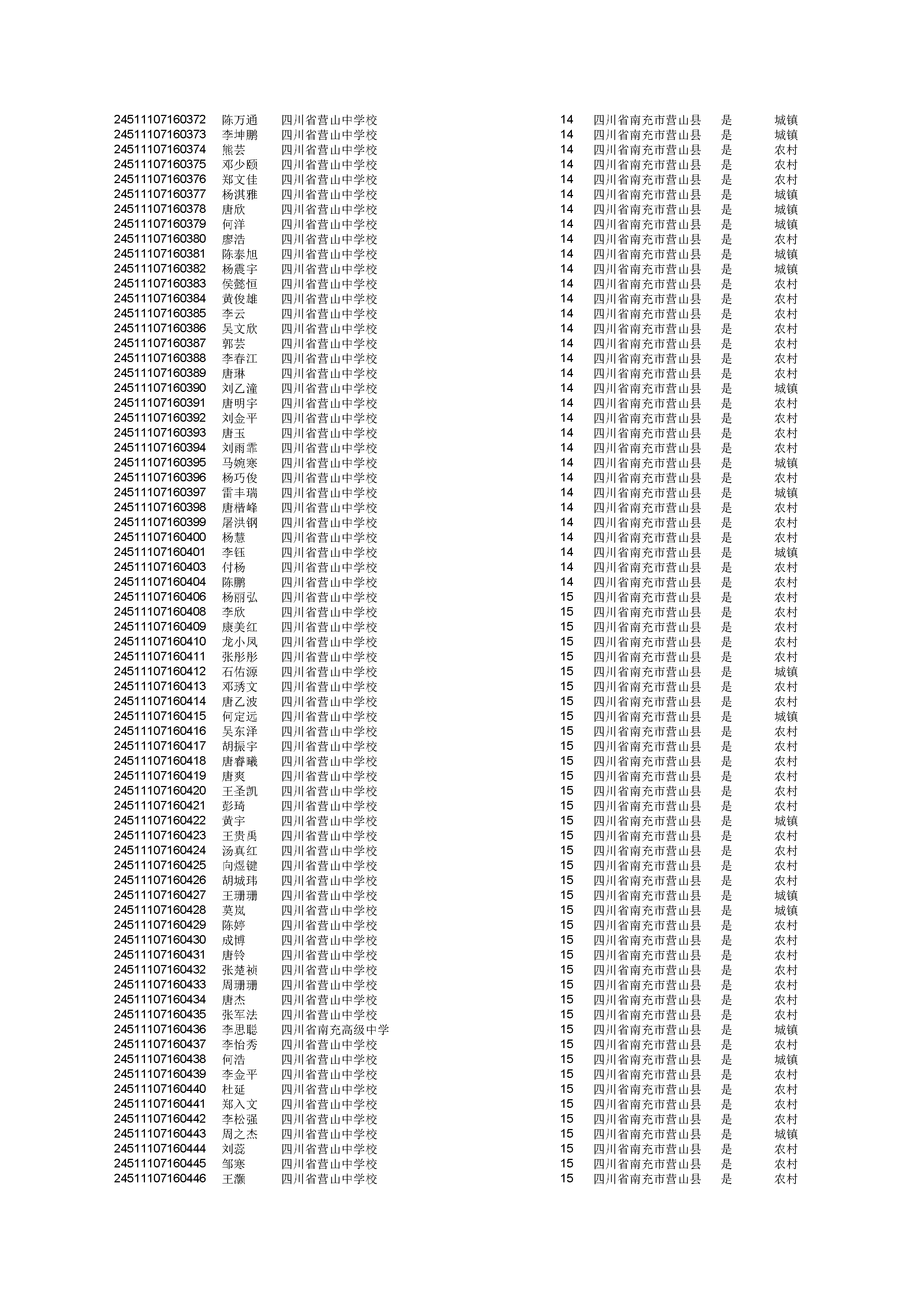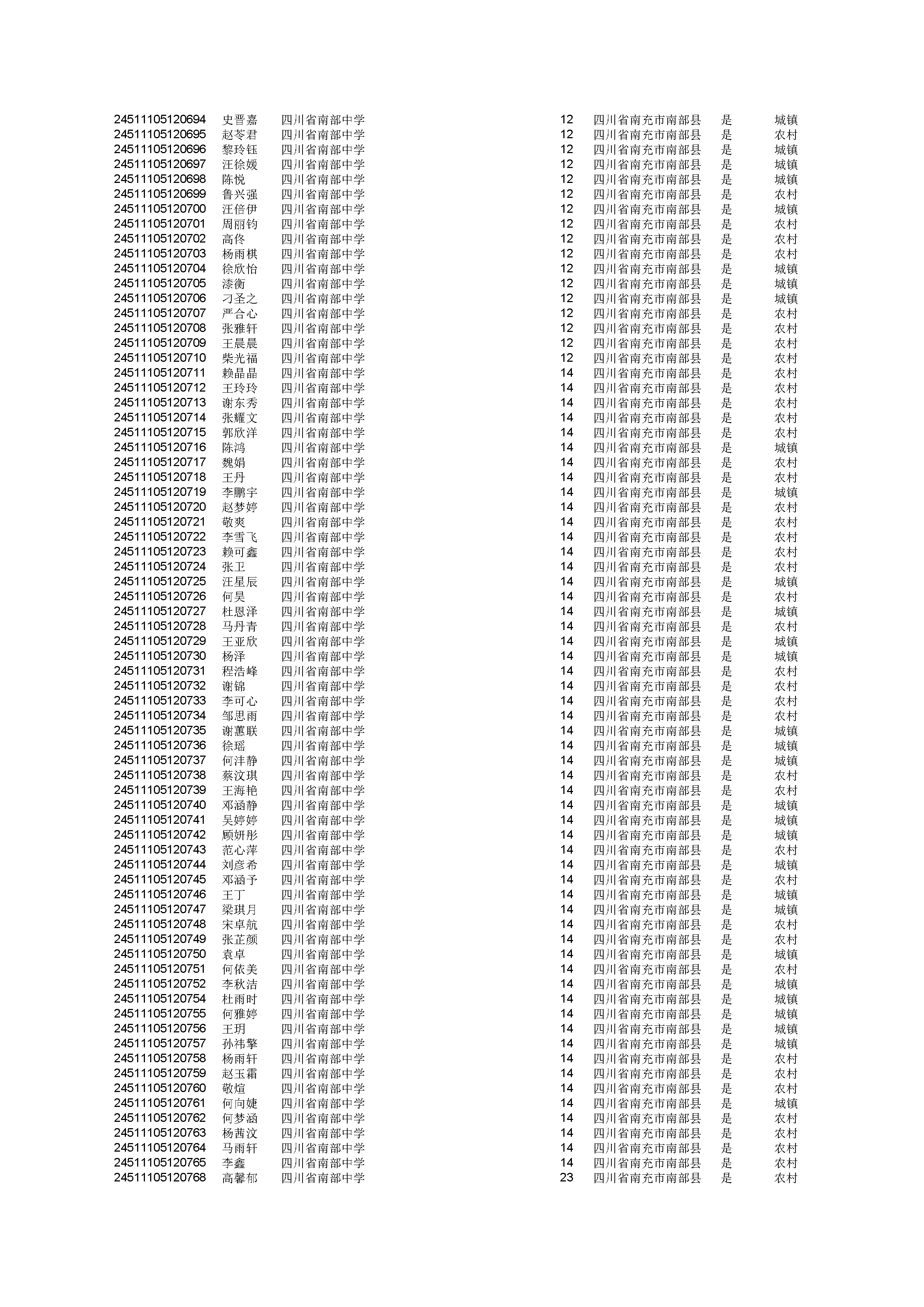 南充市2024年普通高校招生乡村振兴计划审核结果公示