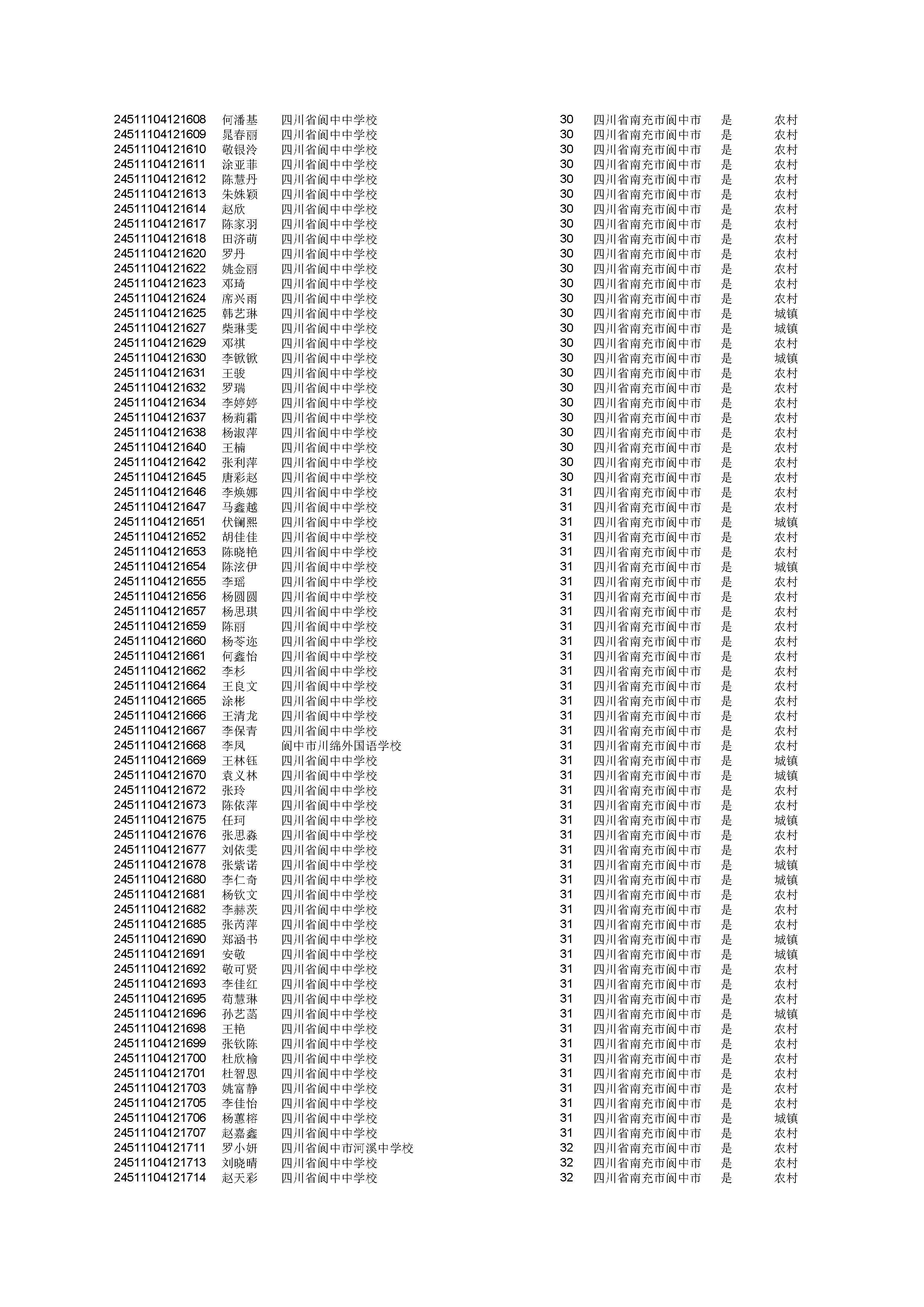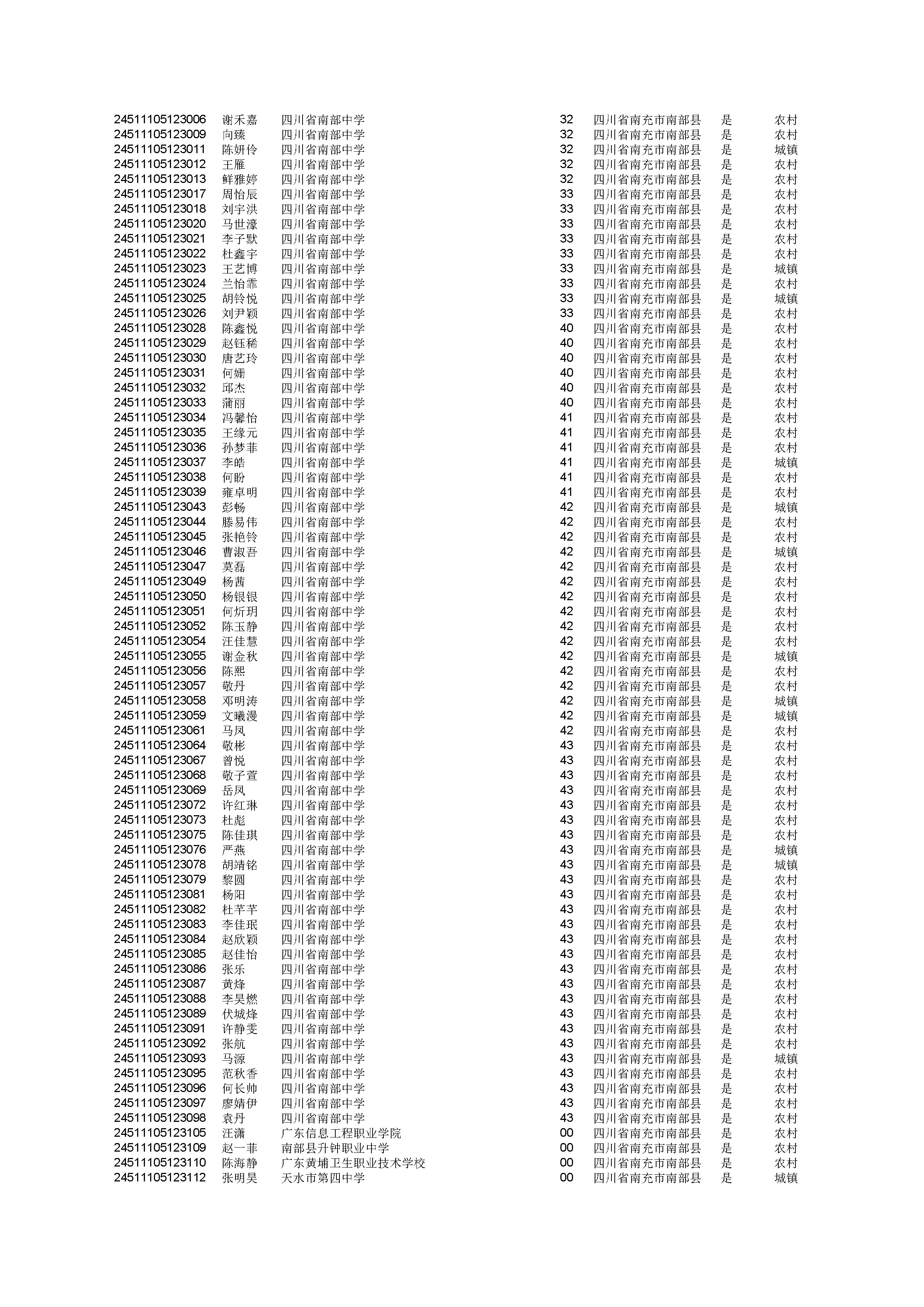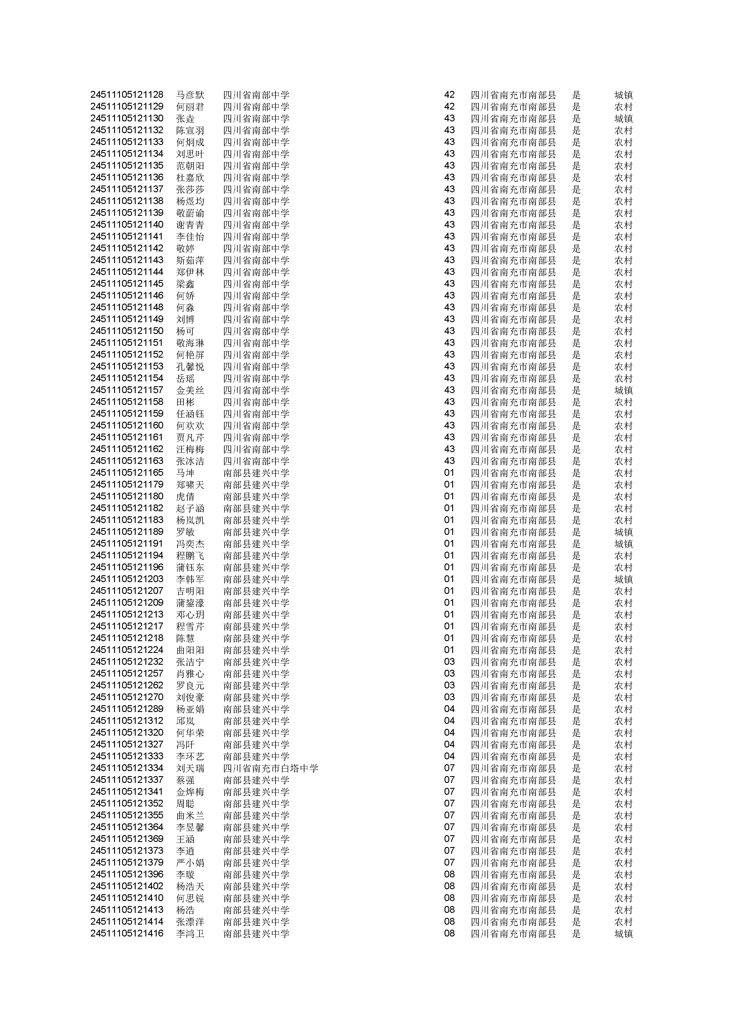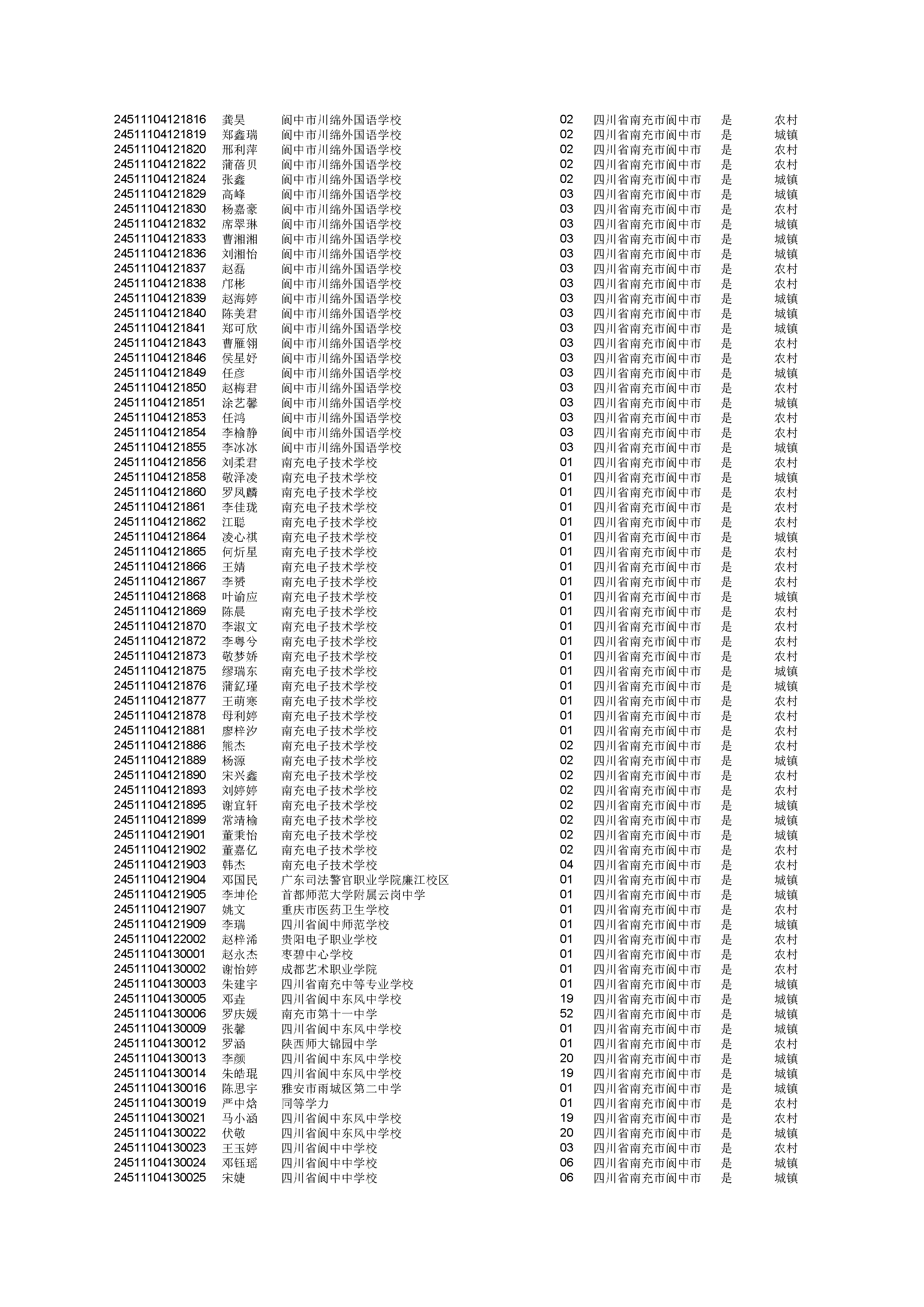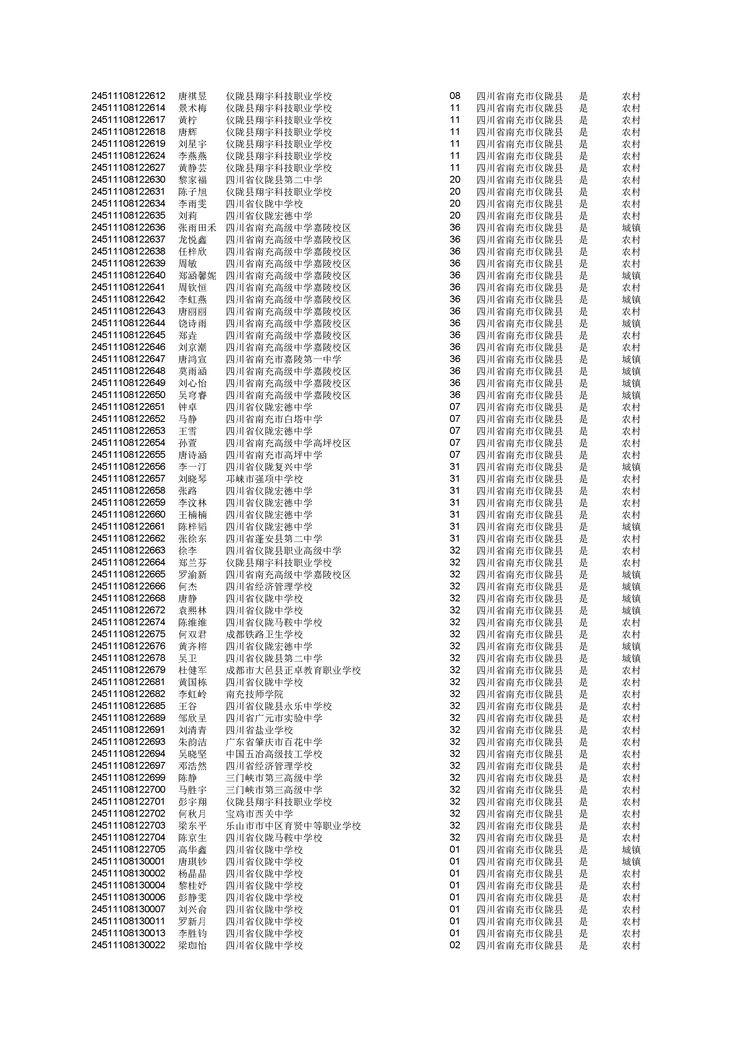南充市2024年普通高校招生乡村振兴计划审核结果公示