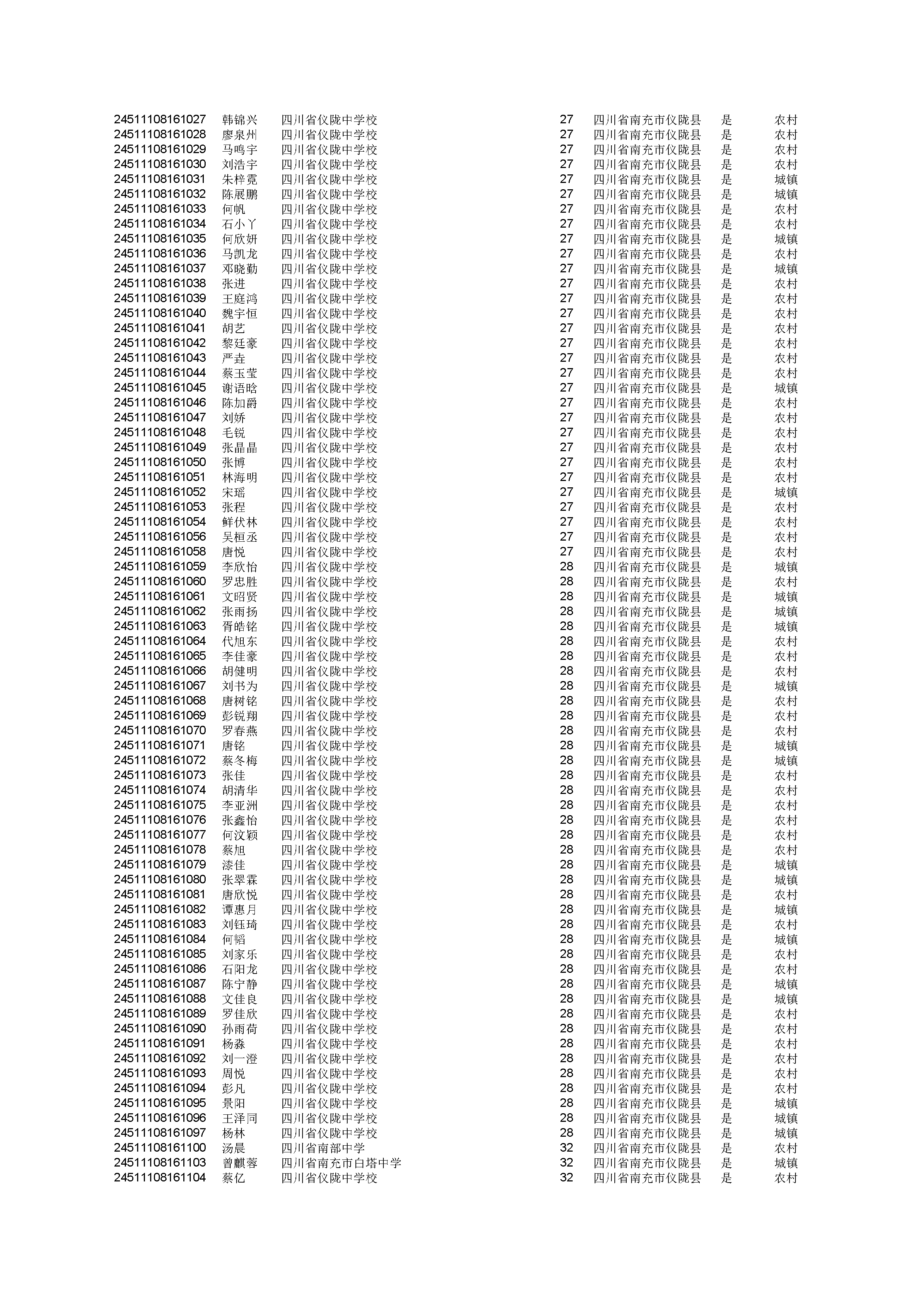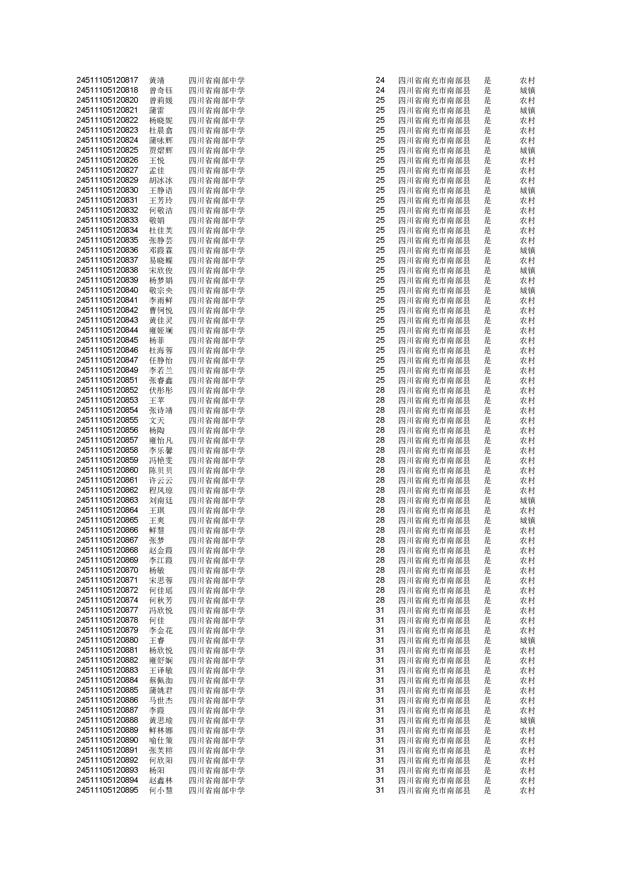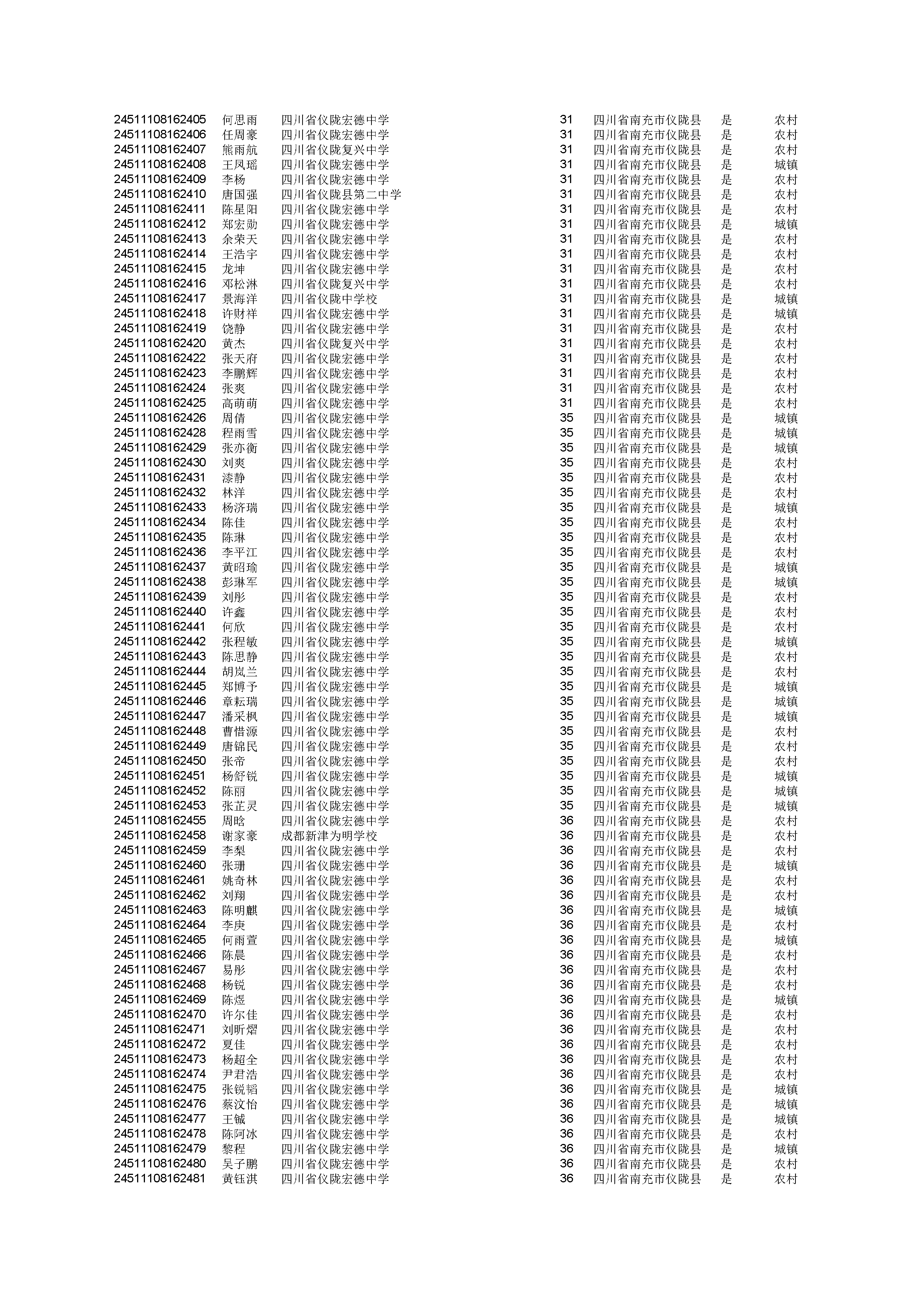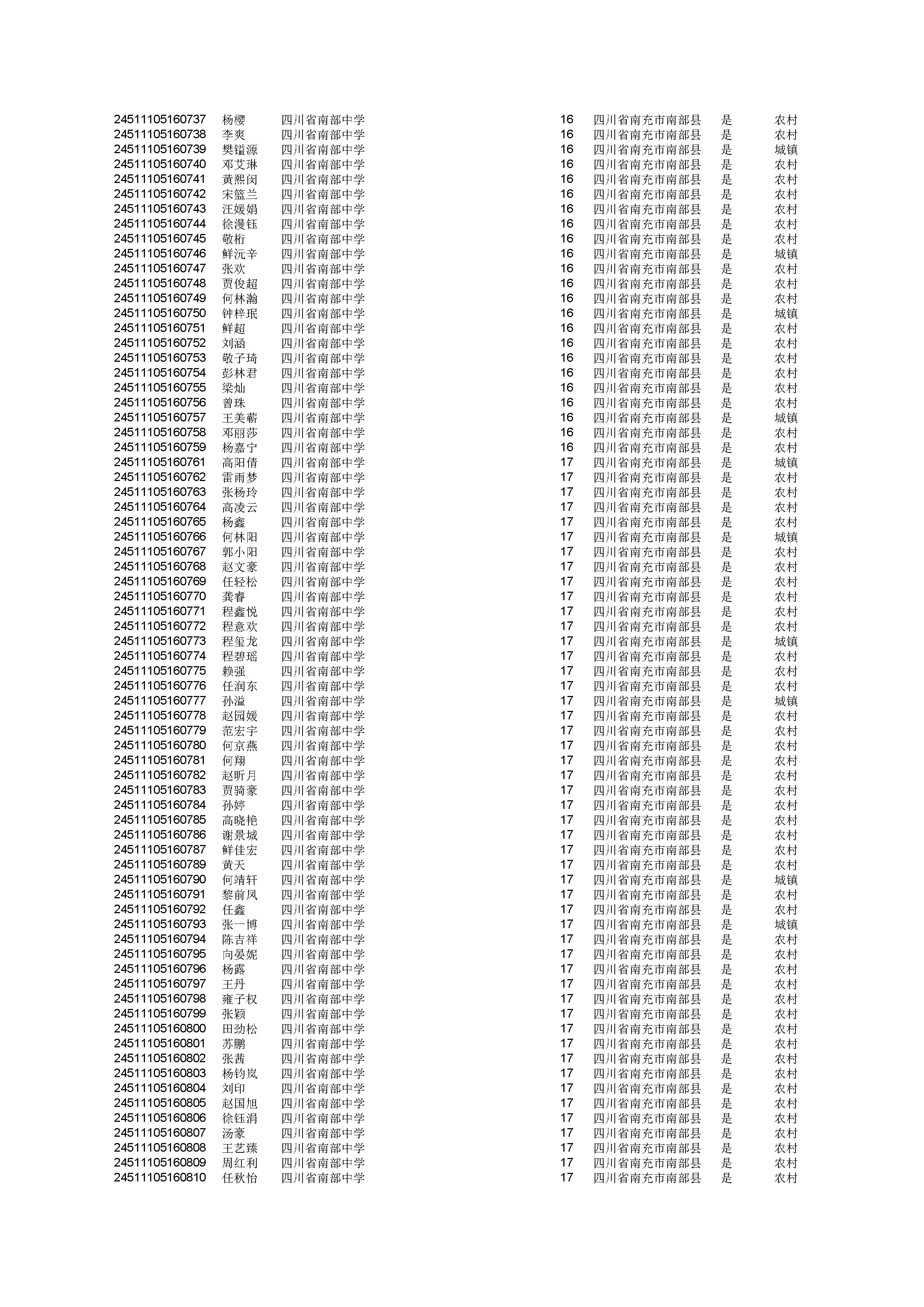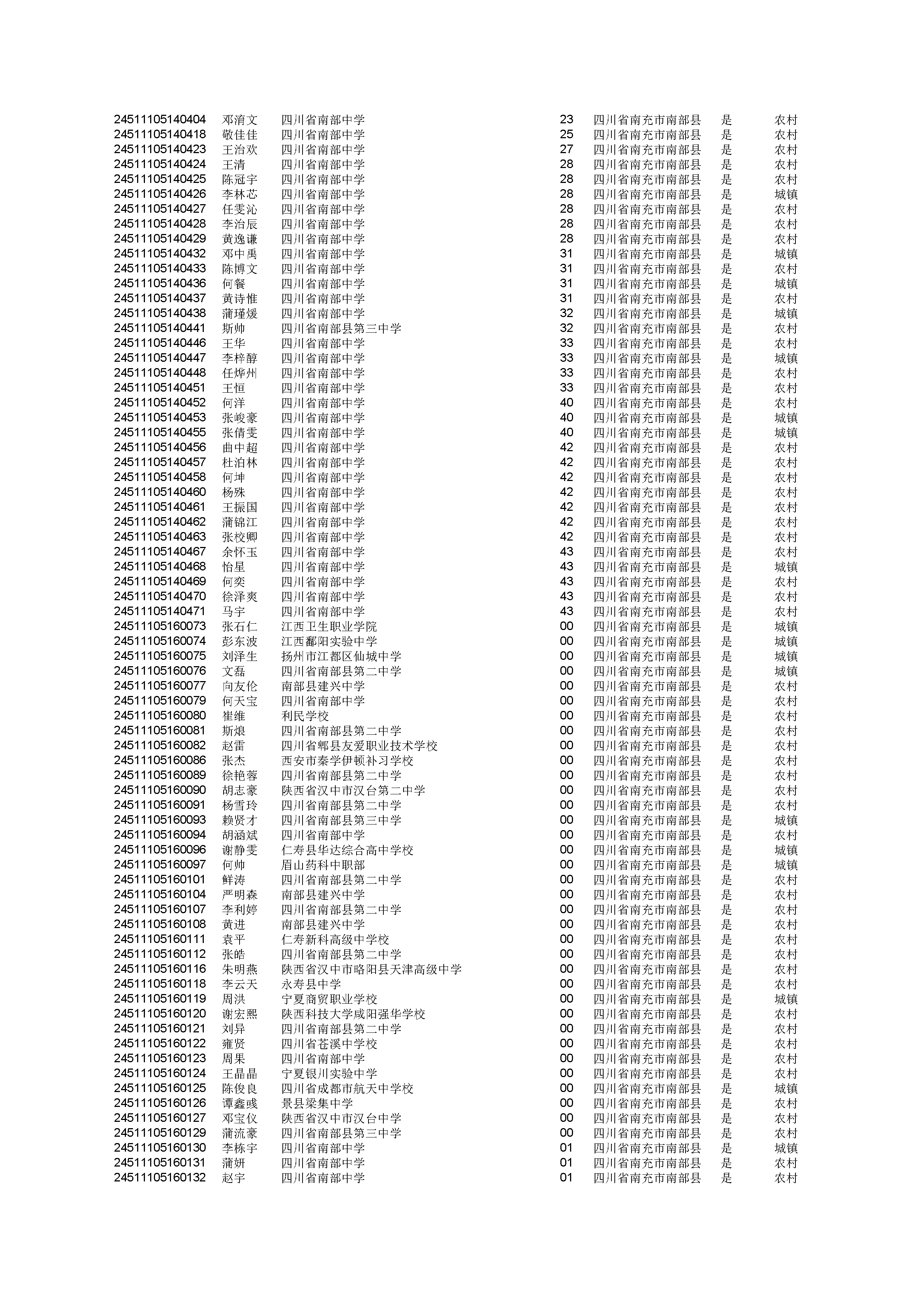 南充市2024年普通高校招生乡村振兴计划审核结果公示