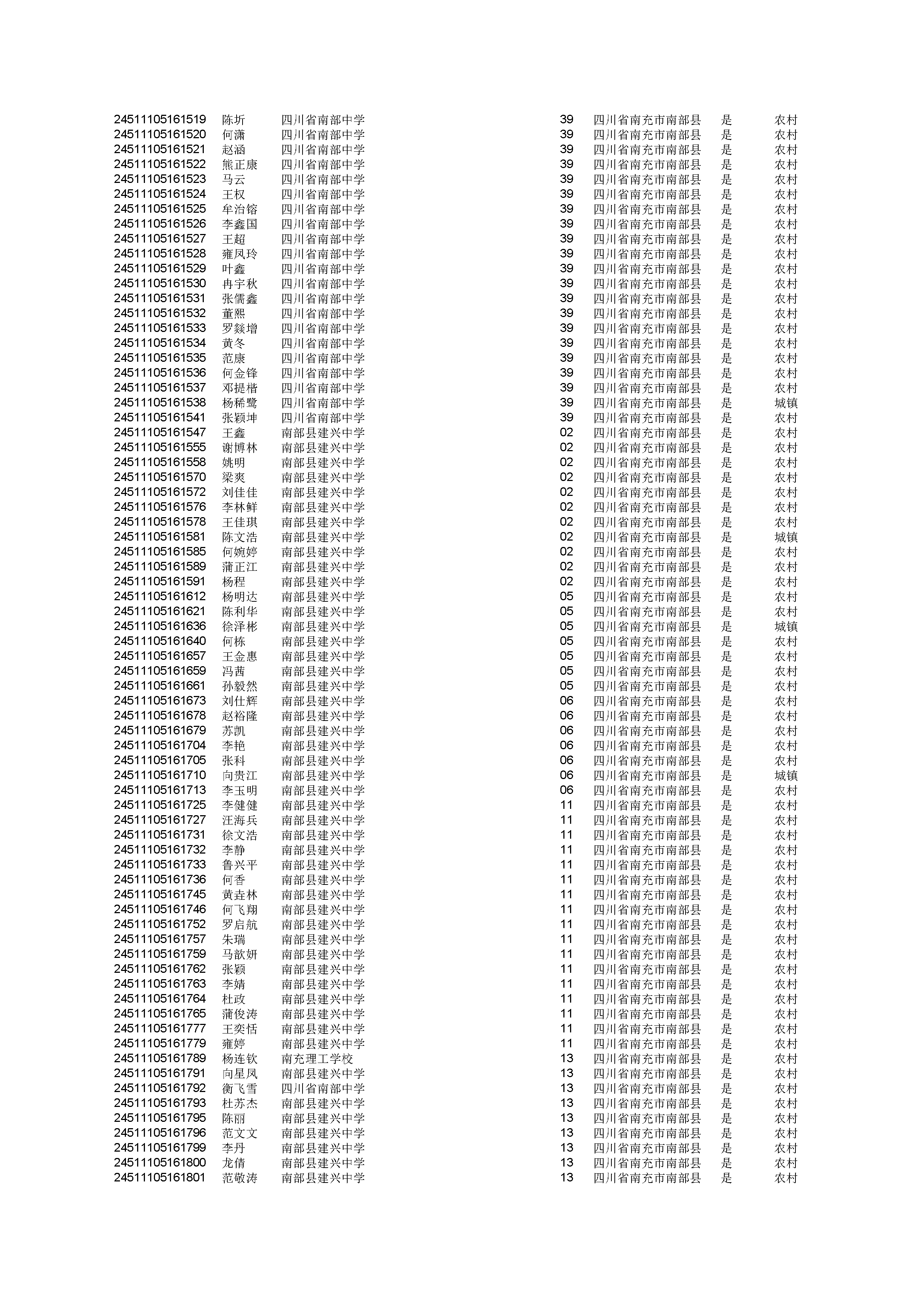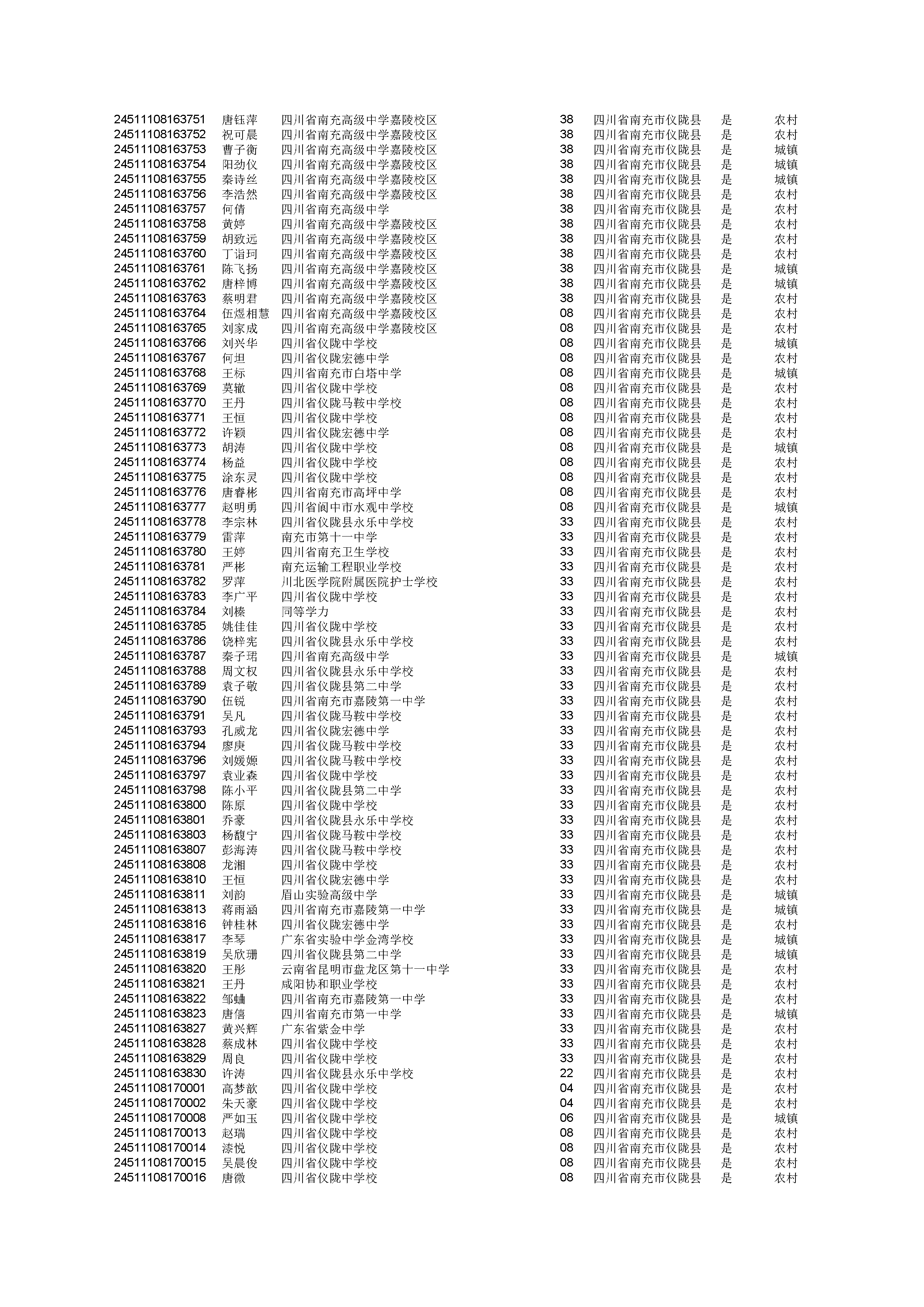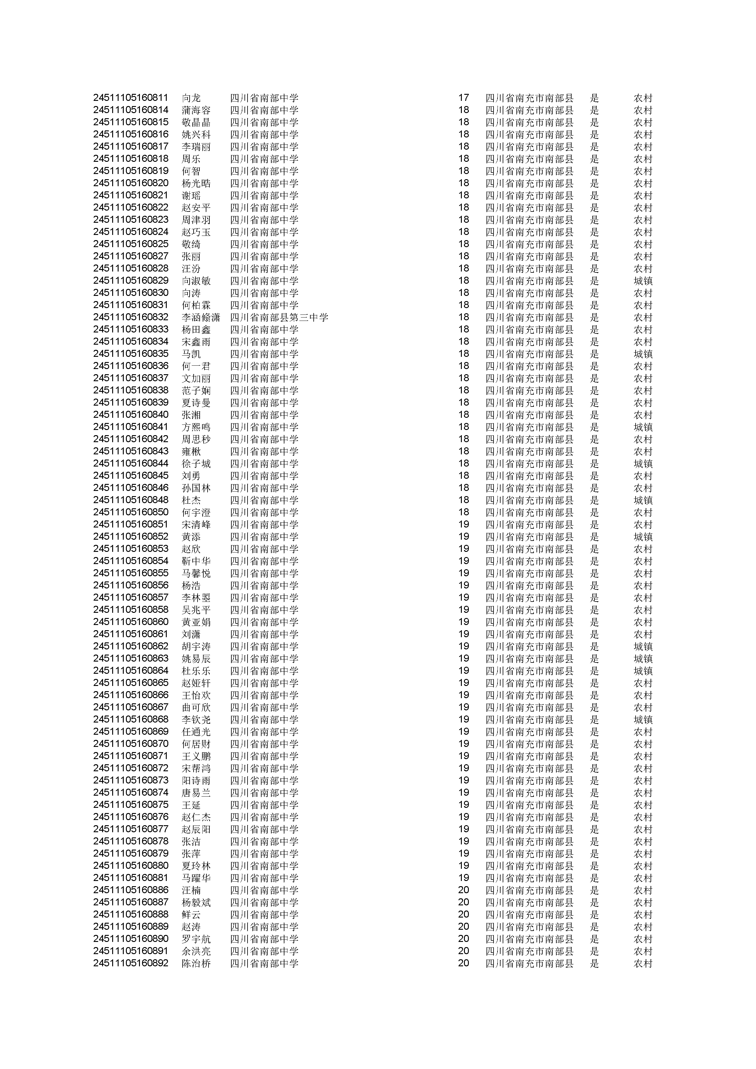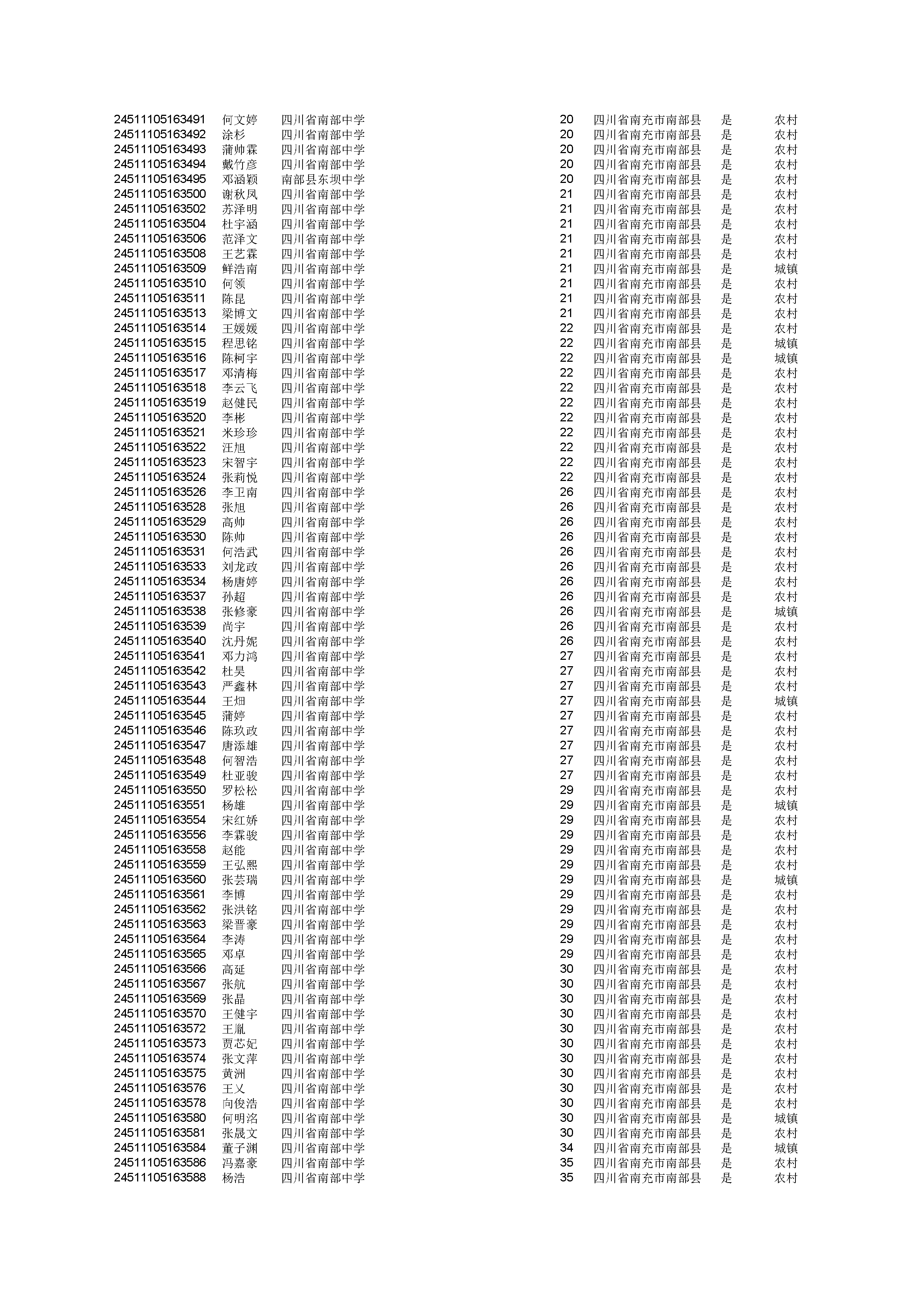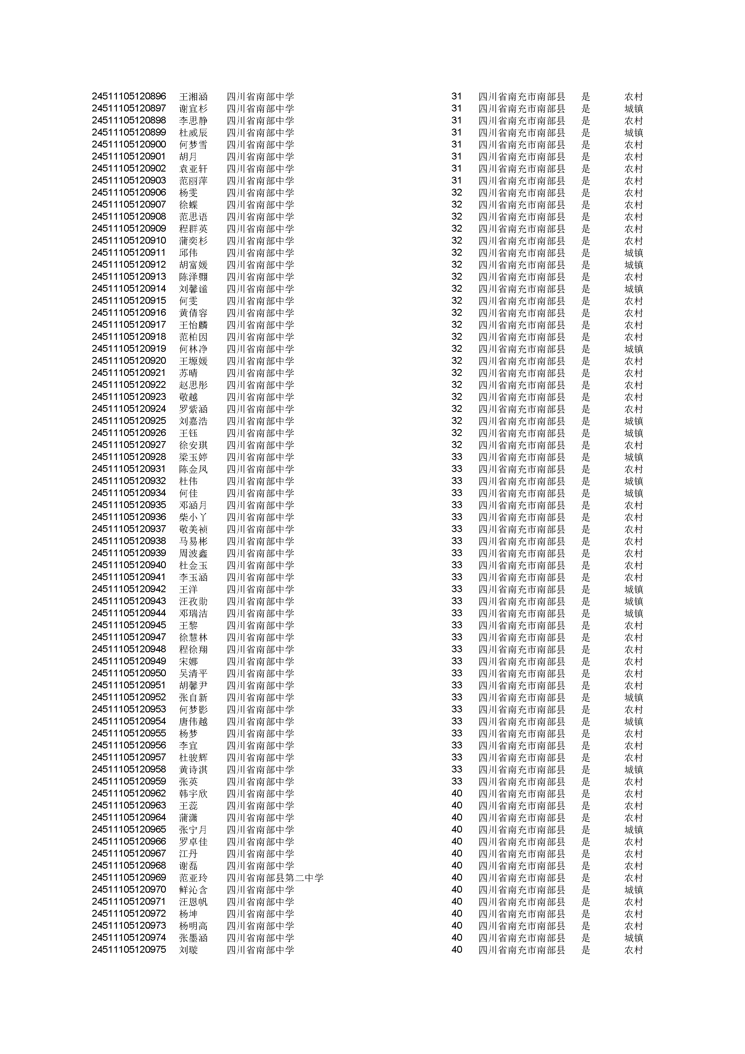 南充市2024年普通高校招生乡村振兴计划审核结果公示
