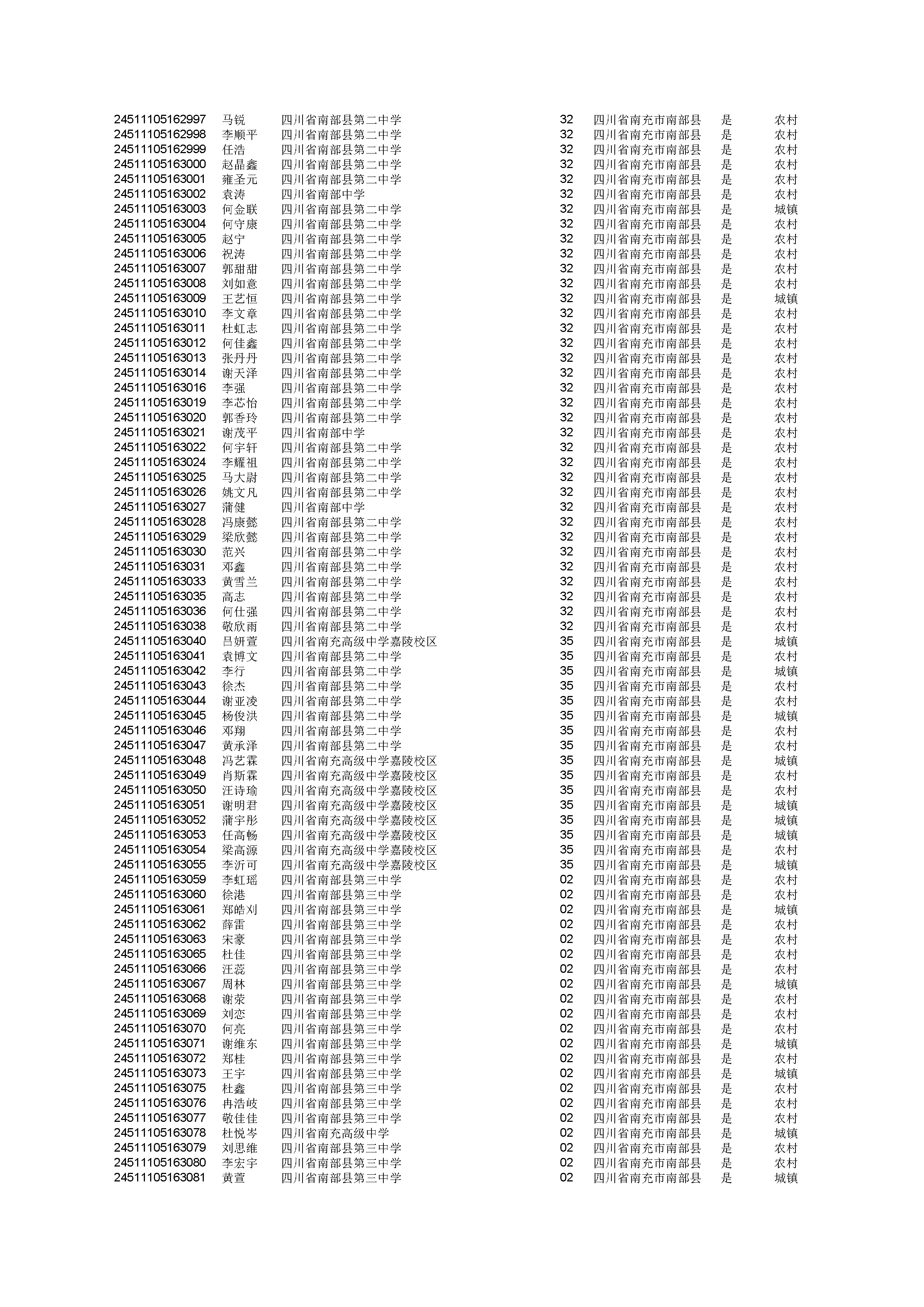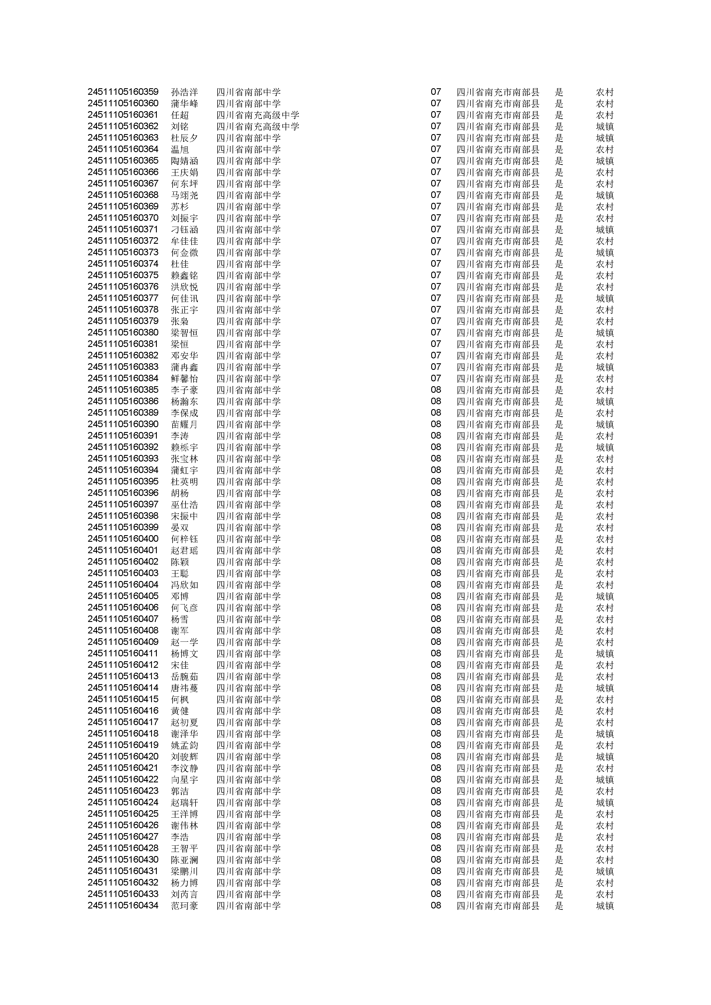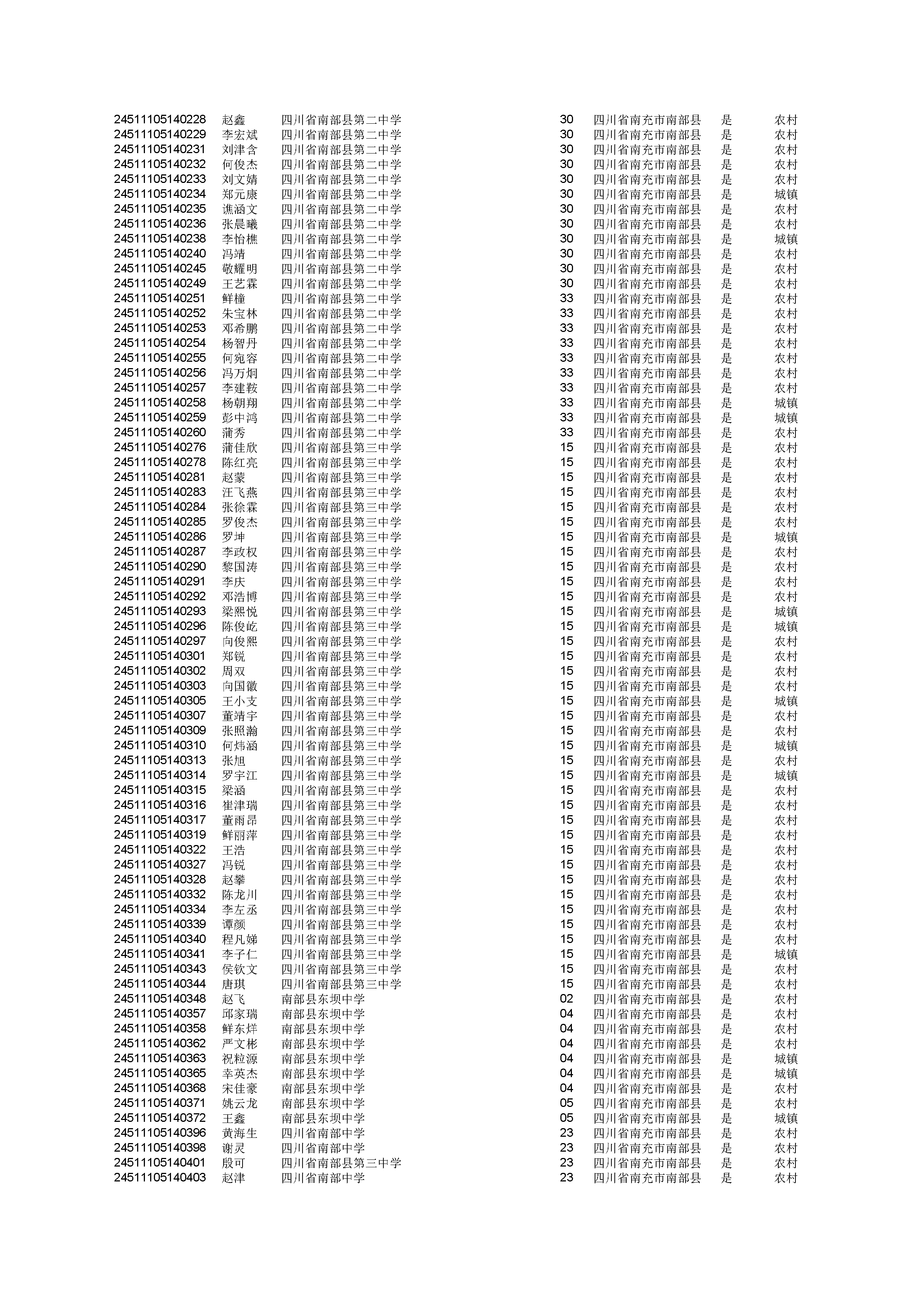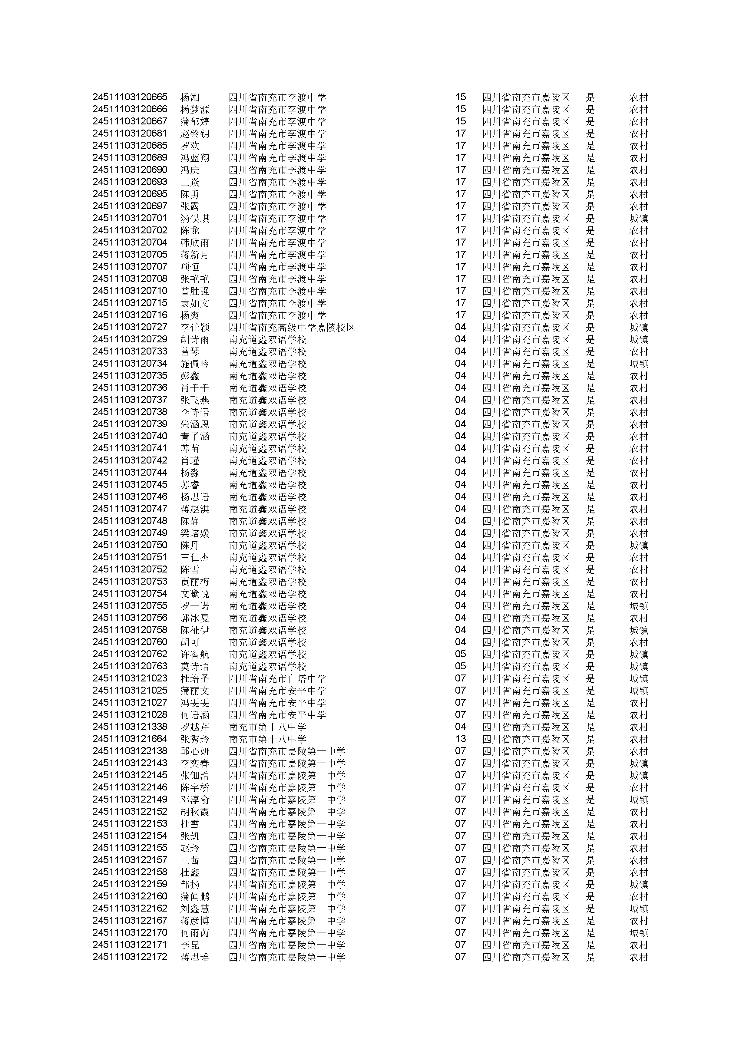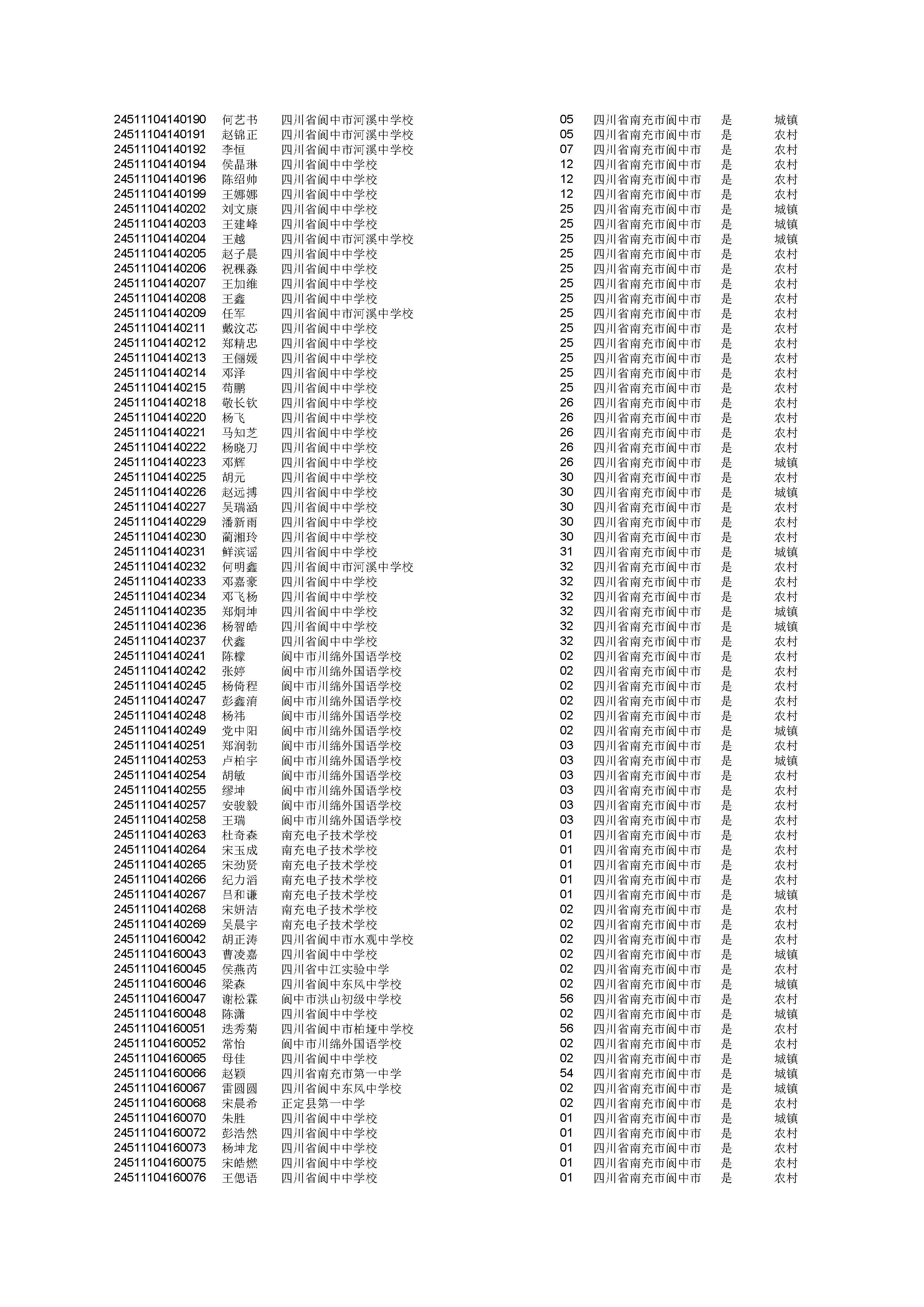 南充市2024年普通高校招生乡村振兴计划审核结果公示