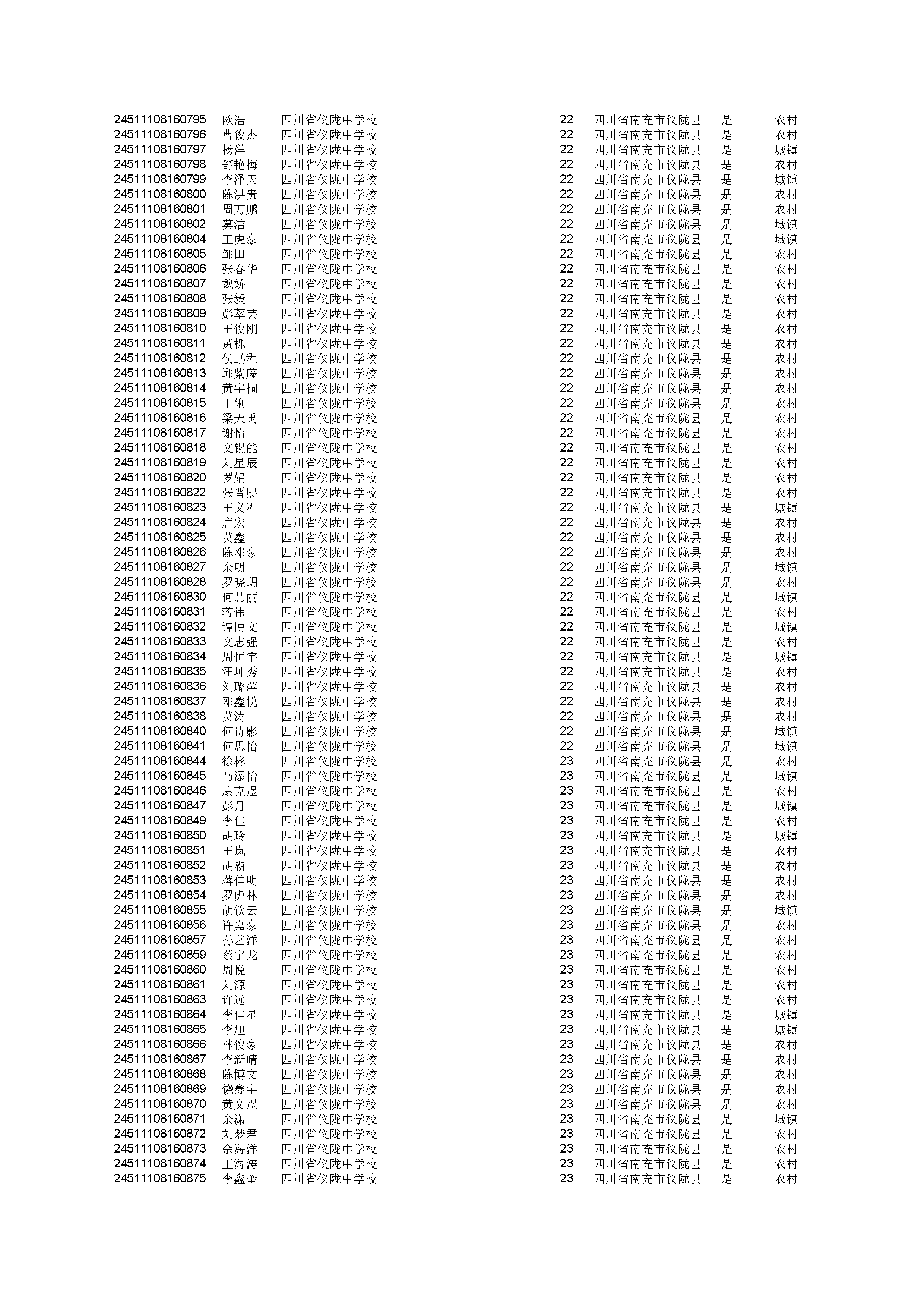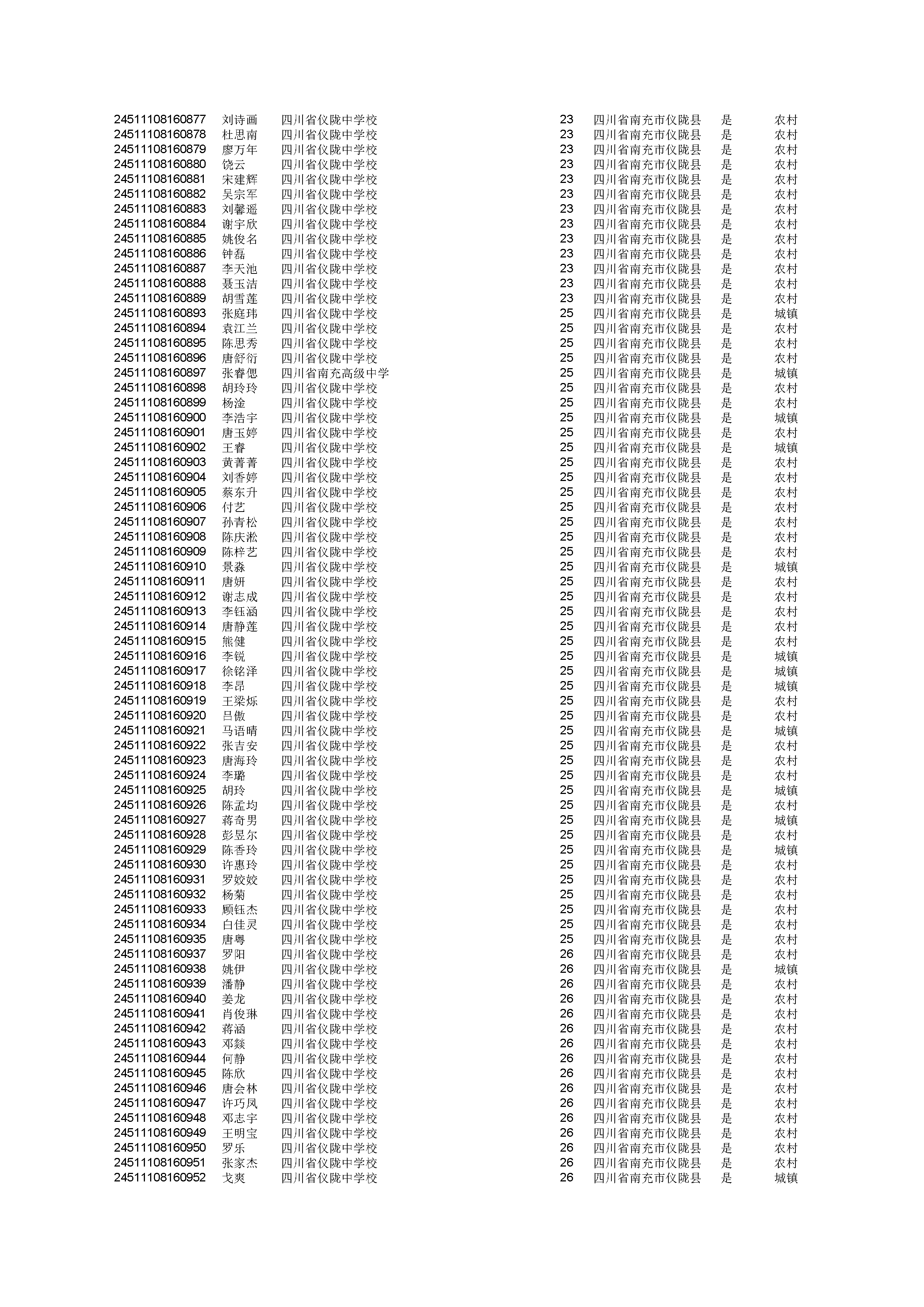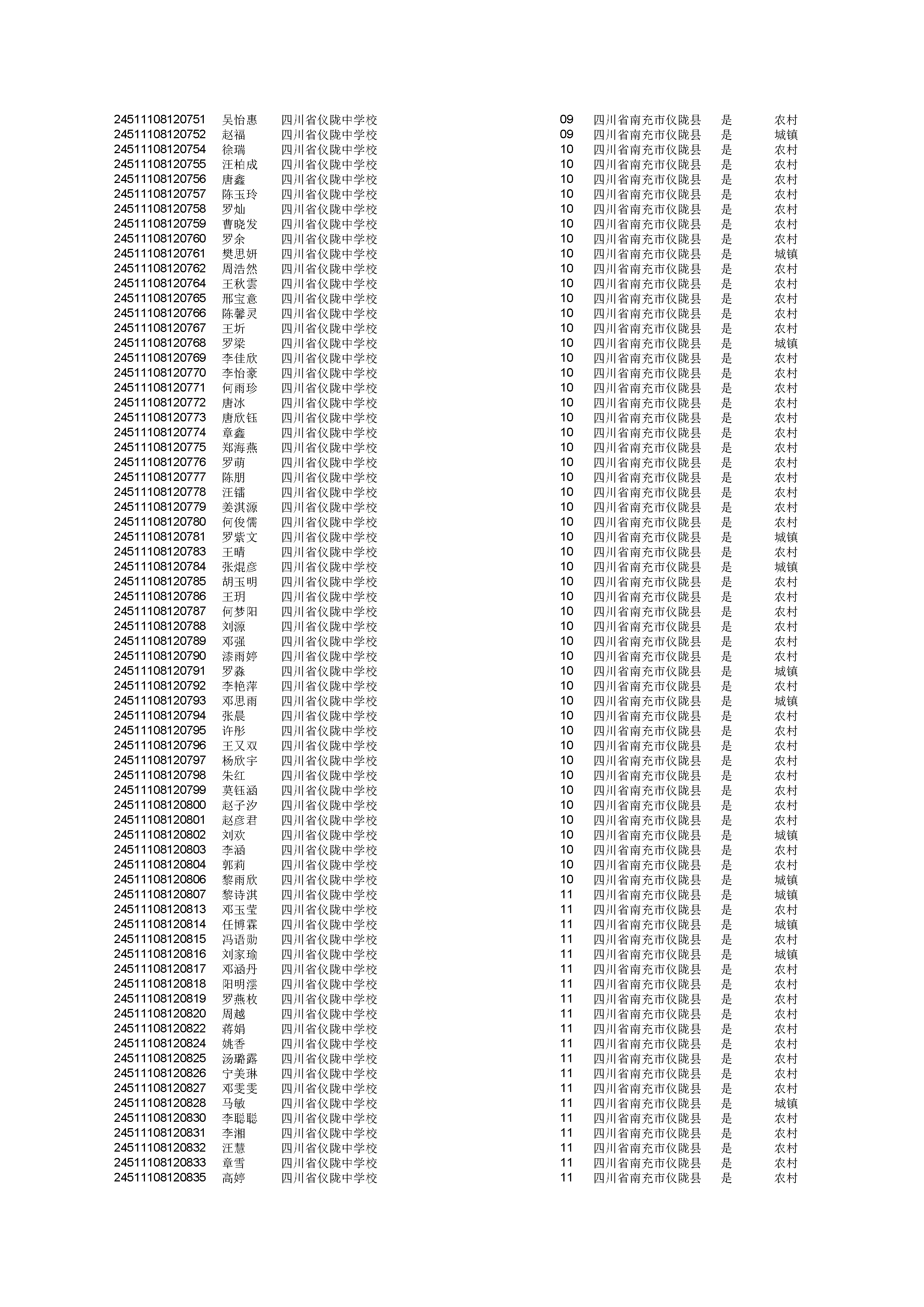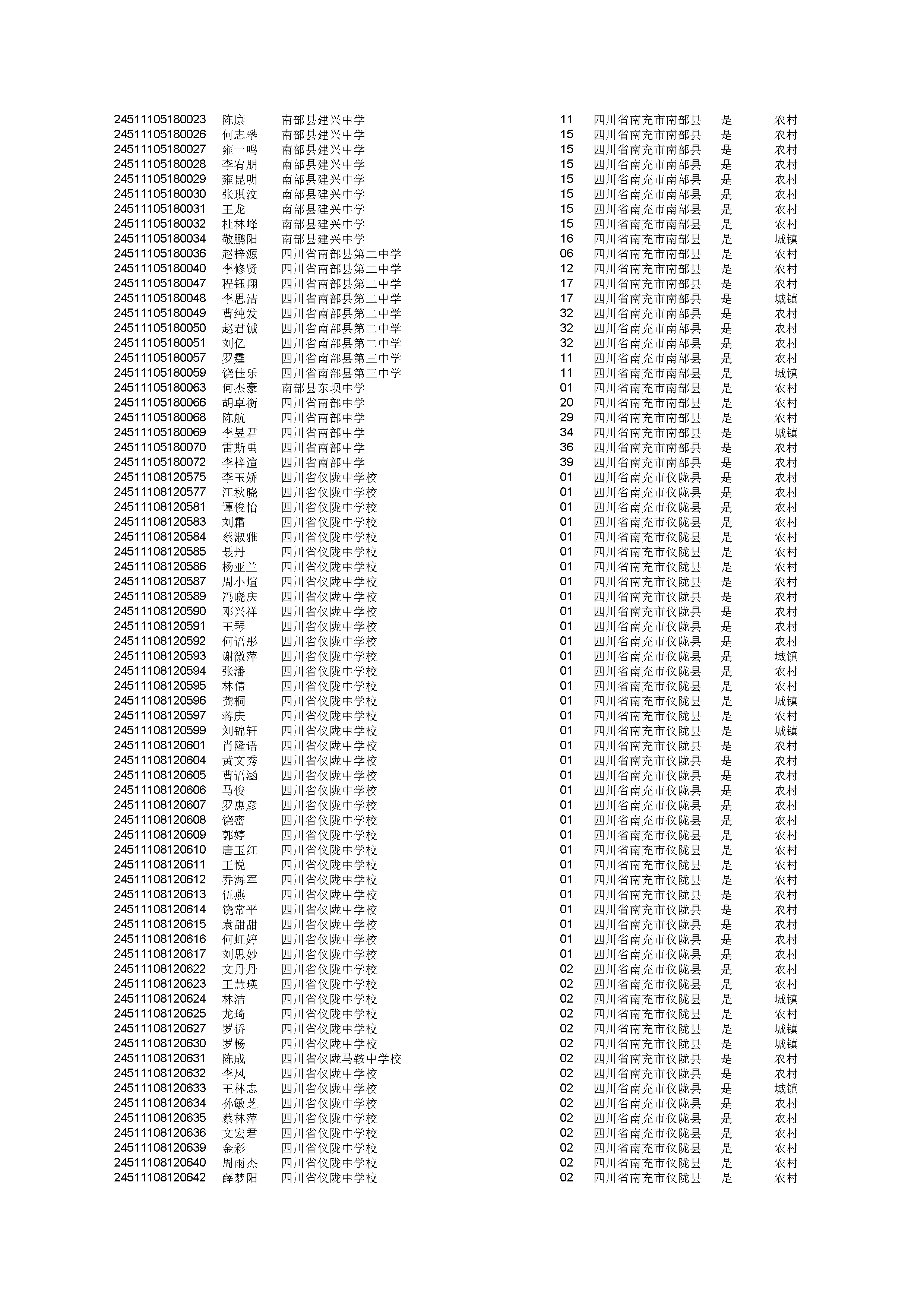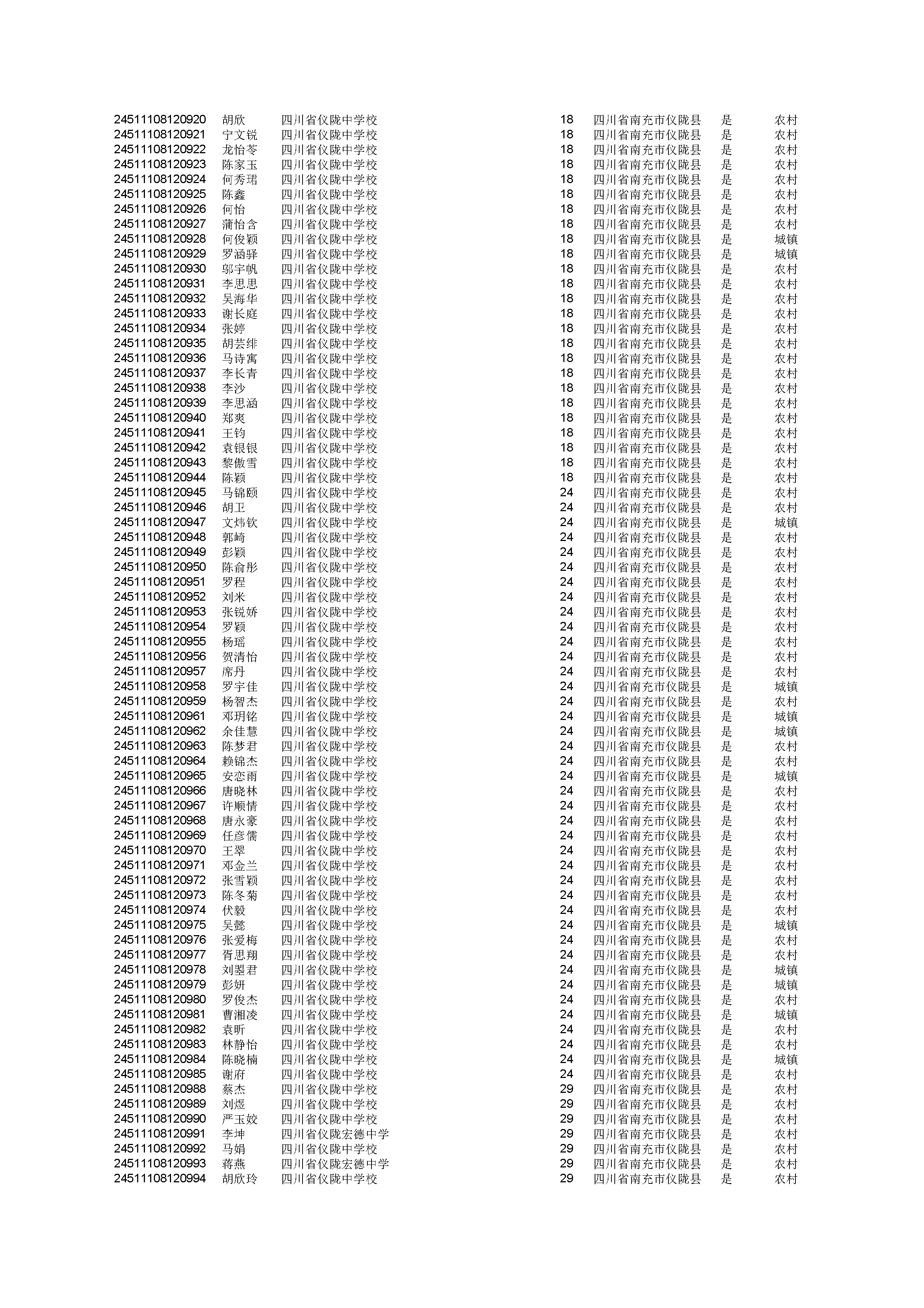 南充市2024年普通高校招生乡村振兴计划审核结果公示