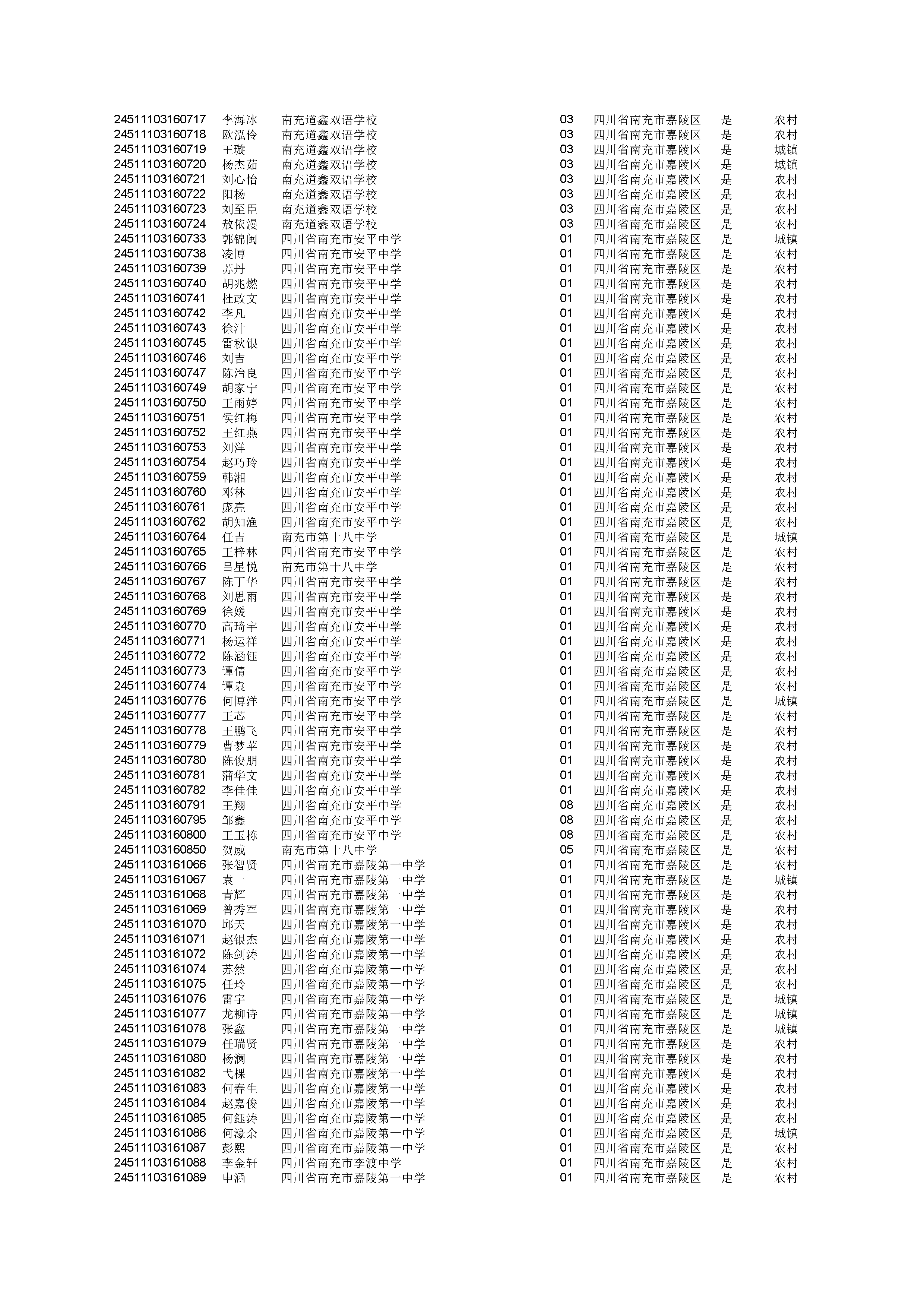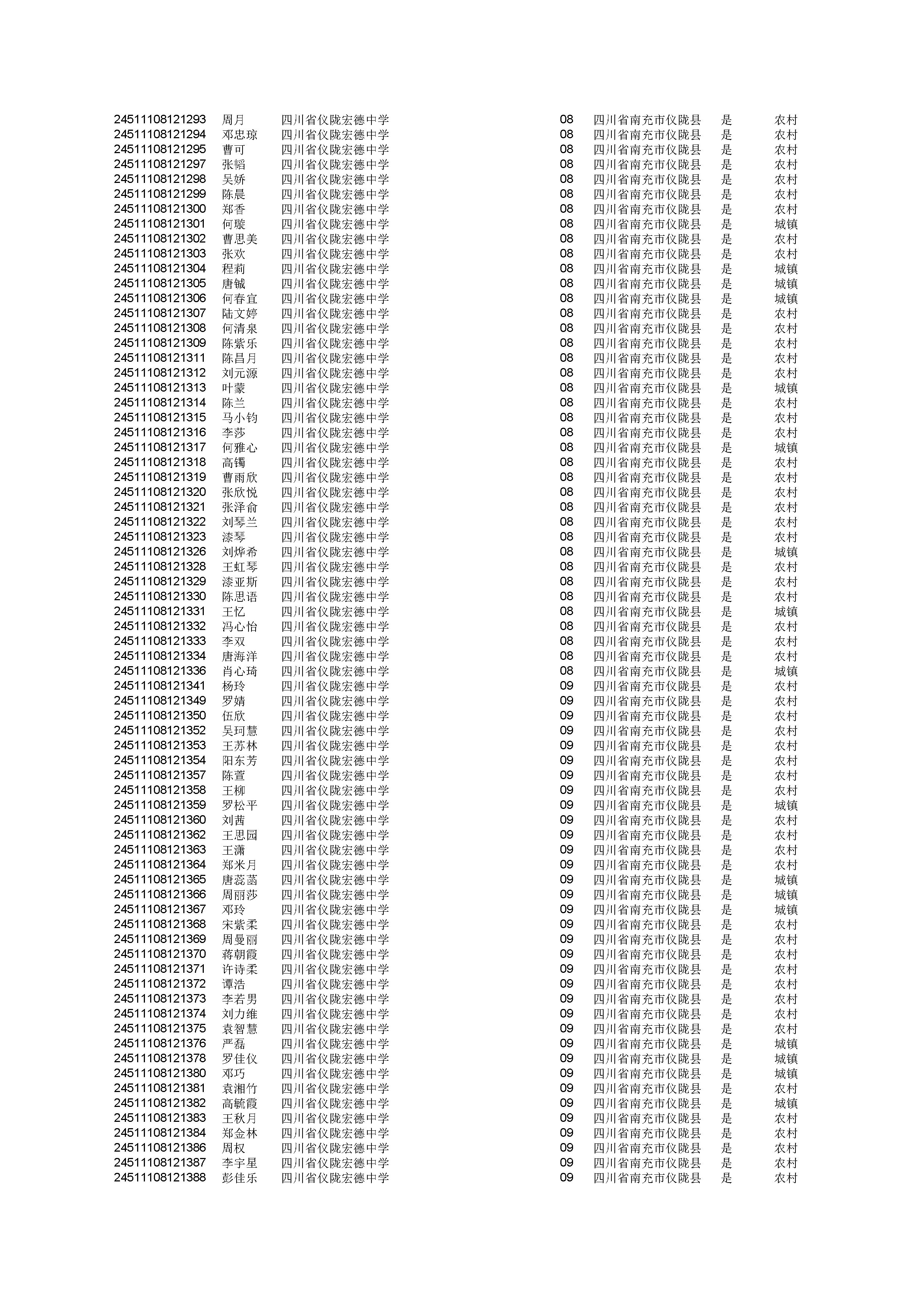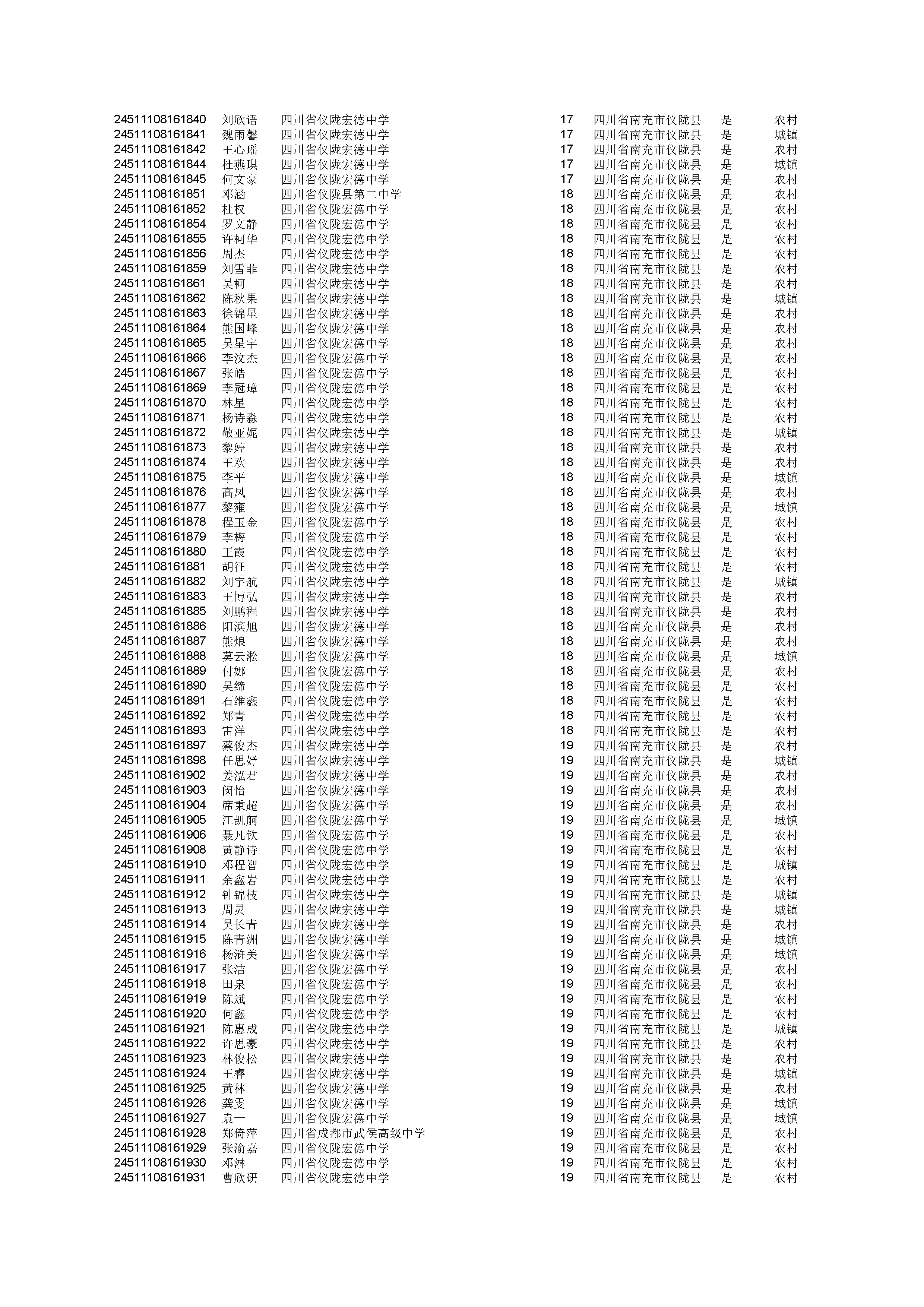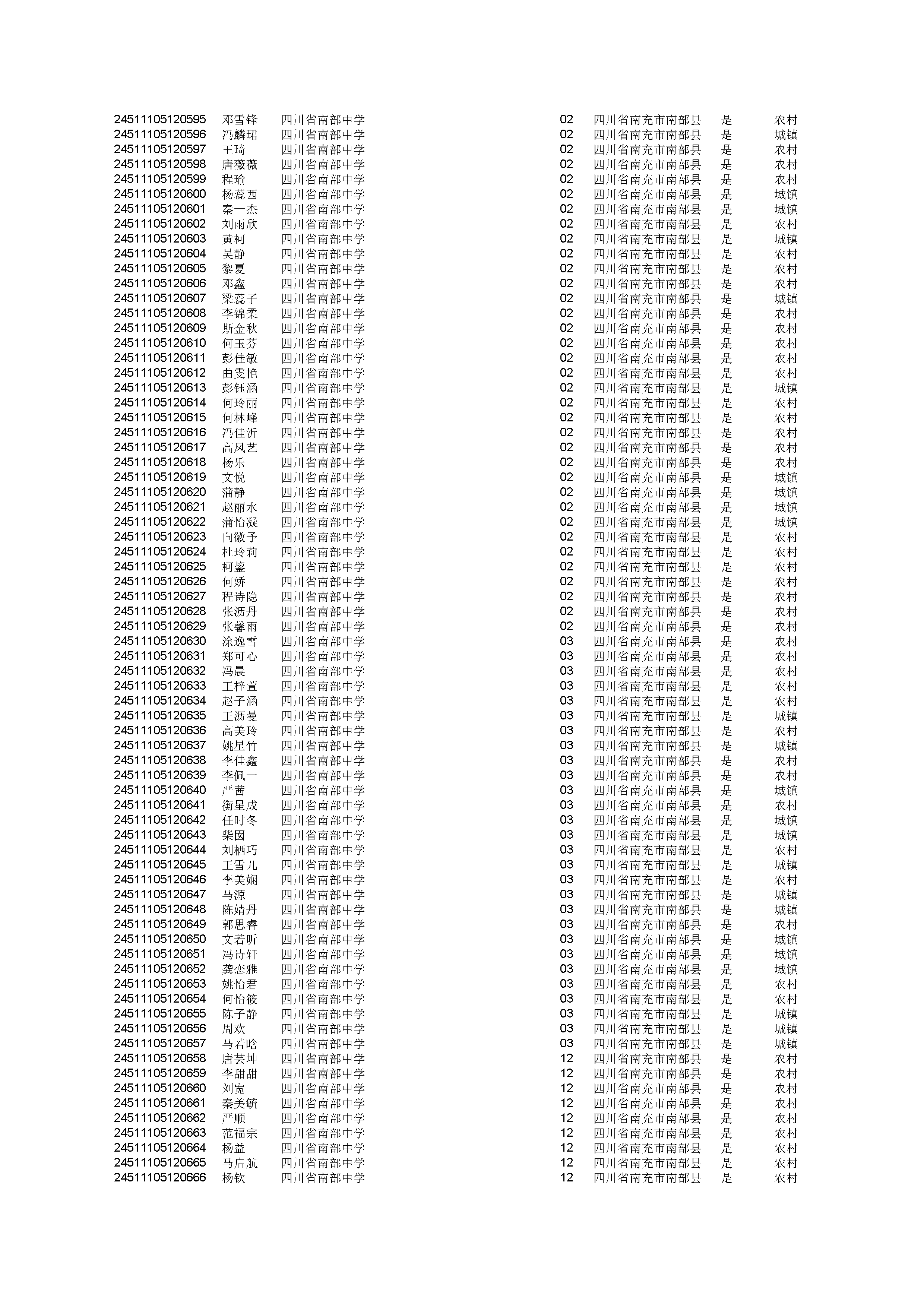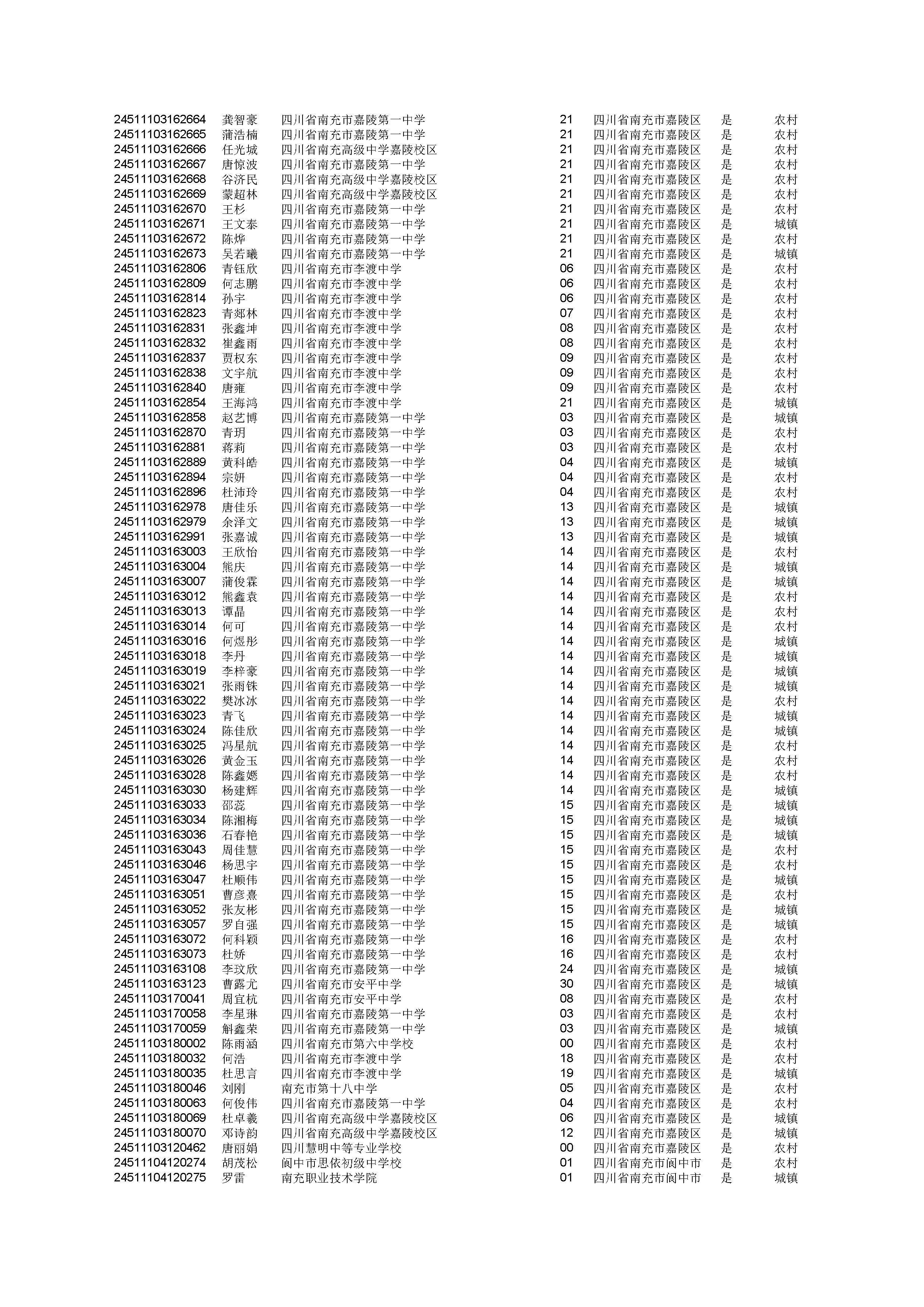 南充市2024年普通高校招生乡村振兴计划审核结果公示
