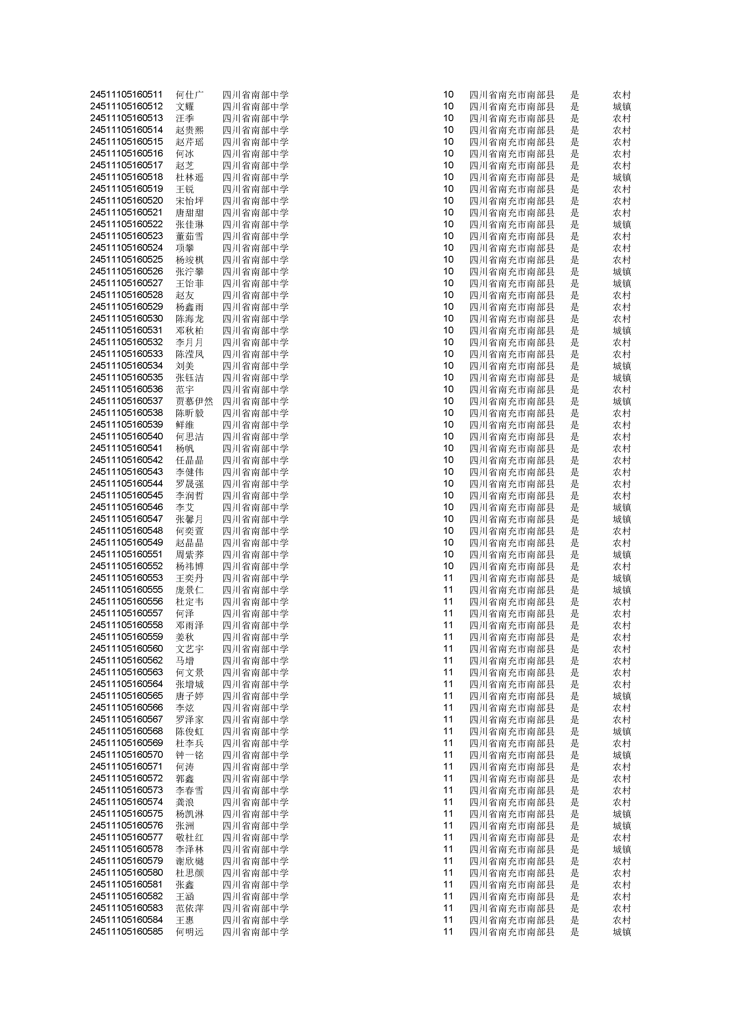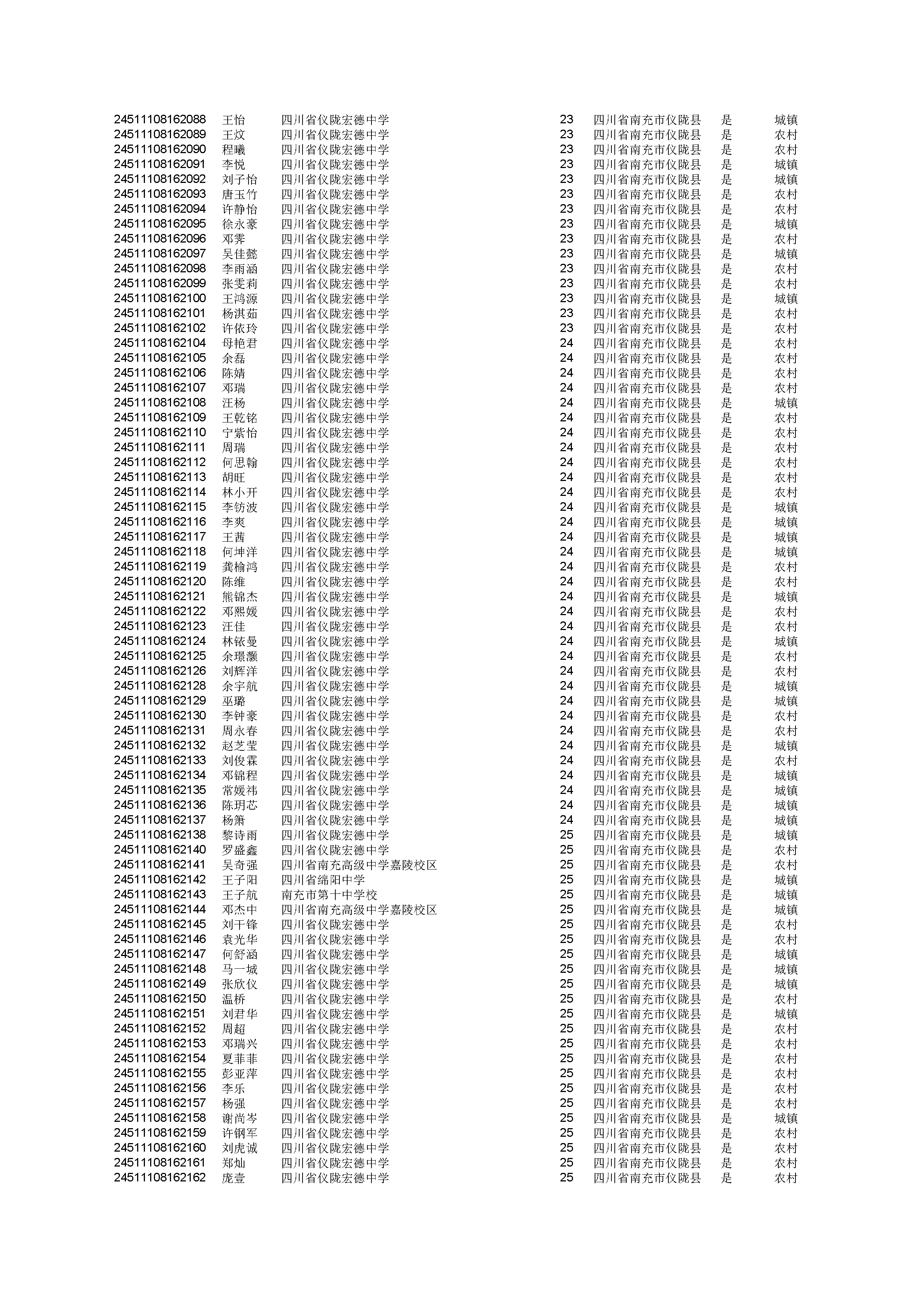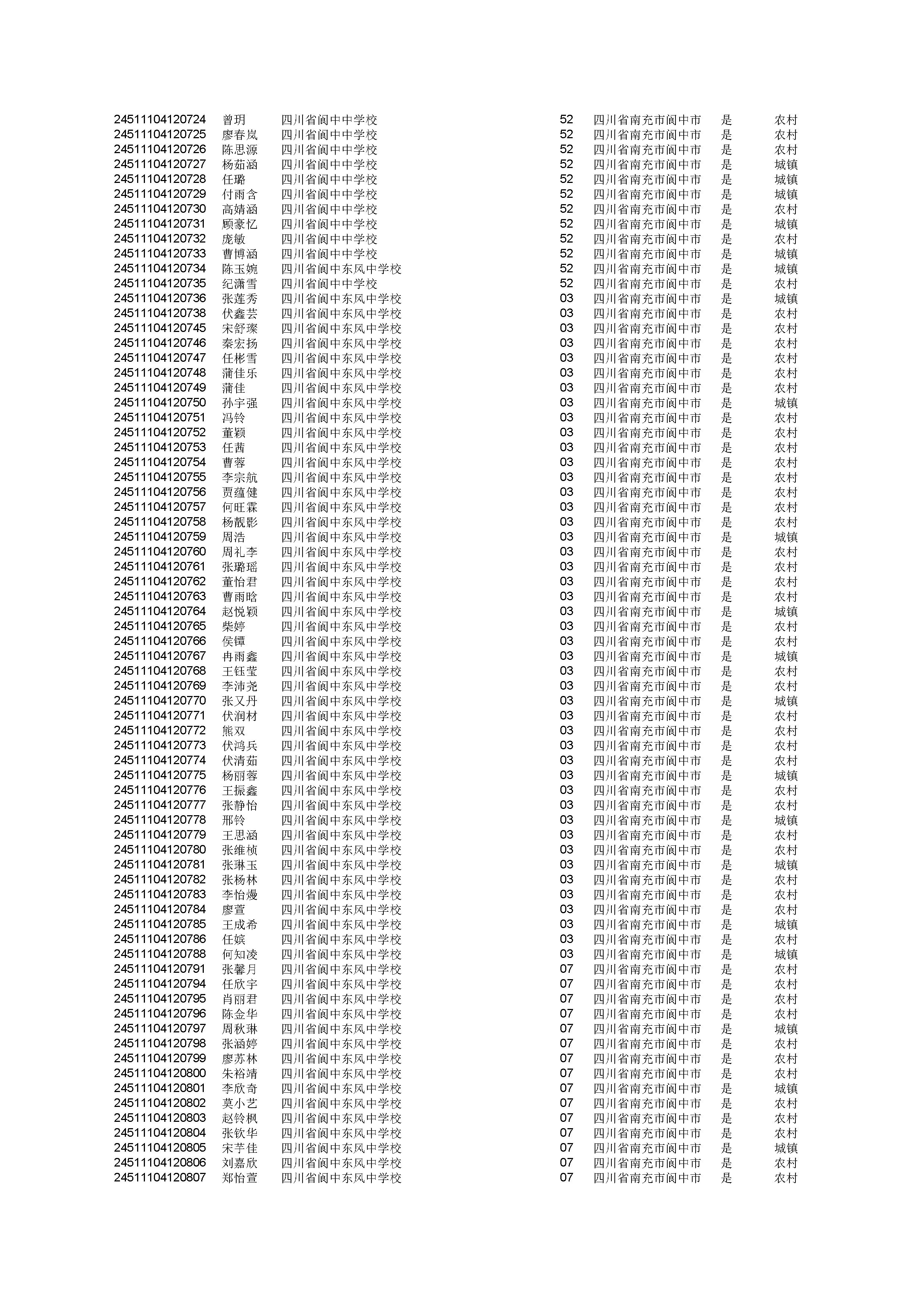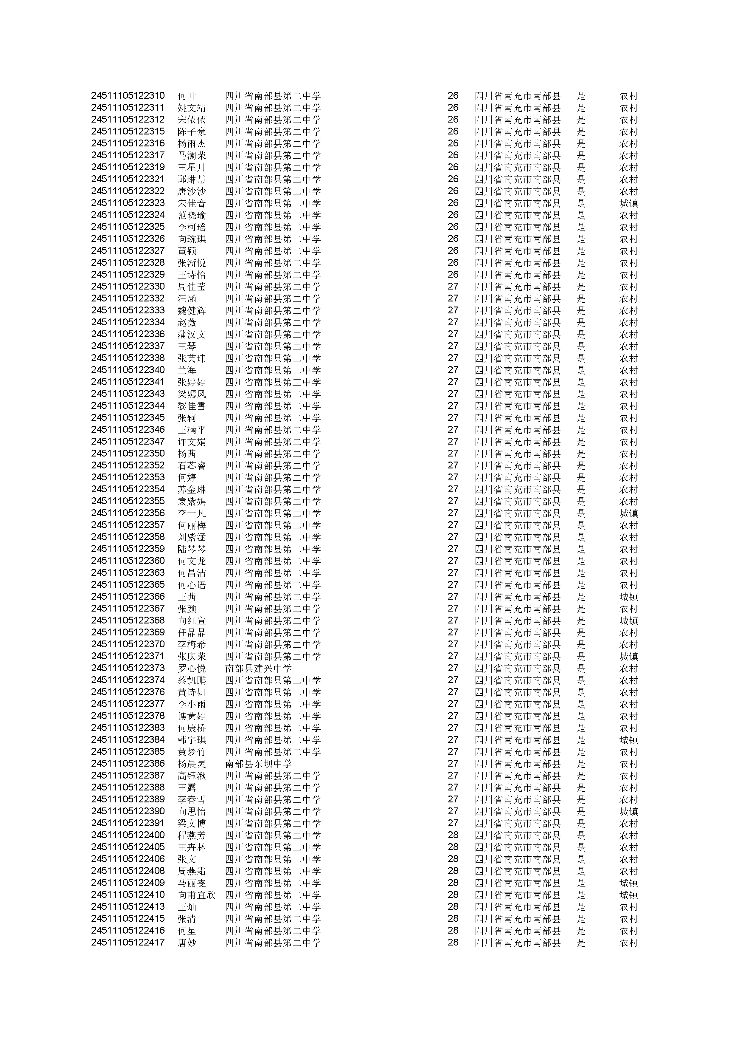 南充市2024年普通高校招生乡村振兴计划审核结果公示
