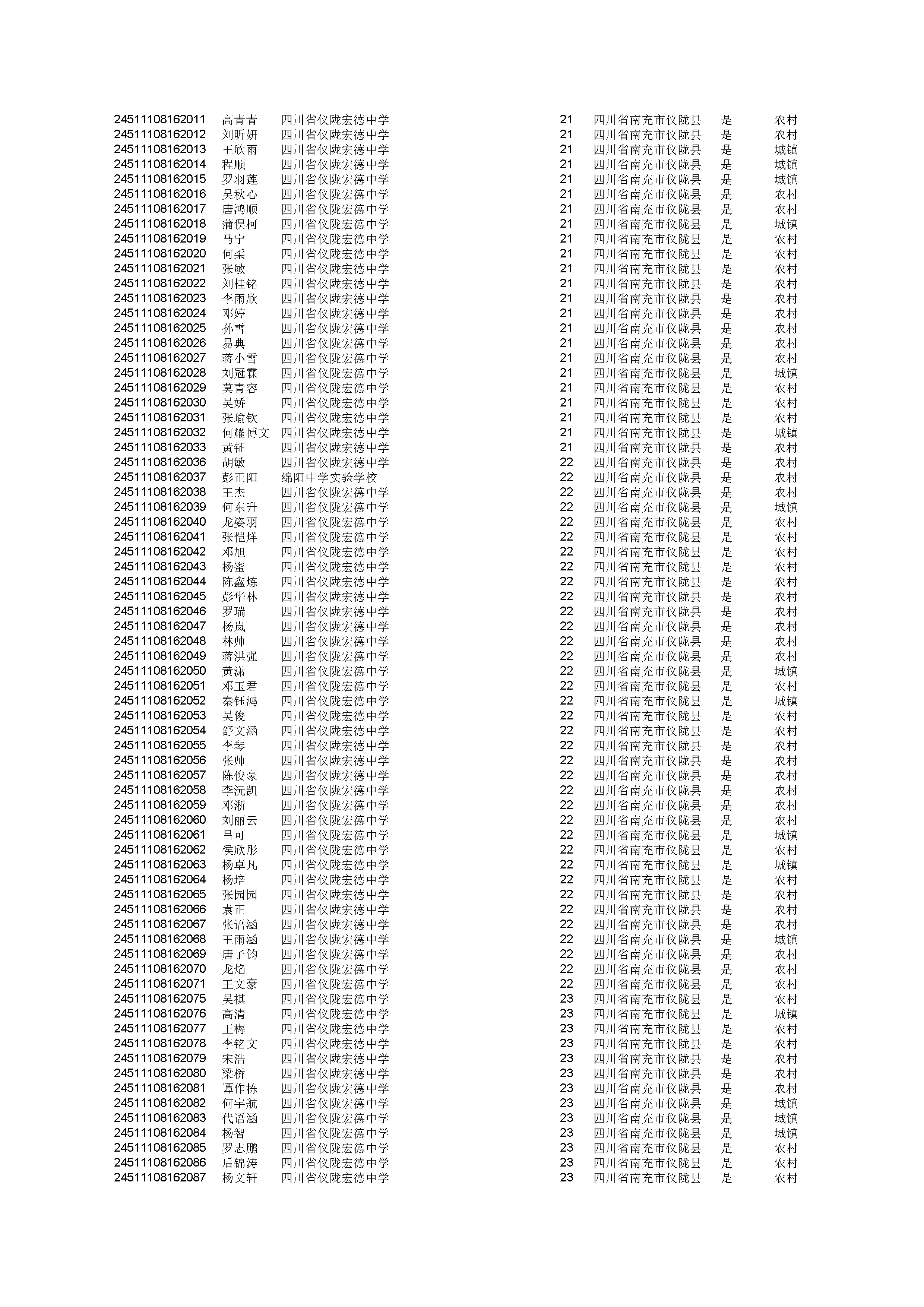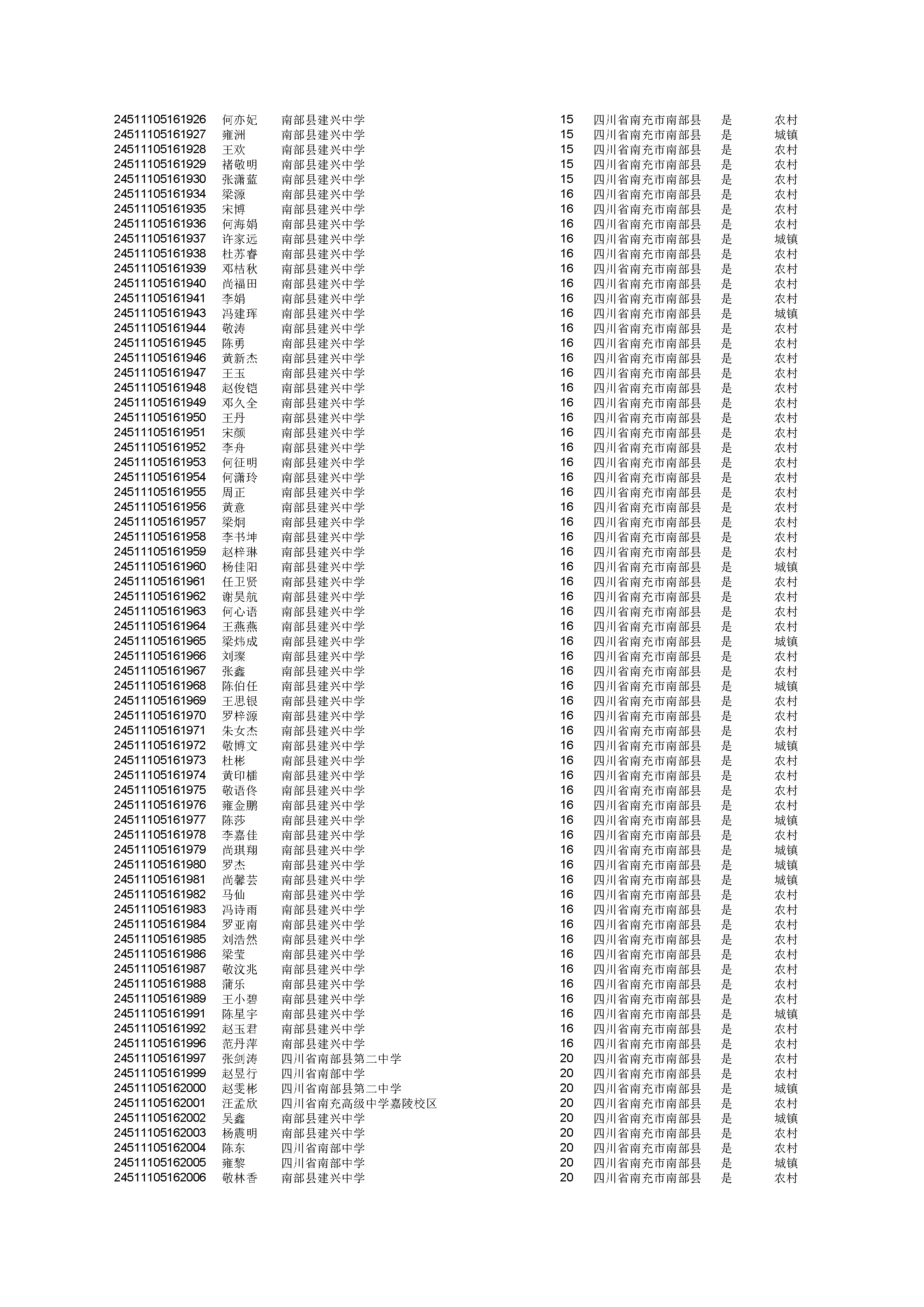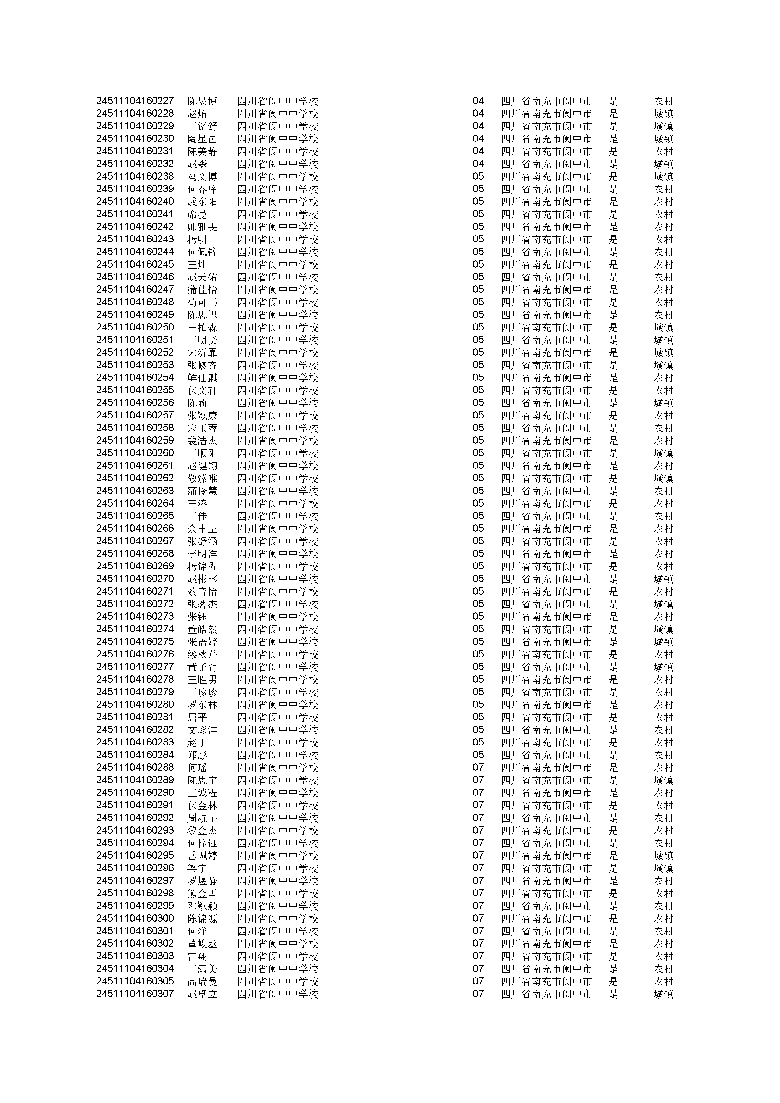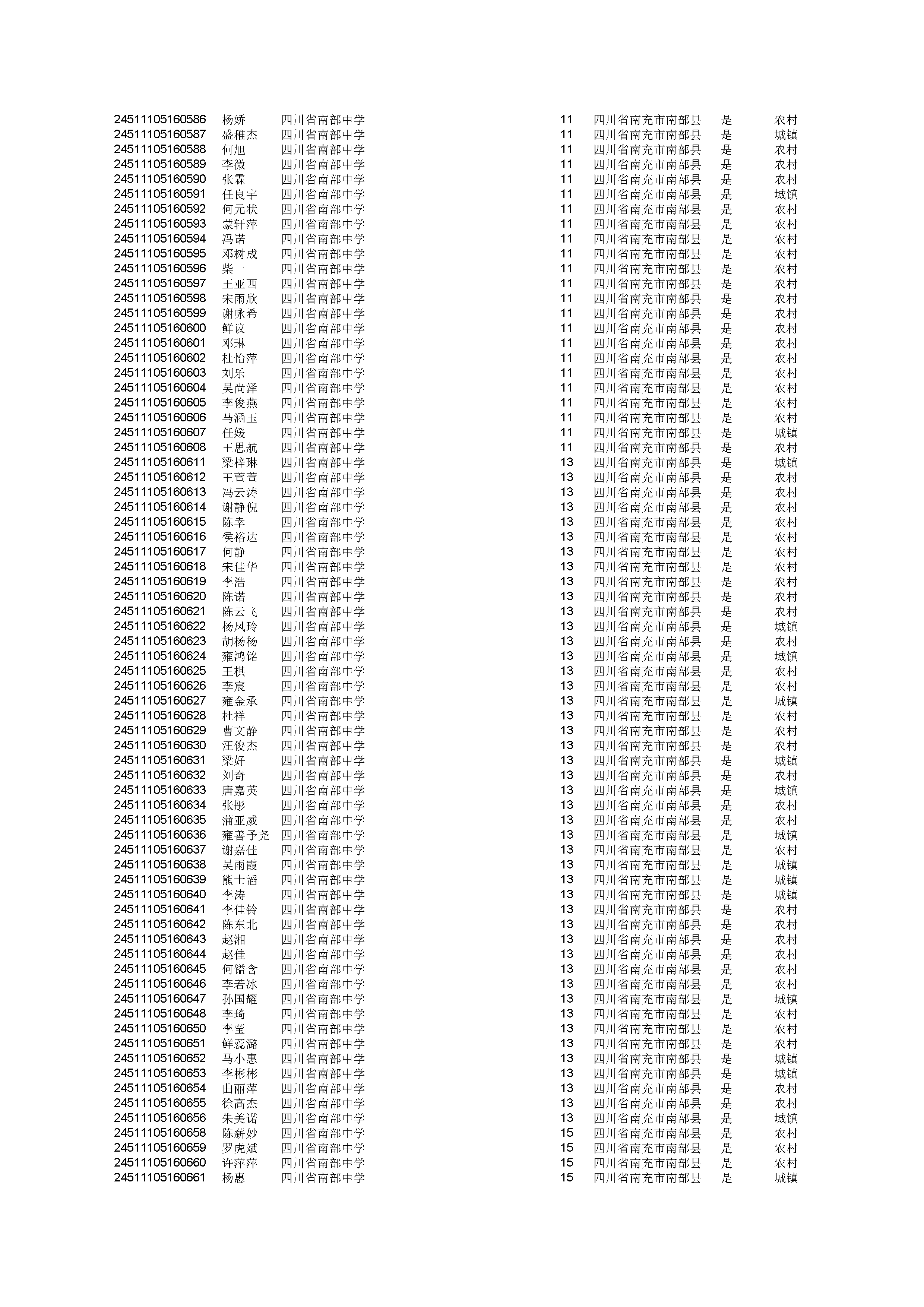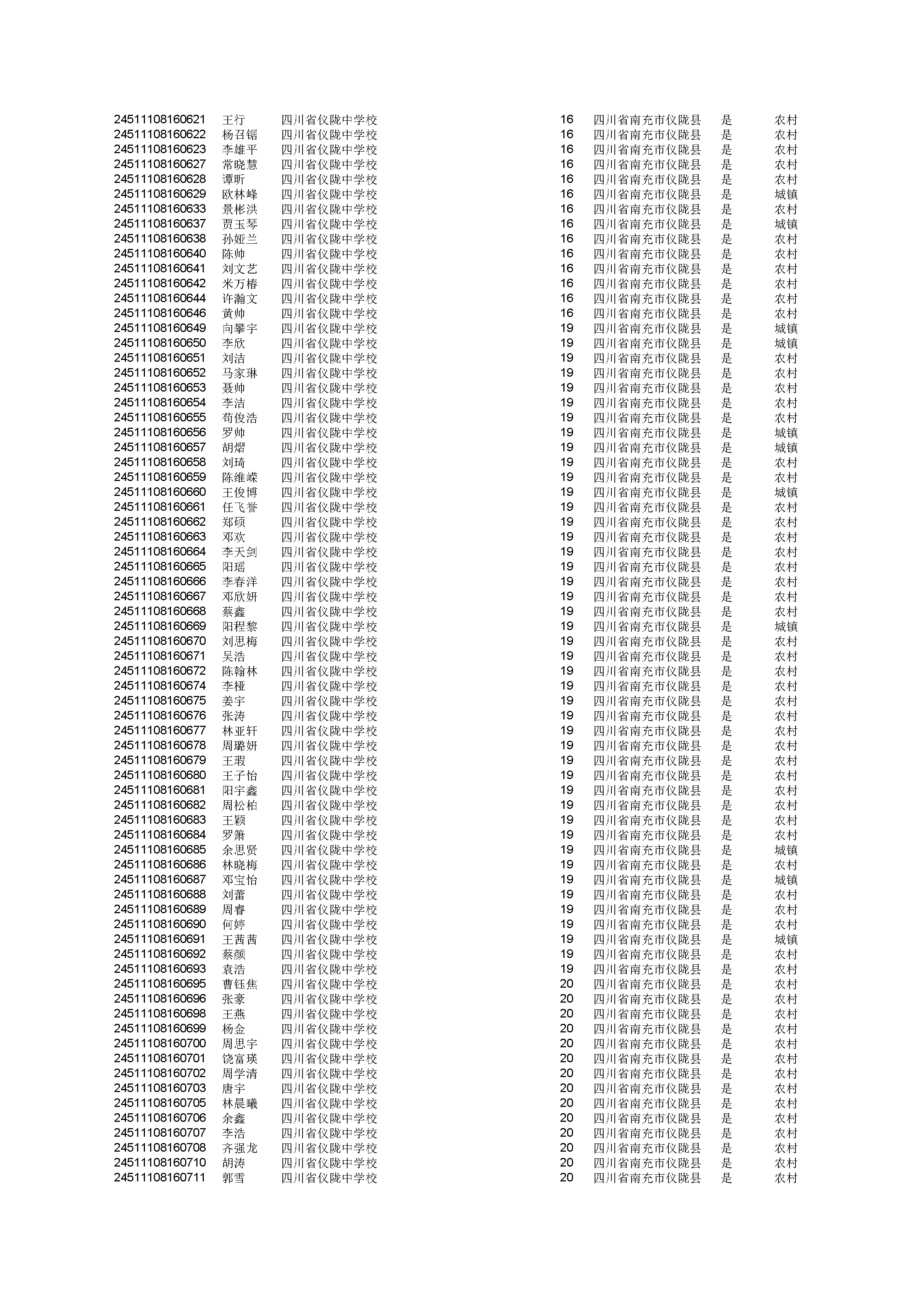 南充市2024年普通高校招生乡村振兴计划审核结果公示