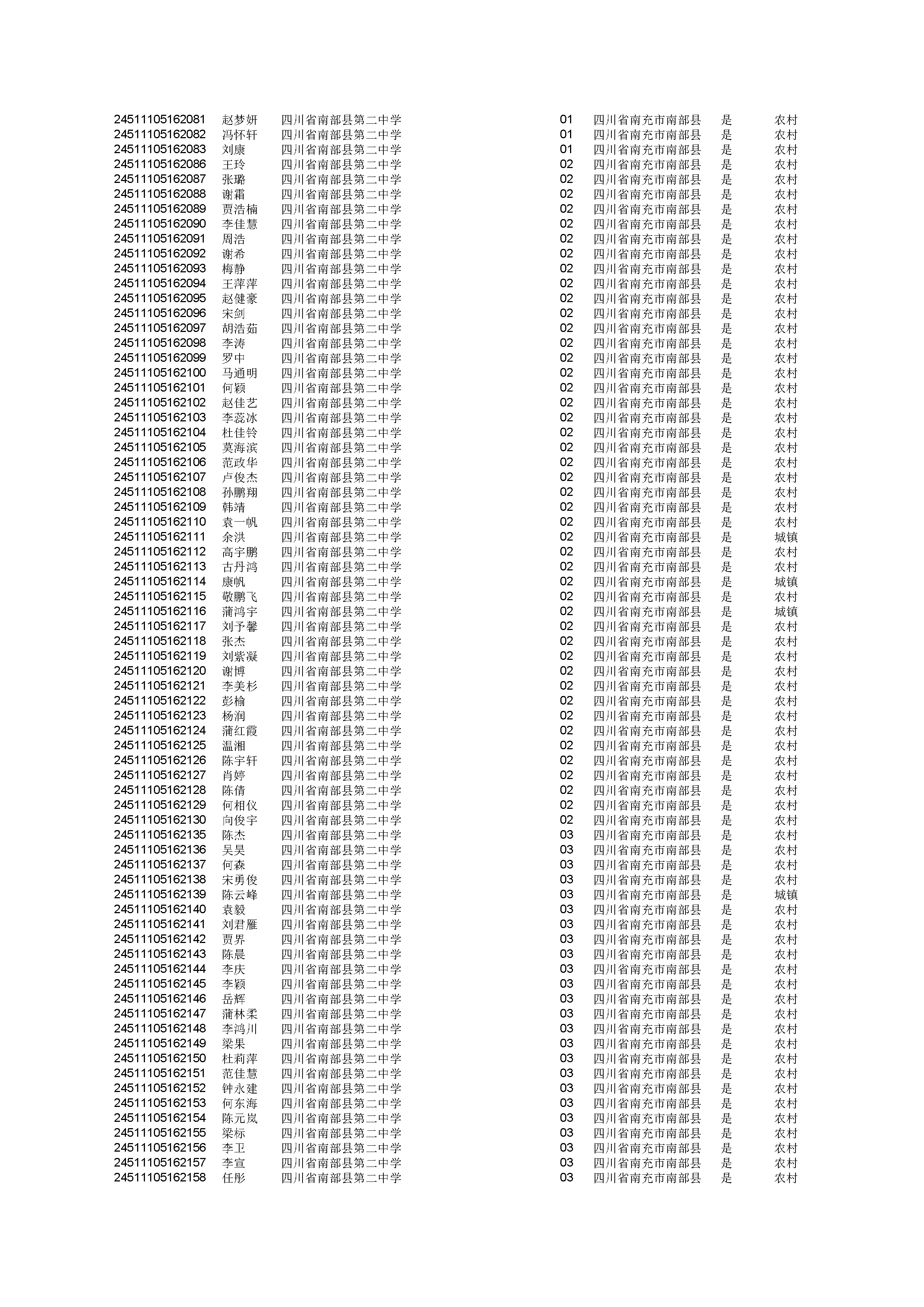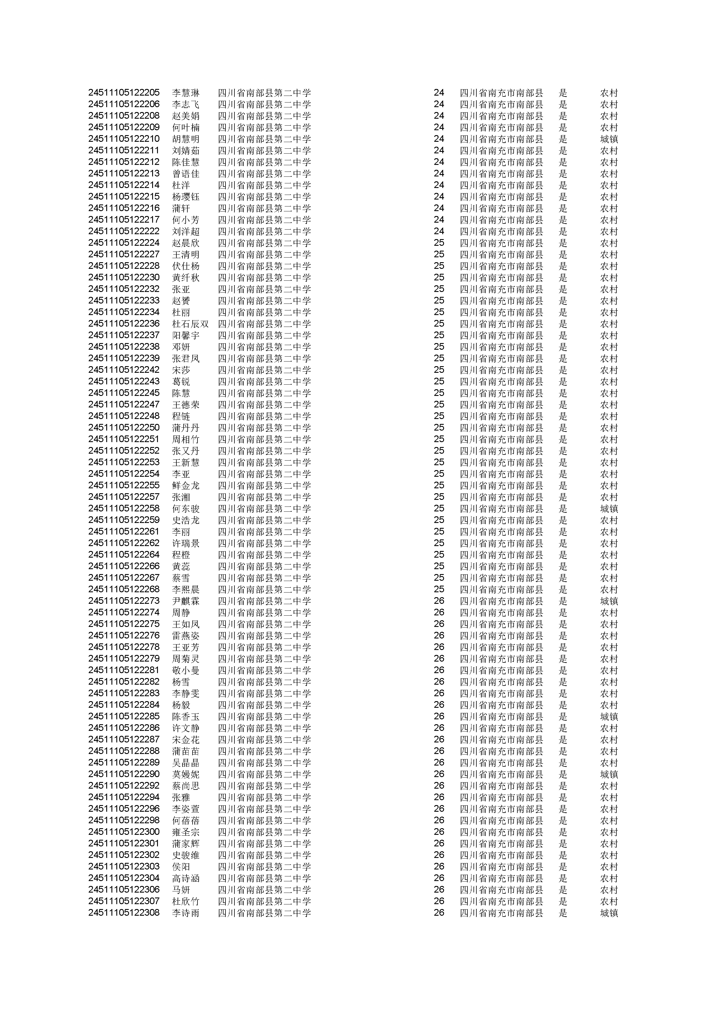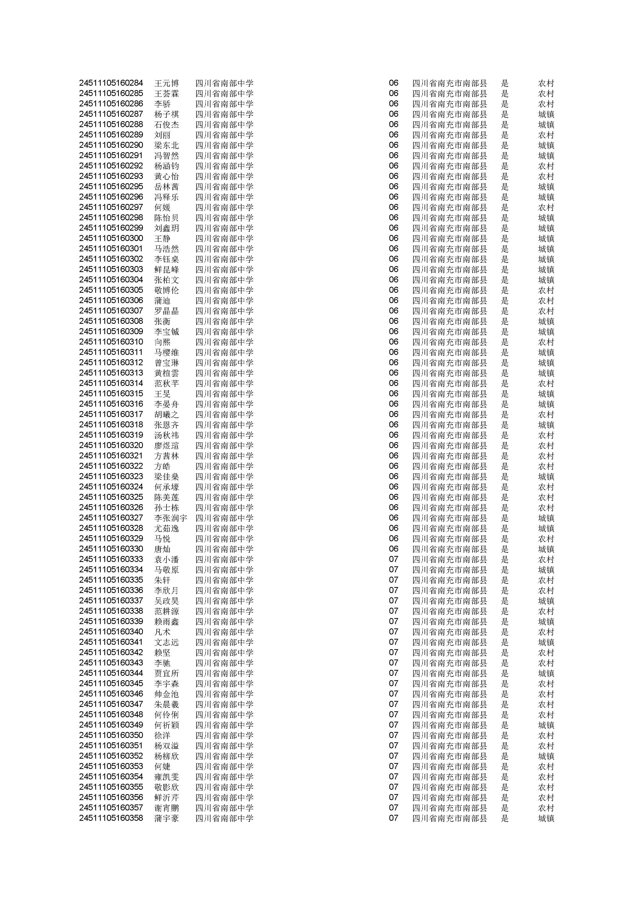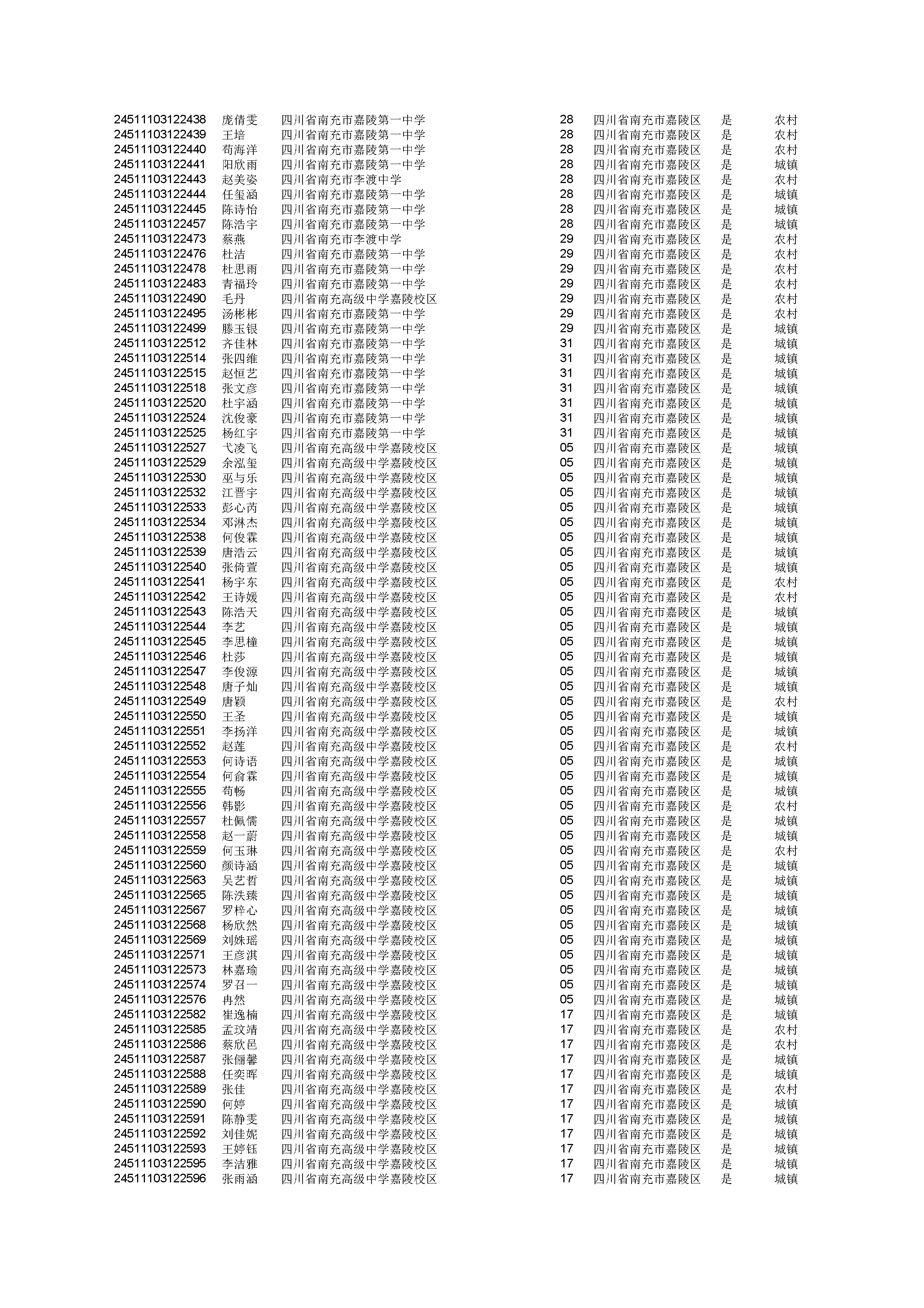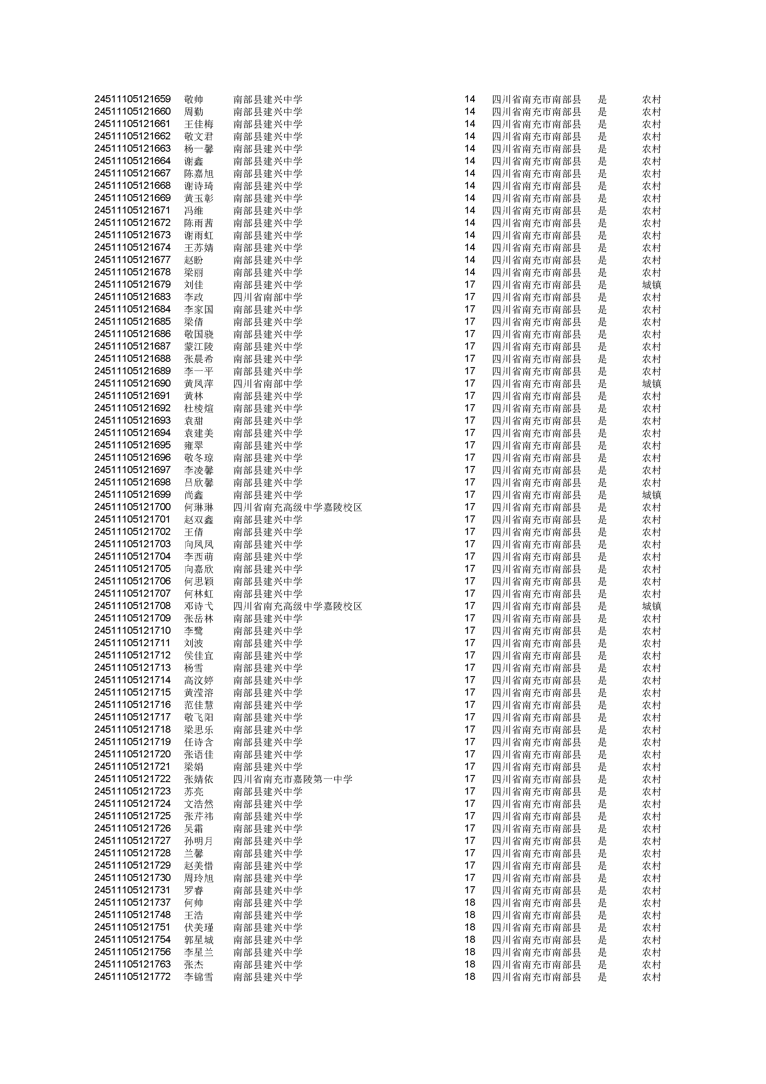 南充市2024年普通高校招生乡村振兴计划审核结果公示