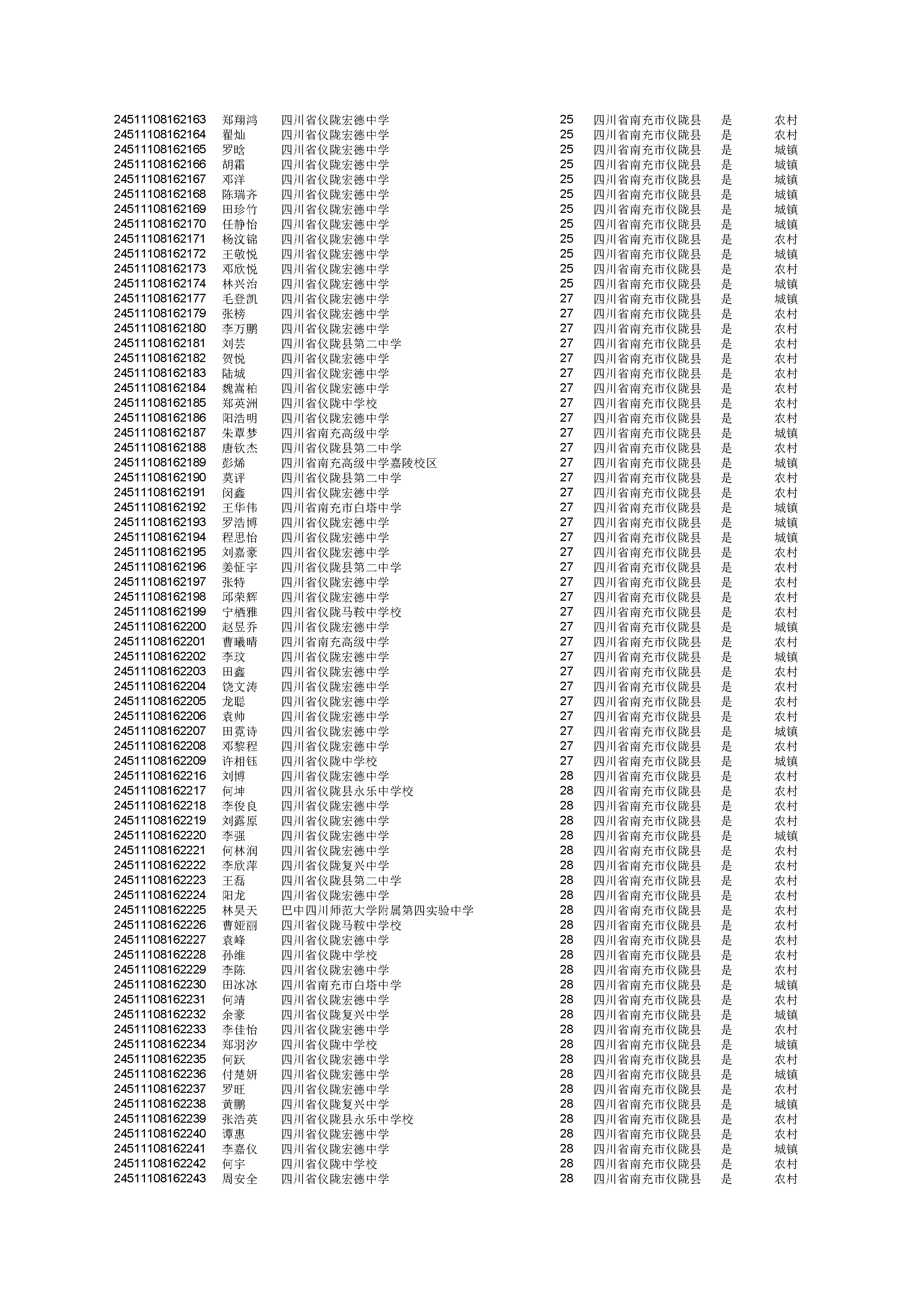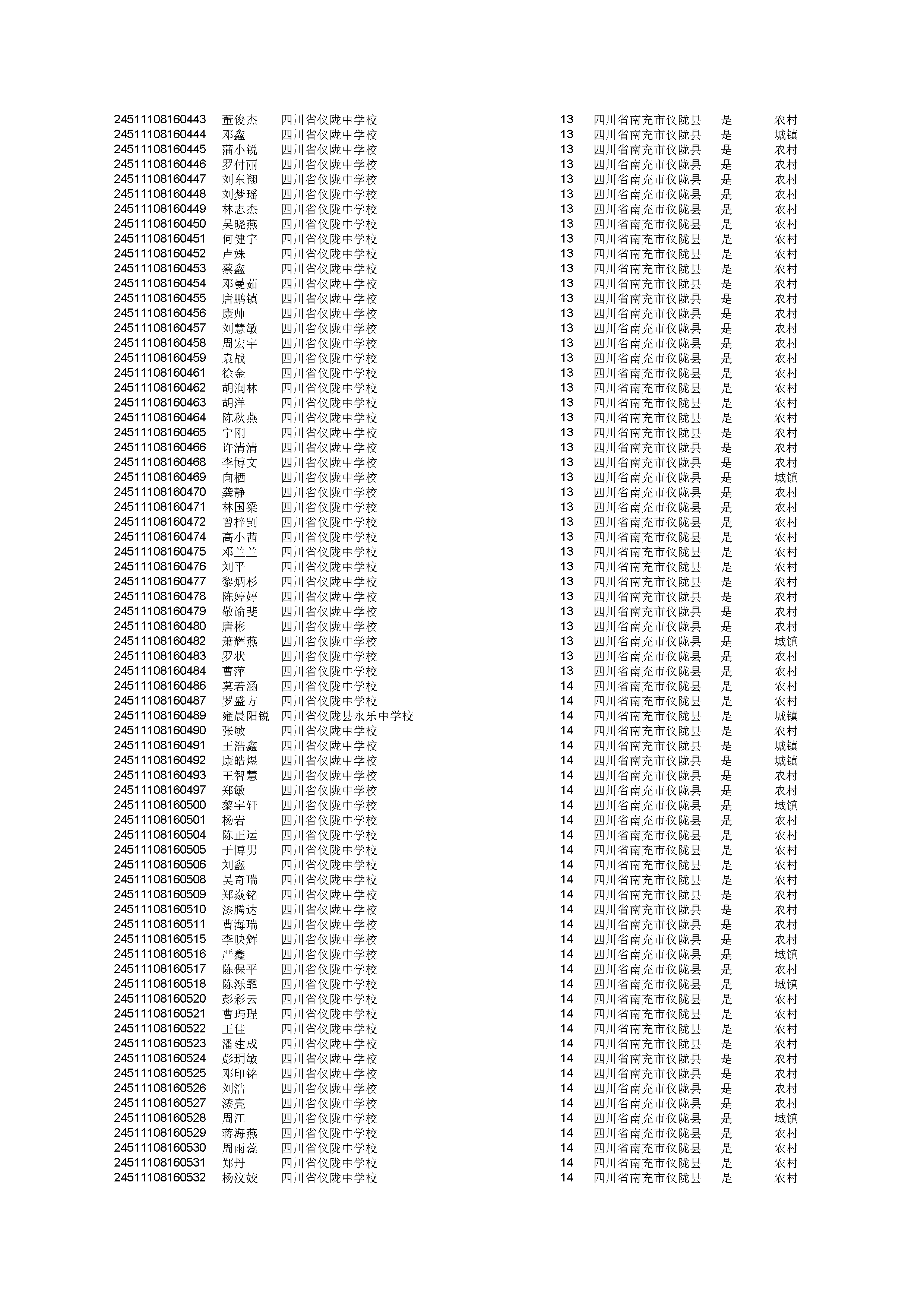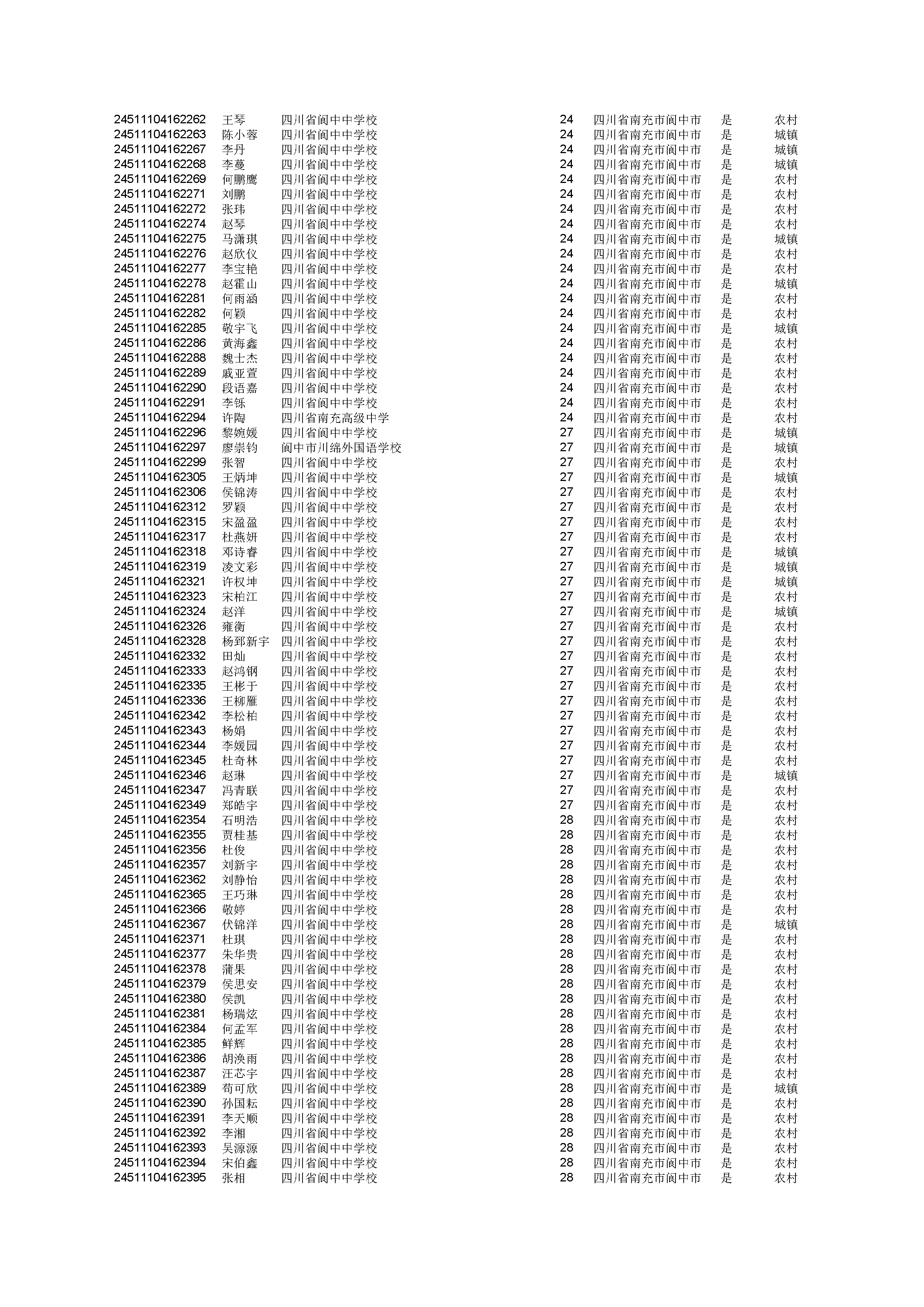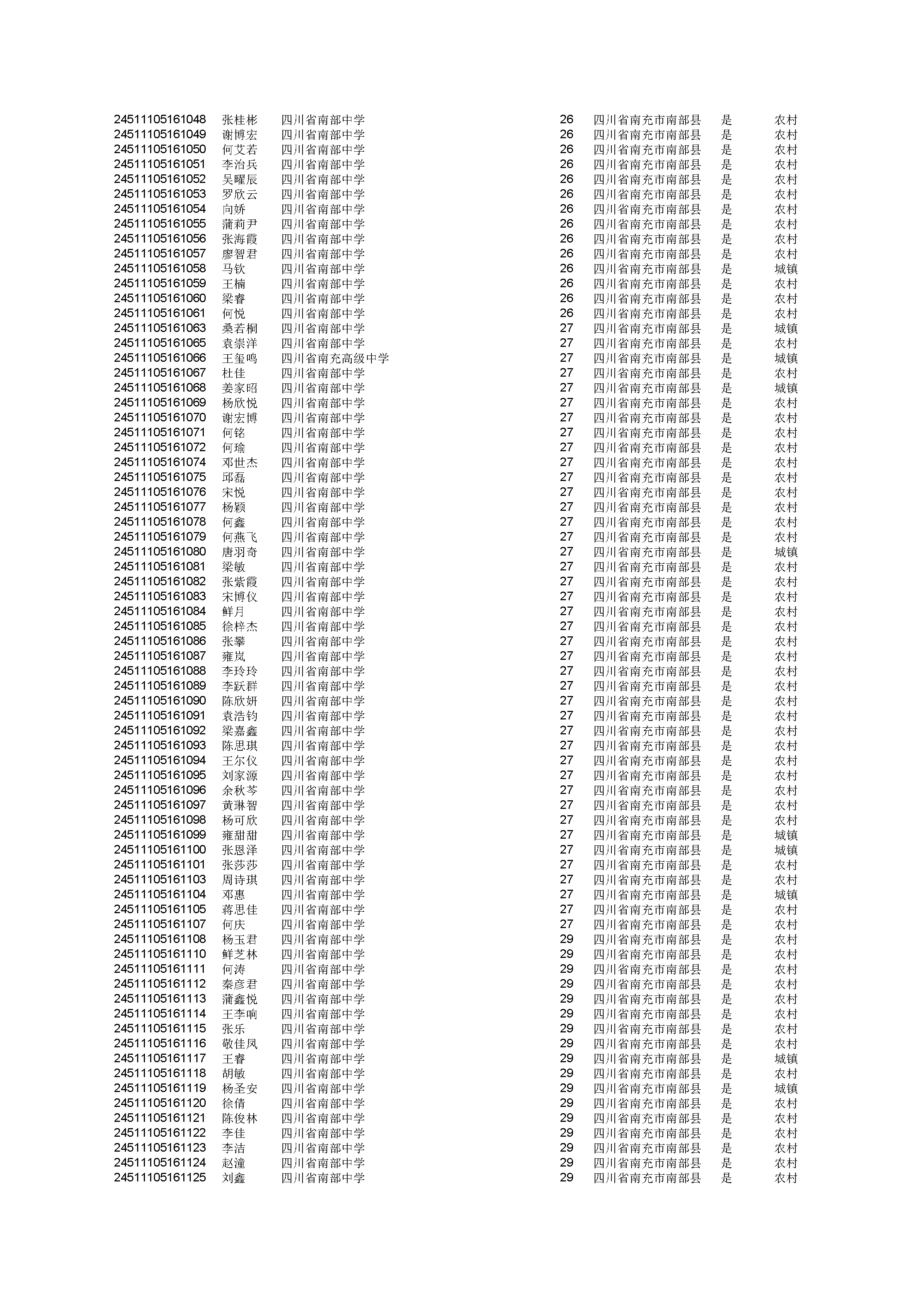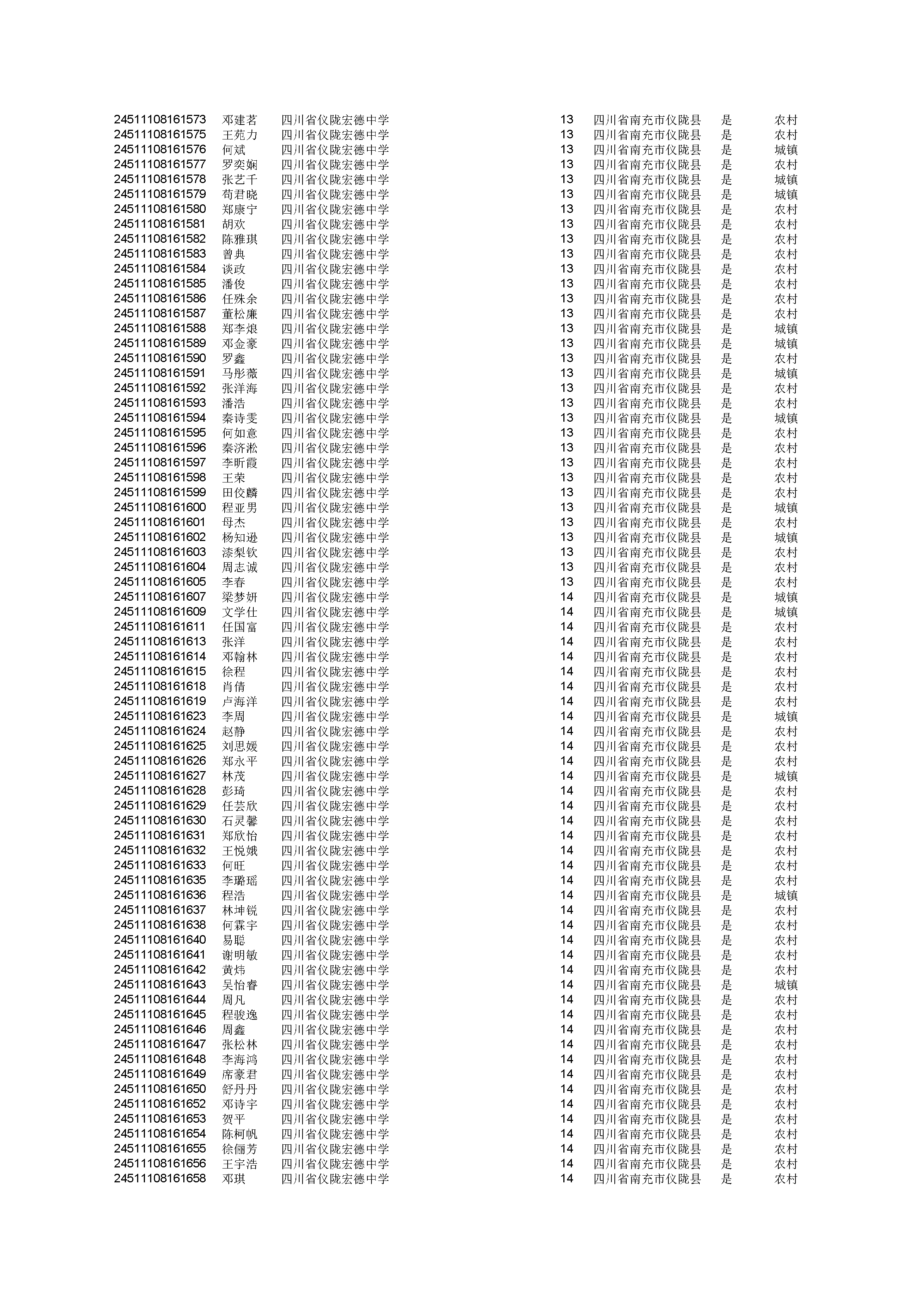 南充市2024年普通高校招生乡村振兴计划审核结果公示