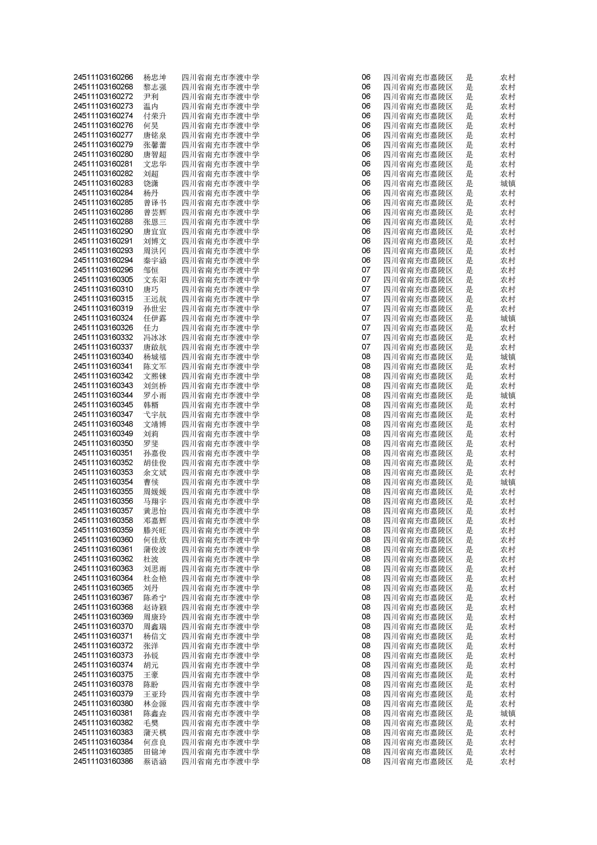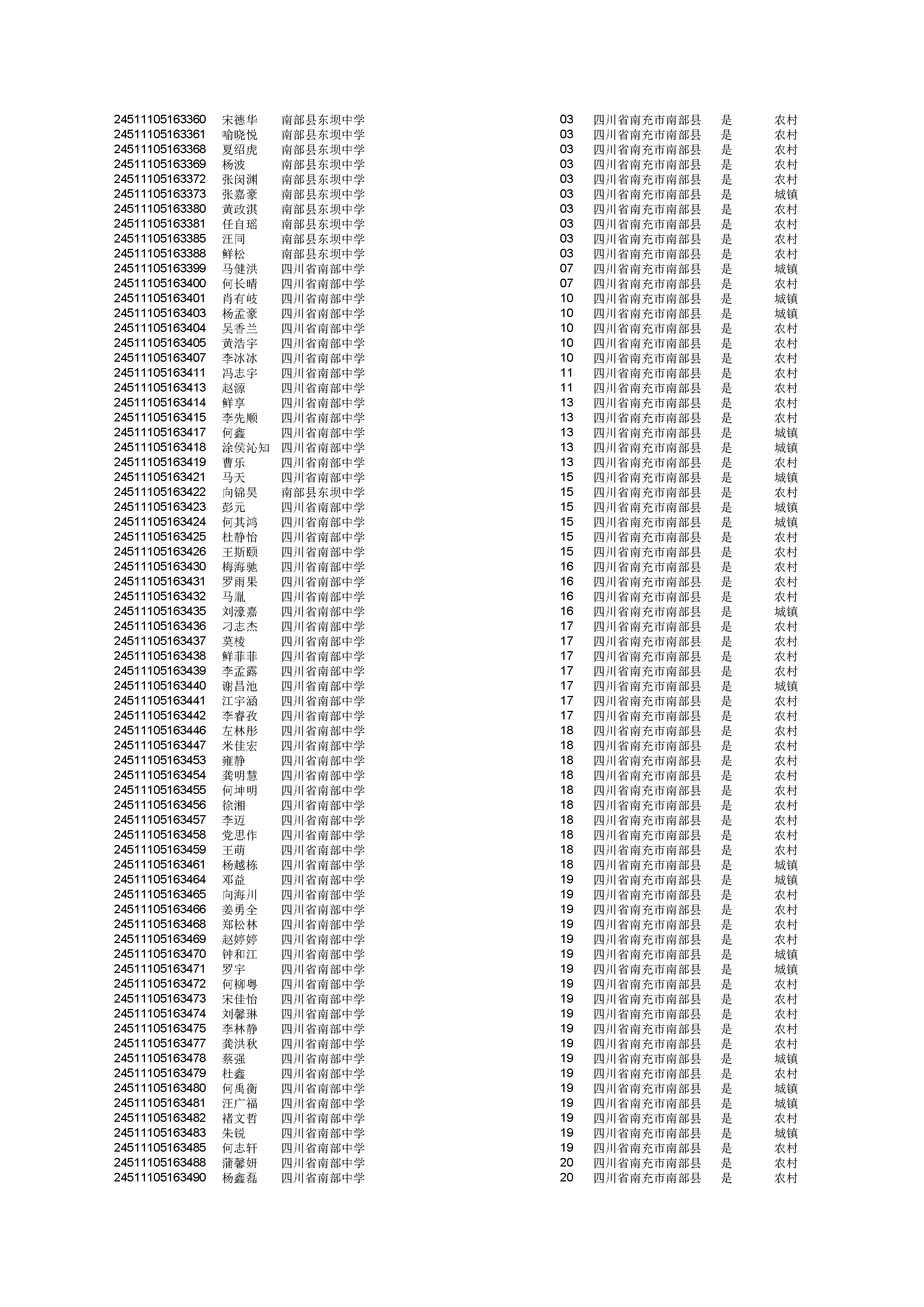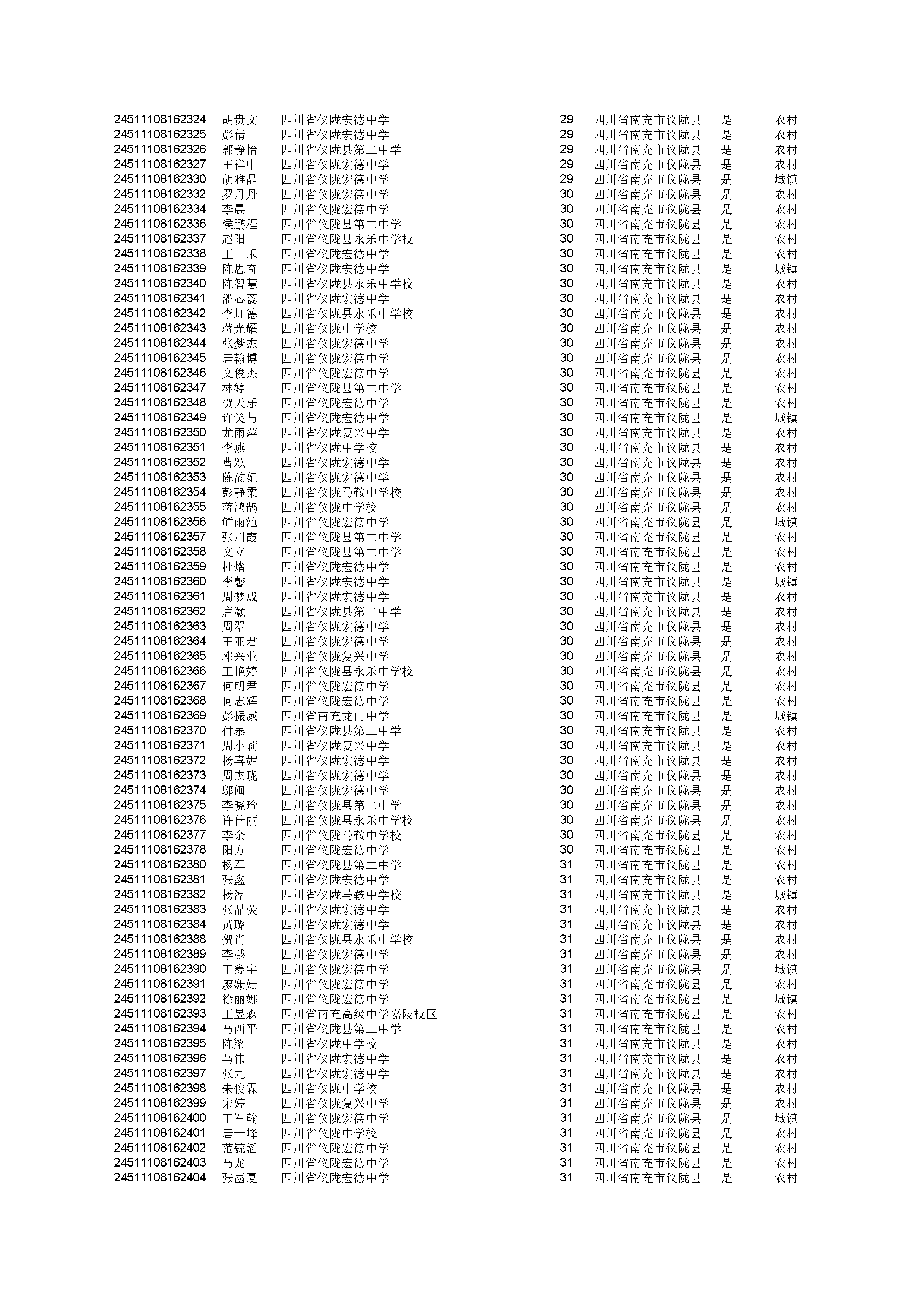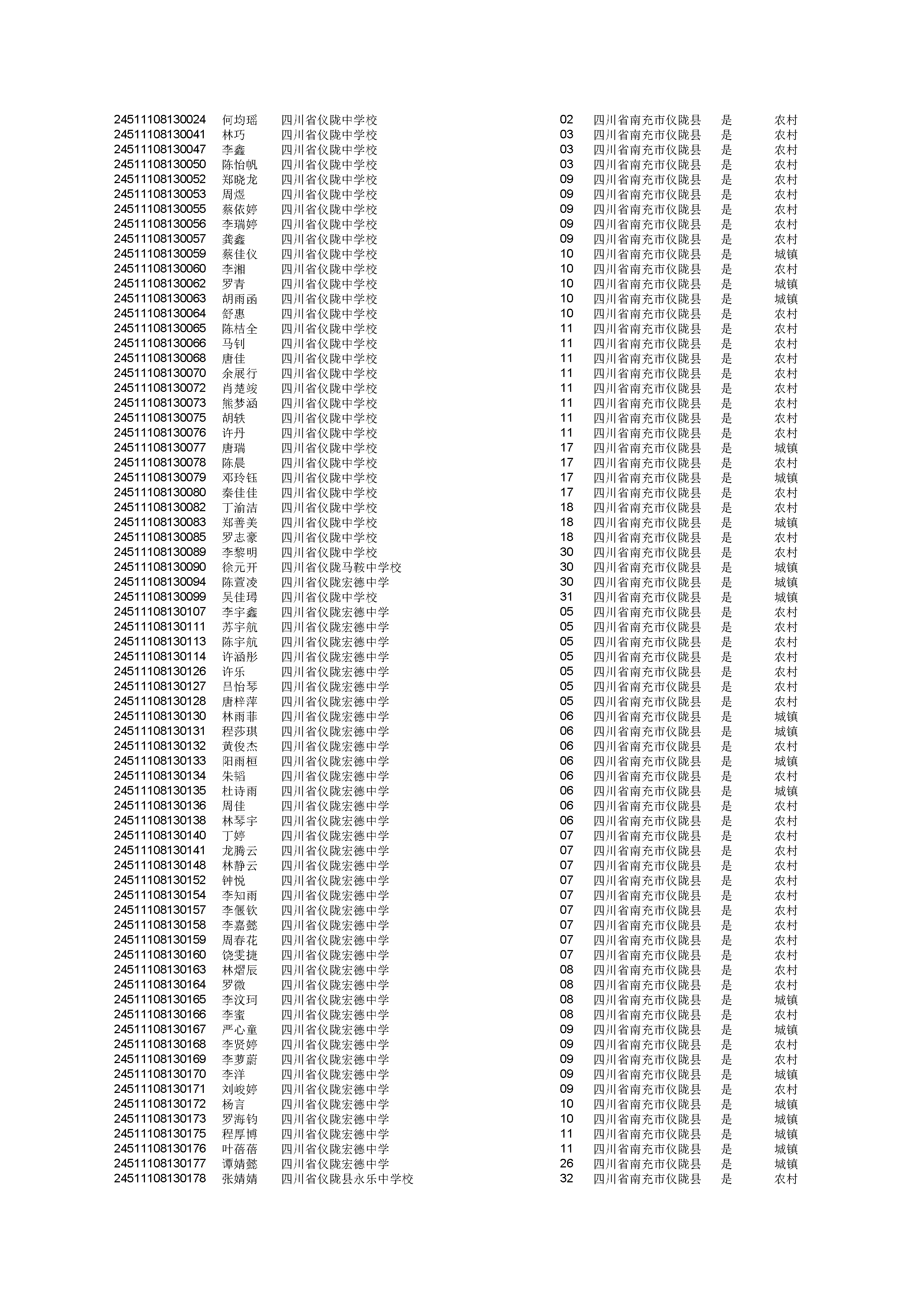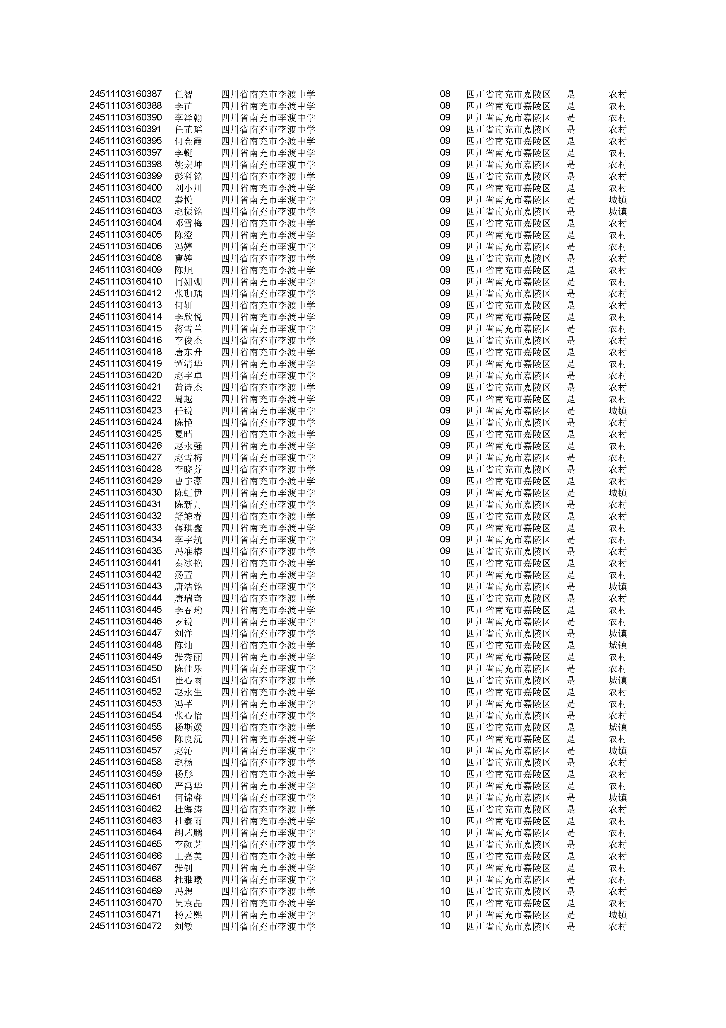 南充市2024年普通高校招生乡村振兴计划审核结果公示
