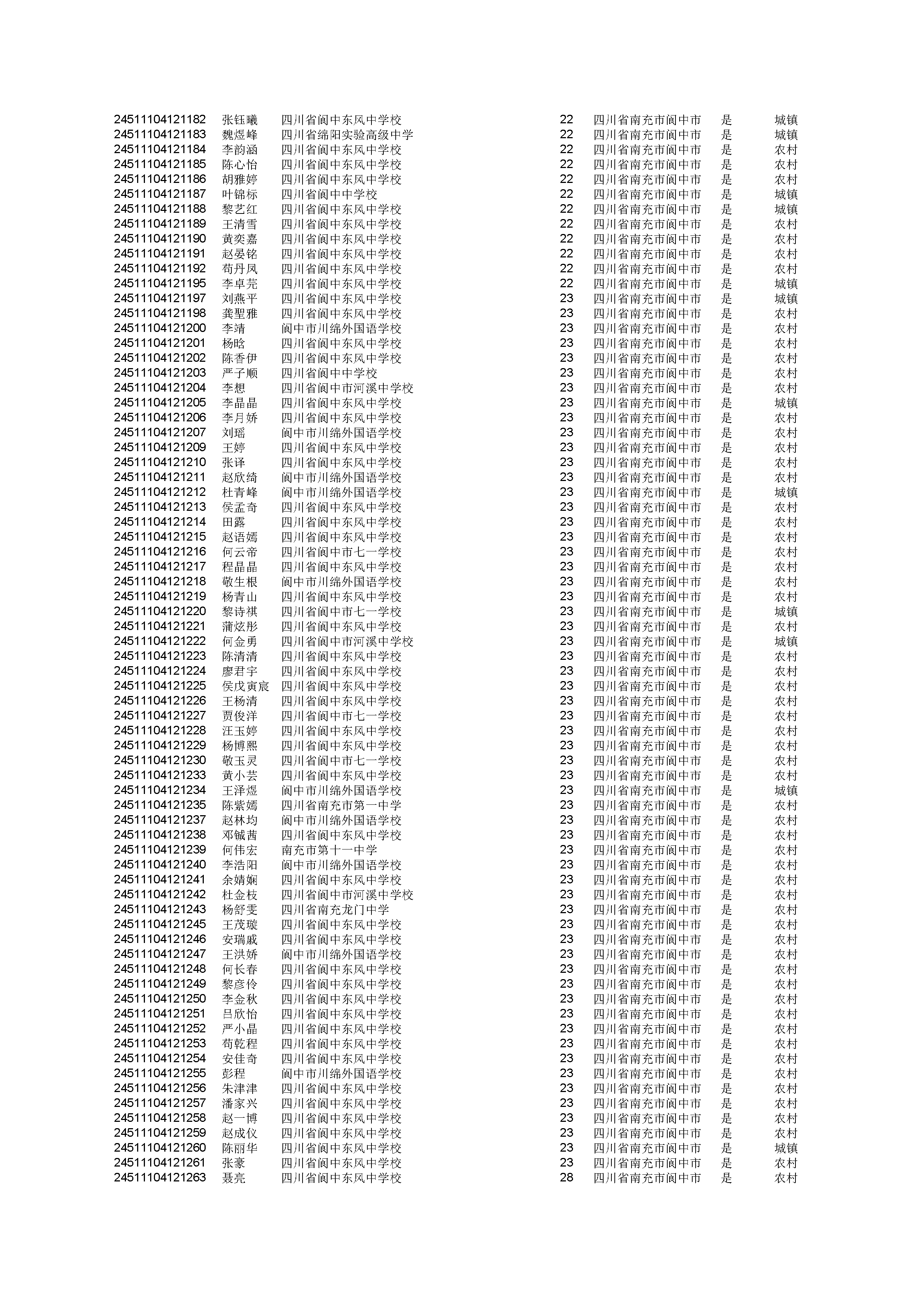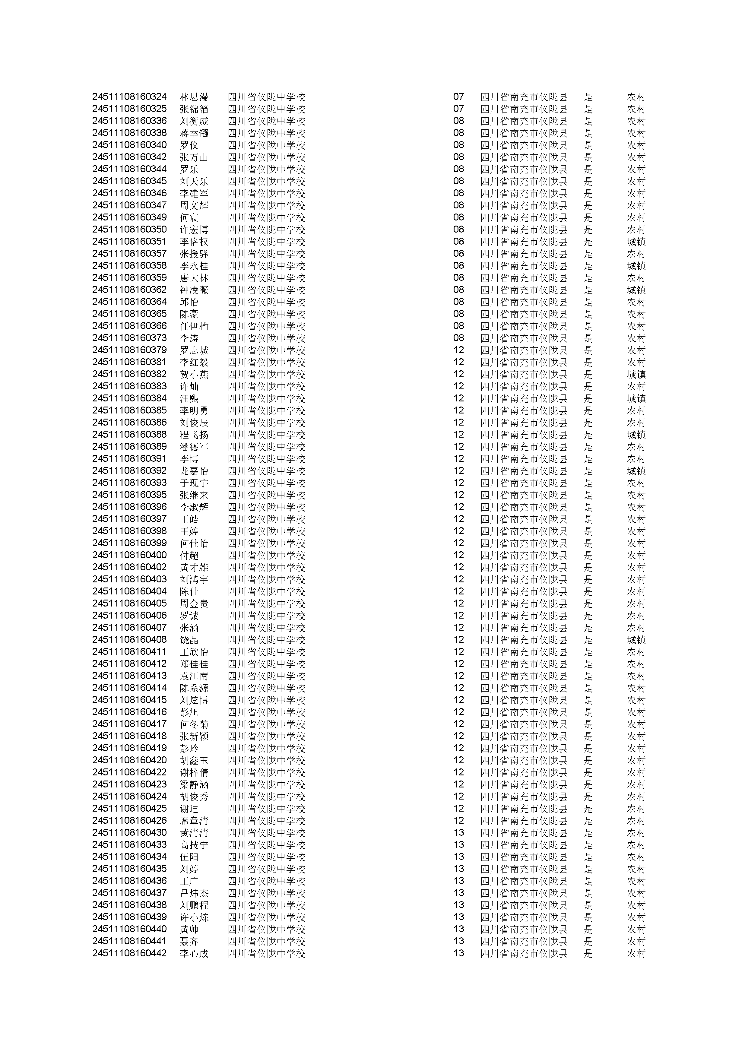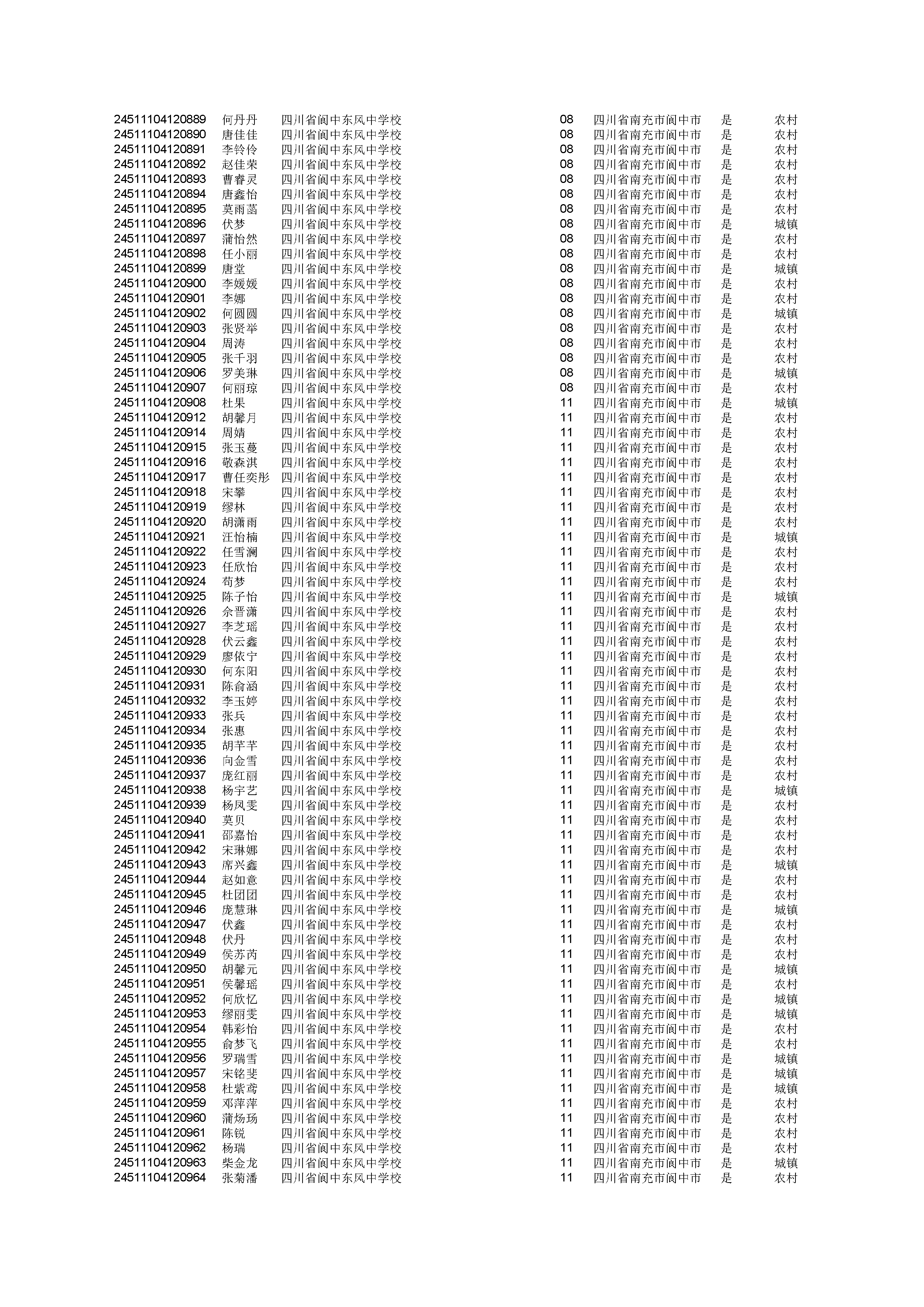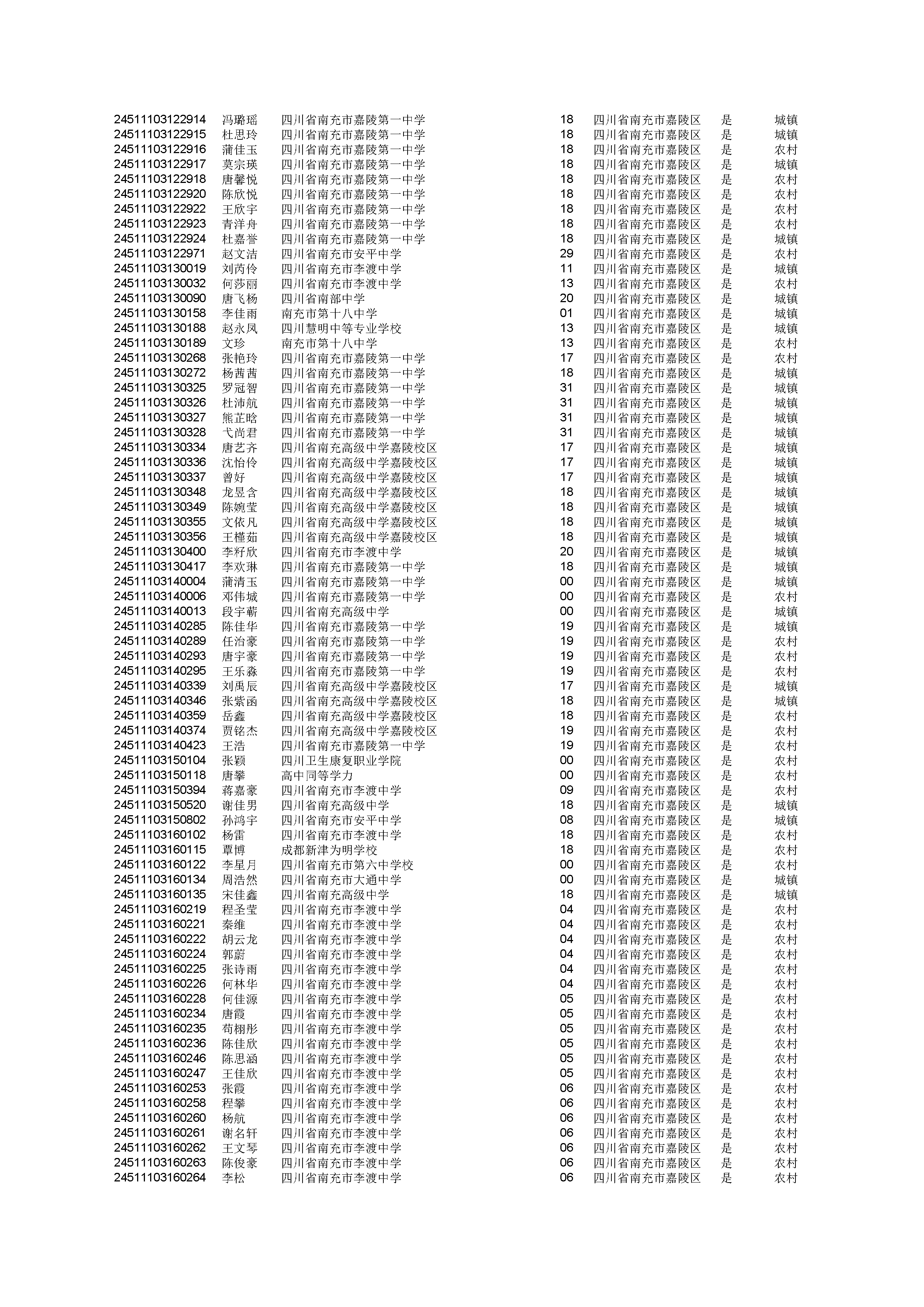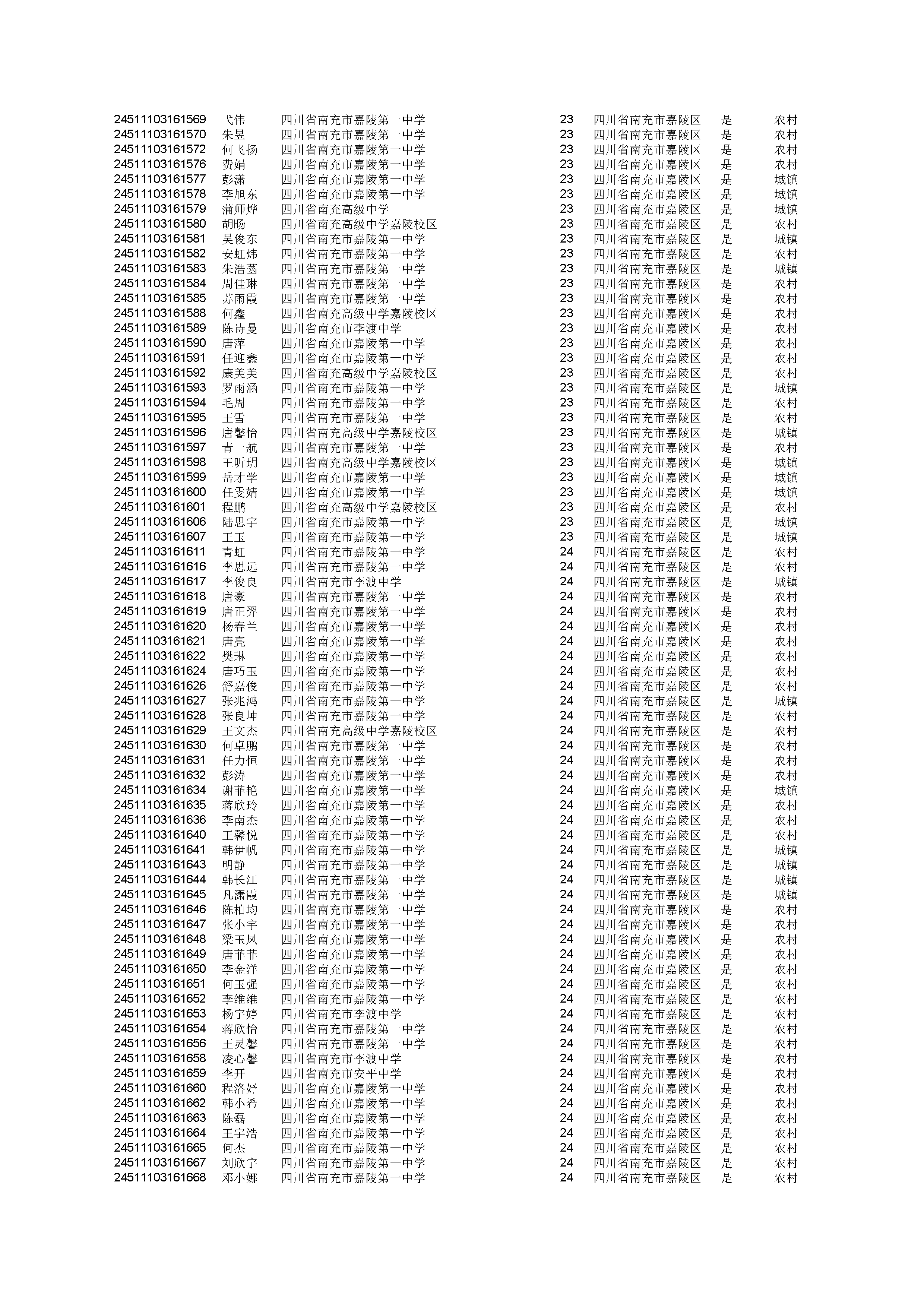 南充市2024年普通高校招生乡村振兴计划审核结果公示