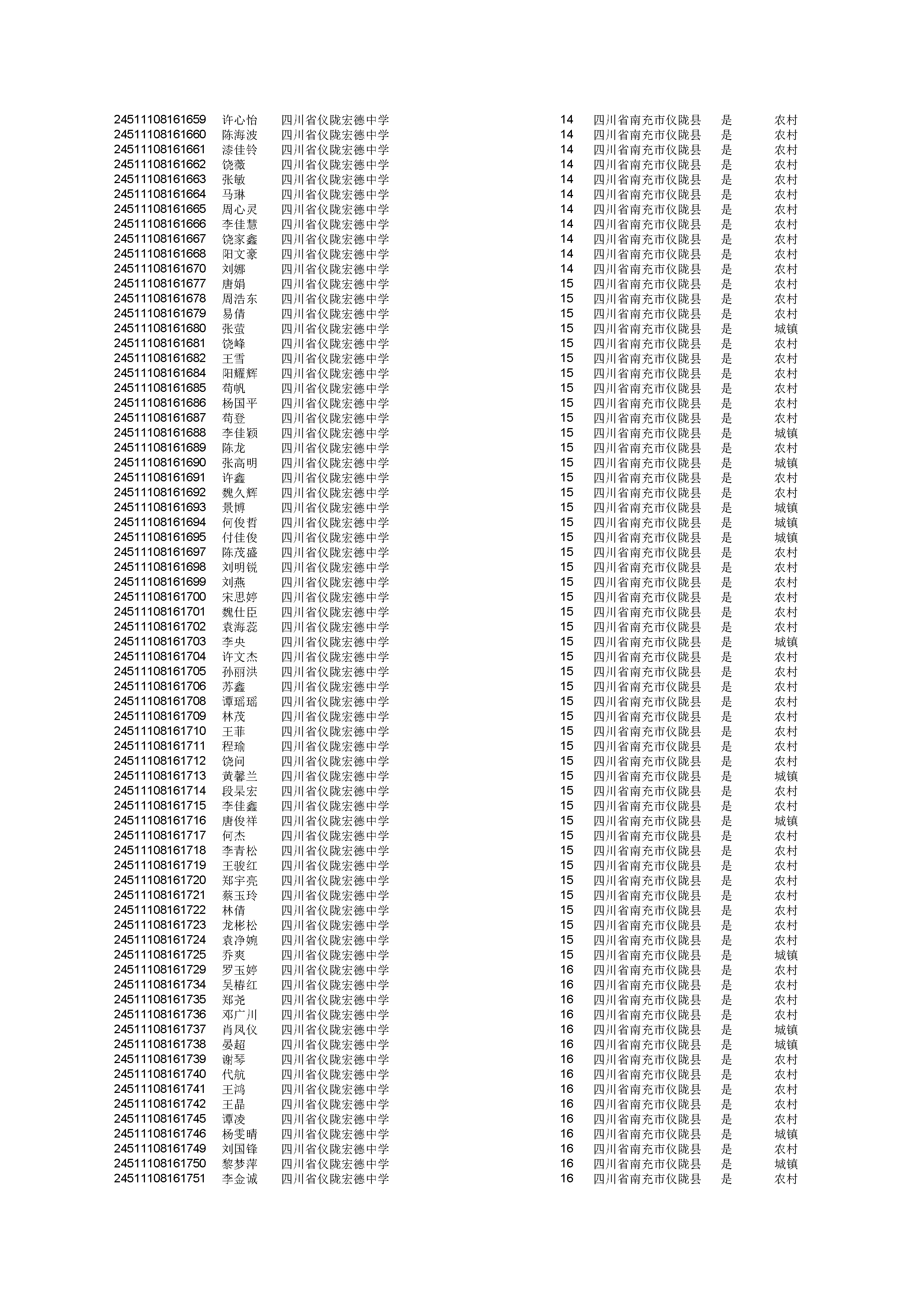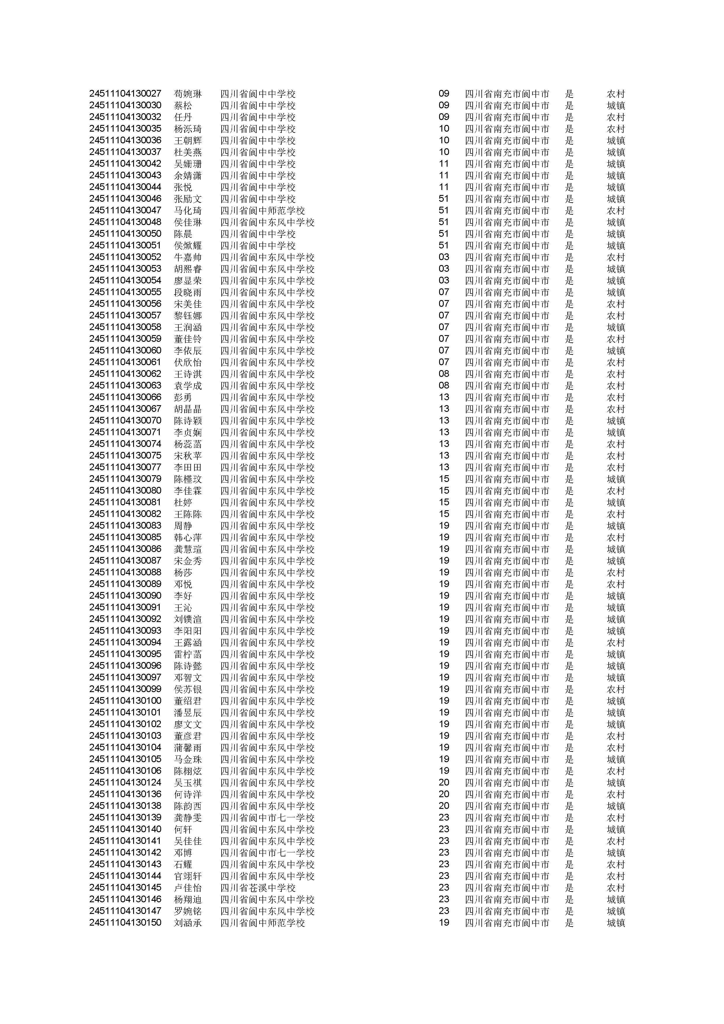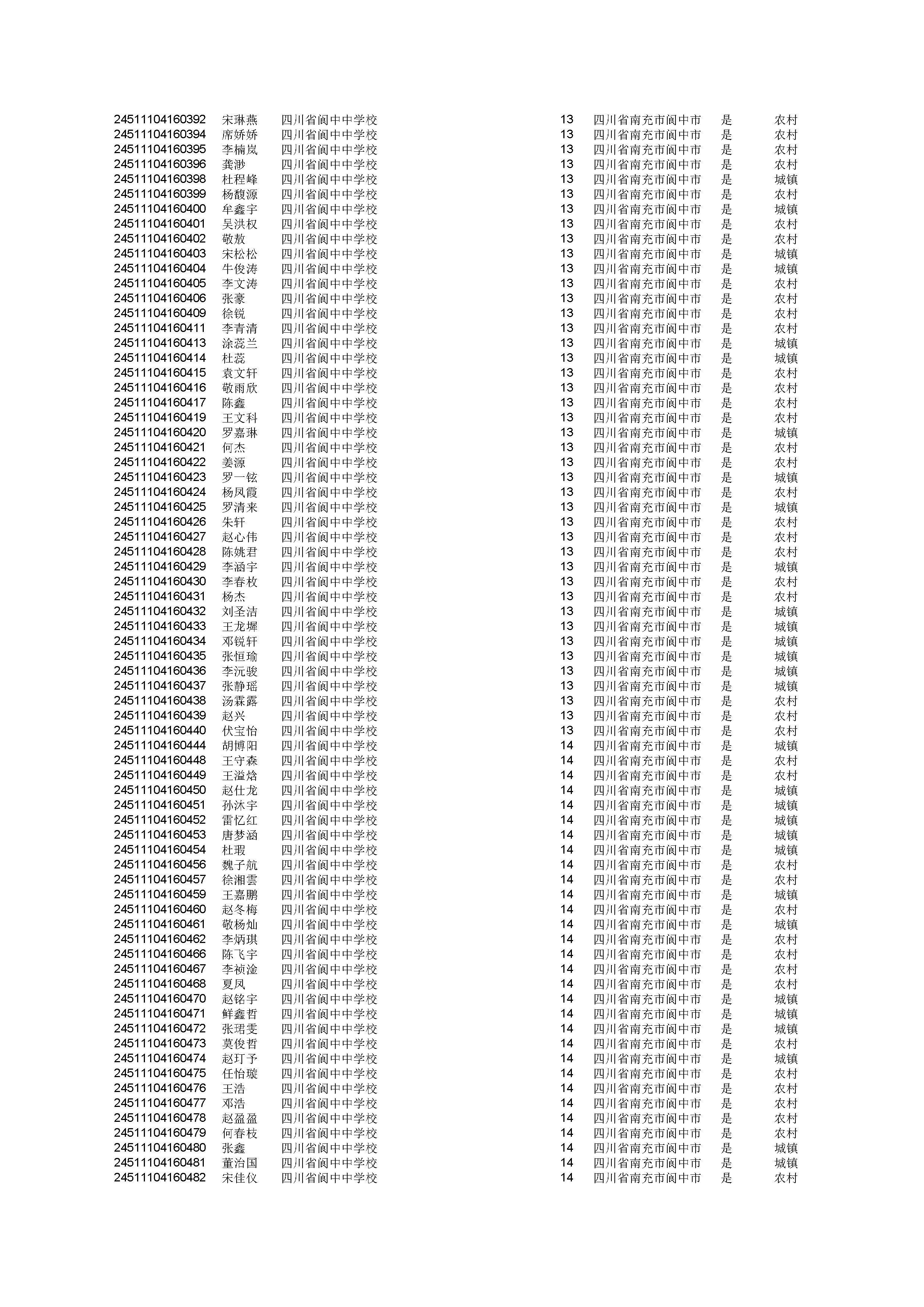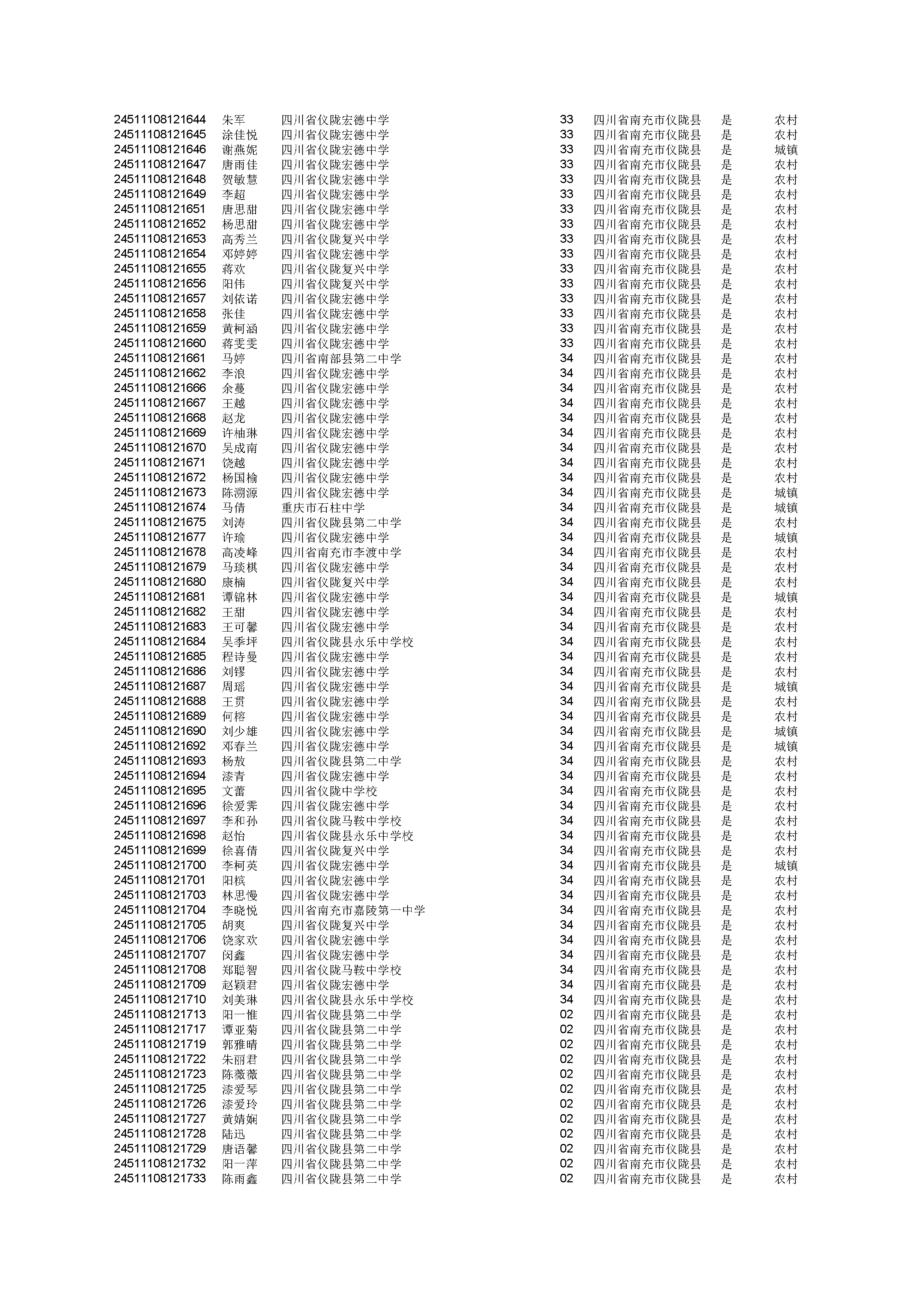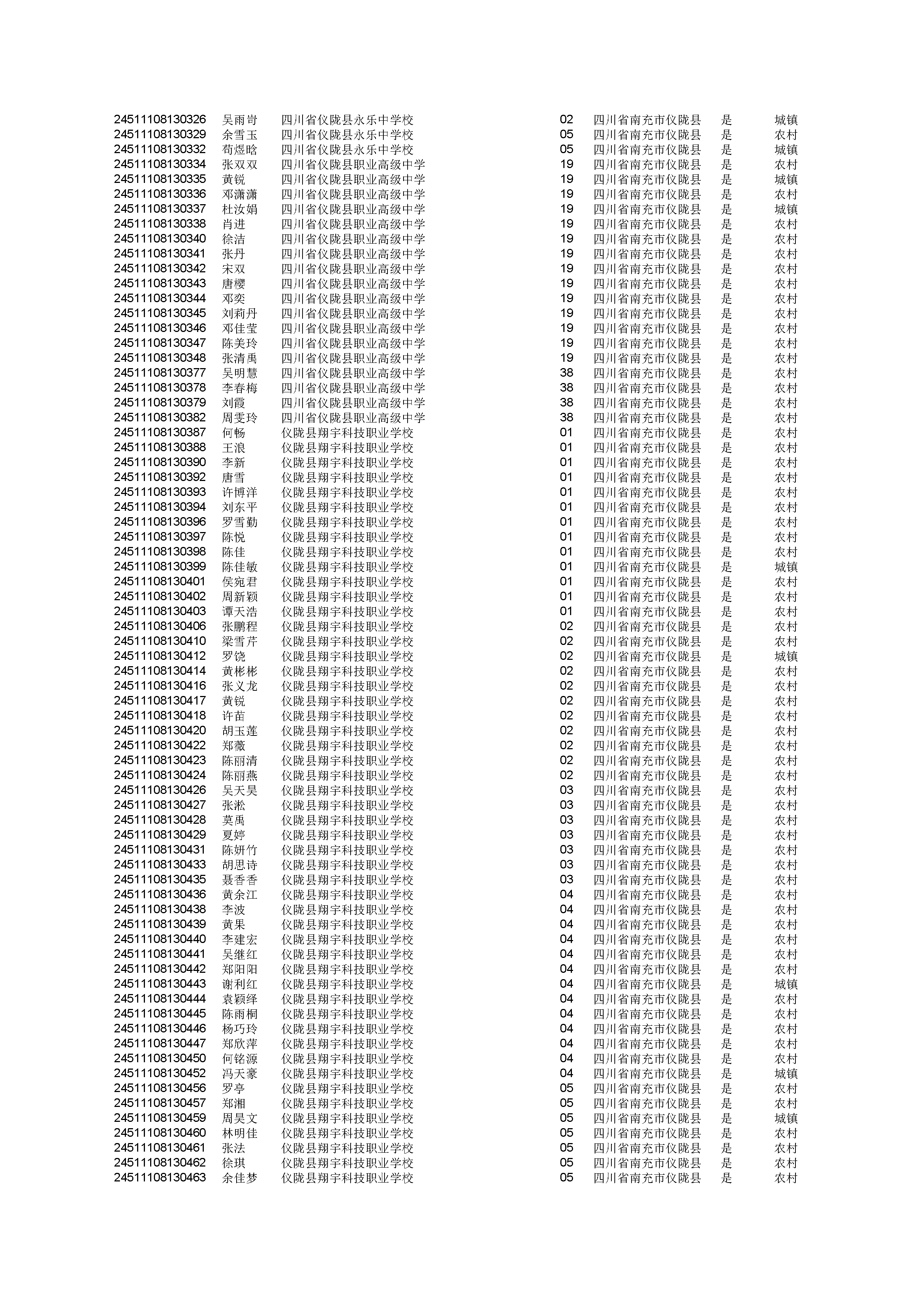 南充市2024年普通高校招生乡村振兴计划审核结果公示