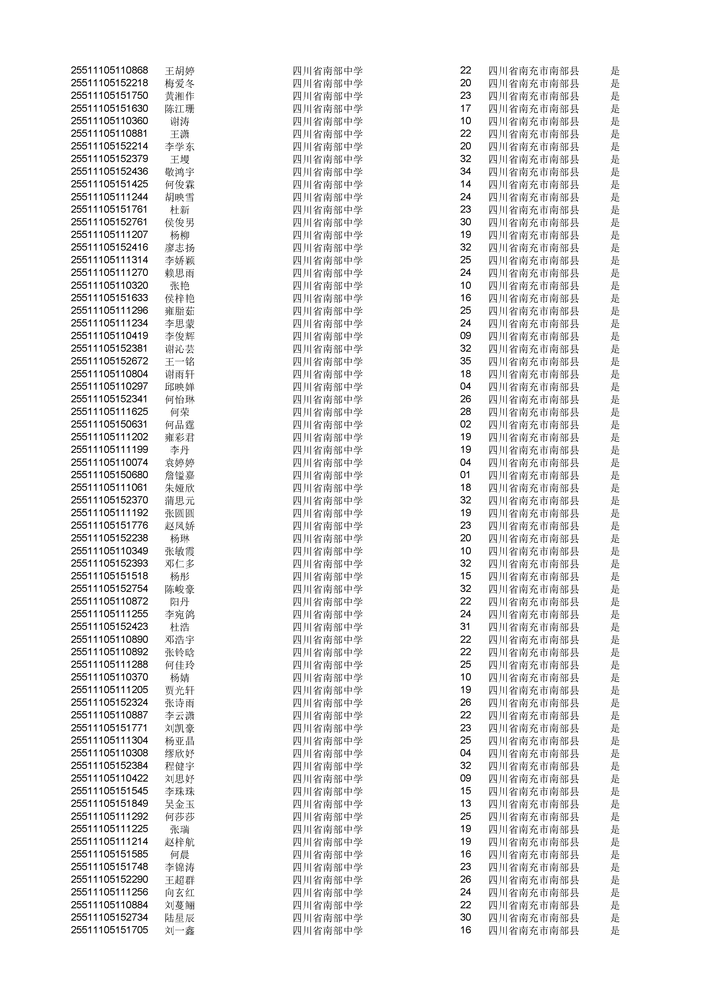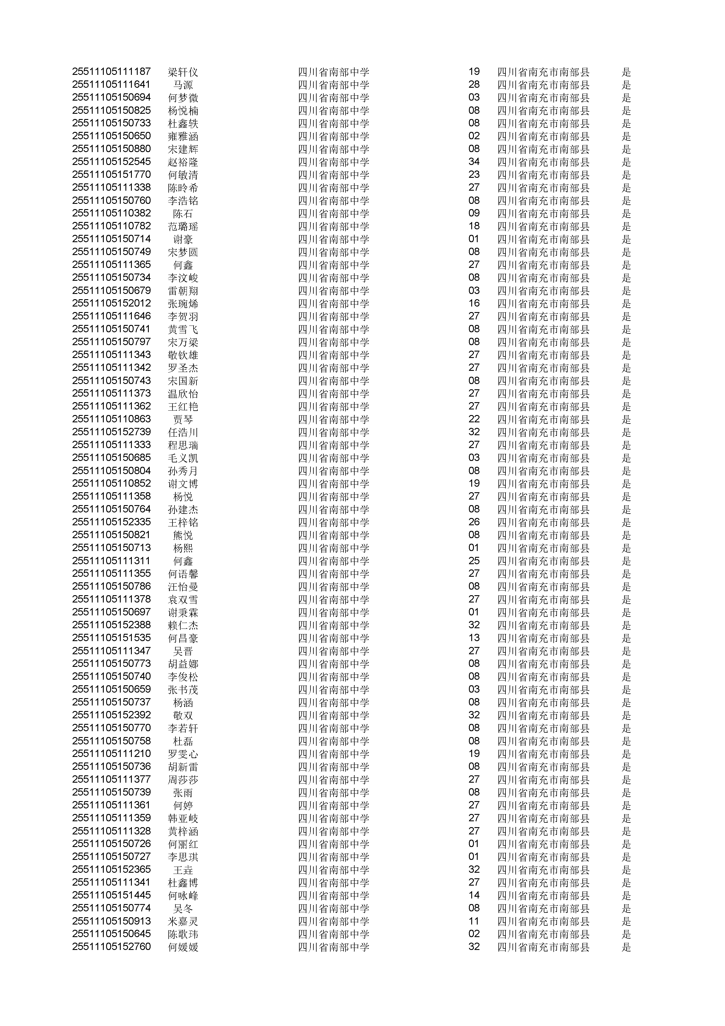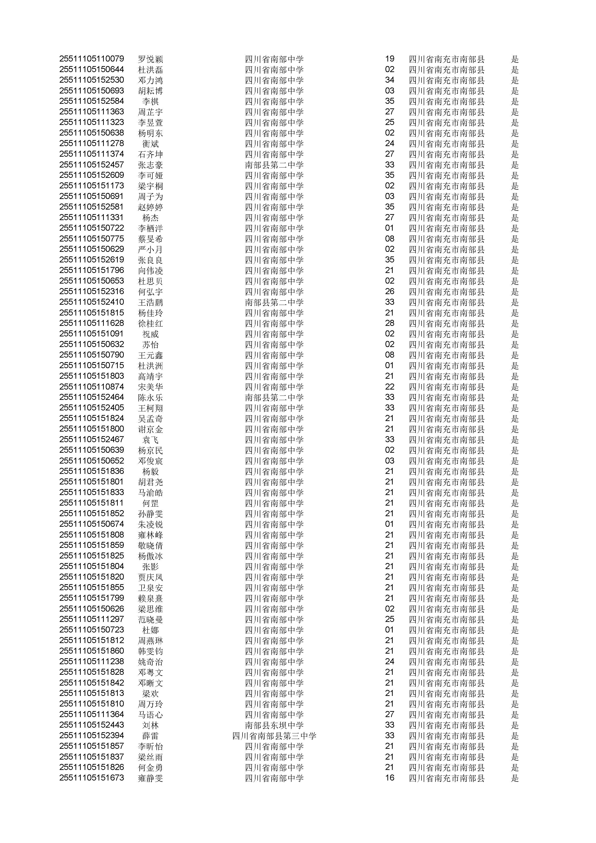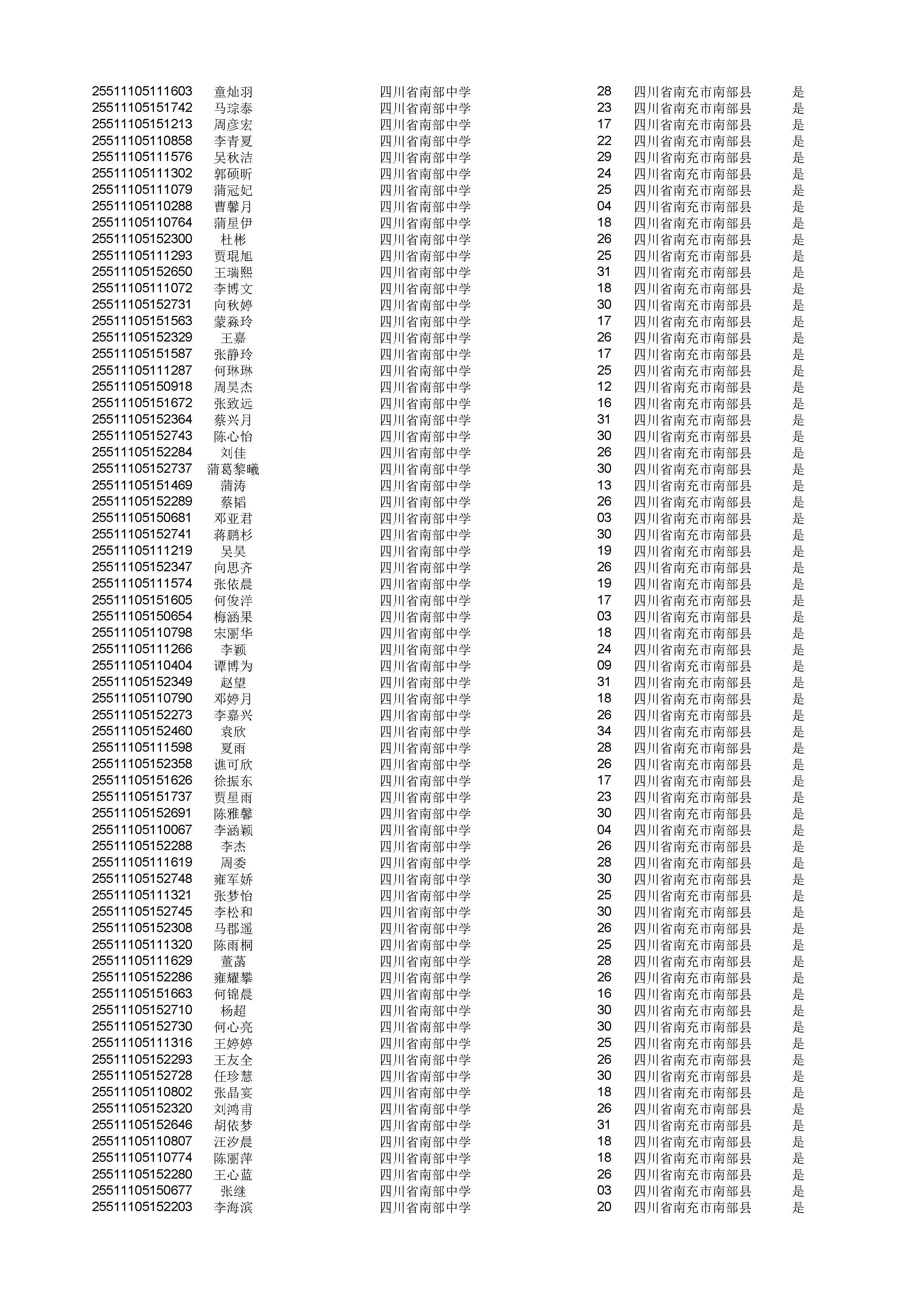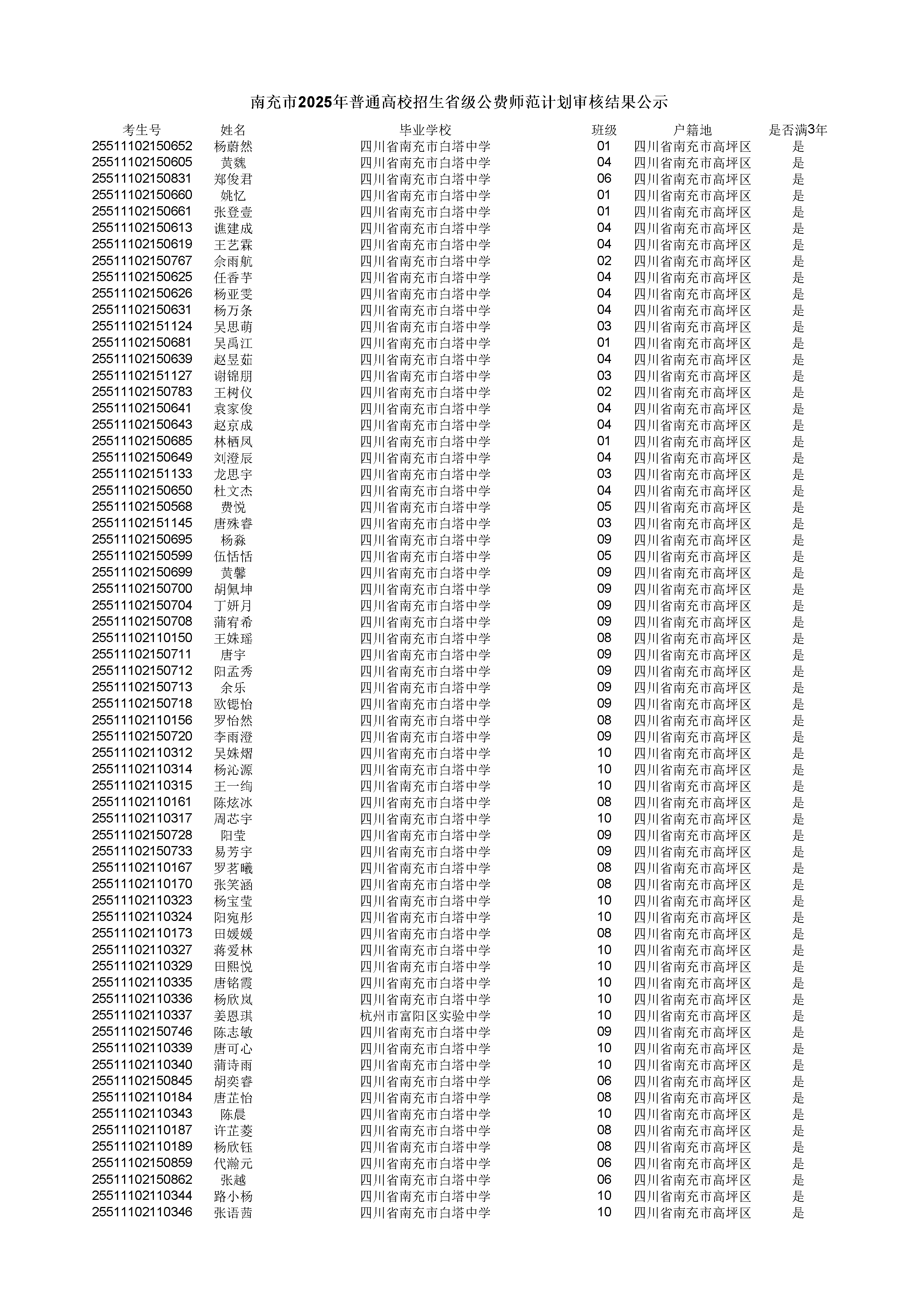 南充市2025年普通高校招生省级公费师范计划审核结果公示