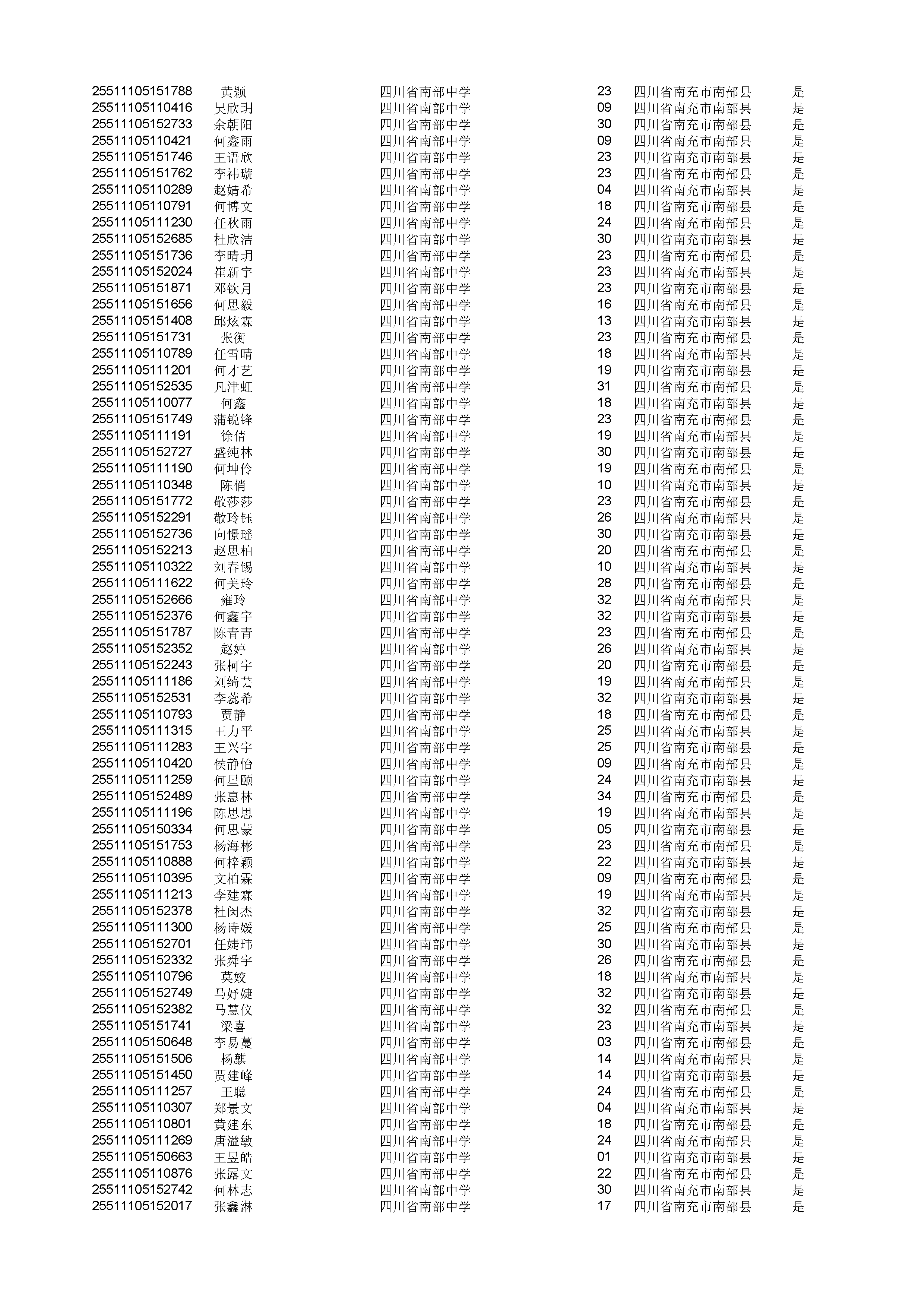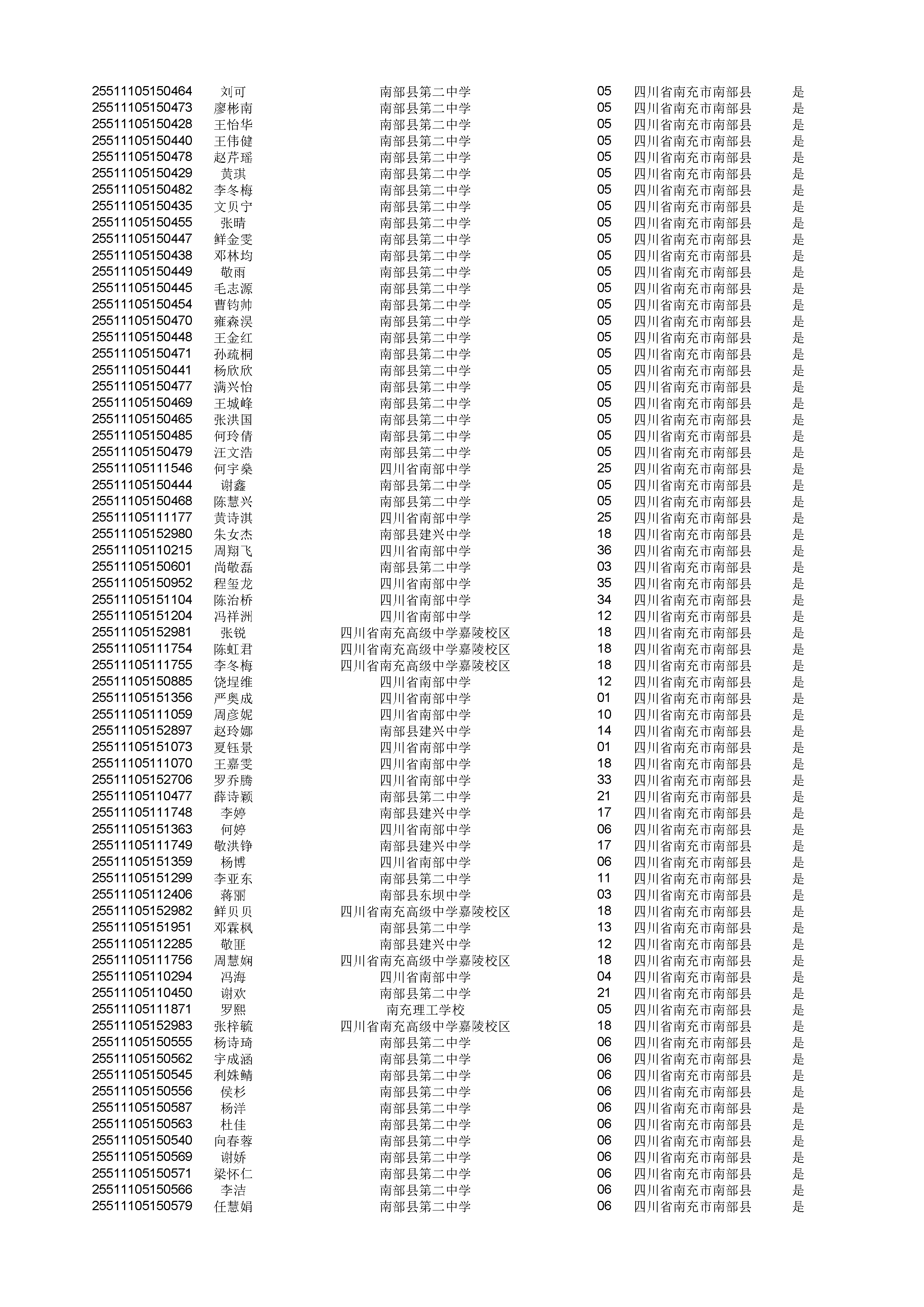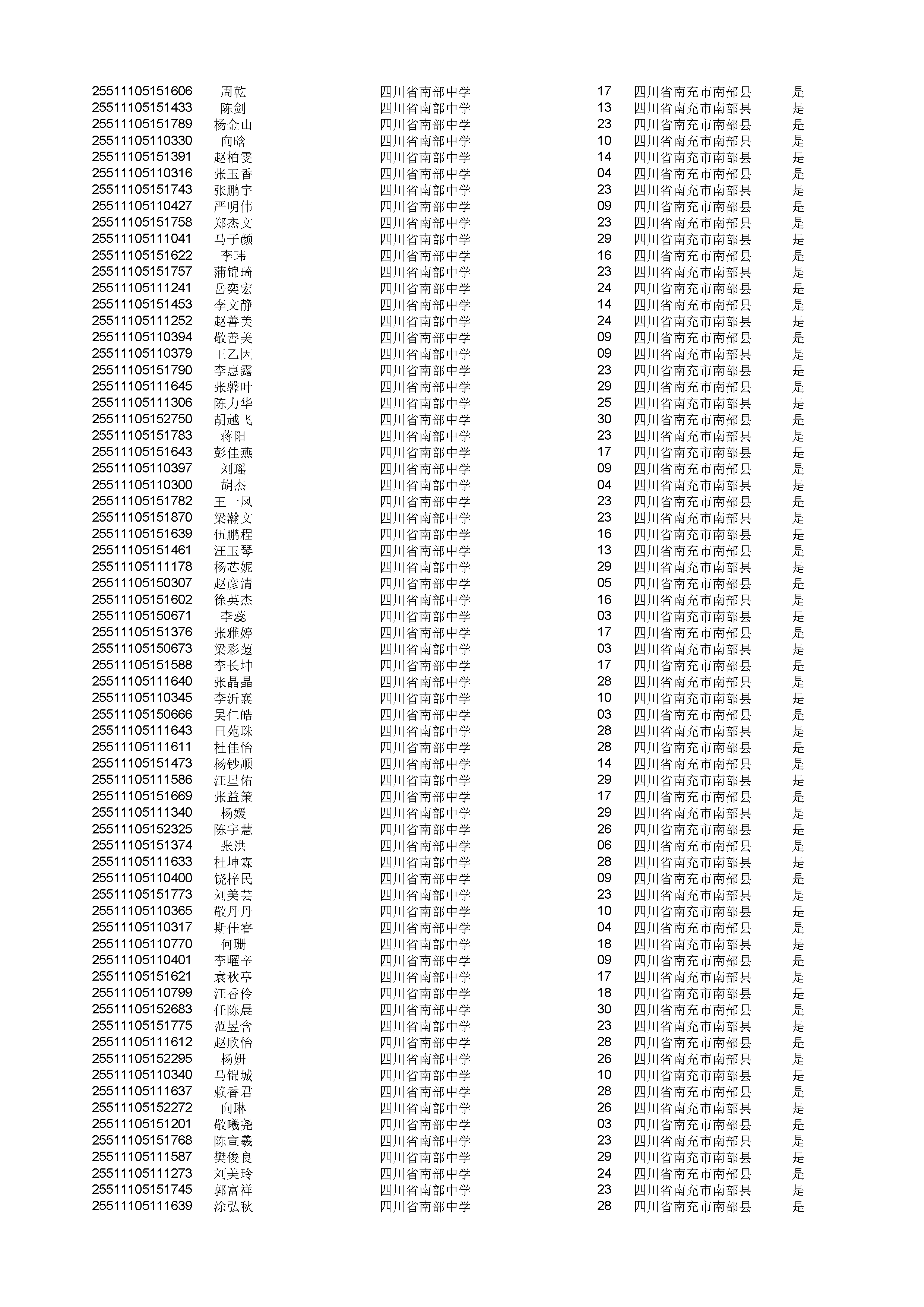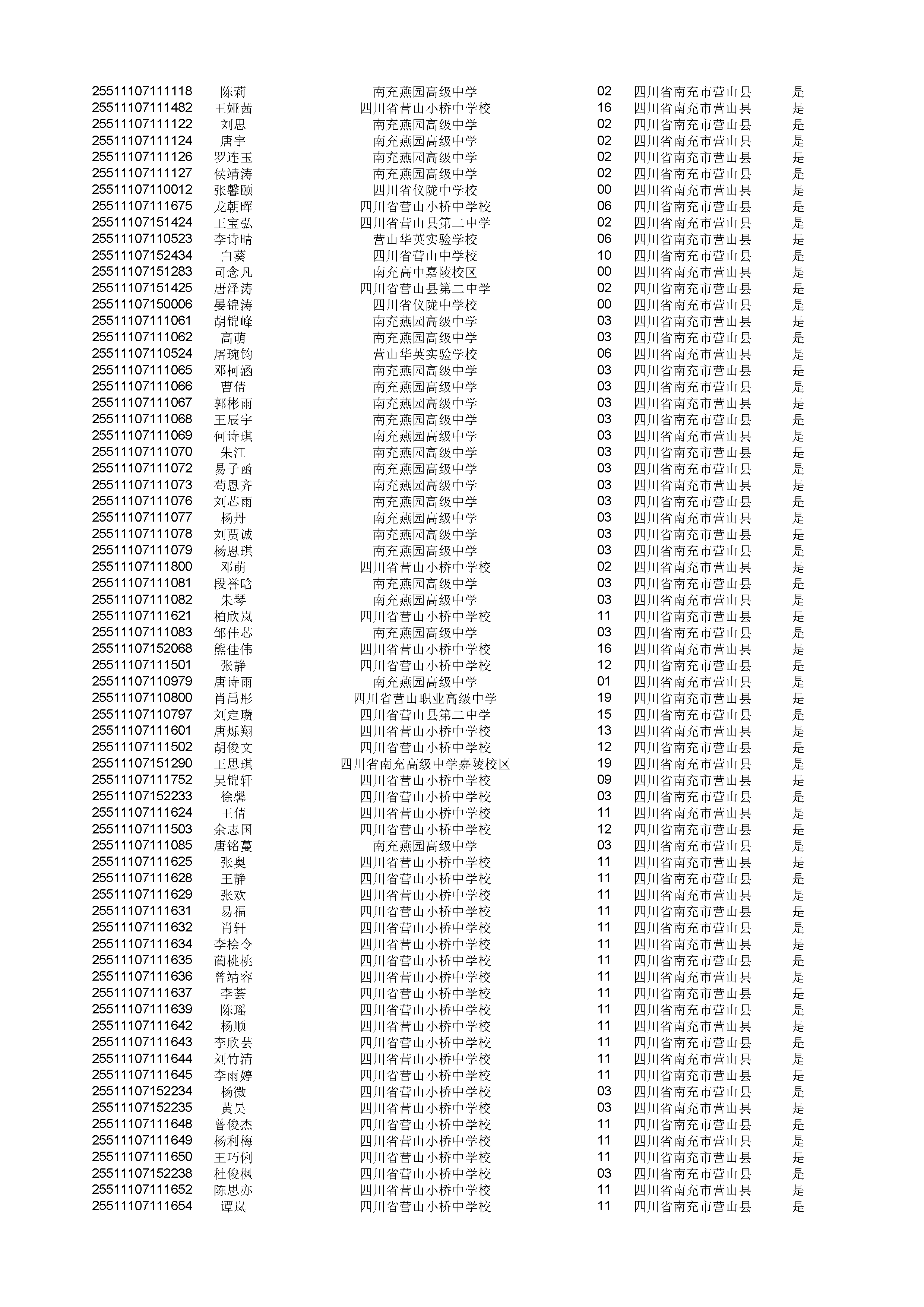 南充市2025年普通高校招生省级公费师范计划审核结果公示