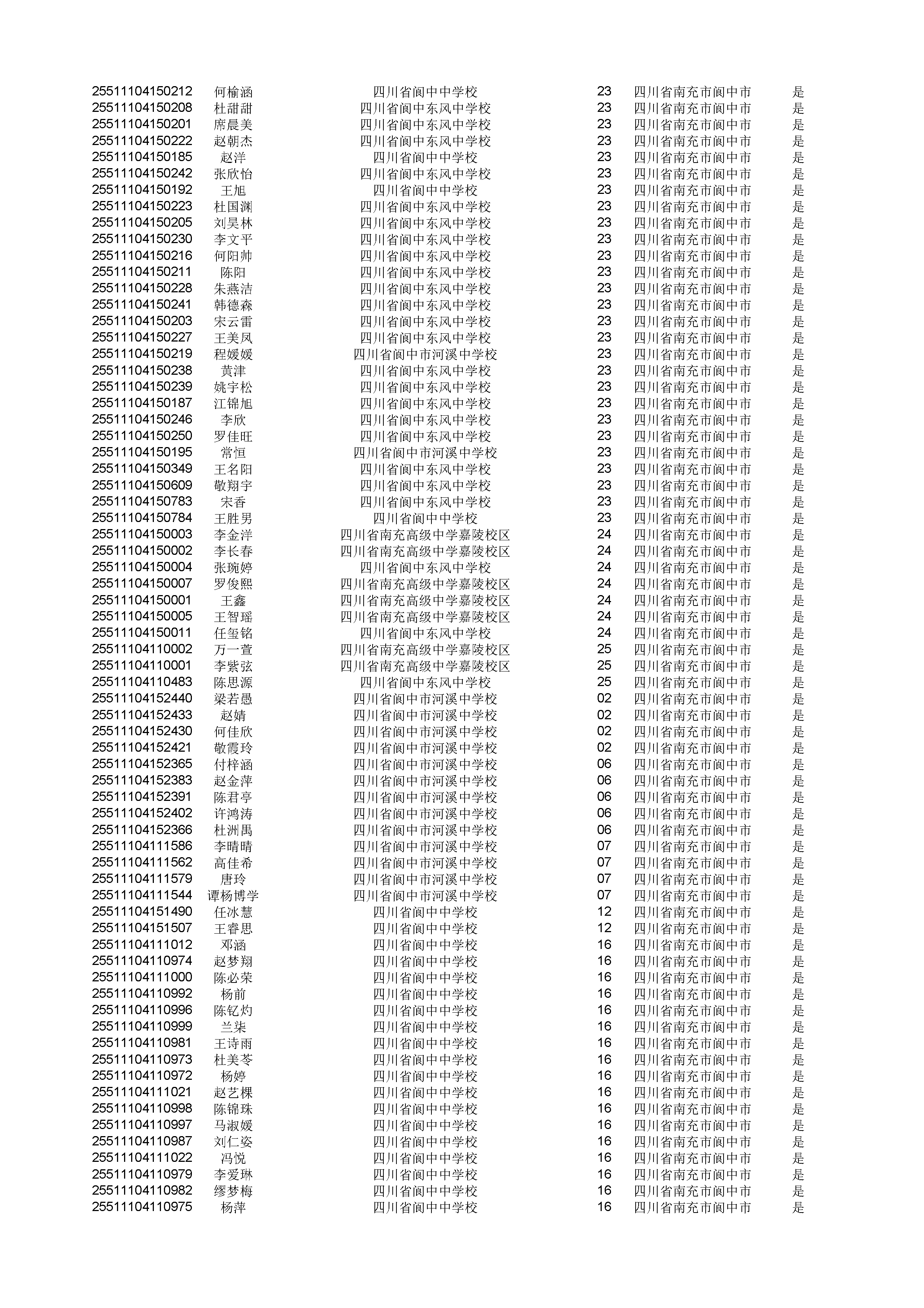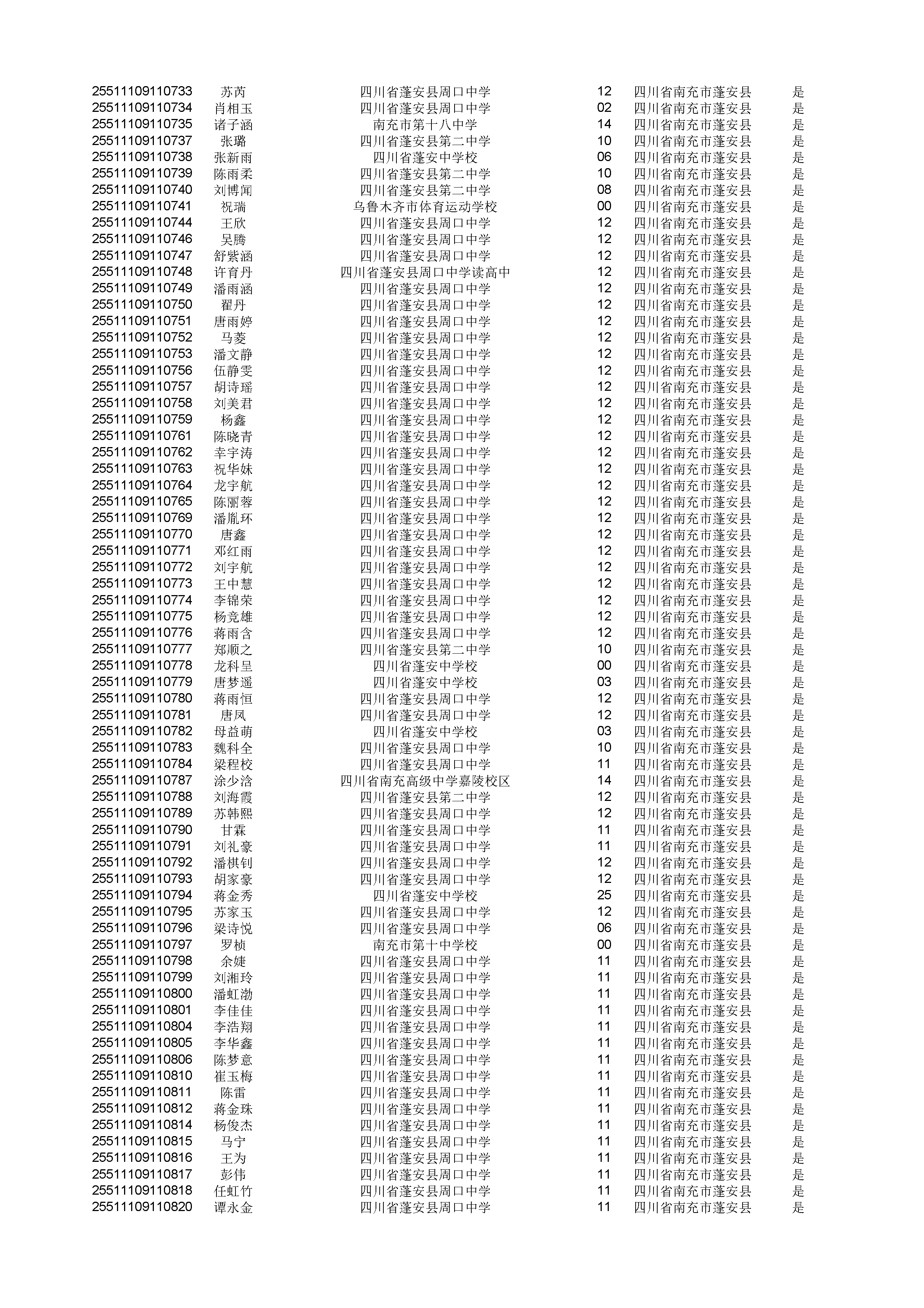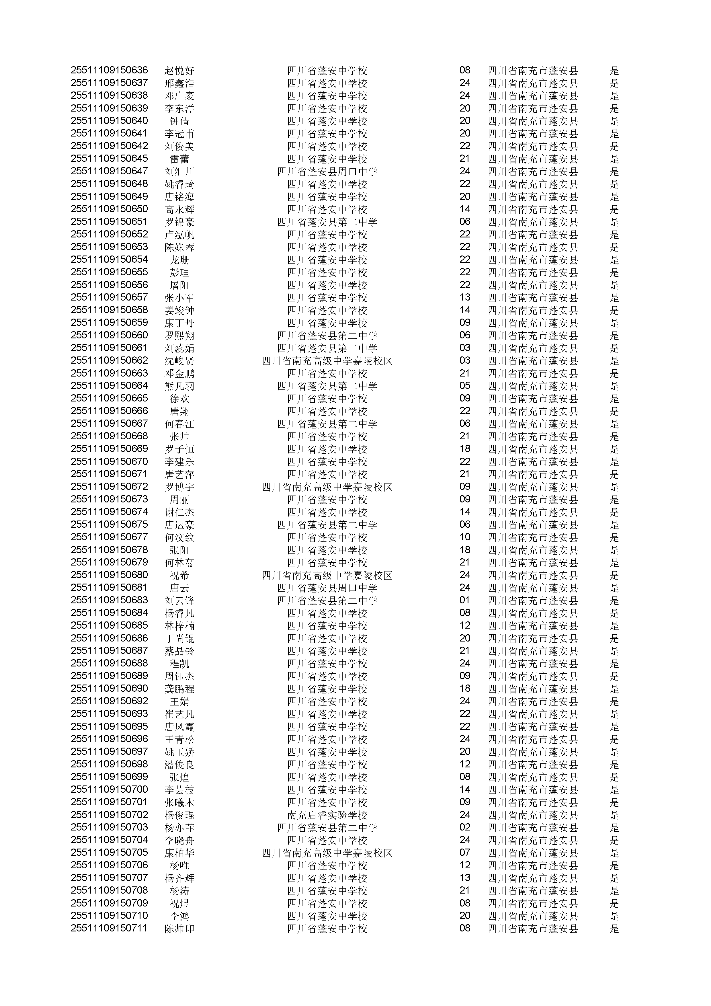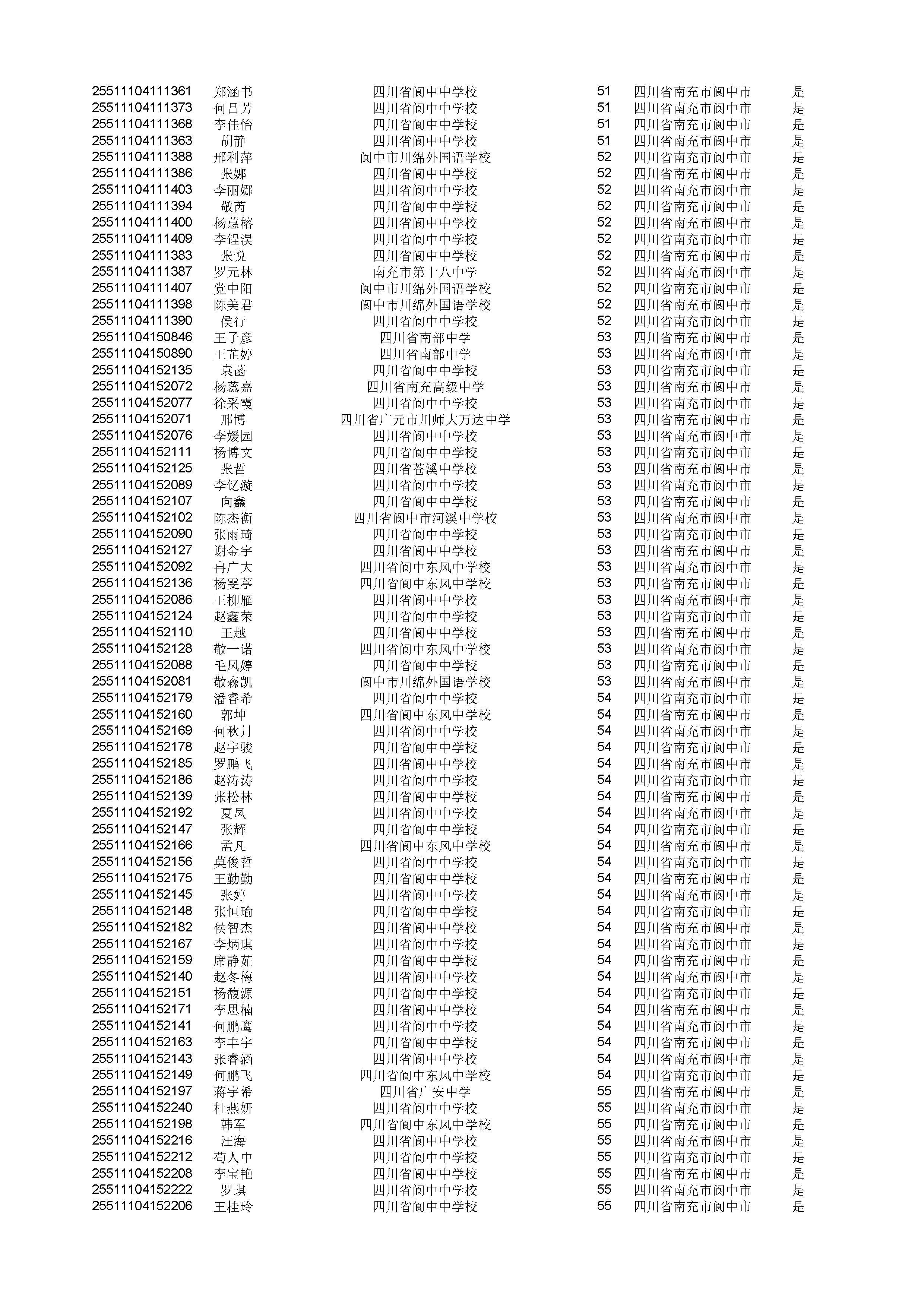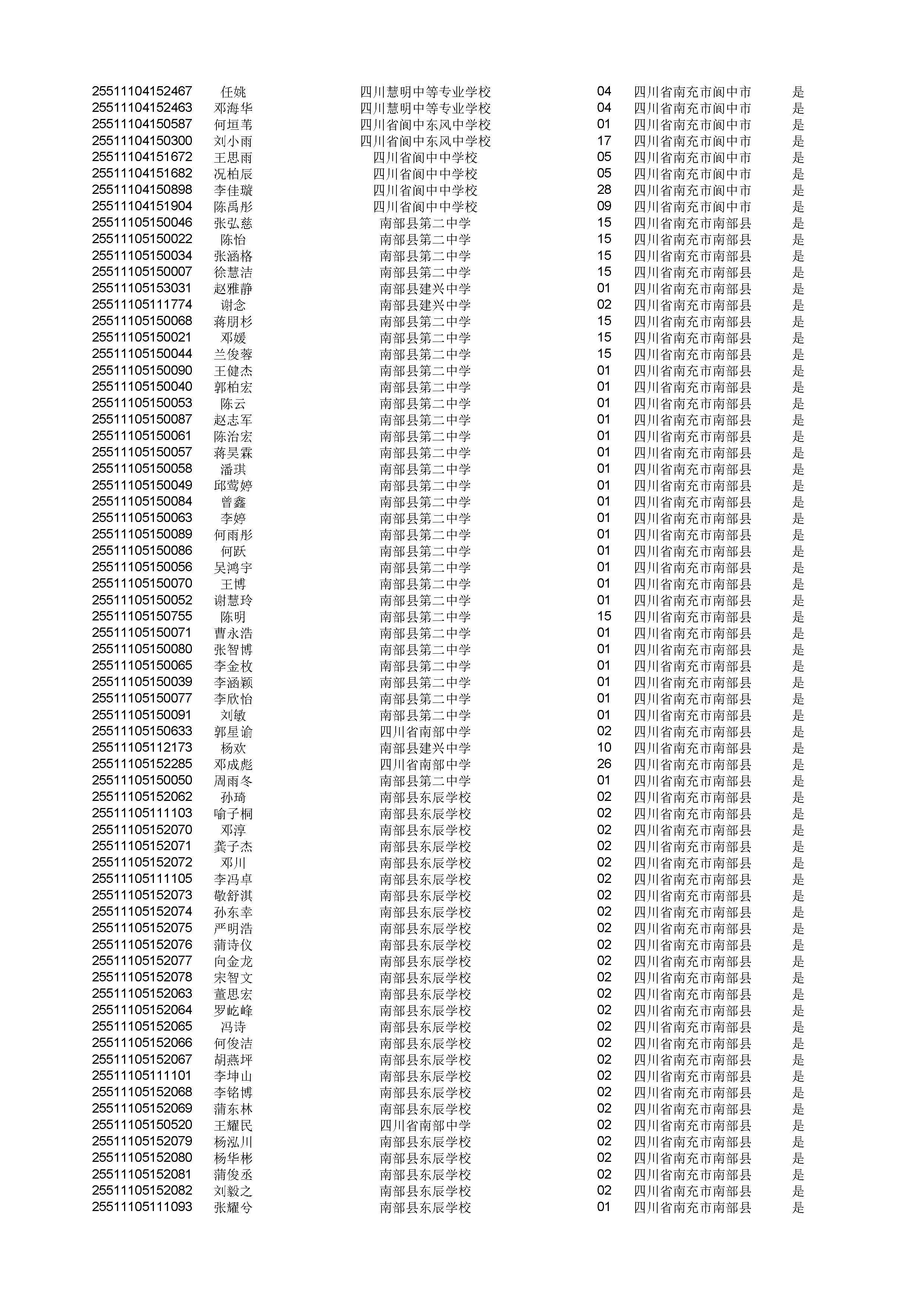 南充市2025年普通高校招生省级公费师范计划审核结果公示