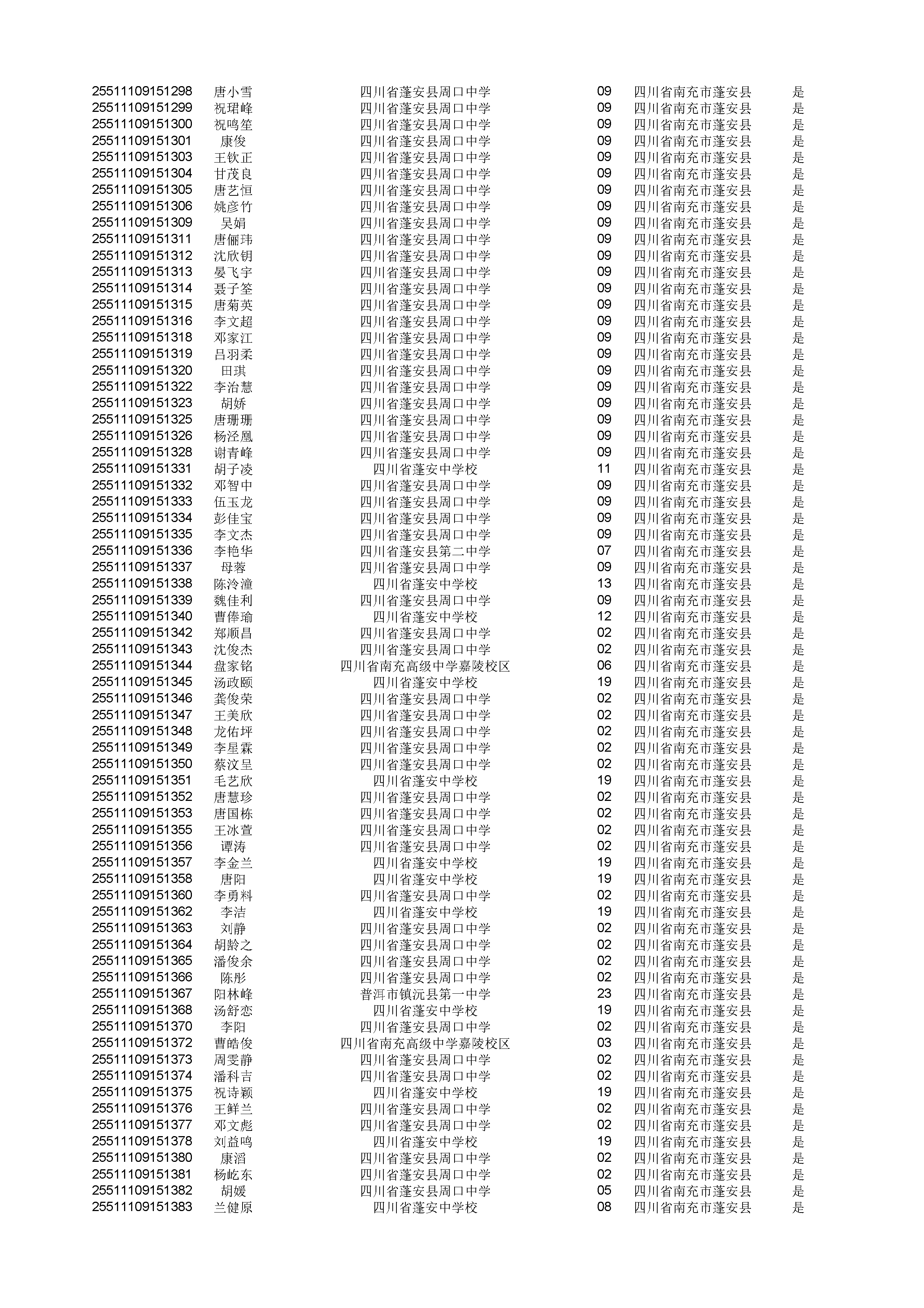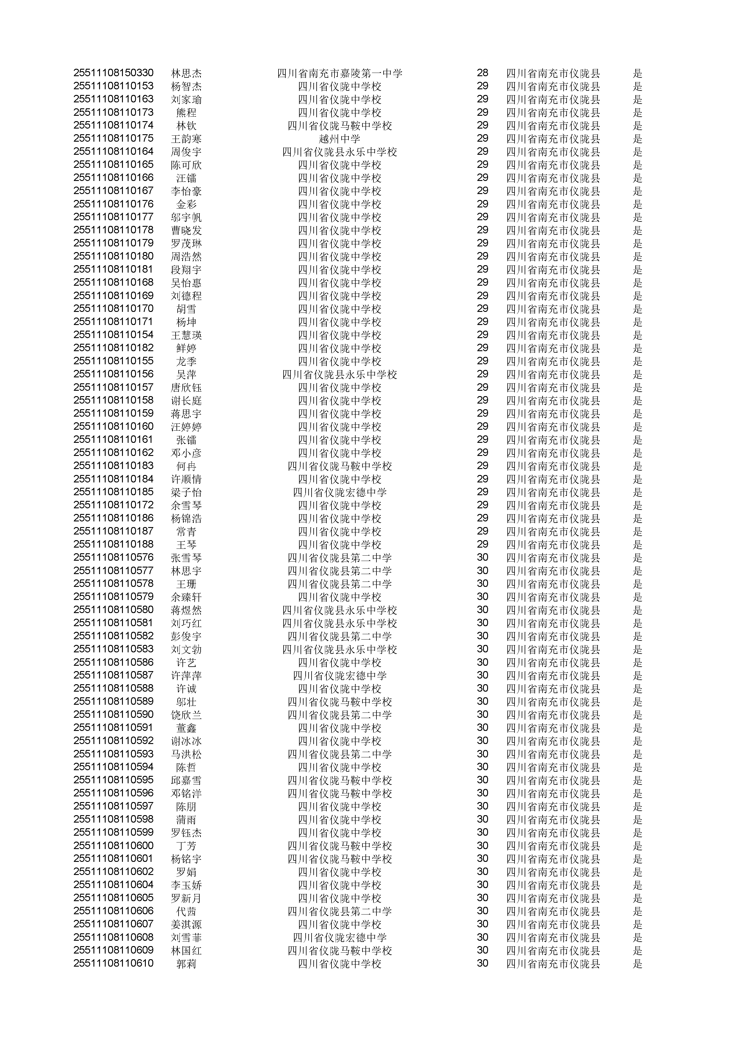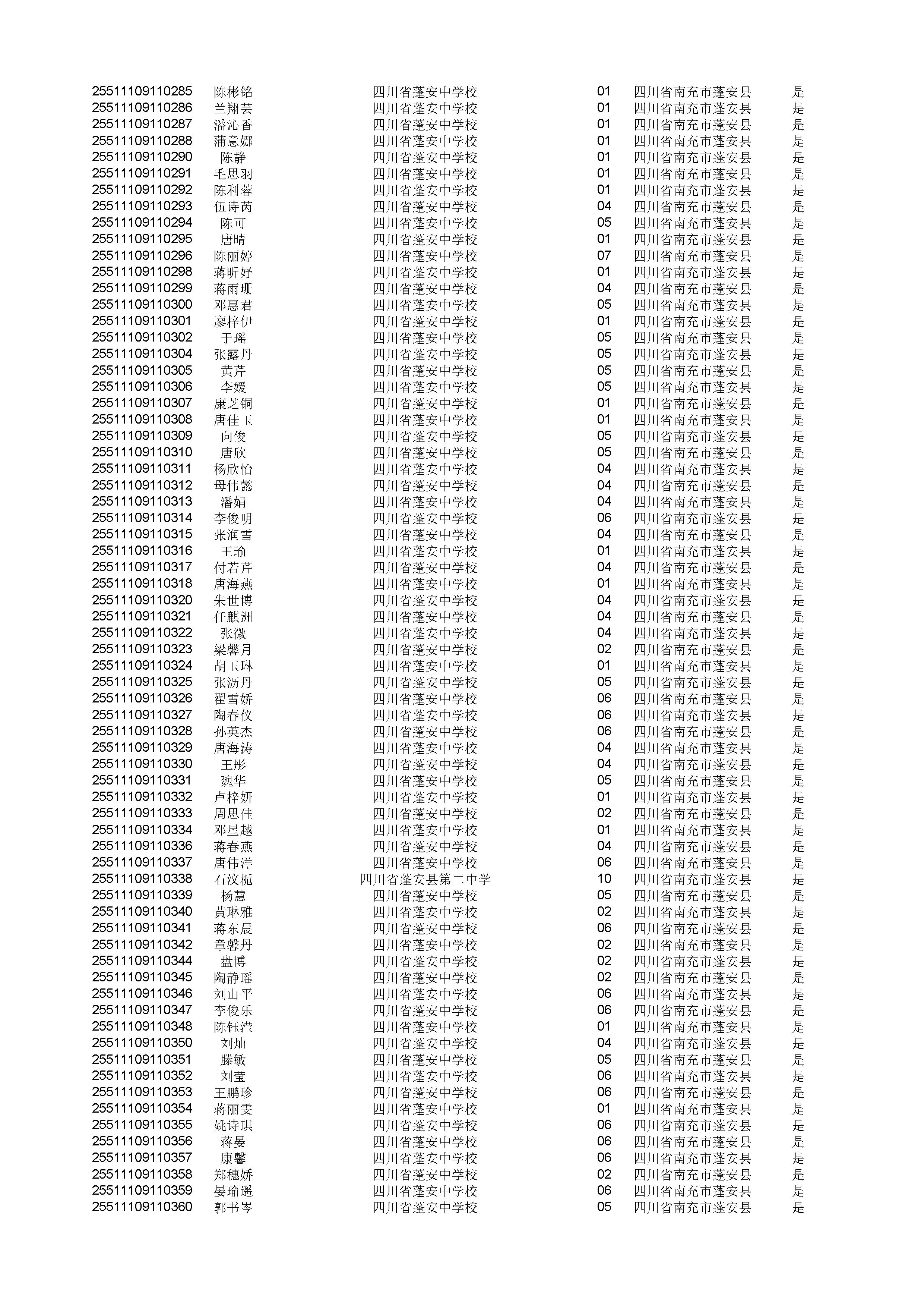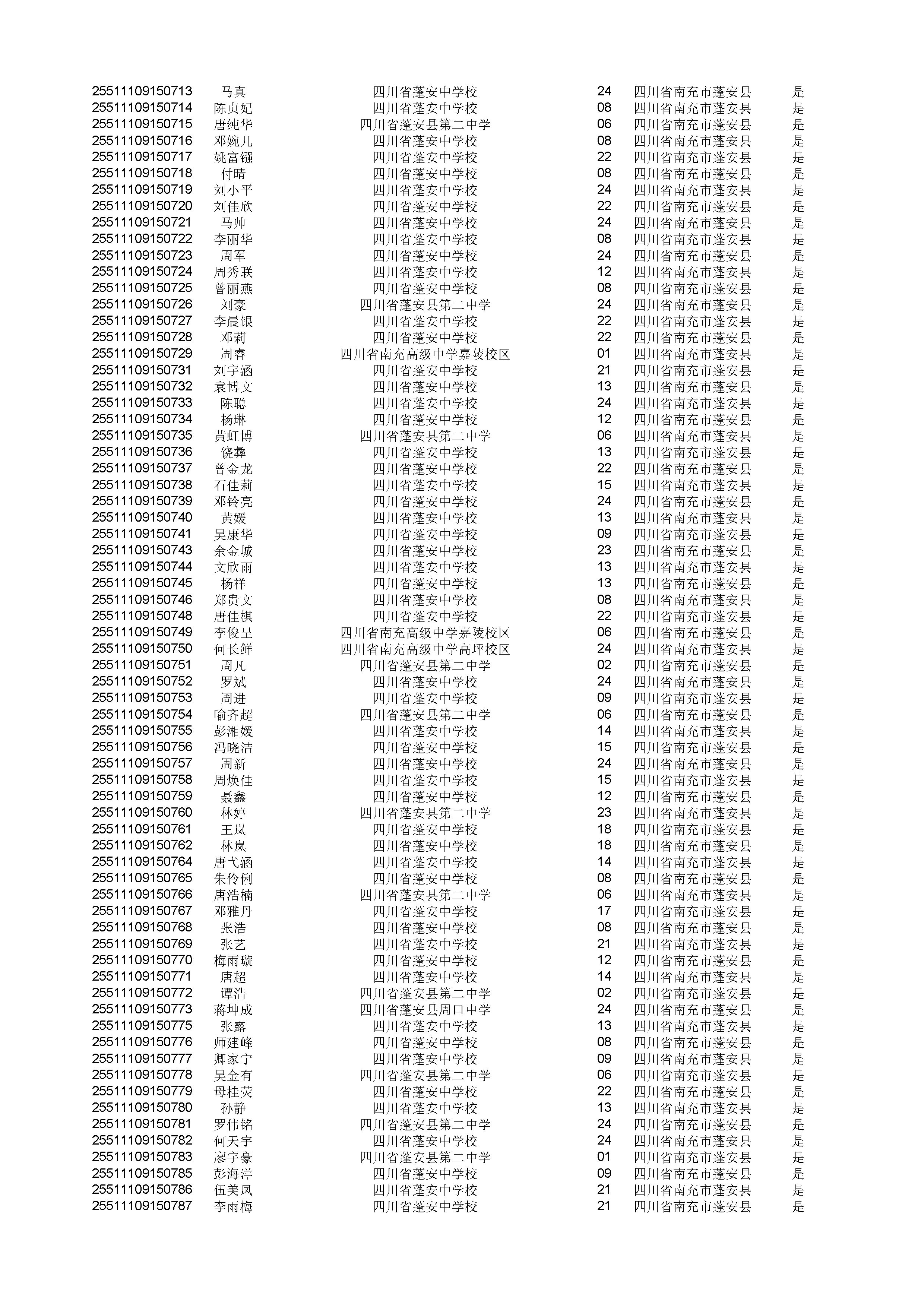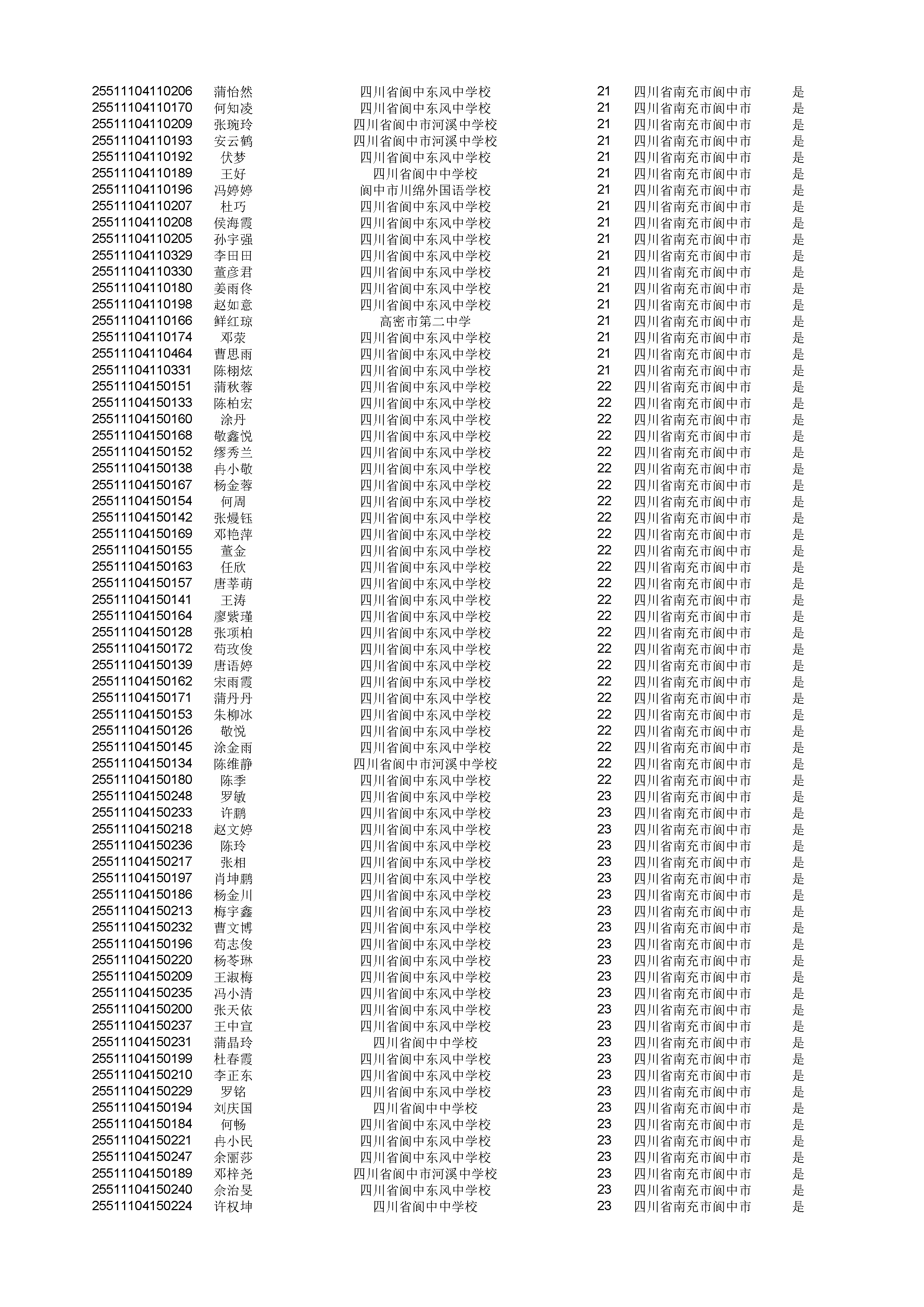 南充市2025年普通高校招生省级公费师范计划审核结果公示